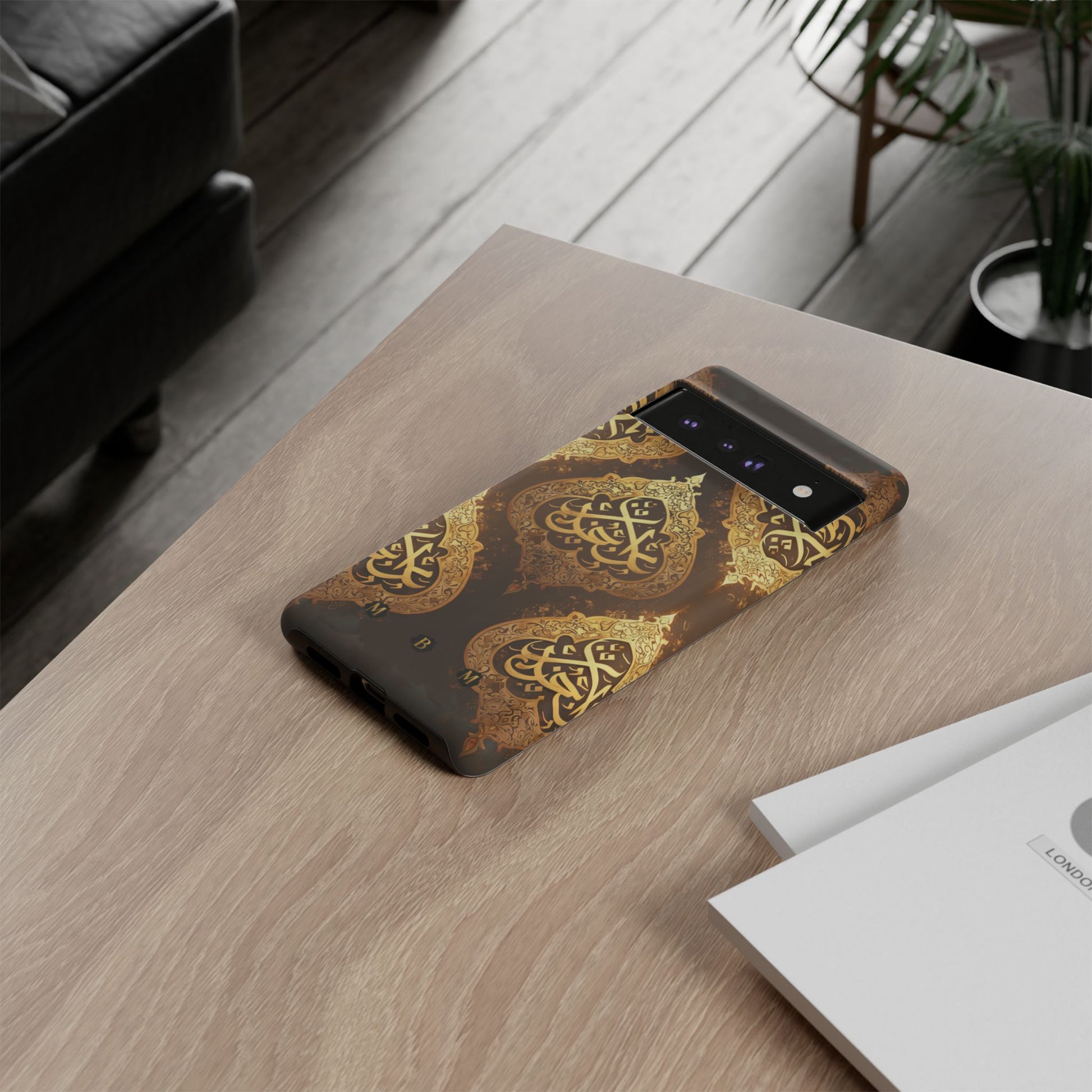 Dive into the mystique of Arab culture with our super quirky phone case! Imagine five fancy bronze teardrops, each with a magical bronze glow and mysterious, made-up script in the middle. It's like a secret code for the coolest club no one knows about! This case isn't just about protection; it's about making your phone the talk of the town. Perfect for those who love a dash of cultural charm with a twist of fun, this case will have everyone asking, "Where did you get that?" Embrace tradition with a wink and a smile!
