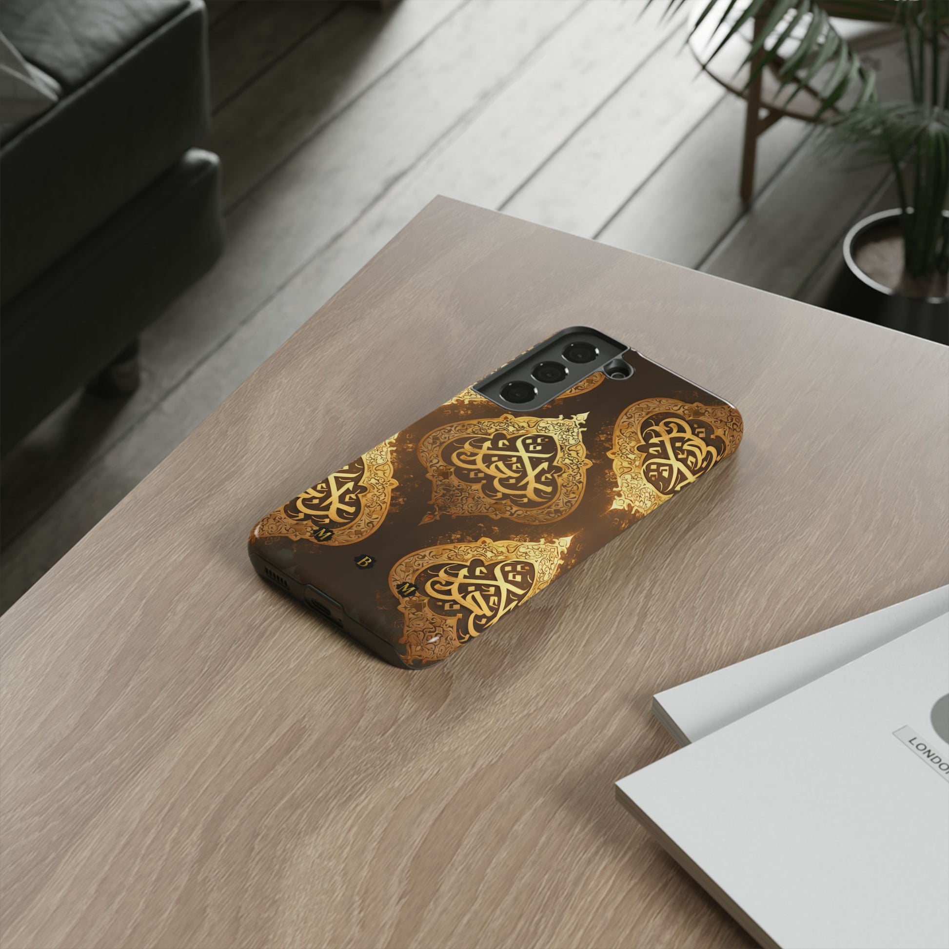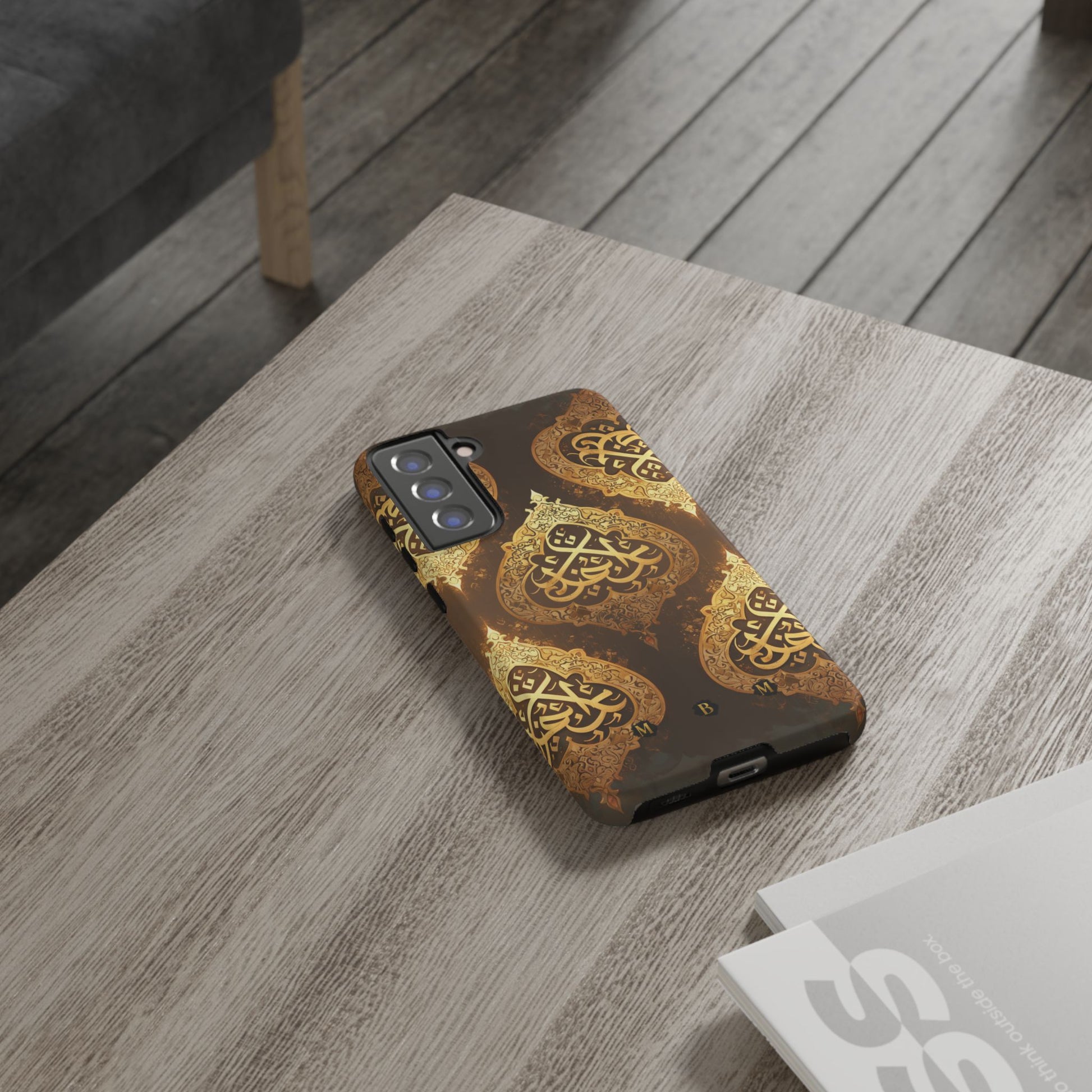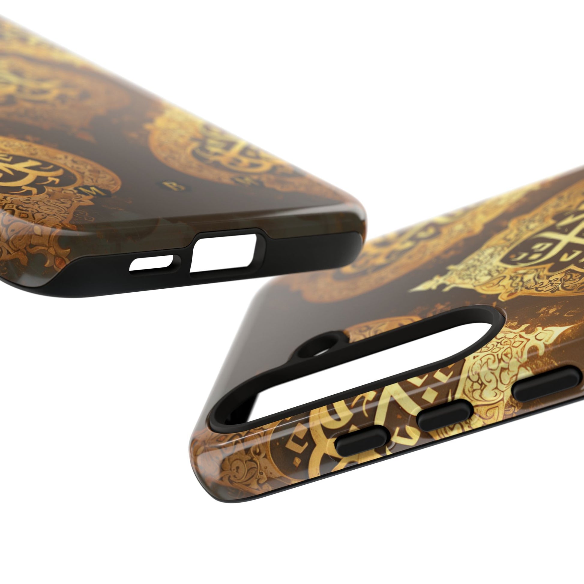 Dive into the mystique of Arab culture with our super quirky phone case! Imagine five fancy bronze teardrops, each with a magical bronze glow and mysterious, made-up script in the middle. It's like a secret code for the coolest club no one knows about! This case isn't just about protection; it's about making your phone the talk of the town. Perfect for those who love a dash of cultural charm with a twist of fun, this case will have everyone asking, "Where did you get that?" Embrace tradition with a wink and a smile!