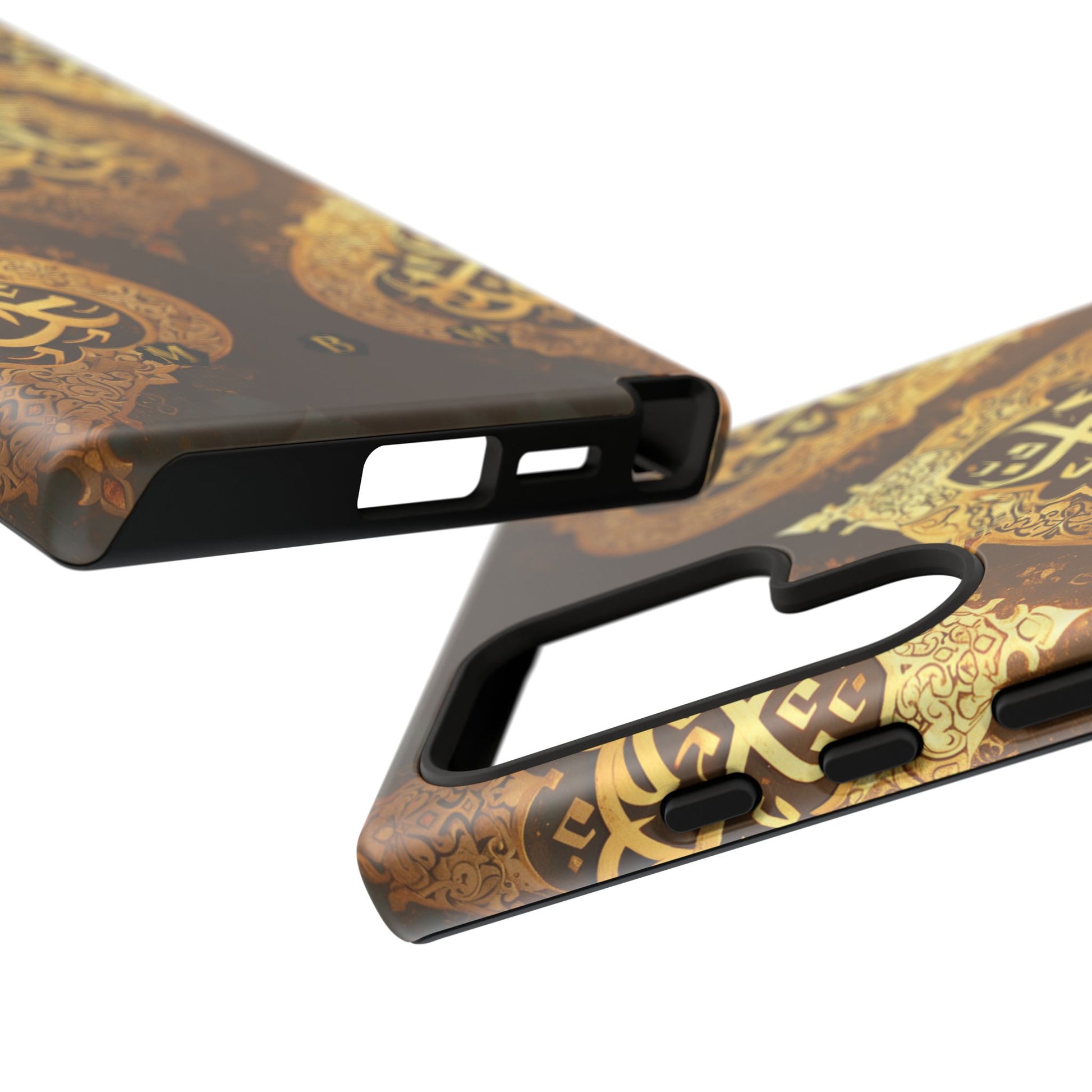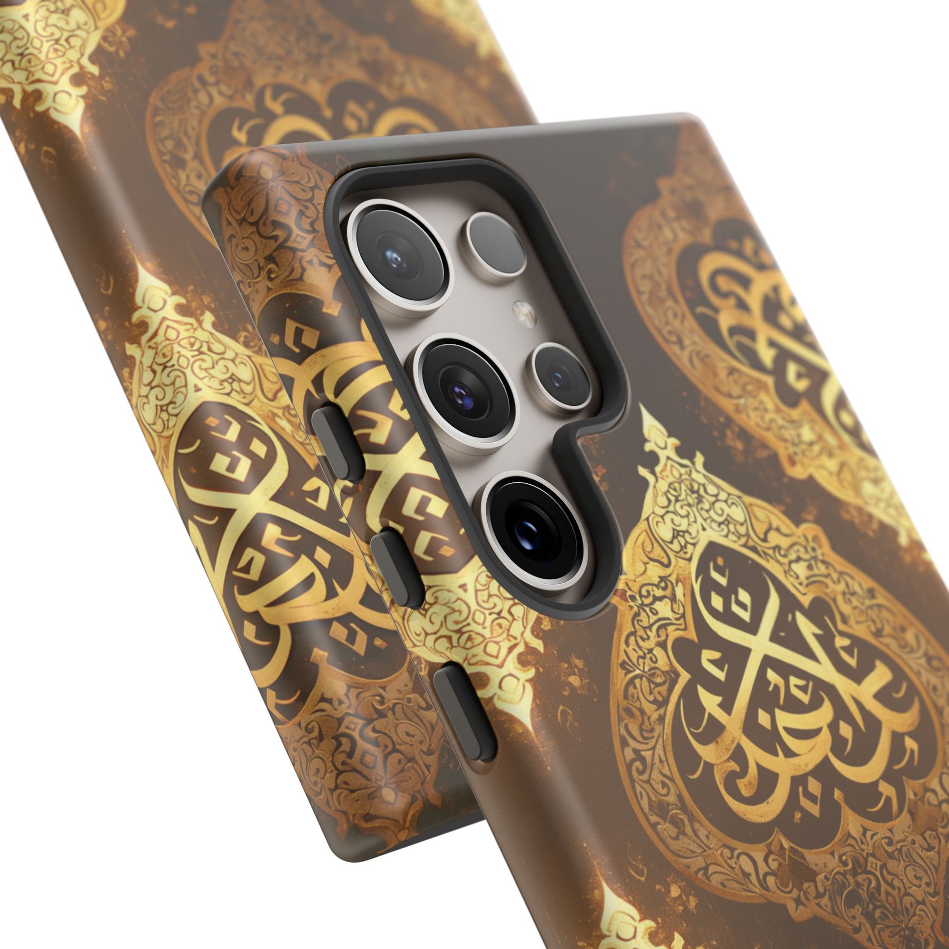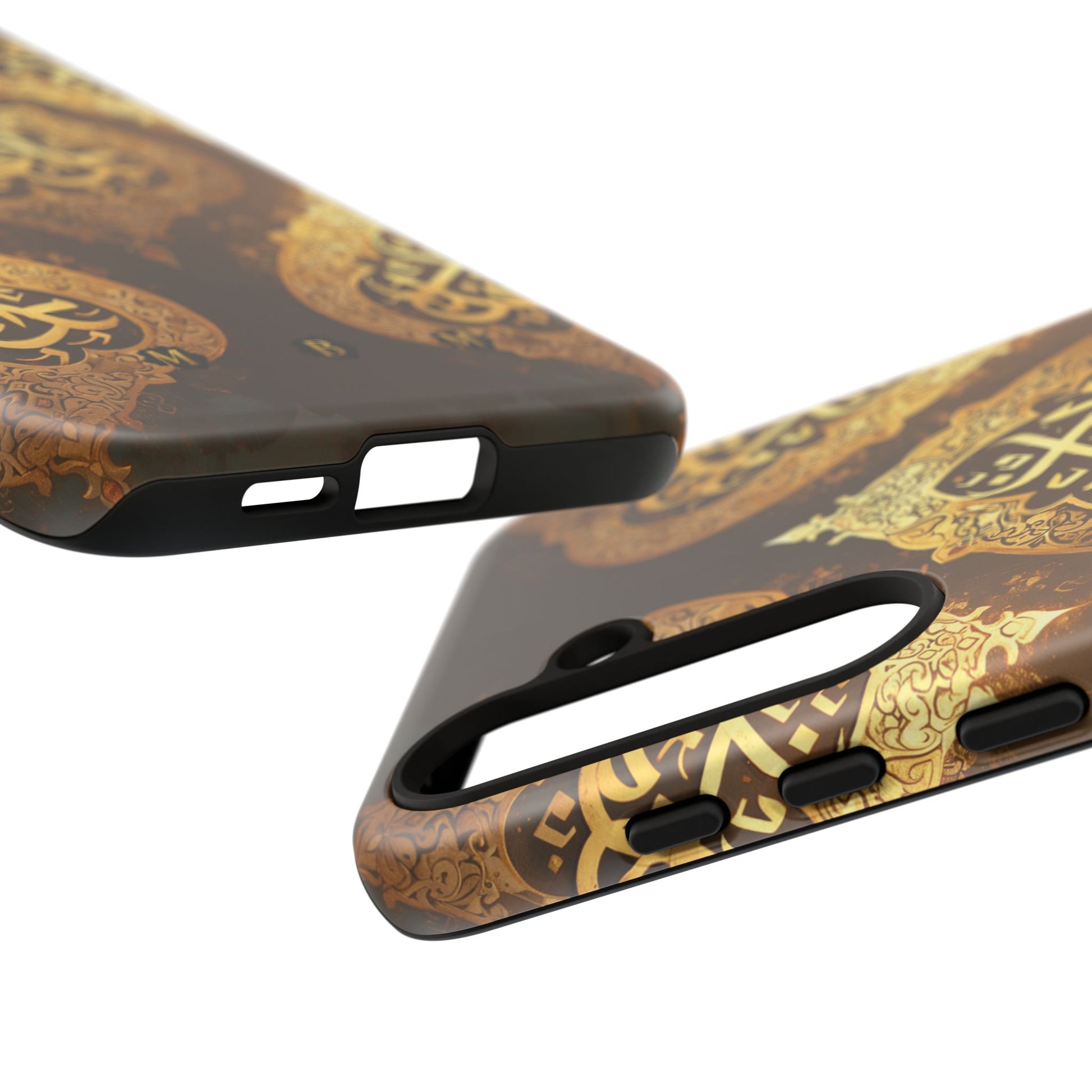Dive into the mystique of Arab culture with our super quirky phone case! Imagine five fancy bronze teardrops, each with a magical bronze glow and mysterious, made-up script in the middle. It's like a secret code for the coolest club no one knows about! This case isn't just about protection; it's about making your phone the talk of the town. Perfect for those who love a dash of cultural charm with a twist of fun, this case will have everyone asking, "Where did you get that?" Embrace tradition with a wink and a smile!