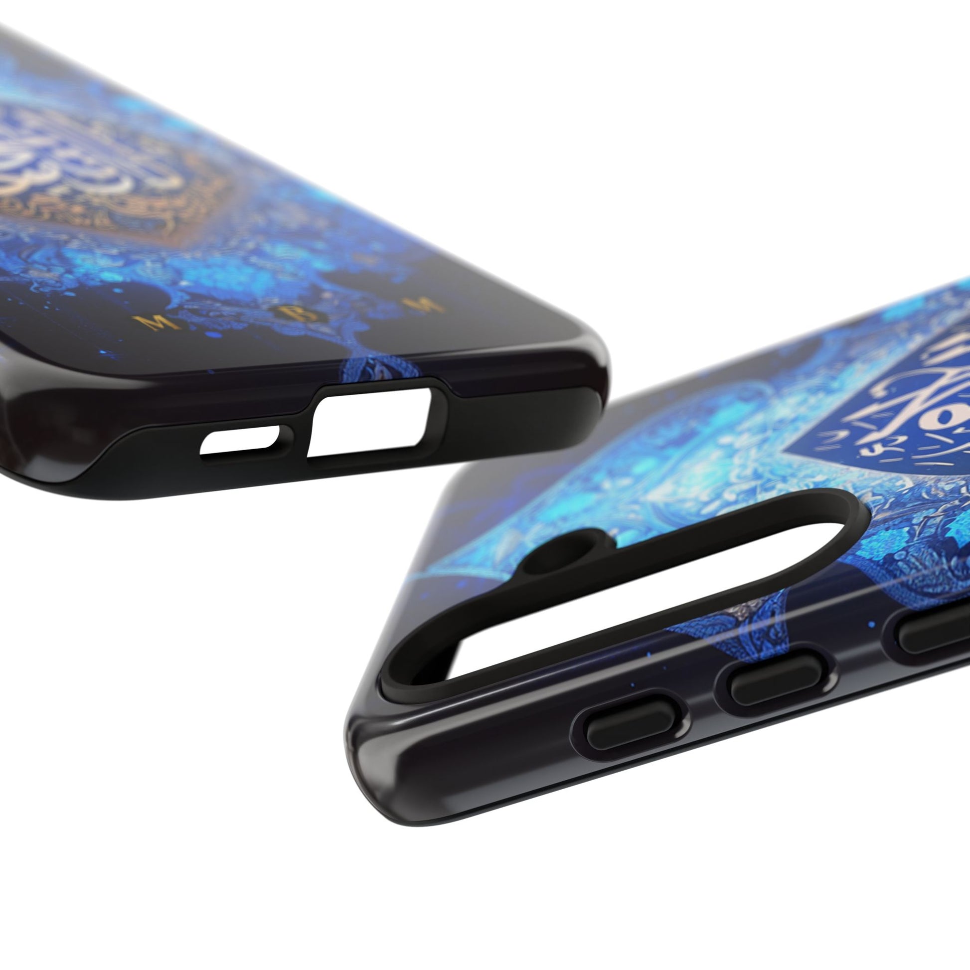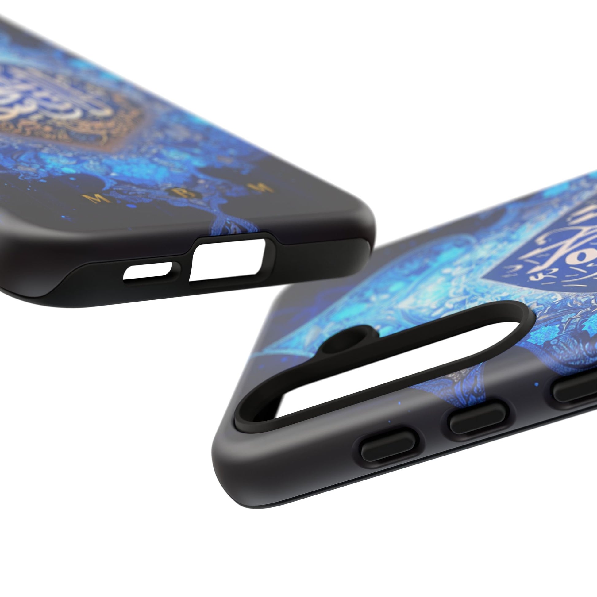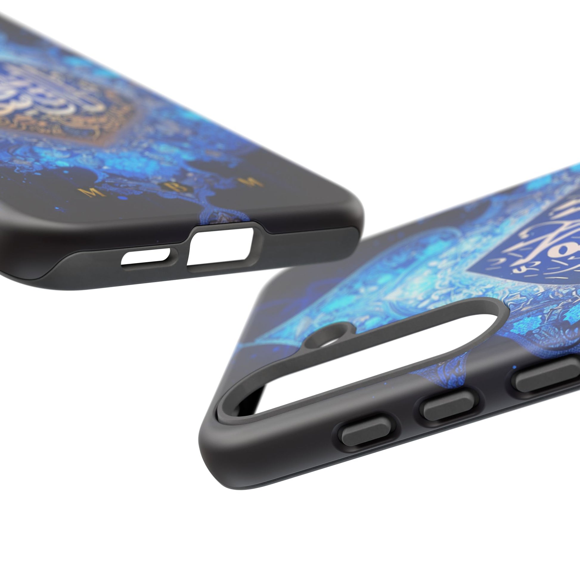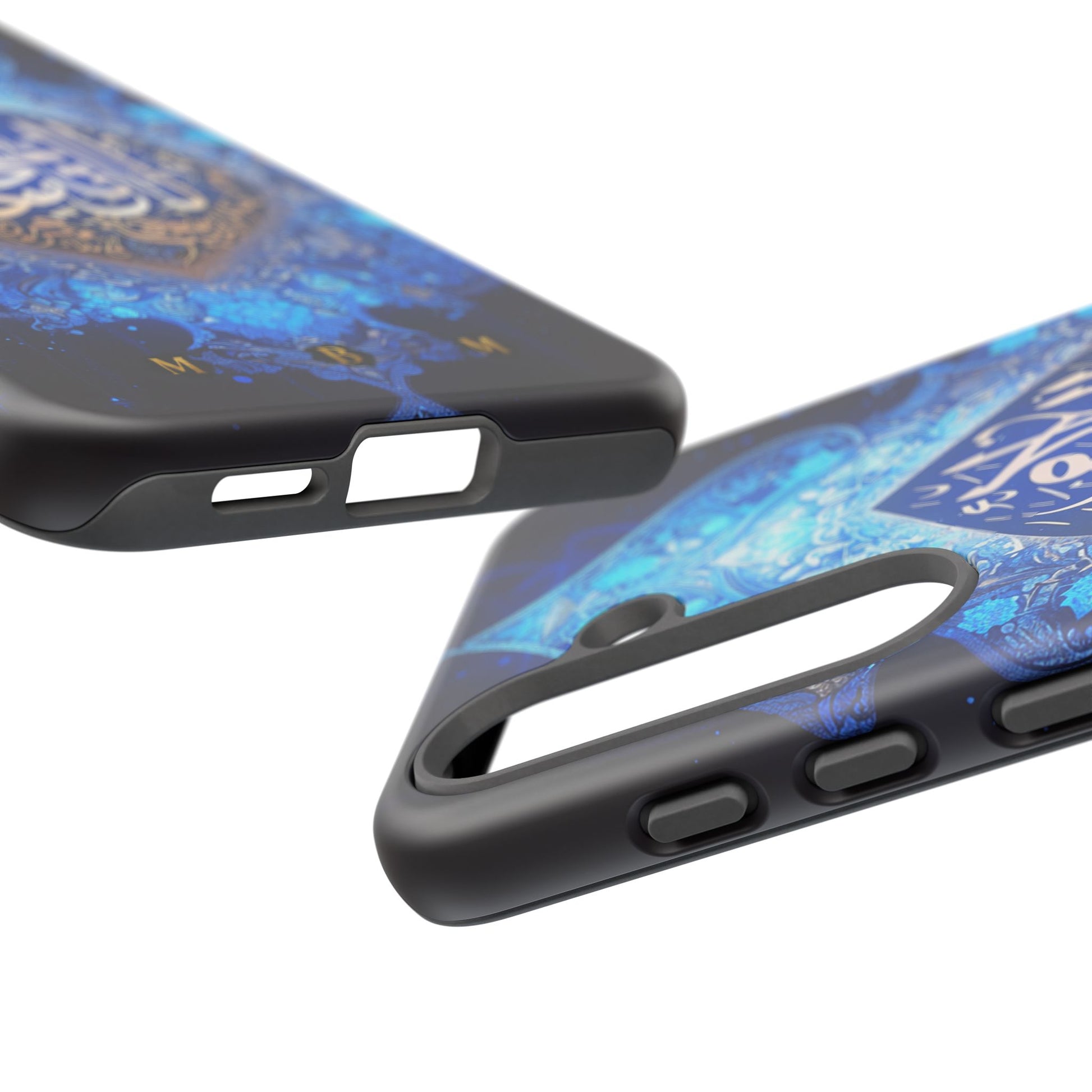 Dive into the magic of Arab culture with our one-of-a-kind phone case! Featuring a mesmerizing blue teardrop gnathic with a glowing aura, this case is like holding a piece of enchanted art. The silver, exotic script in the center adds a touch of mystery—perfect for those who love a good story. Protect your phone in style and let your case do the talking (in a language no one else will understand)! Ideal for culture buffs and fun-seekers, this case is a delightful blend of tradition and whimsy. Get ready to turn heads and start conversations with your new favorite accessory!