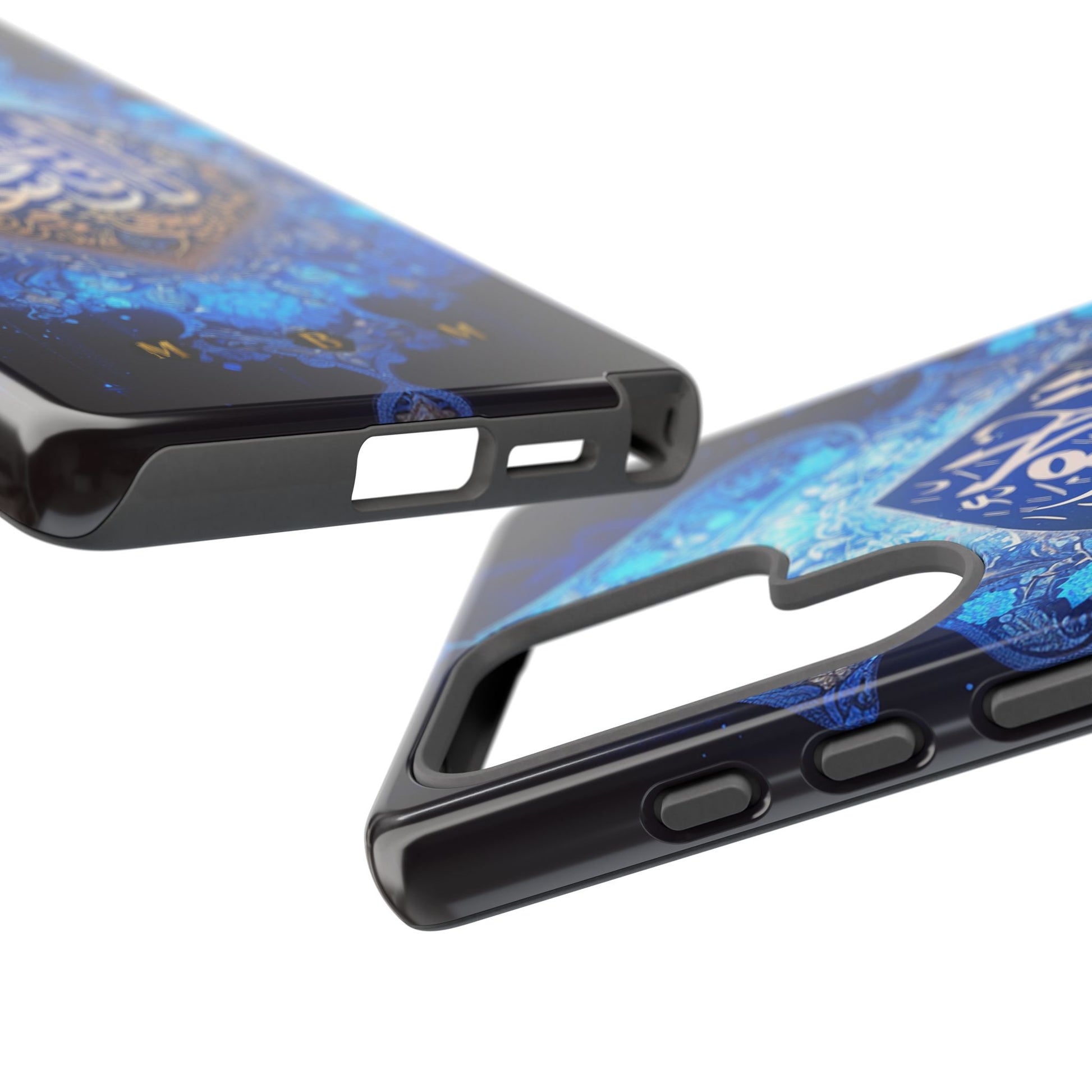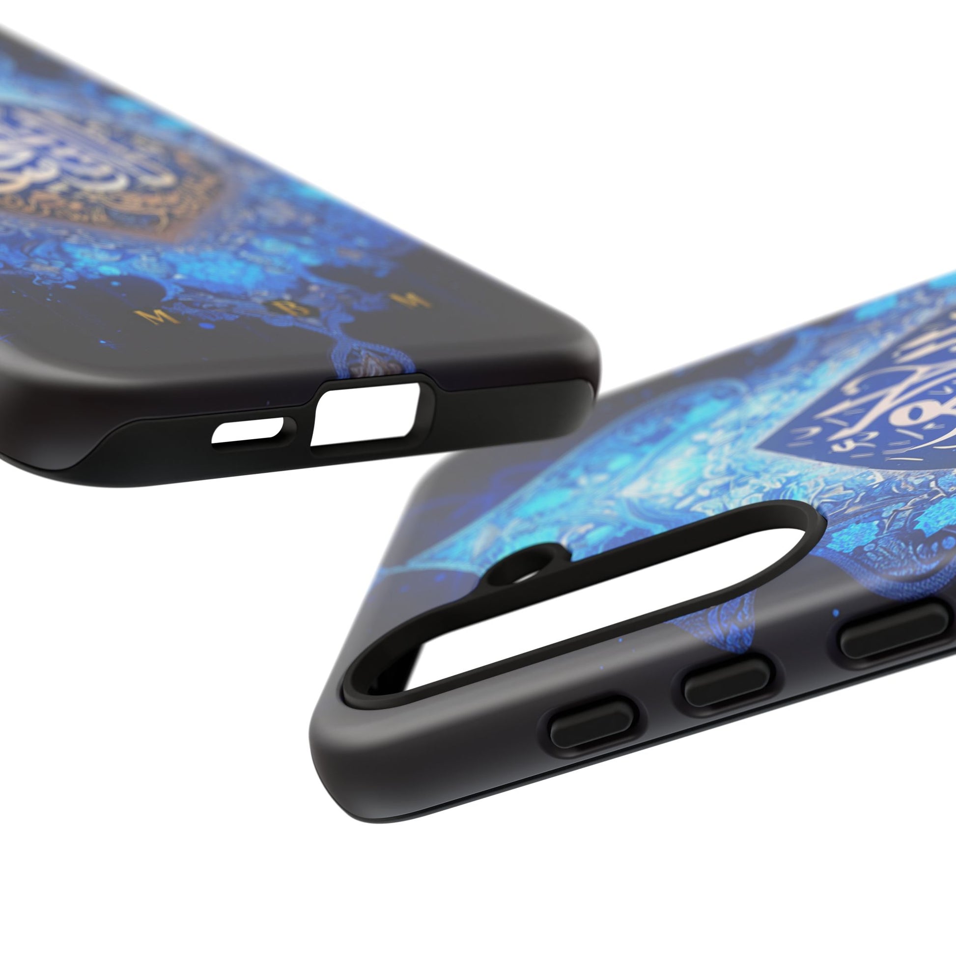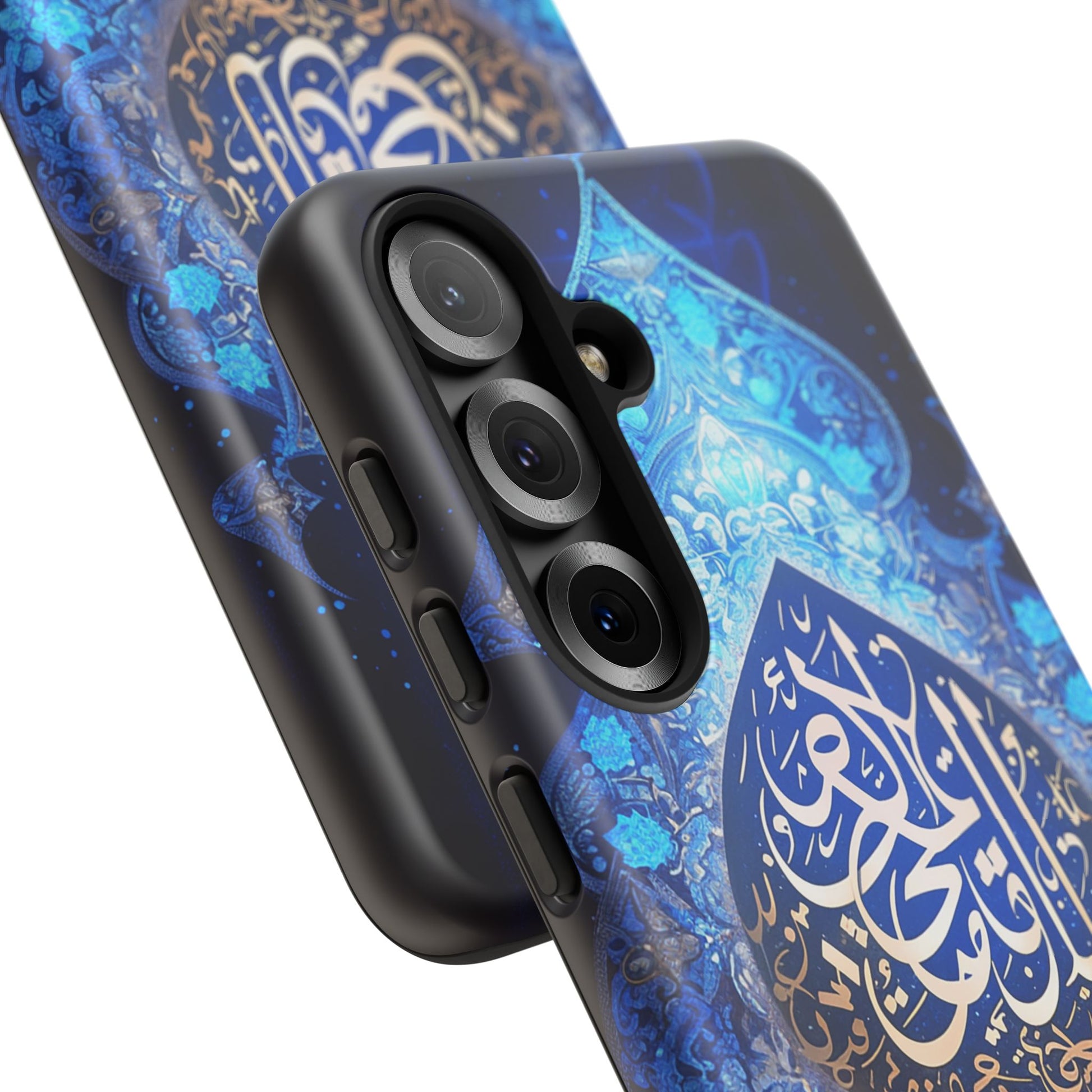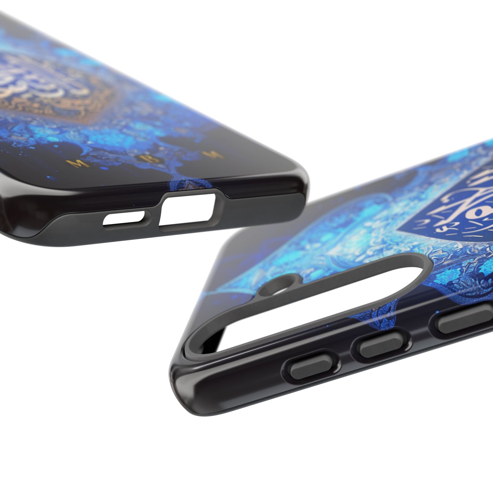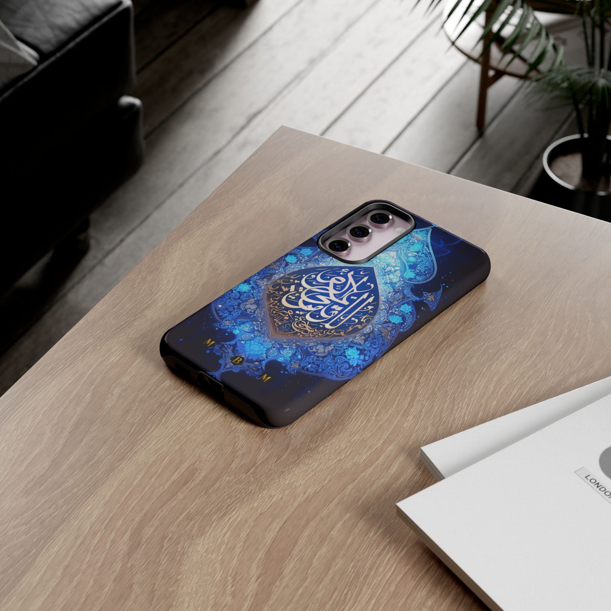 Dive into the magic of Arab culture with our one-of-a-kind phone case! Featuring a mesmerizing blue teardrop gnathic with a glowing aura, this case is like holding a piece of enchanted art. The silver, exotic script in the center adds a touch of mystery—perfect for those who love a good story. Protect your phone in style and let your case do the talking (in a language no one else will understand)! Ideal for culture buffs and fun-seekers, this case is a delightful blend of tradition and whimsy. Get ready to turn heads and start conversations with your new favorite accessory!