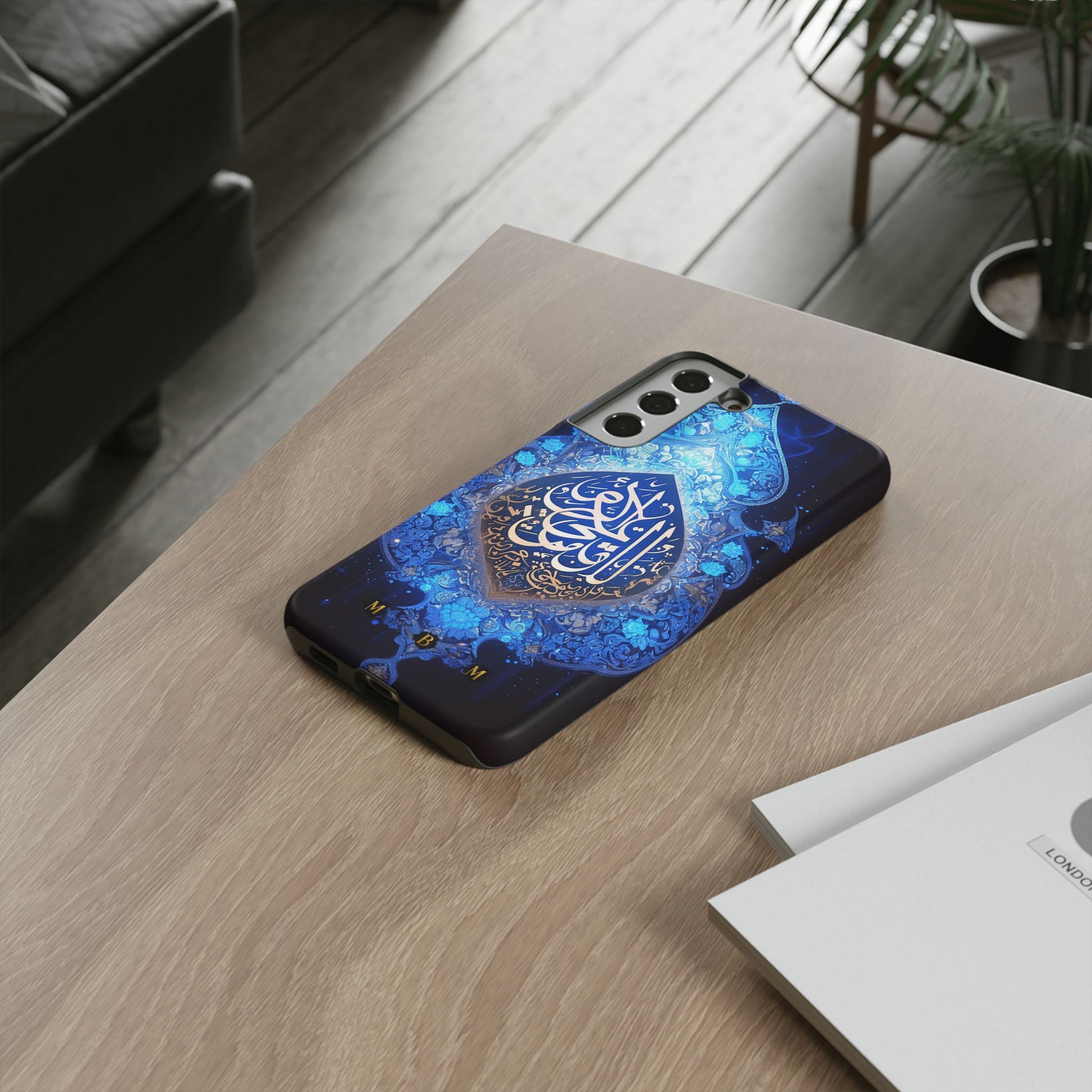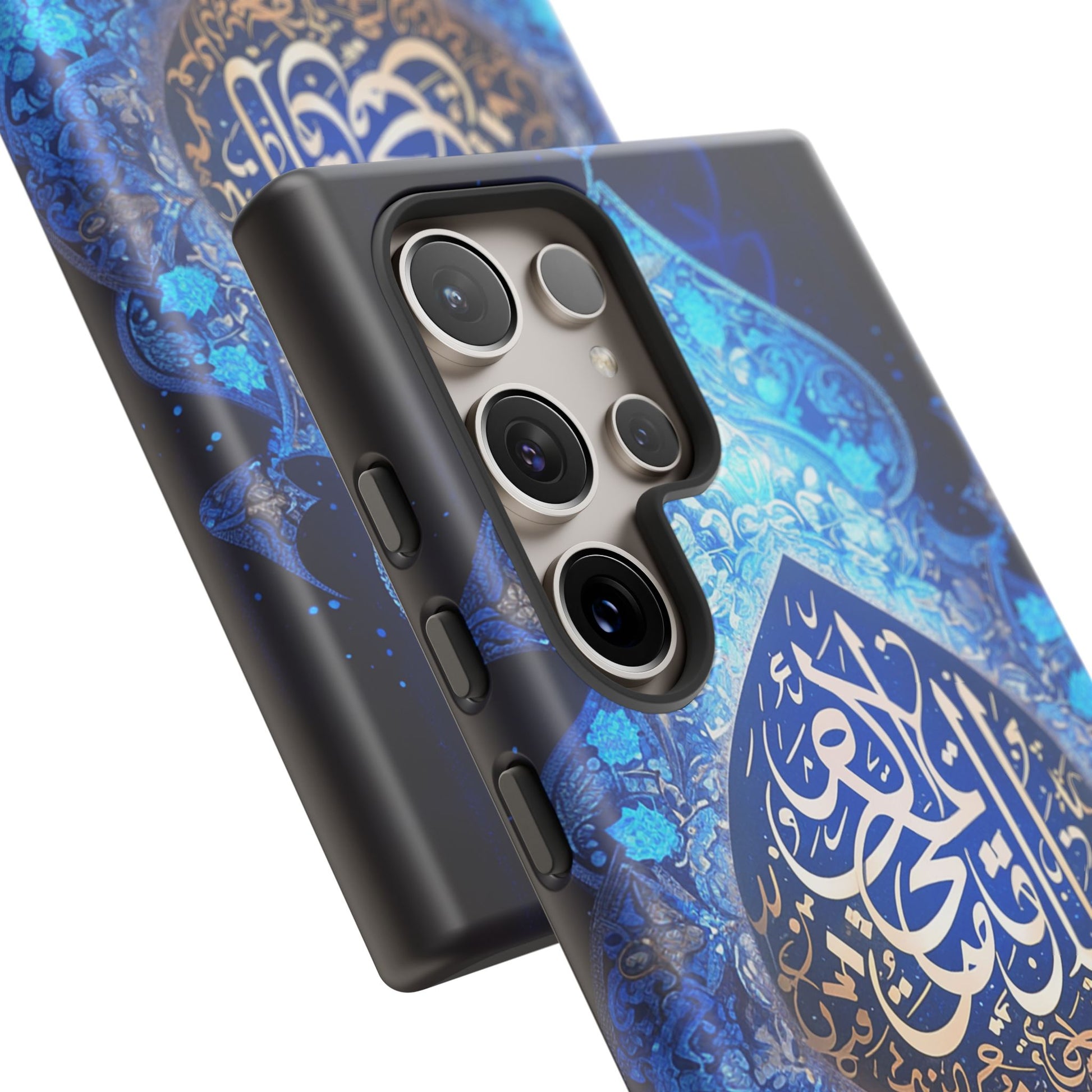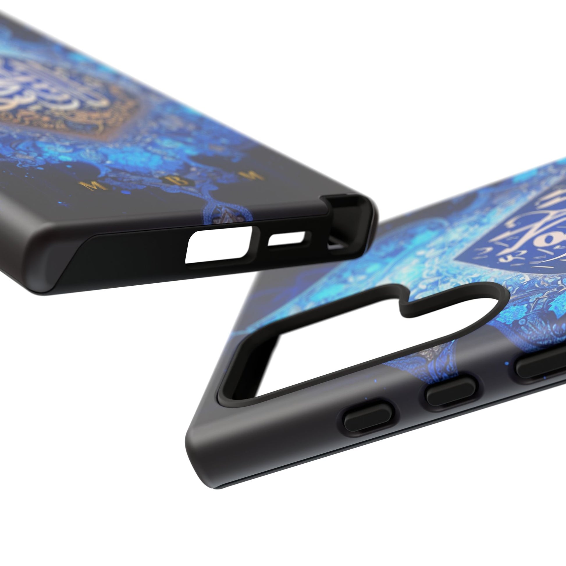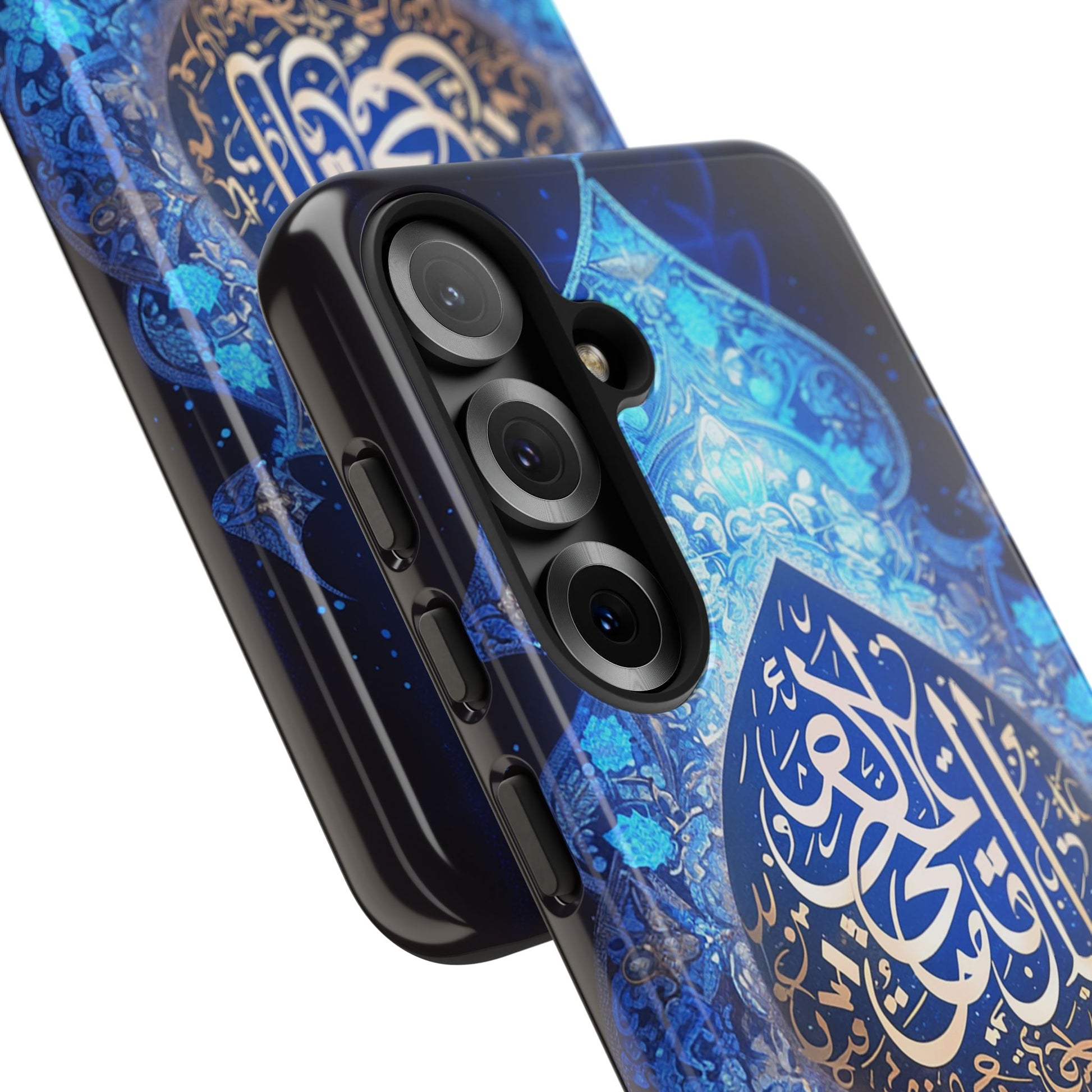 Dive into the magic of Arab culture with our one-of-a-kind phone case! Featuring a mesmerizing blue teardrop gnathic with a glowing aura, this case is like holding a piece of enchanted art. The silver, exotic script in the center adds a touch of mystery—perfect for those who love a good story. Protect your phone in style and let your case do the talking (in a language no one else will understand)! Ideal for culture buffs and fun-seekers, this case is a delightful blend of tradition and whimsy. Get ready to turn heads and start conversations with your new favorite accessory!