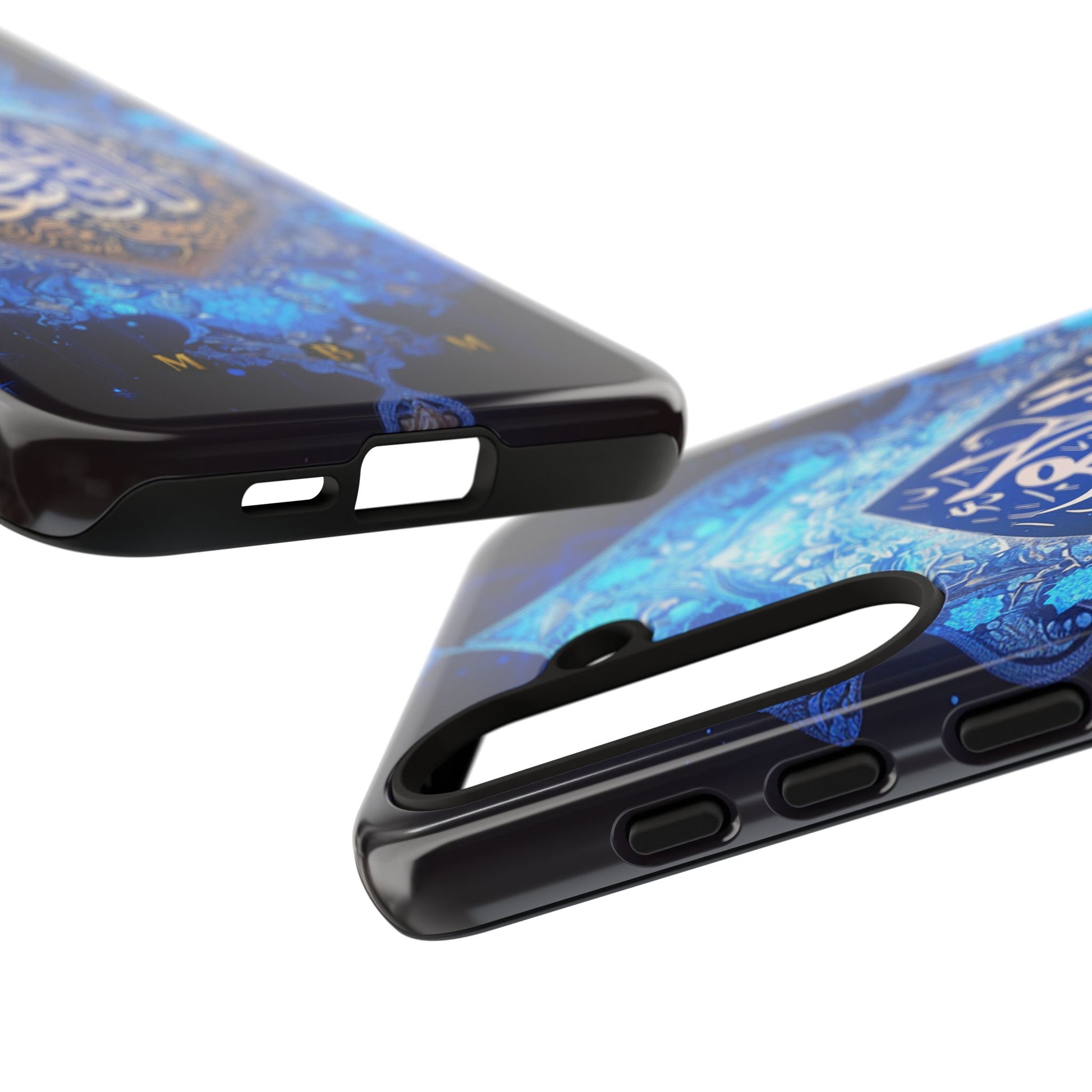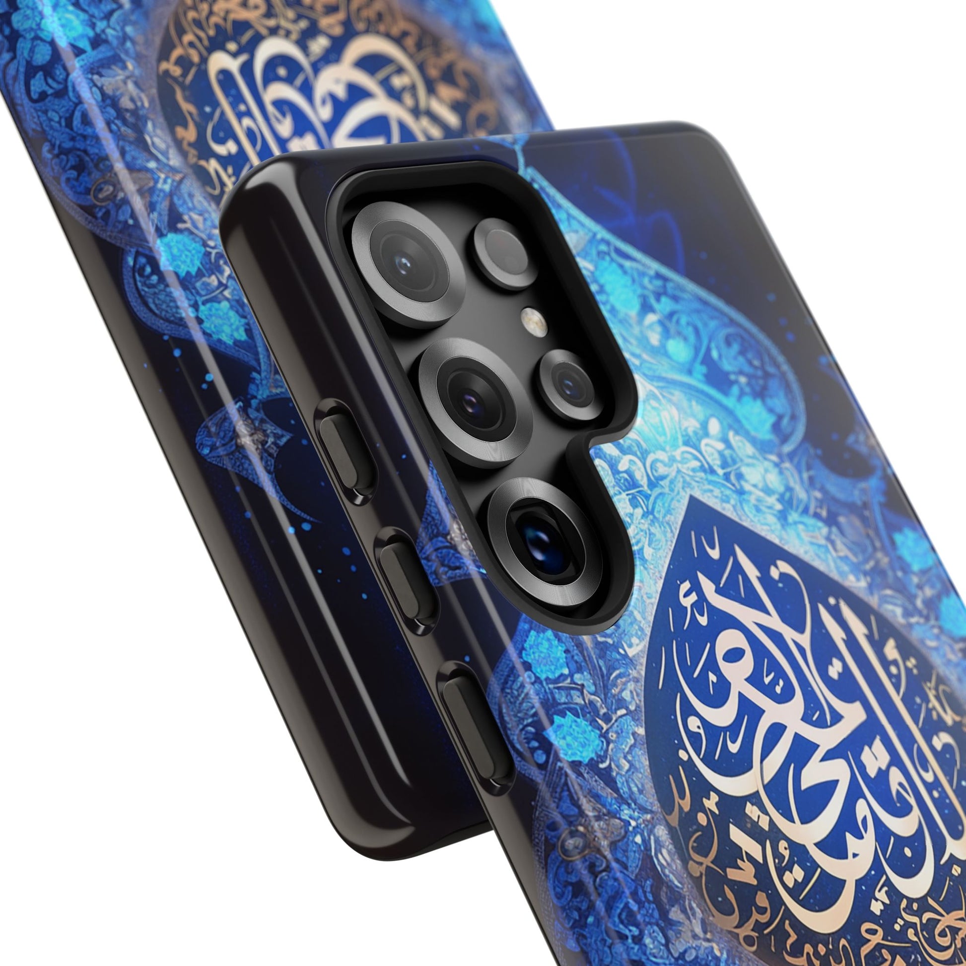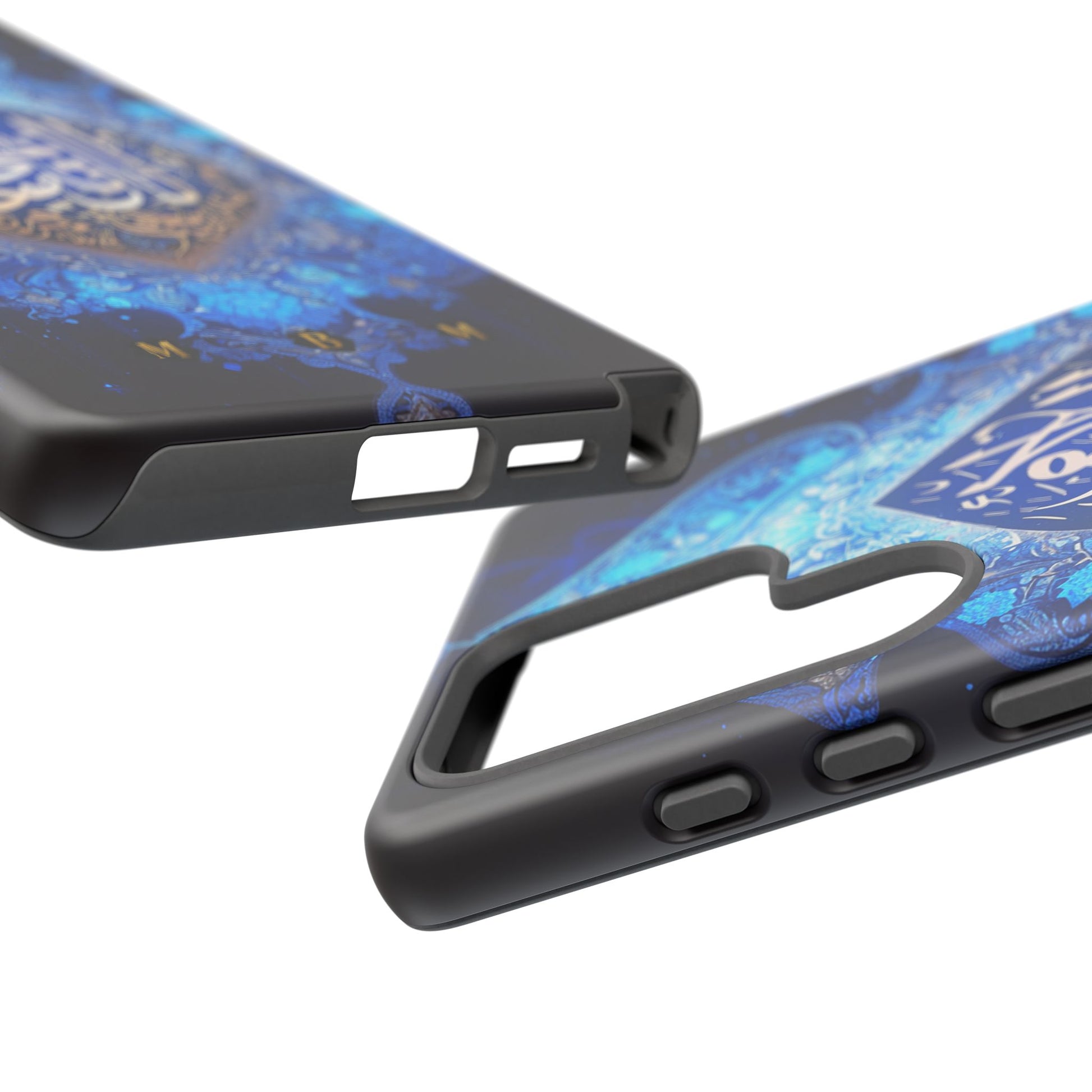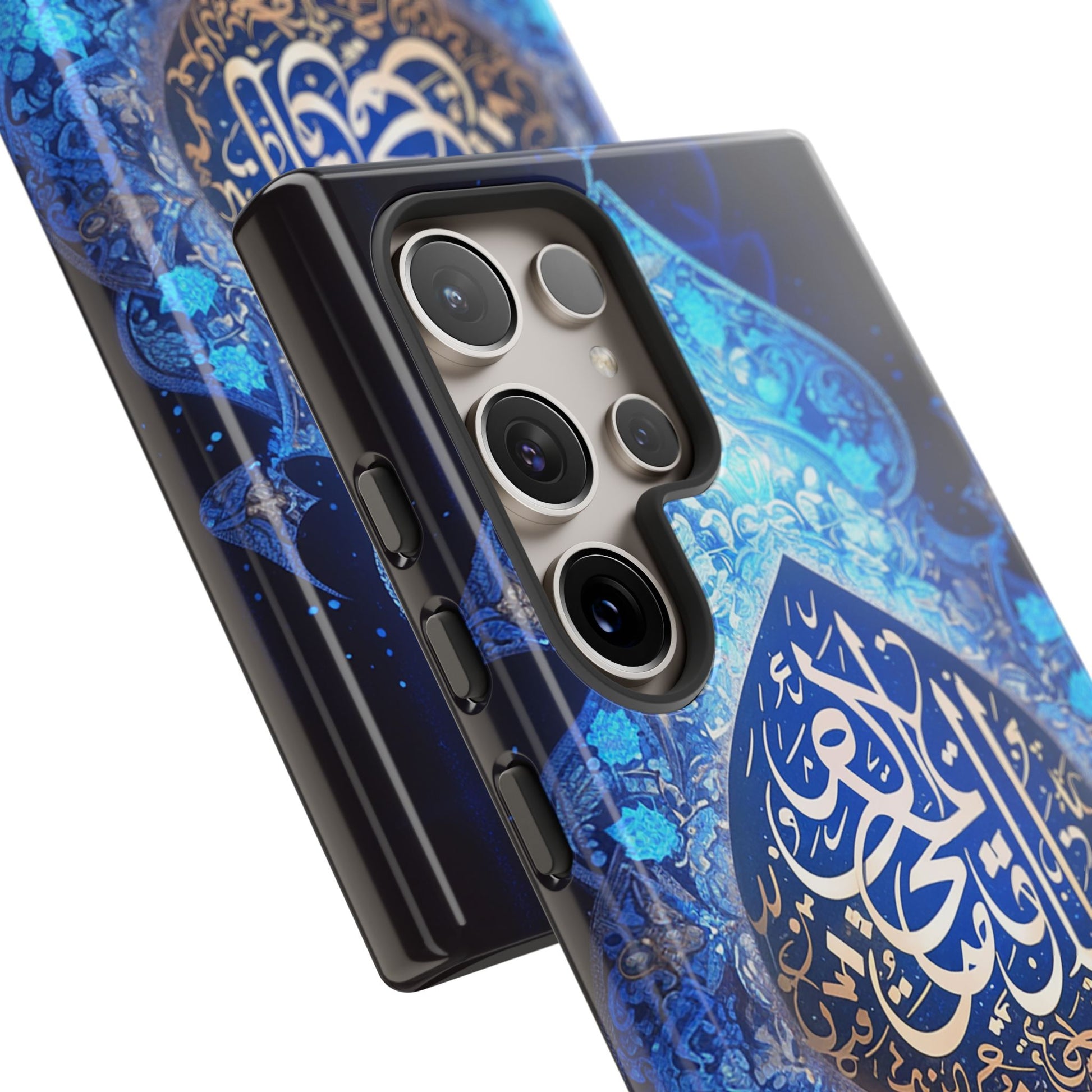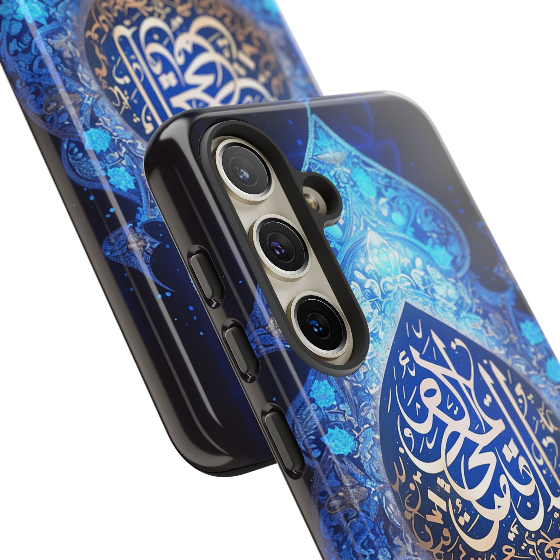 Dive into the magic of Arab culture with our one-of-a-kind phone case! Featuring a mesmerizing blue teardrop gnathic with a glowing aura, this case is like holding a piece of enchanted art. The silver, exotic script in the center adds a touch of mystery—perfect for those who love a good story. Protect your phone in style and let your case do the talking (in a language no one else will understand)! Ideal for culture buffs and fun-seekers, this case is a delightful blend of tradition and whimsy. Get ready to turn heads and start conversations with your new favorite accessory!