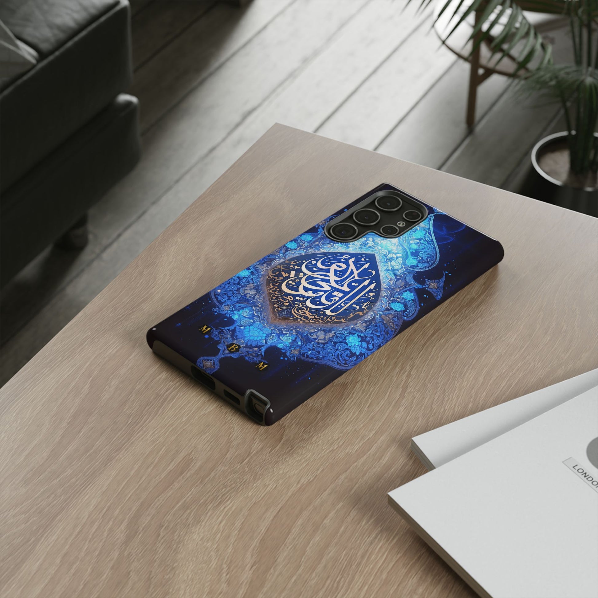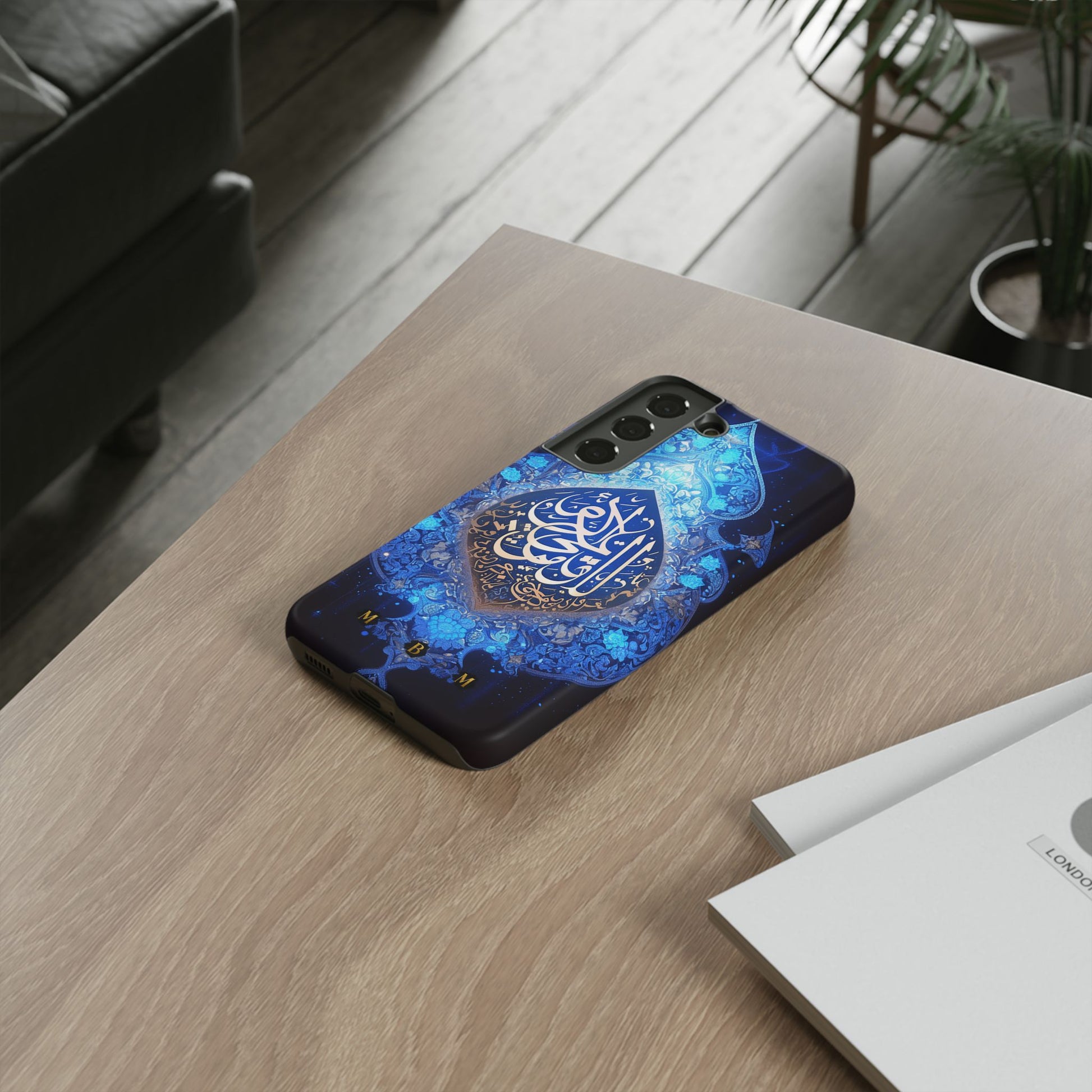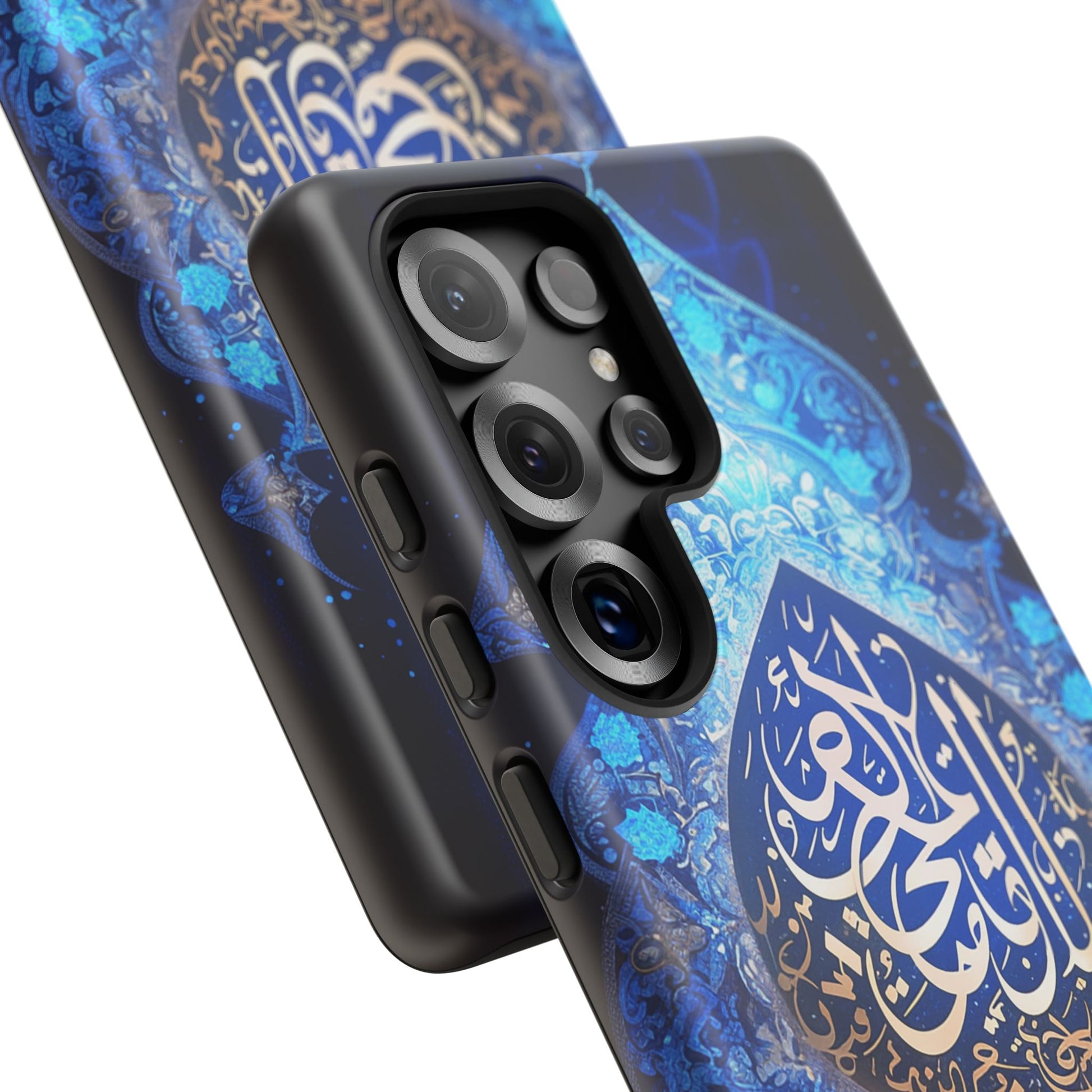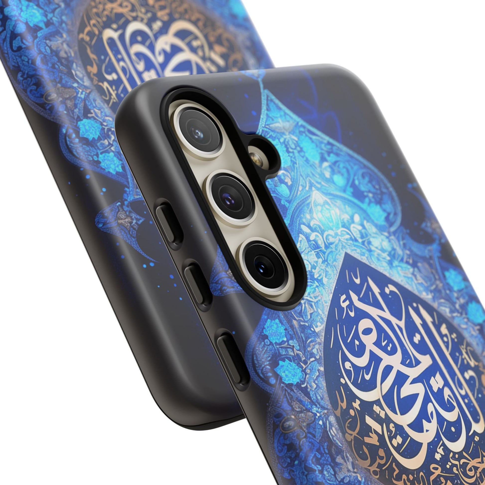 Dive into the magic of Arab culture with our one-of-a-kind phone case! Featuring a mesmerizing blue teardrop gnathic with a glowing aura, this case is like holding a piece of enchanted art. The silver, exotic script in the center adds a touch of mystery—perfect for those who love a good story. Protect your phone in style and let your case do the talking (in a language no one else will understand)! Ideal for culture buffs and fun-seekers, this case is a delightful blend of tradition and whimsy. Get ready to turn heads and start conversations with your new favorite accessory!