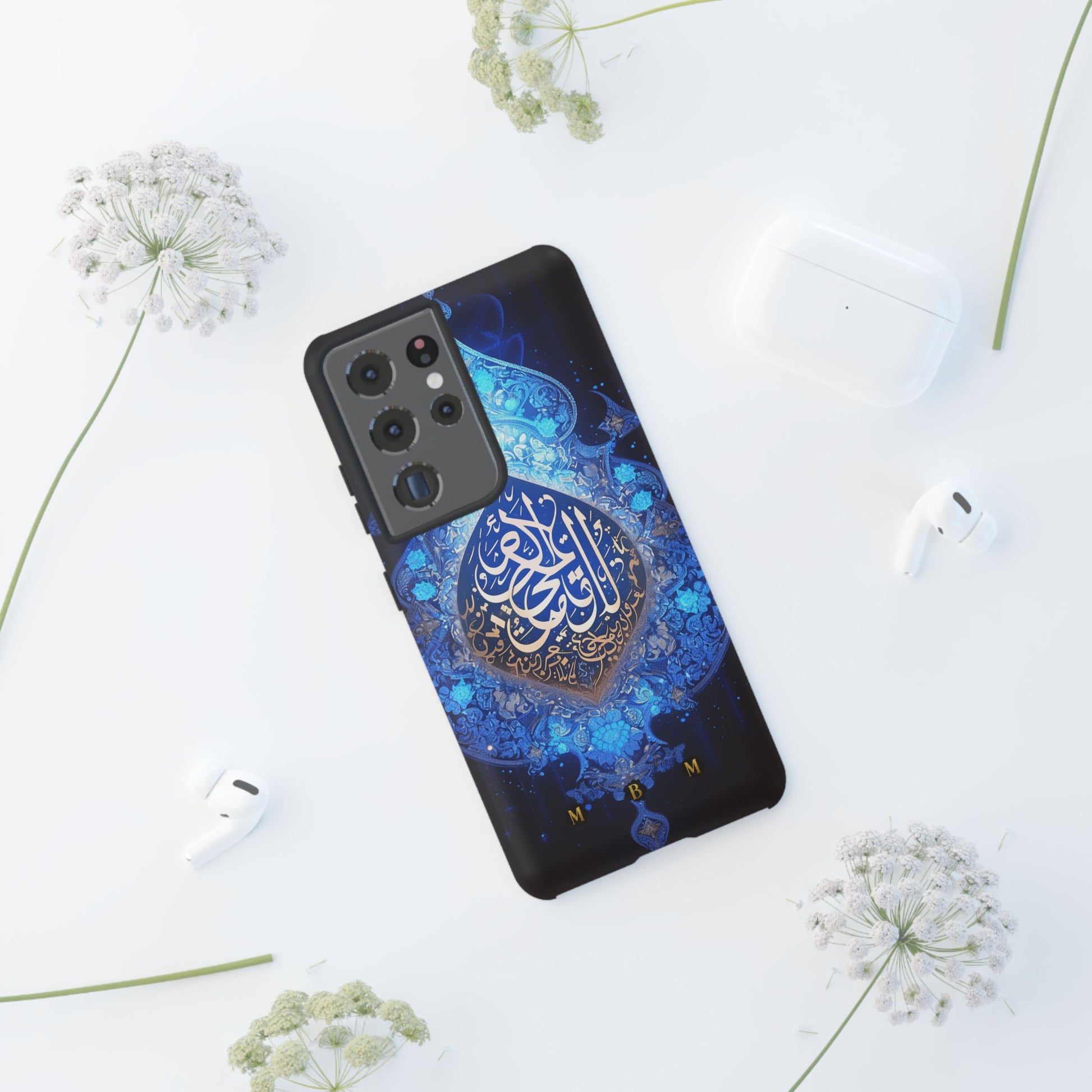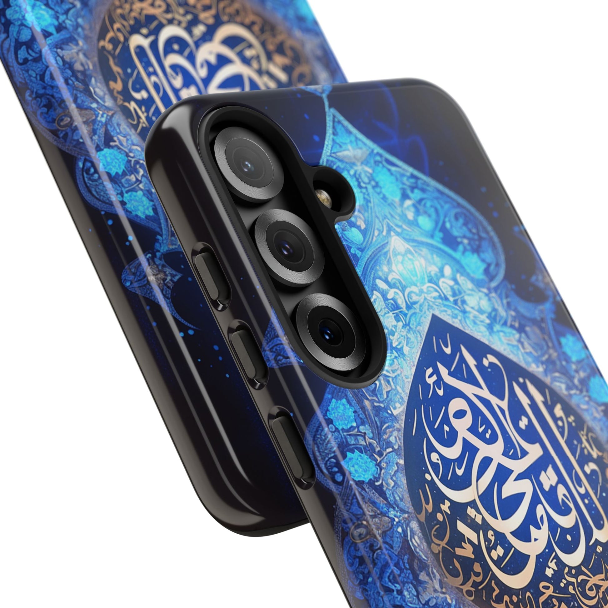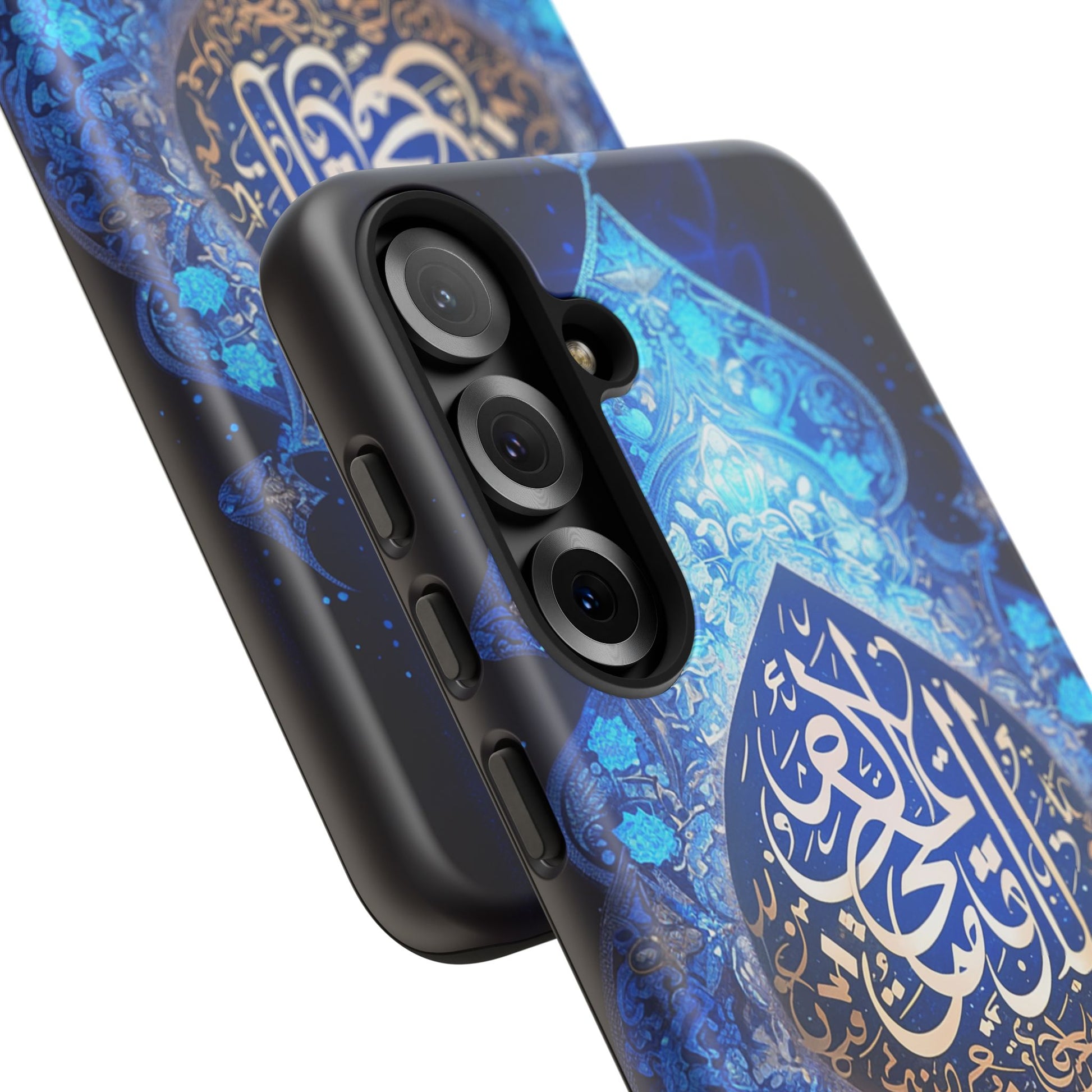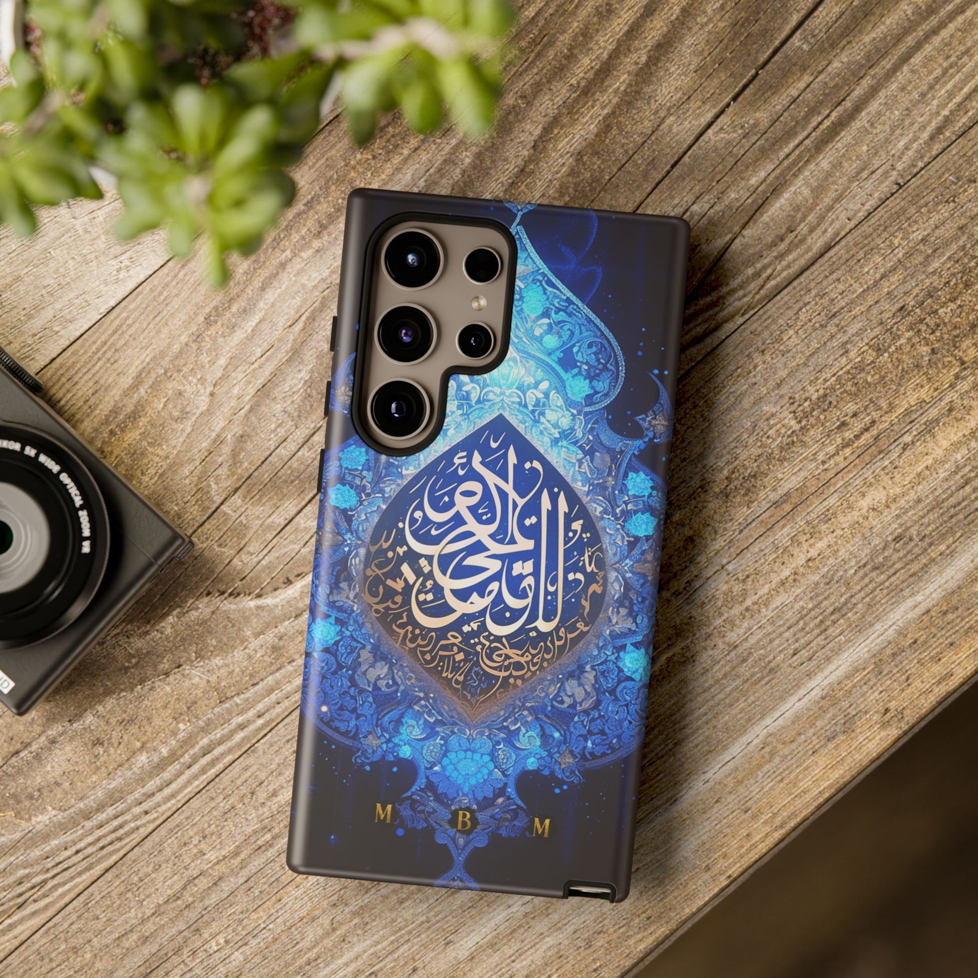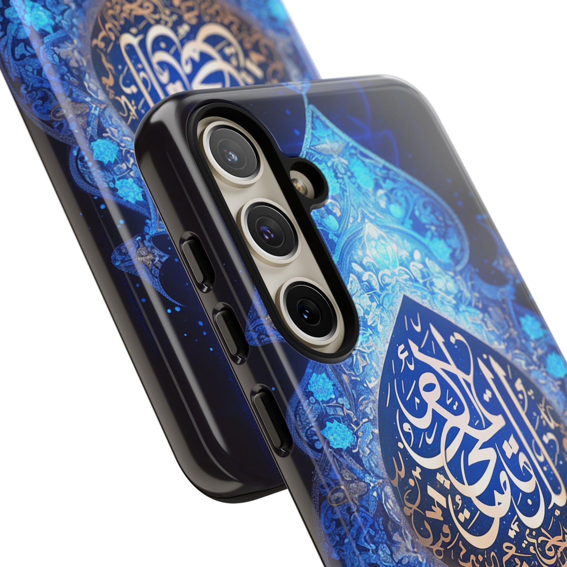 Dive into the magic of Arab culture with our one-of-a-kind phone case! Featuring a mesmerizing blue teardrop gnathic with a glowing aura, this case is like holding a piece of enchanted art. The silver, exotic script in the center adds a touch of mystery—perfect for those who love a good story. Protect your phone in style and let your case do the talking (in a language no one else will understand)! Ideal for culture buffs and fun-seekers, this case is a delightful blend of tradition and whimsy. Get ready to turn heads and start conversations with your new favorite accessory!