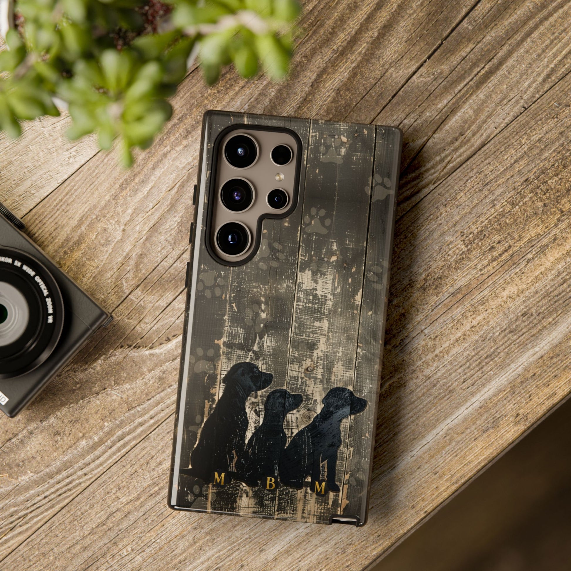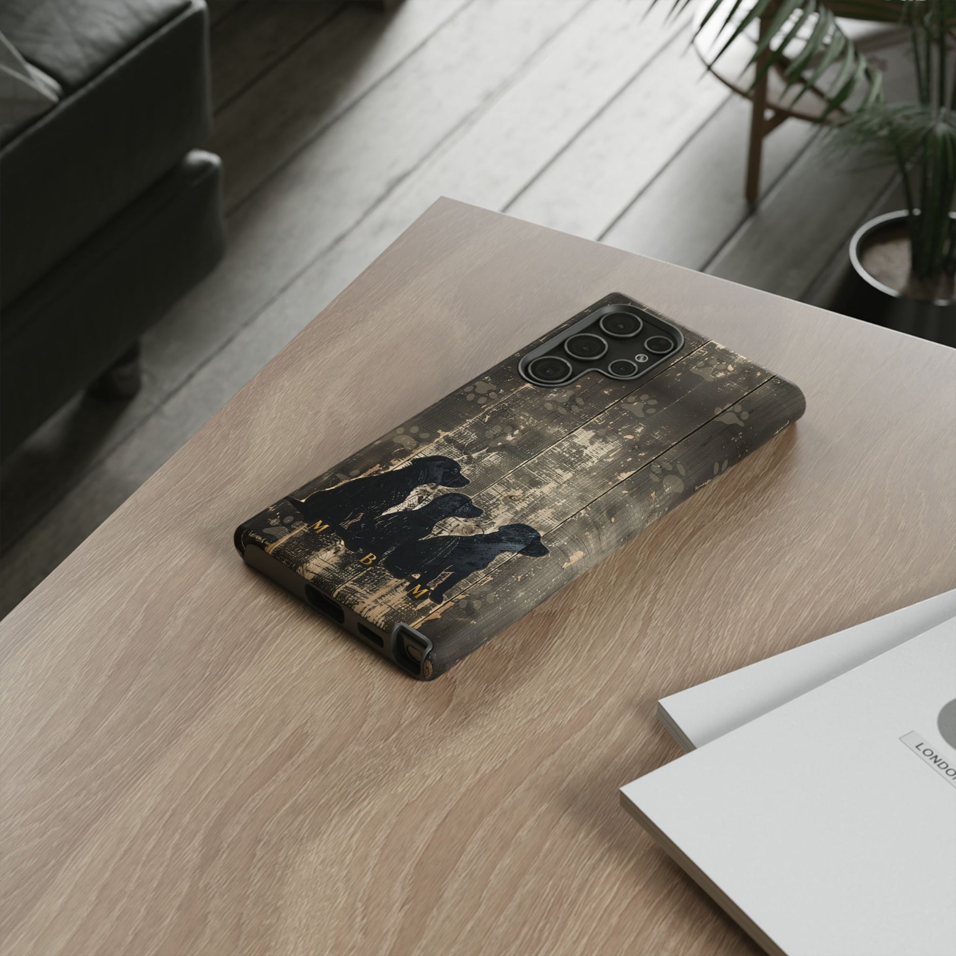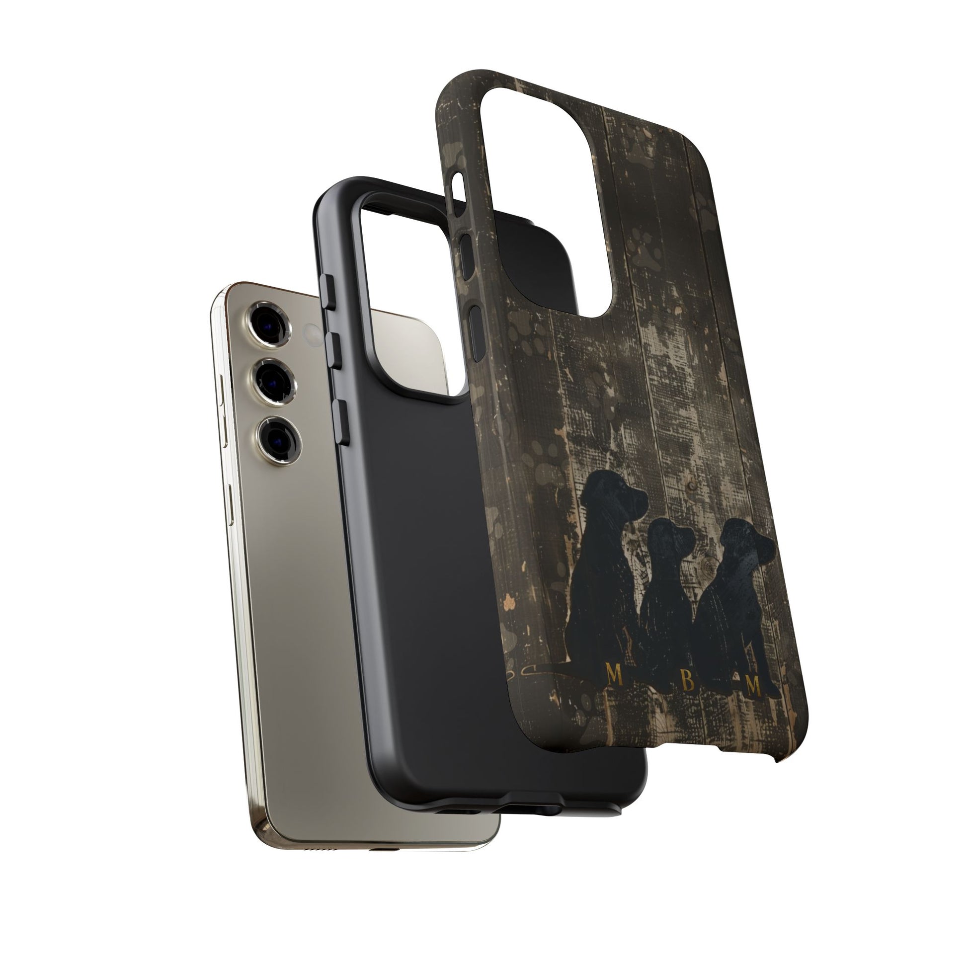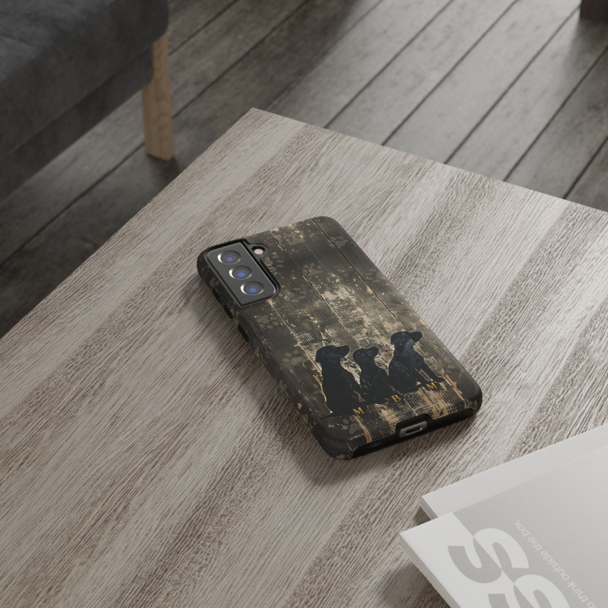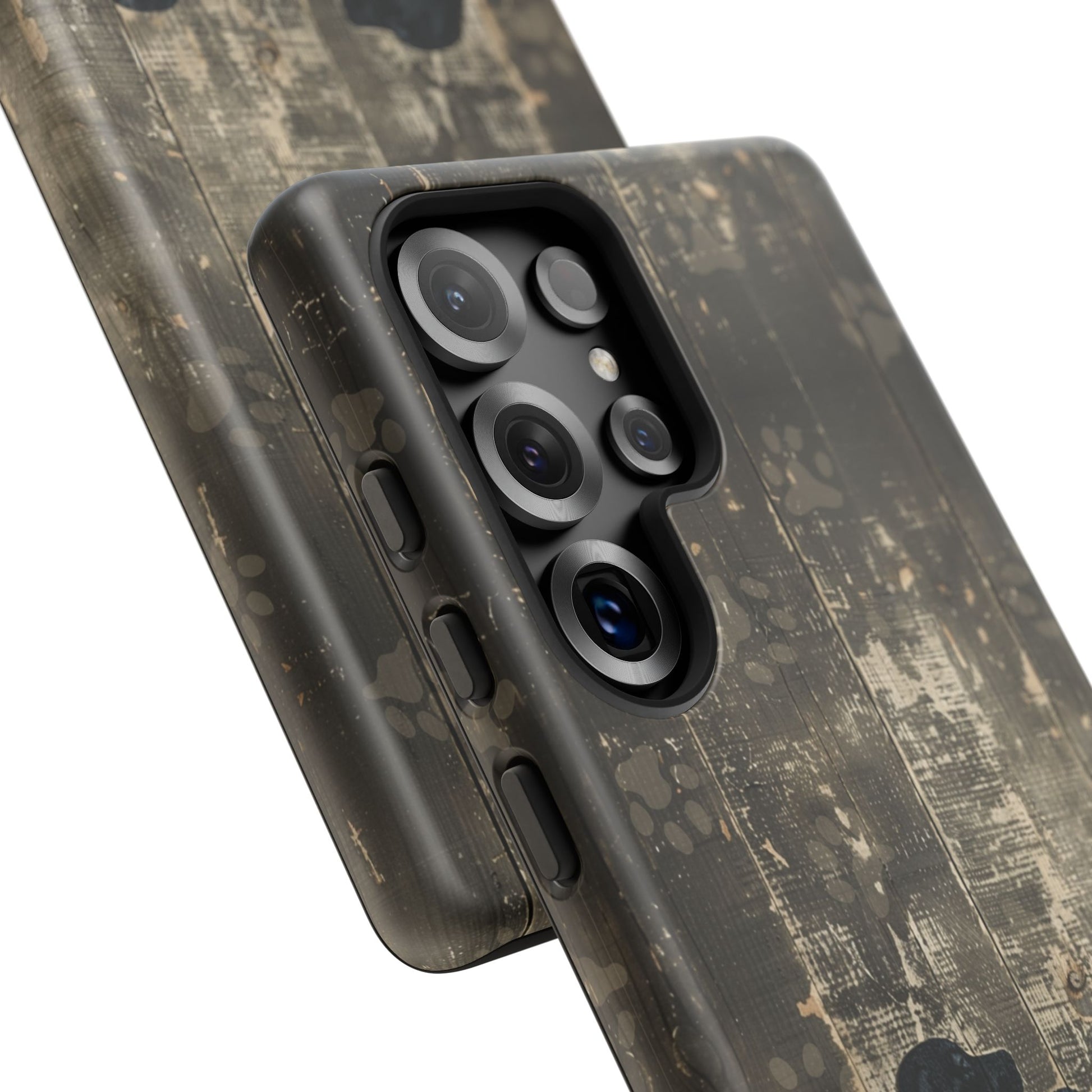 Bark up the right tree with the BarkWood Phone Case! This pawsome case features a graphic of dark distressed wood planks, giving it a rustic, outdoorsy feel. But that’s not all—there are three dog silhouettes sitting in side view, adding a touch of canine charm. To top it off, adorable light brown puppy prints are scattered haphazardly across the front, making it a delightful treat for dog lovers. This case isn’t just a pretty face; it’s built to protect your phone from all those ruff tumbles. Fetch yourself the BarkWood Phone Case and let your phone enjoy a howlin’ good time!