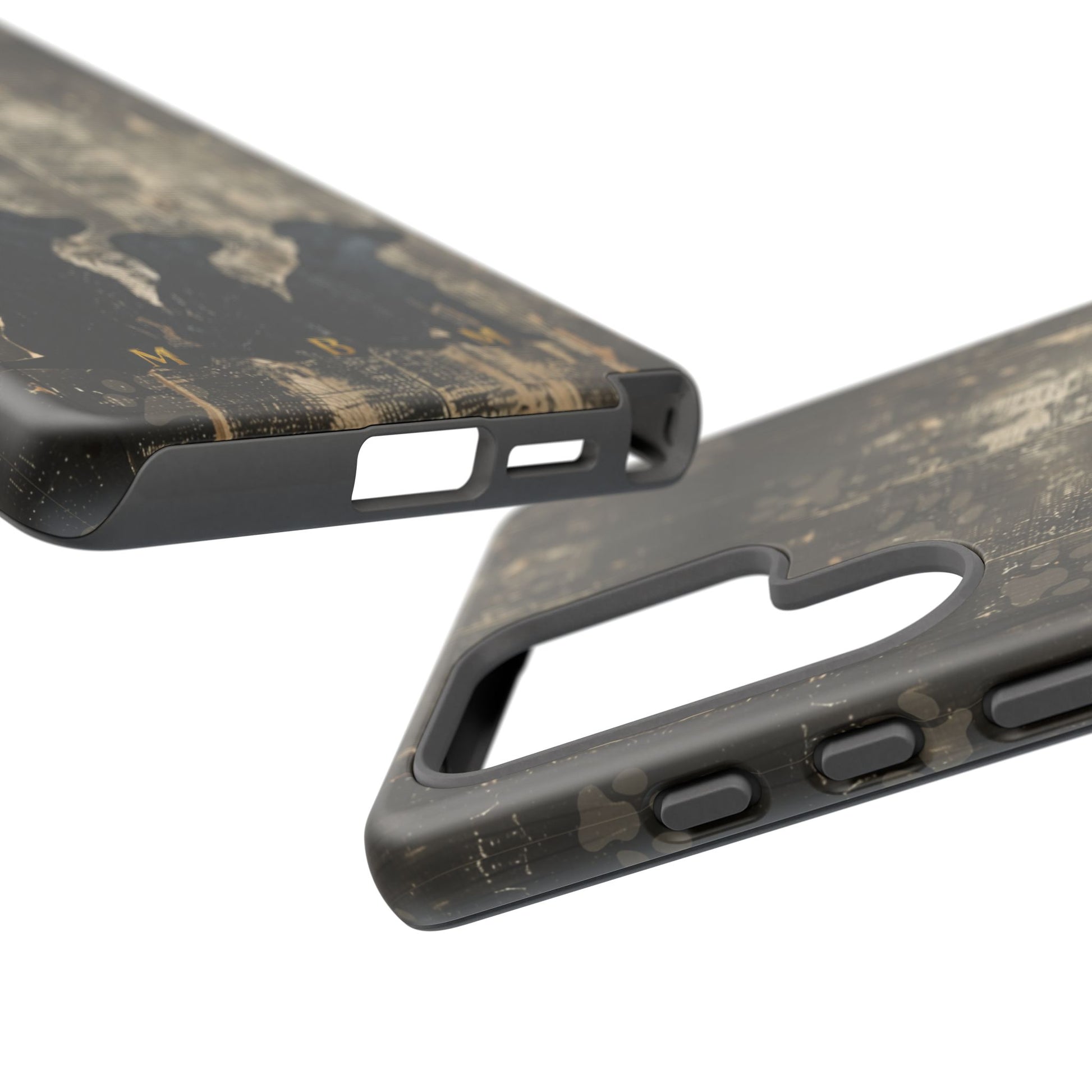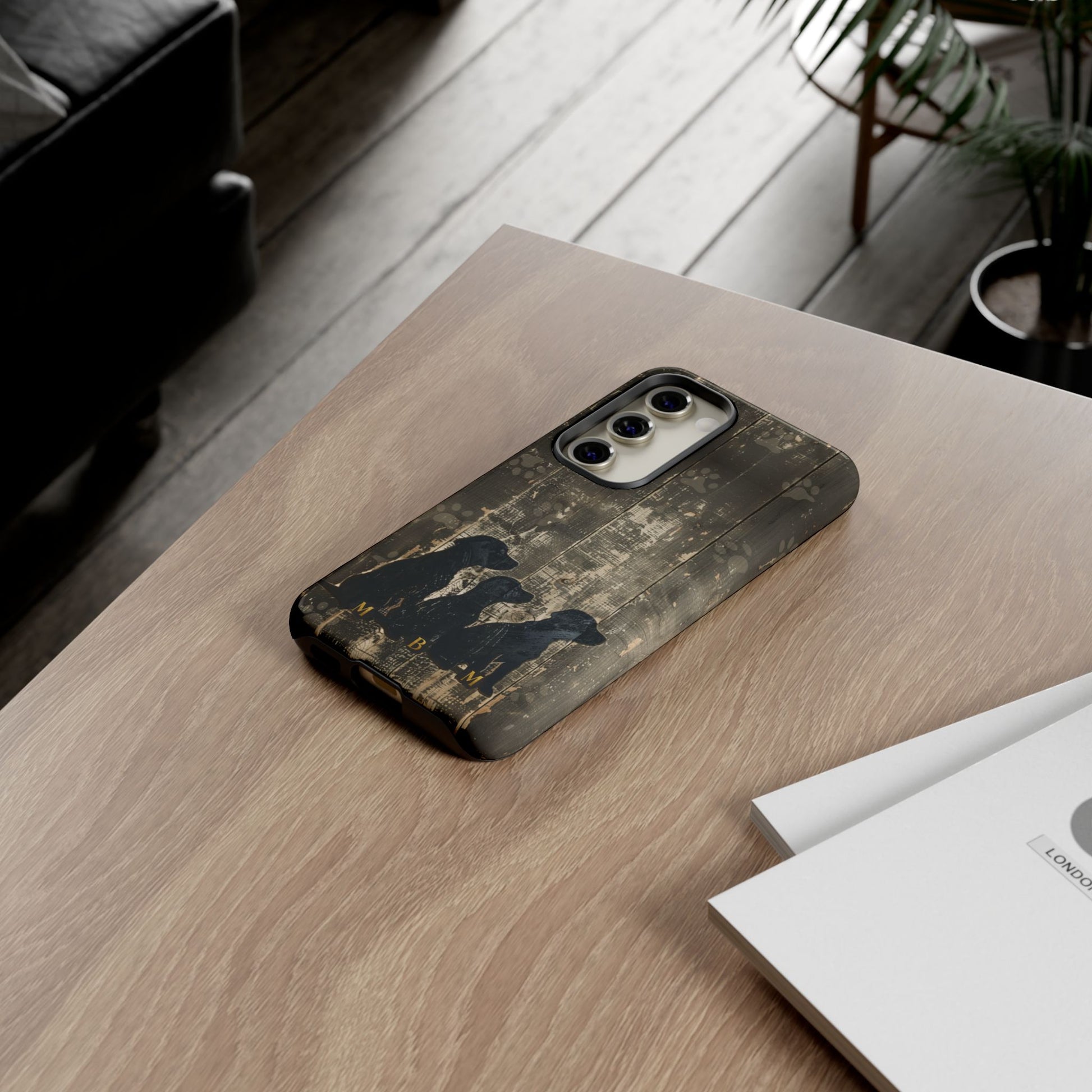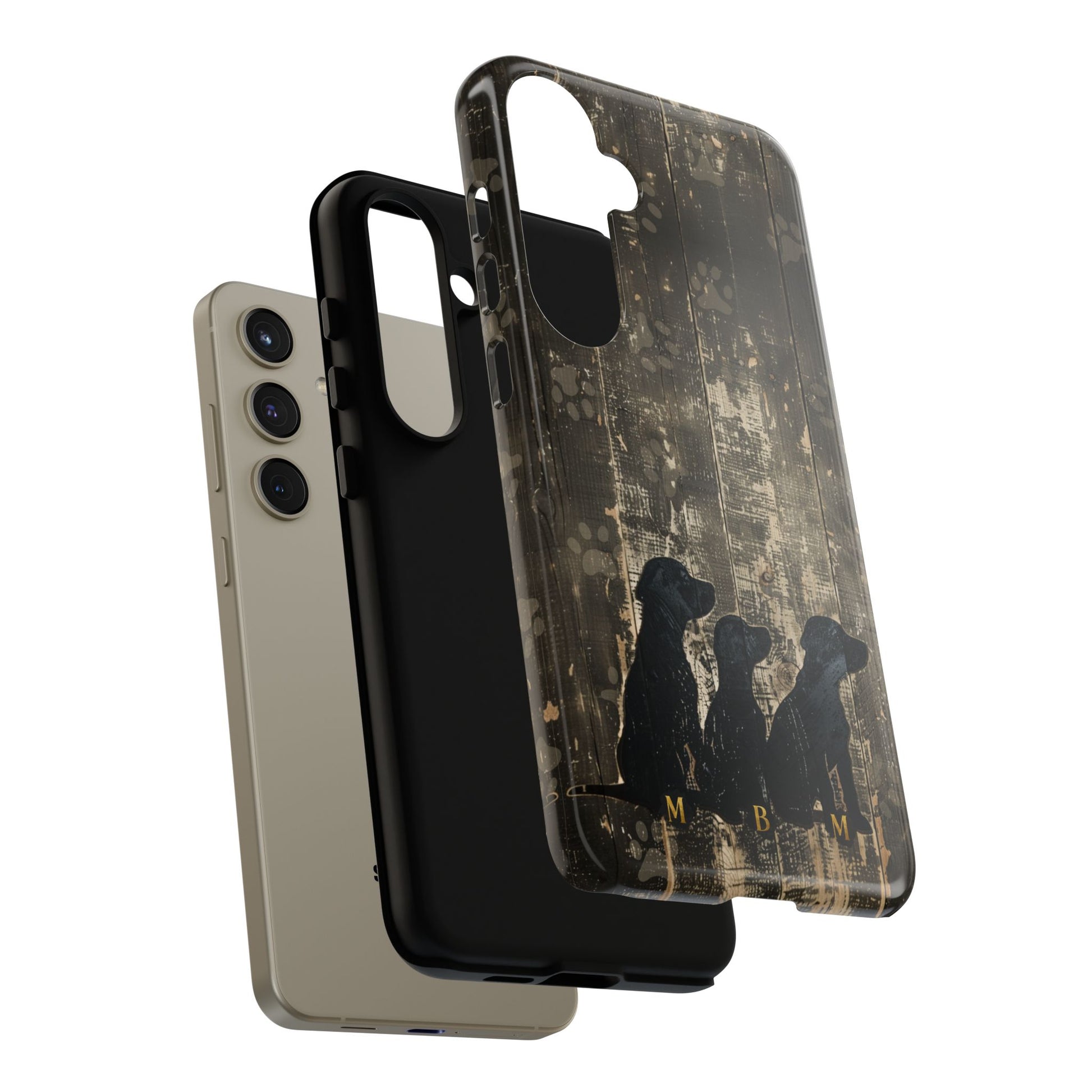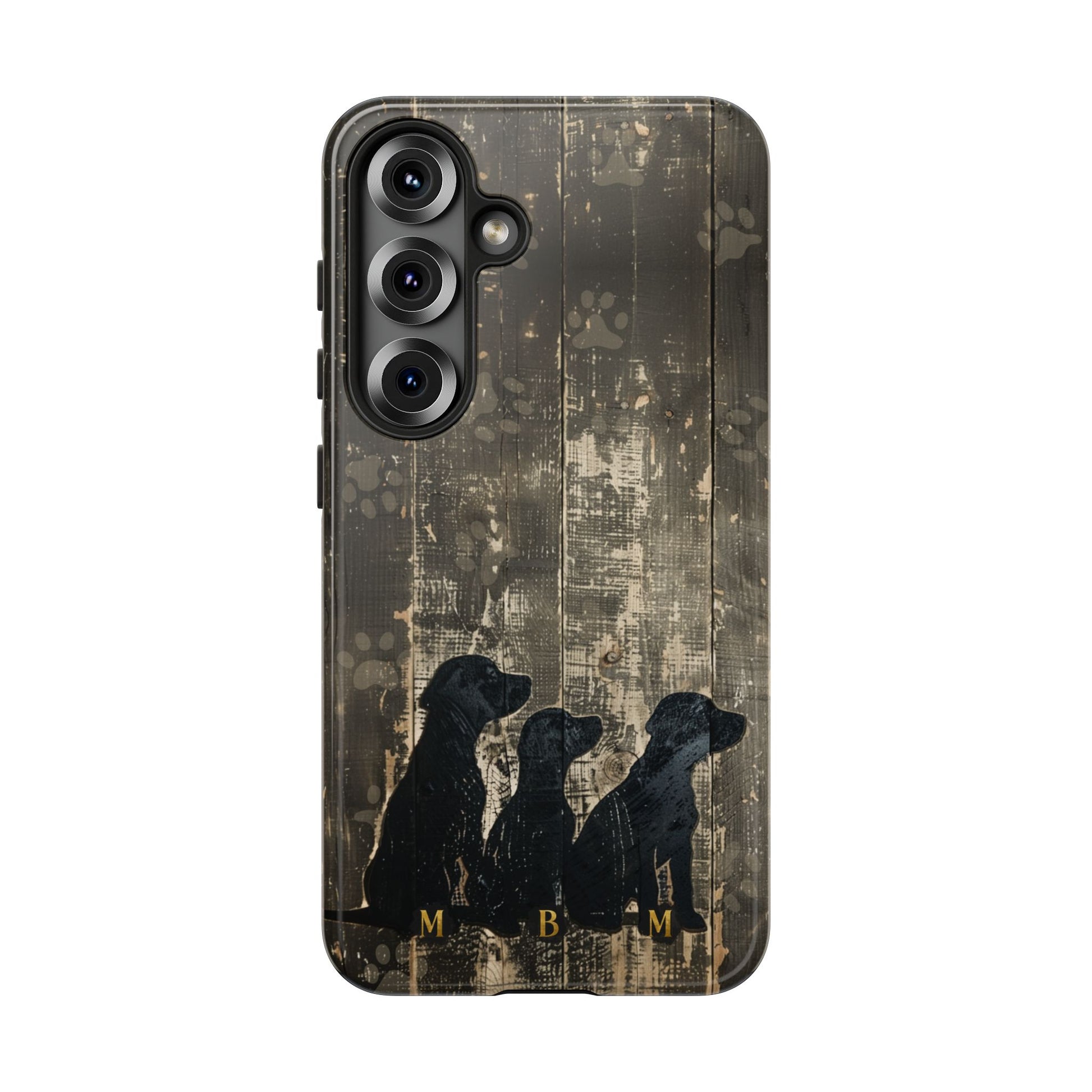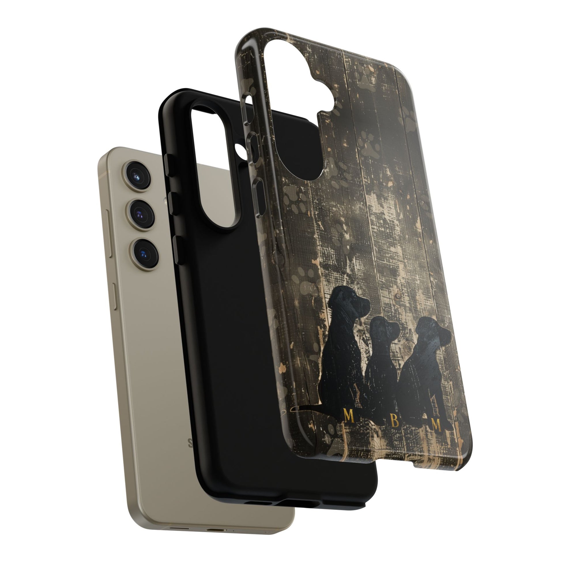 Bark up the right tree with the BarkWood Phone Case! This pawsome case features a graphic of dark distressed wood planks, giving it a rustic, outdoorsy feel. But that’s not all—there are three dog silhouettes sitting in side view, adding a touch of canine charm. To top it off, adorable light brown puppy prints are scattered haphazardly across the front, making it a delightful treat for dog lovers. This case isn’t just a pretty face; it’s built to protect your phone from all those ruff tumbles. Fetch yourself the BarkWood Phone Case and let your phone enjoy a howlin’ good time!