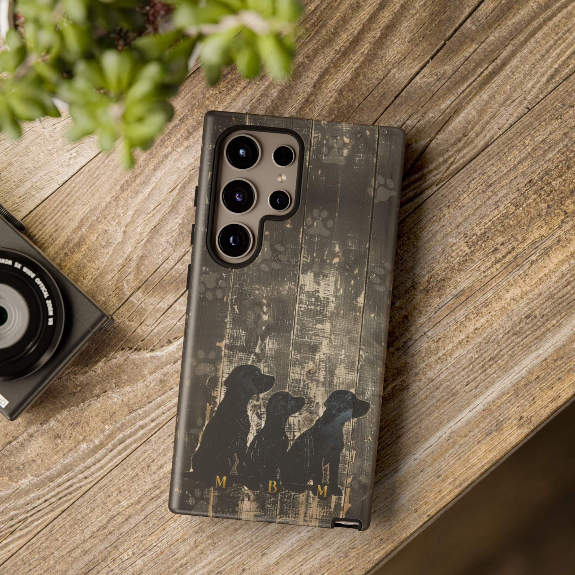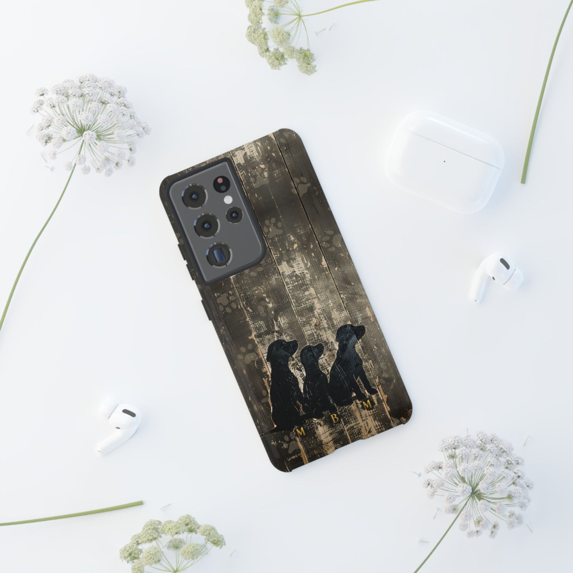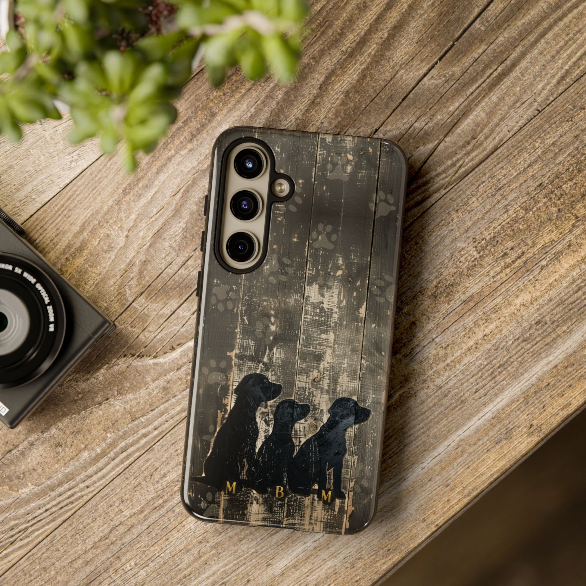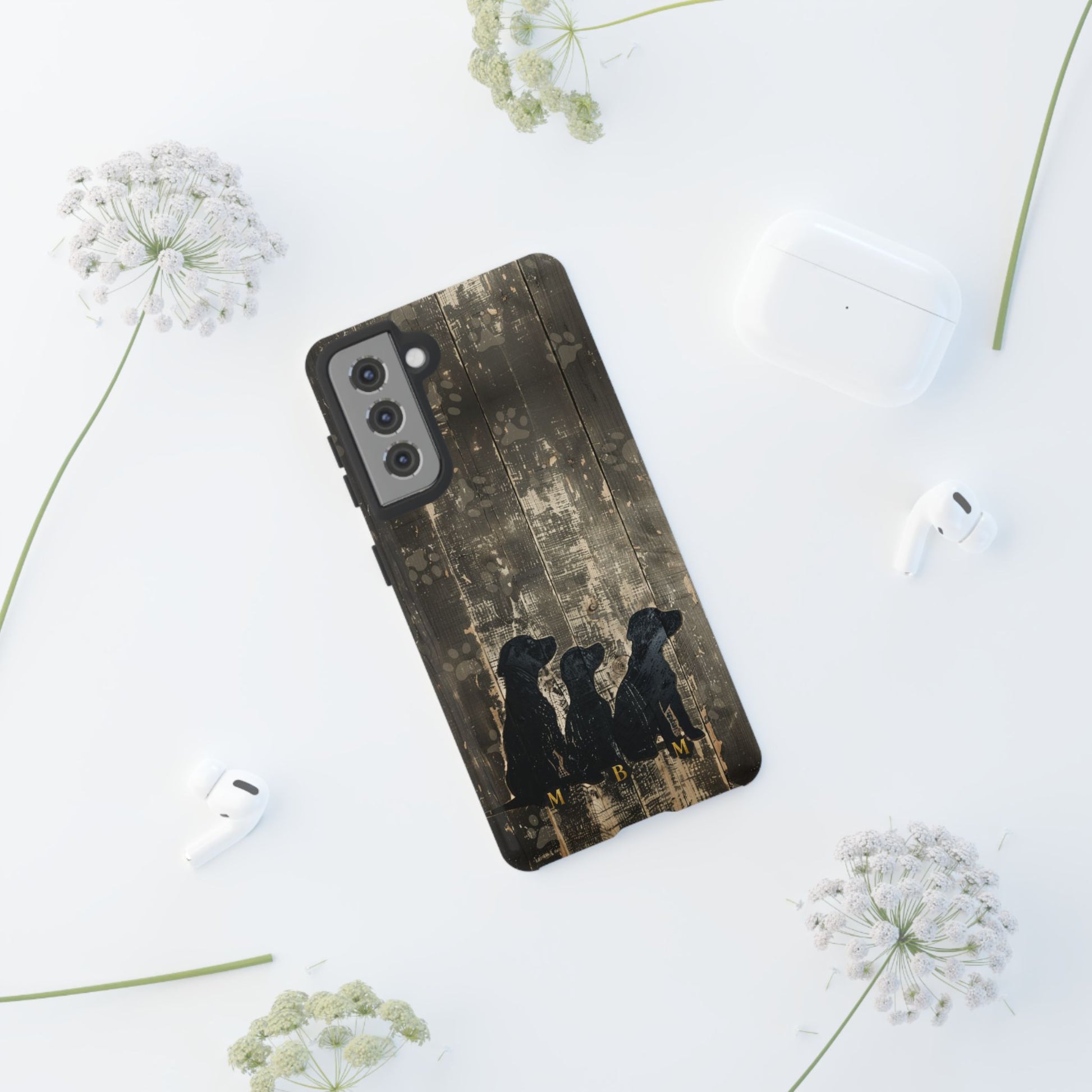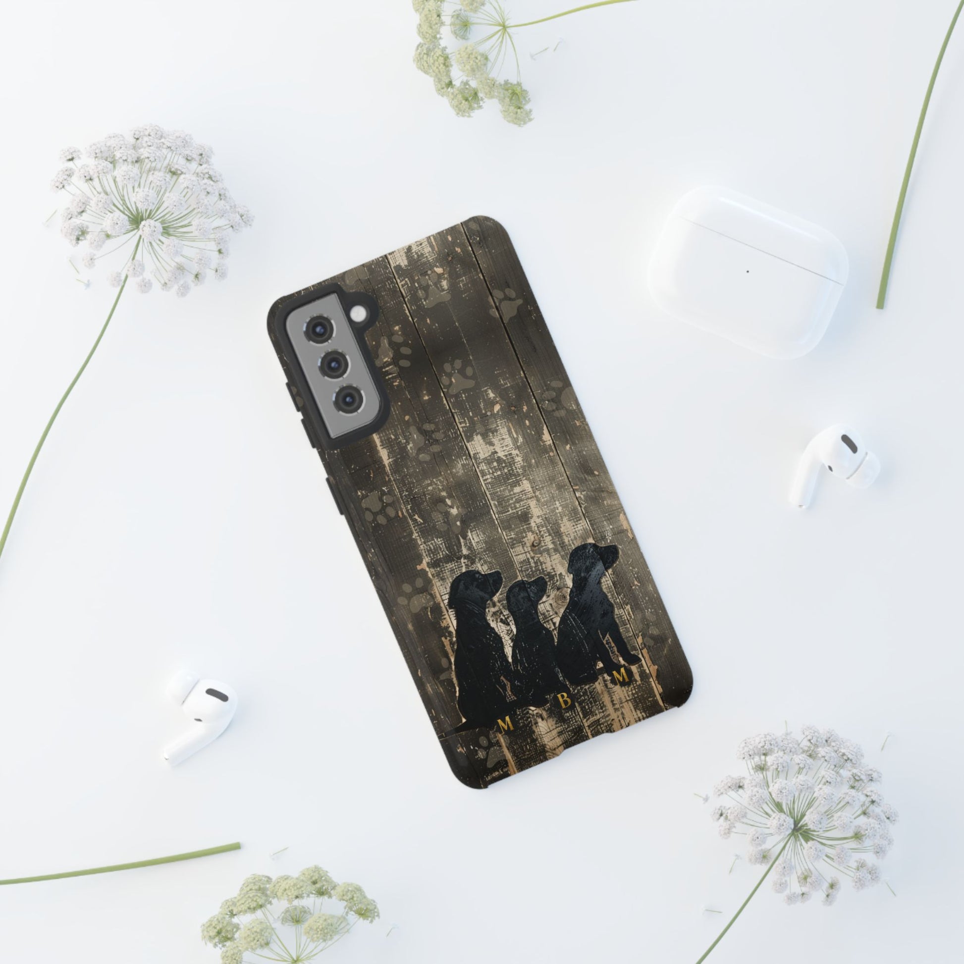 Bark up the right tree with the BarkWood Phone Case! This pawsome case features a graphic of dark distressed wood planks, giving it a rustic, outdoorsy feel. But that’s not all—there are three dog silhouettes sitting in side view, adding a touch of canine charm. To top it off, adorable light brown puppy prints are scattered haphazardly across the front, making it a delightful treat for dog lovers. This case isn’t just a pretty face; it’s built to protect your phone from all those ruff tumbles. Fetch yourself the BarkWood Phone Case and let your phone enjoy a howlin’ good time!