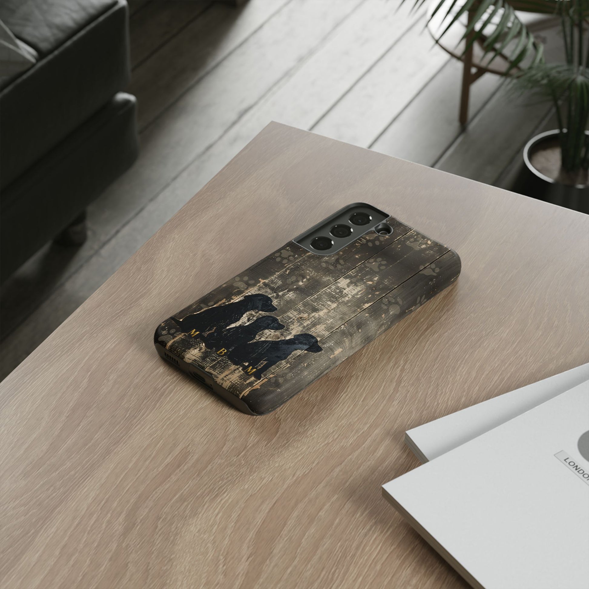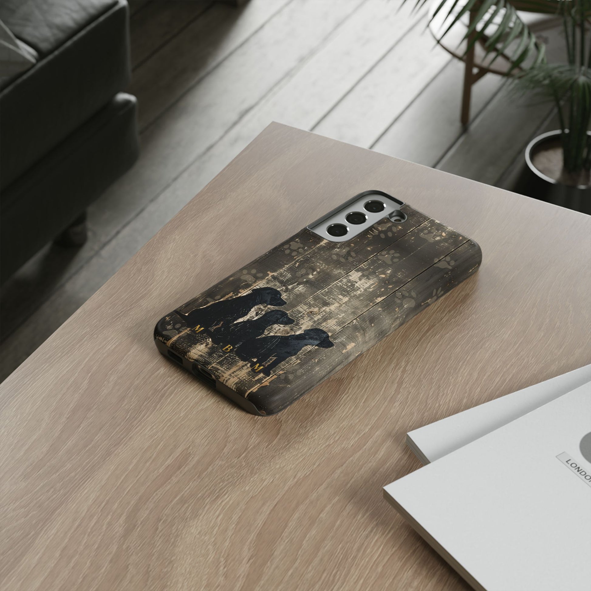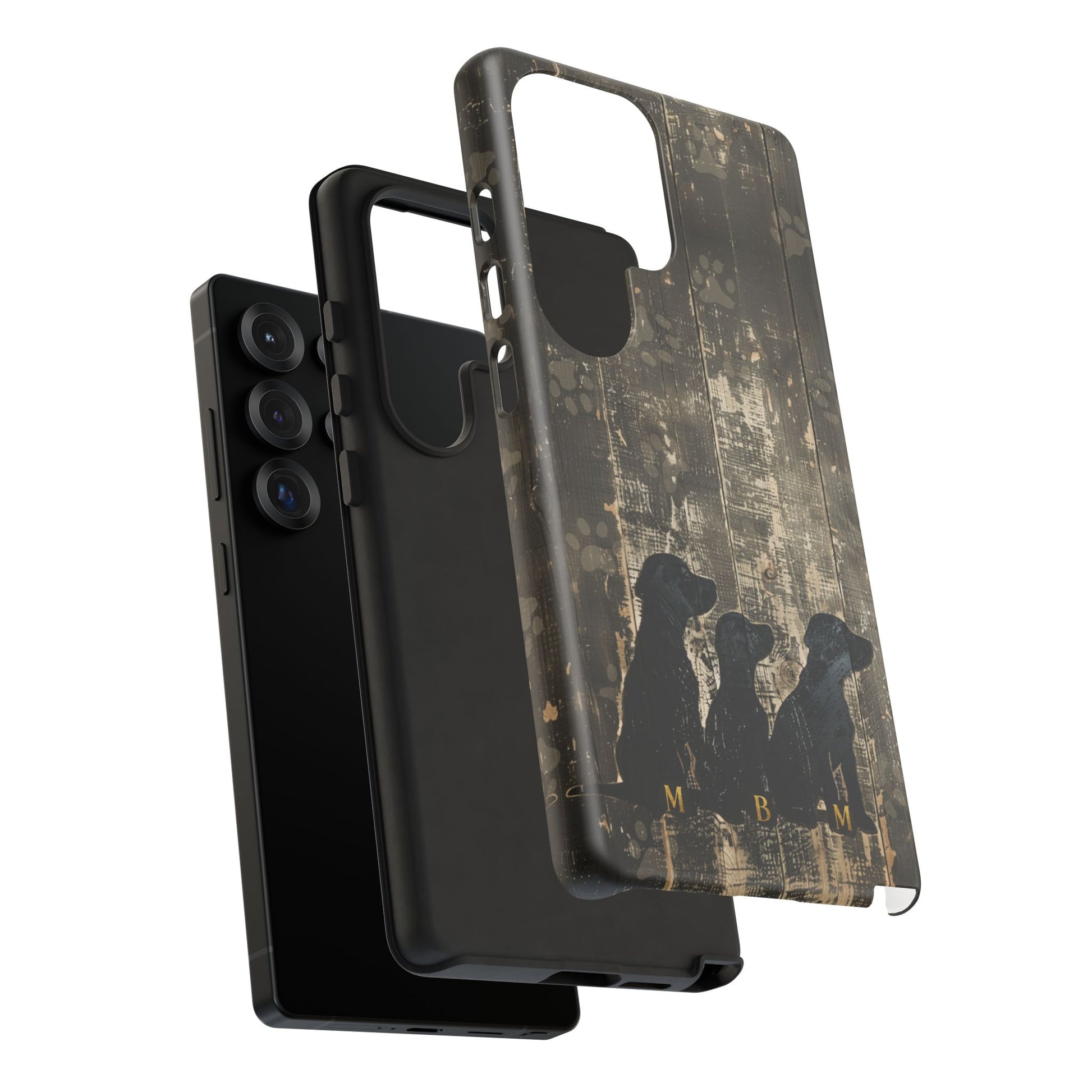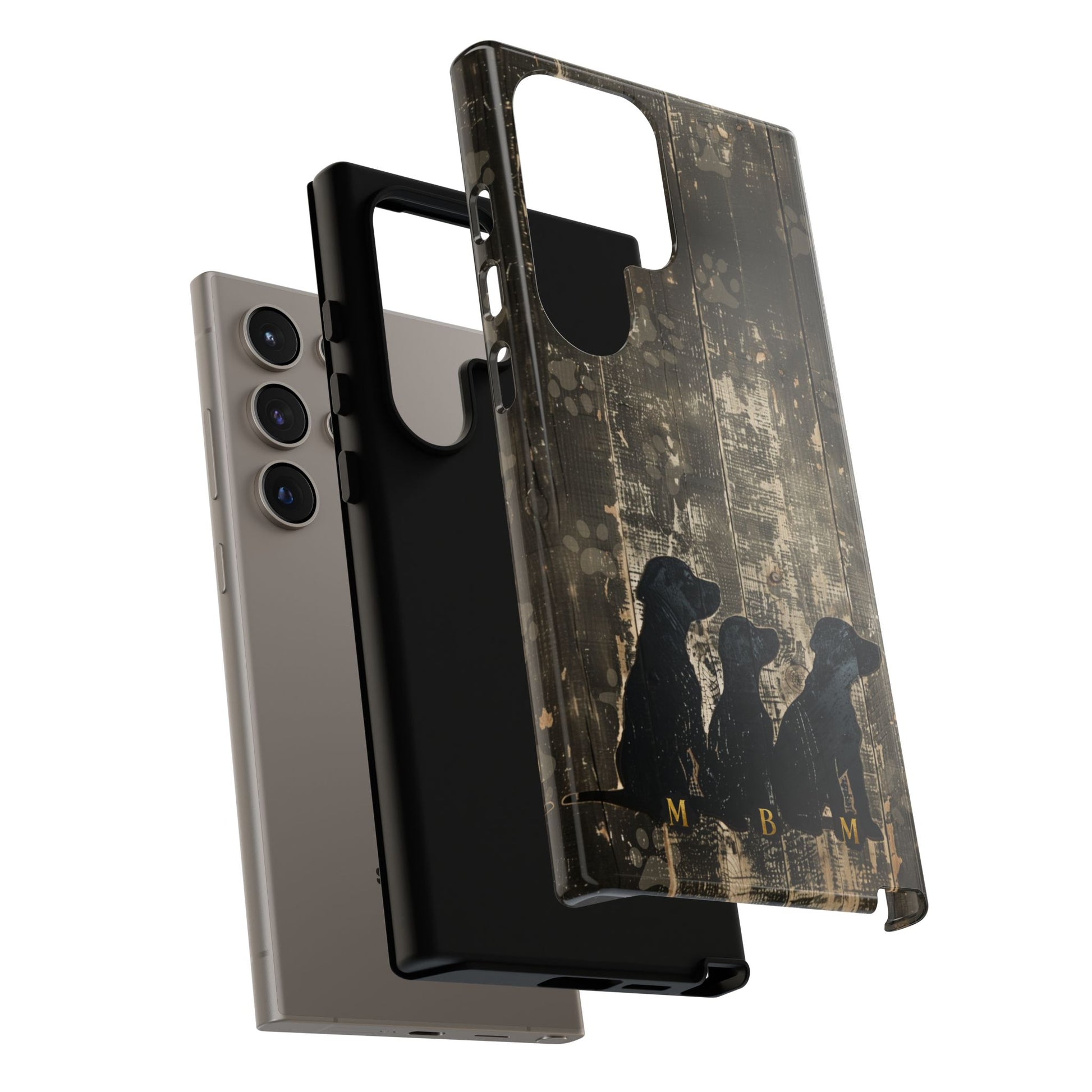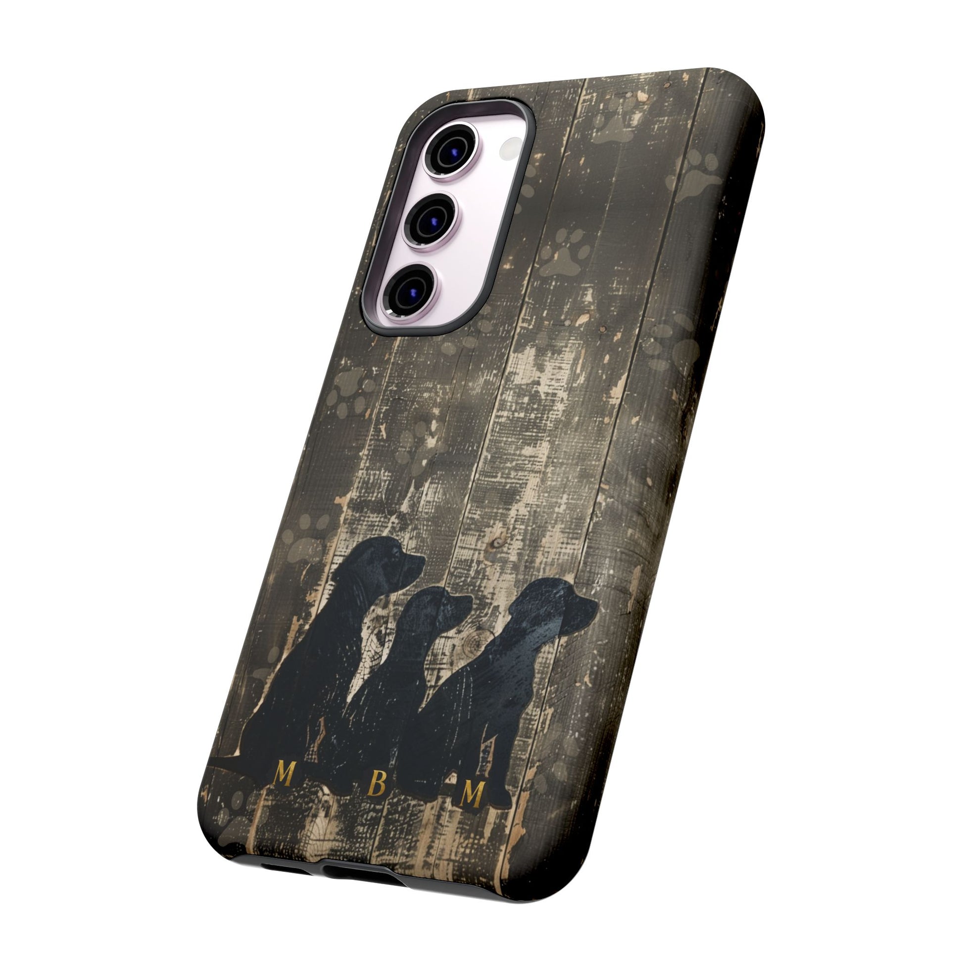 Bark up the right tree with the BarkWood Phone Case! This pawsome case features a graphic of dark distressed wood planks, giving it a rustic, outdoorsy feel. But that’s not all—there are three dog silhouettes sitting in side view, adding a touch of canine charm. To top it off, adorable light brown puppy prints are scattered haphazardly across the front, making it a delightful treat for dog lovers. This case isn’t just a pretty face; it’s built to protect your phone from all those ruff tumbles. Fetch yourself the BarkWood Phone Case and let your phone enjoy a howlin’ good time!
