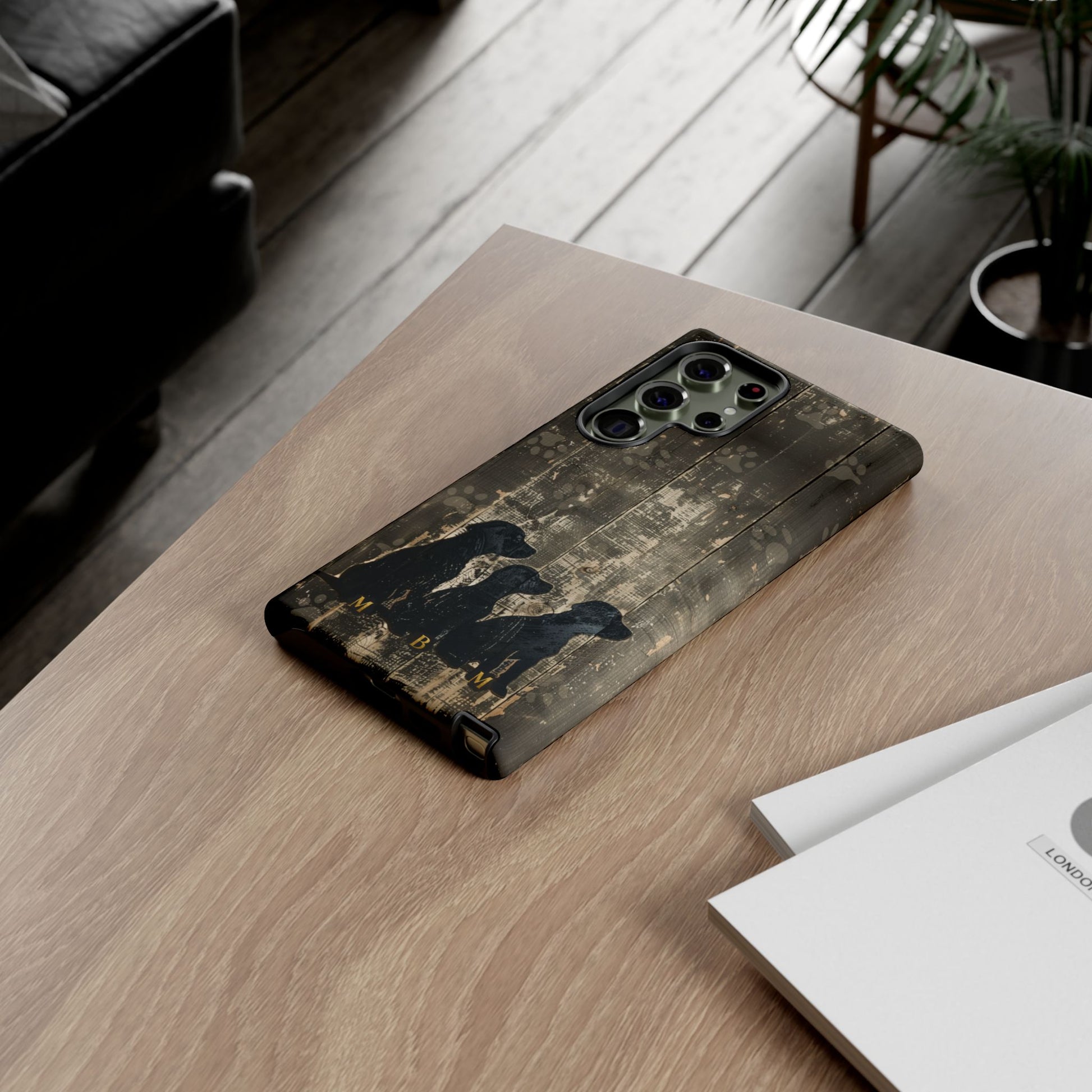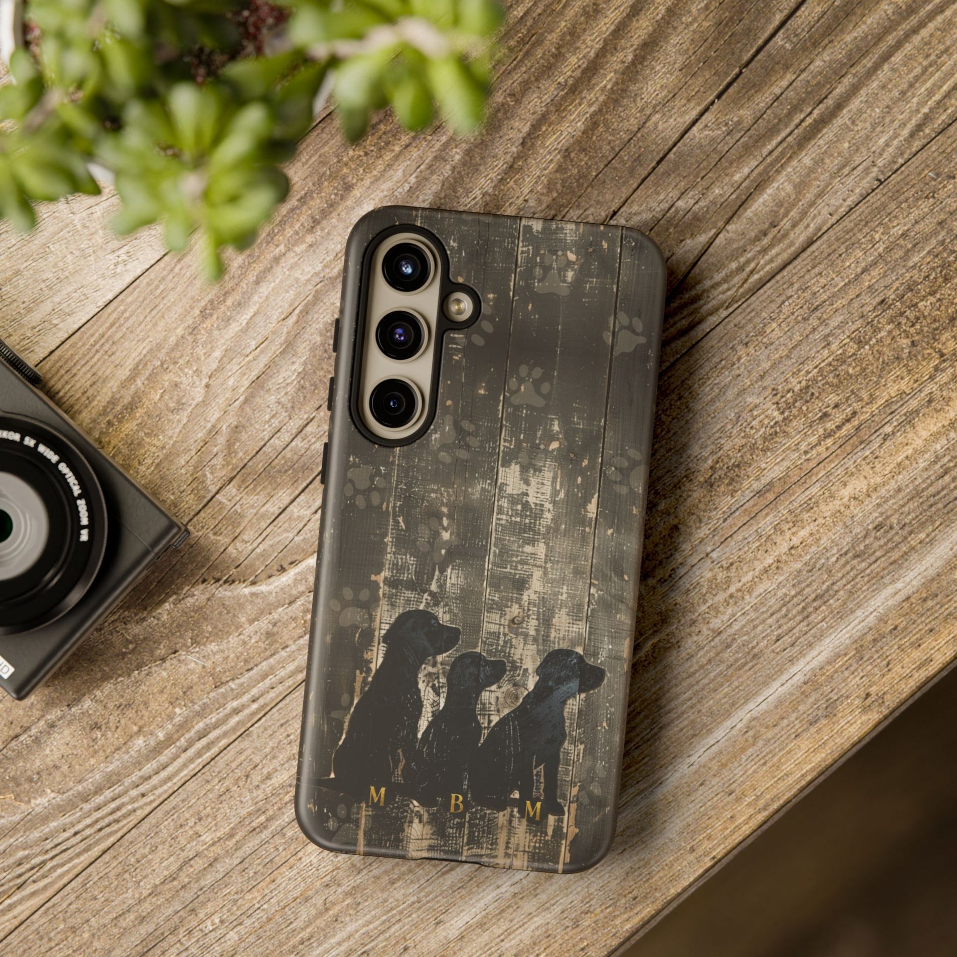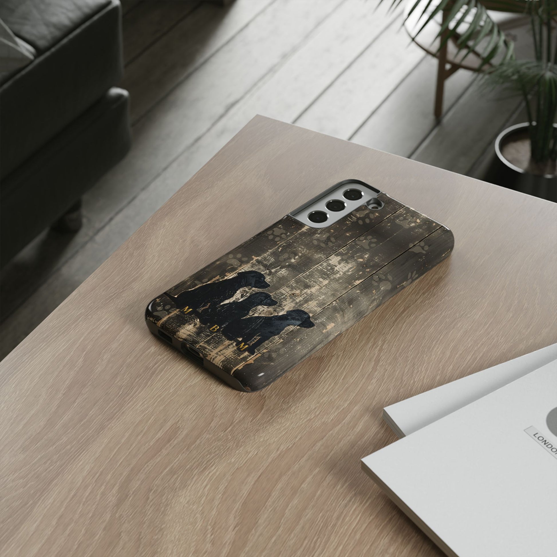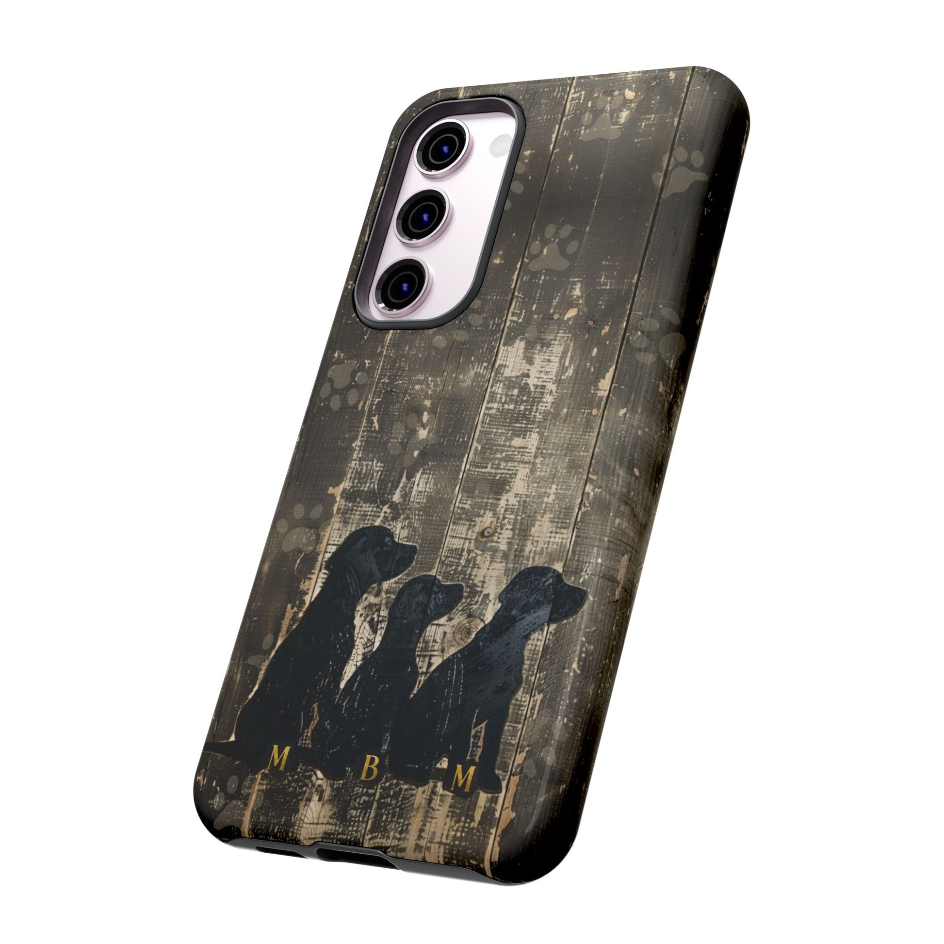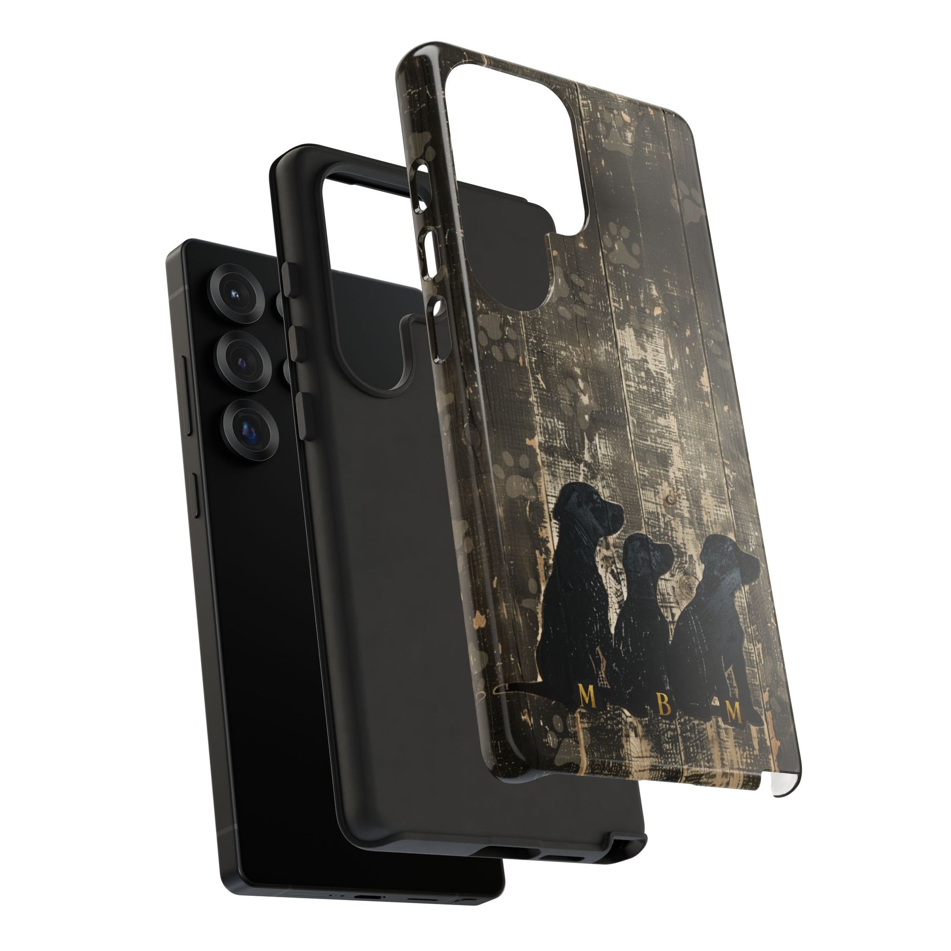 Bark up the right tree with the BarkWood Phone Case! This pawsome case features a graphic of dark distressed wood planks, giving it a rustic, outdoorsy feel. But that’s not all—there are three dog silhouettes sitting in side view, adding a touch of canine charm. To top it off, adorable light brown puppy prints are scattered haphazardly across the front, making it a delightful treat for dog lovers. This case isn’t just a pretty face; it’s built to protect your phone from all those ruff tumbles. Fetch yourself the BarkWood Phone Case and let your phone enjoy a howlin’ good time!