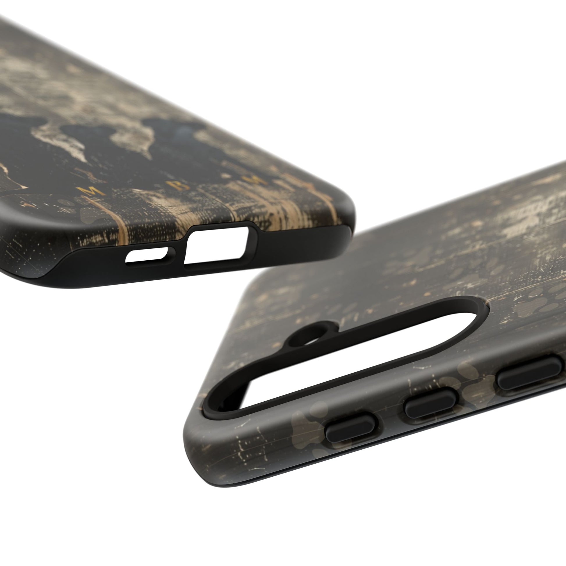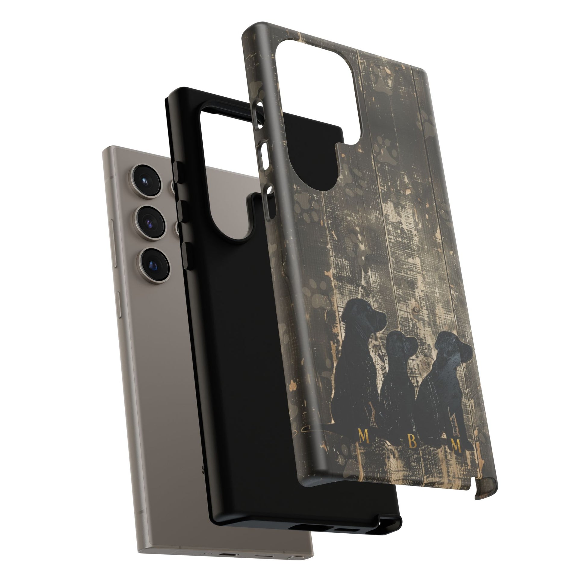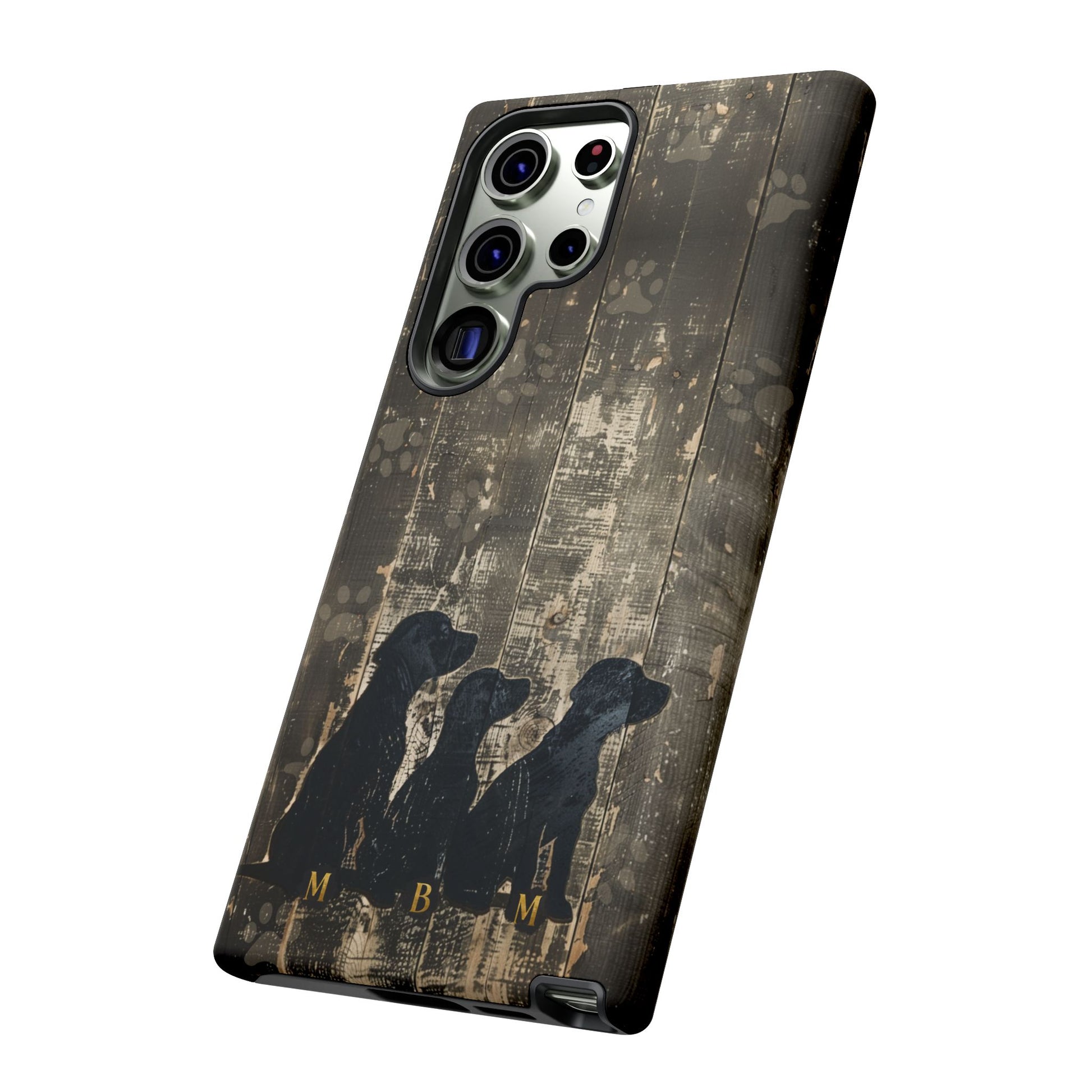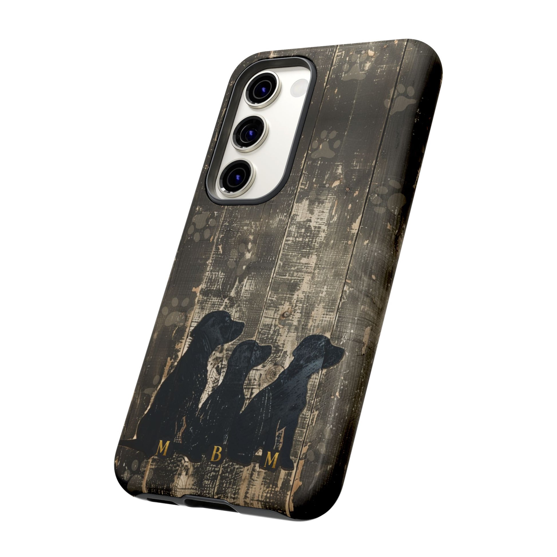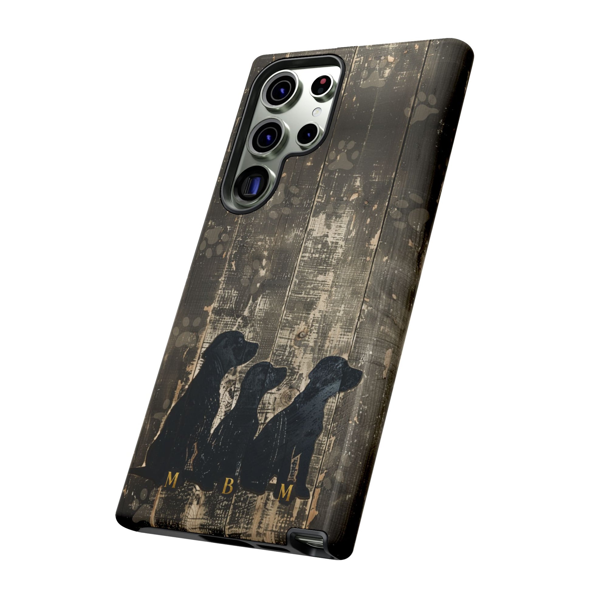 Bark up the right tree with the BarkWood Phone Case! This pawsome case features a graphic of dark distressed wood planks, giving it a rustic, outdoorsy feel. But that’s not all—there are three dog silhouettes sitting in side view, adding a touch of canine charm. To top it off, adorable light brown puppy prints are scattered haphazardly across the front, making it a delightful treat for dog lovers. This case isn’t just a pretty face; it’s built to protect your phone from all those ruff tumbles. Fetch yourself the BarkWood Phone Case and let your phone enjoy a howlin’ good time!