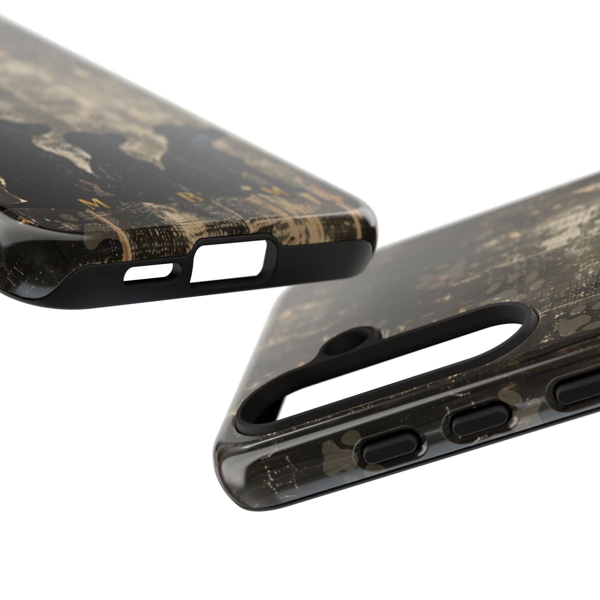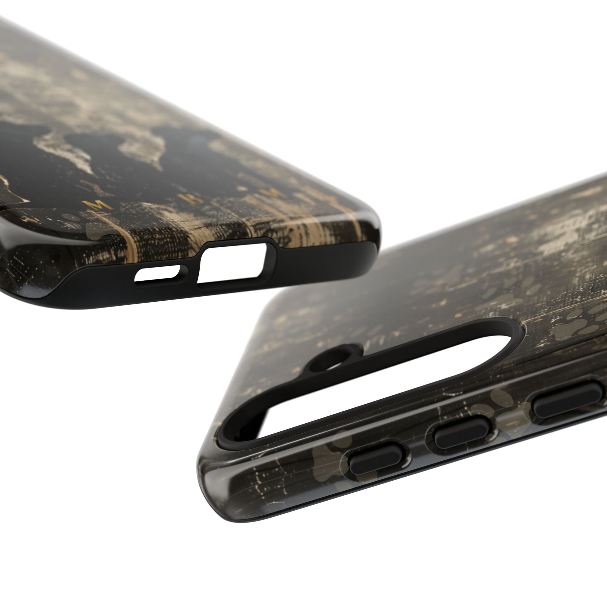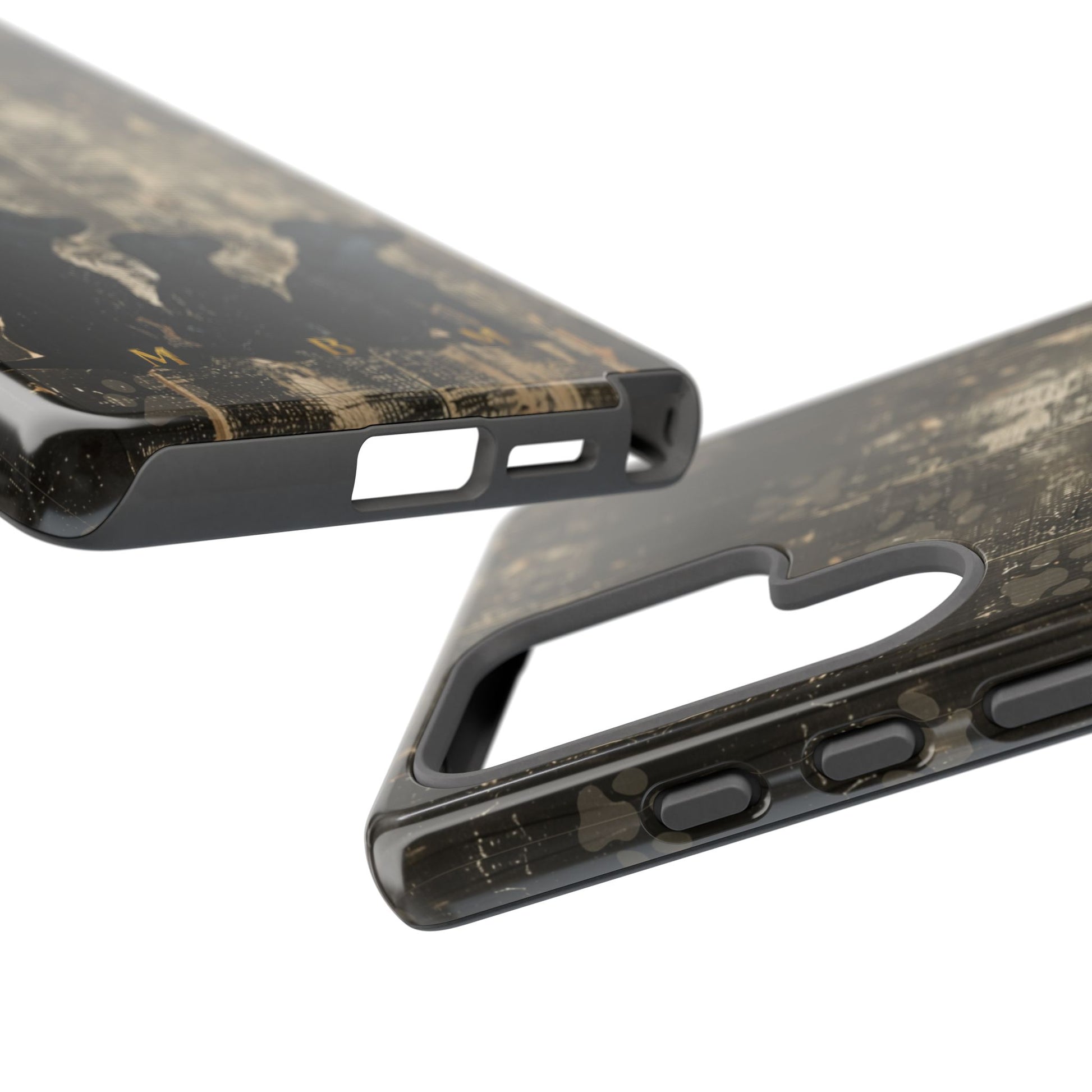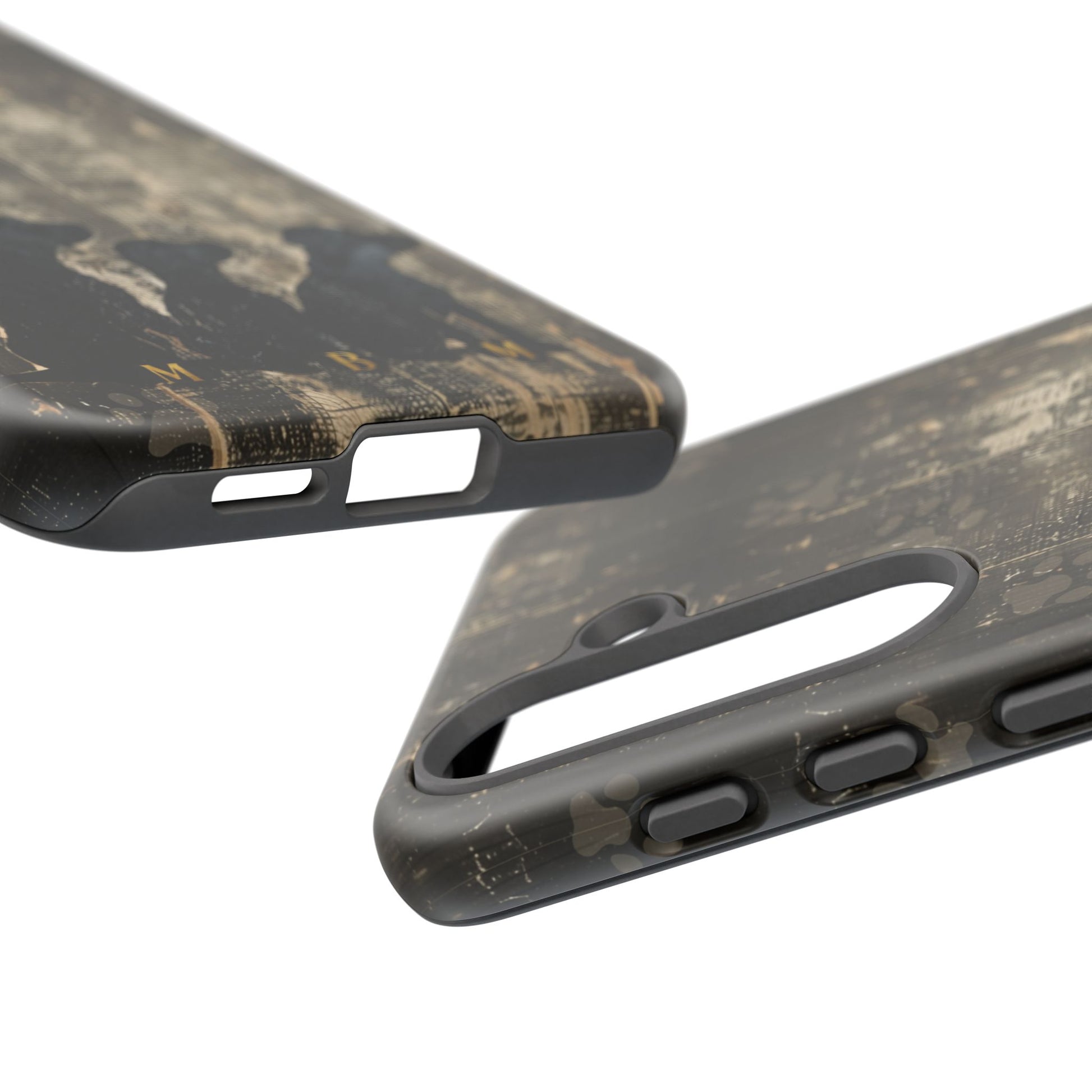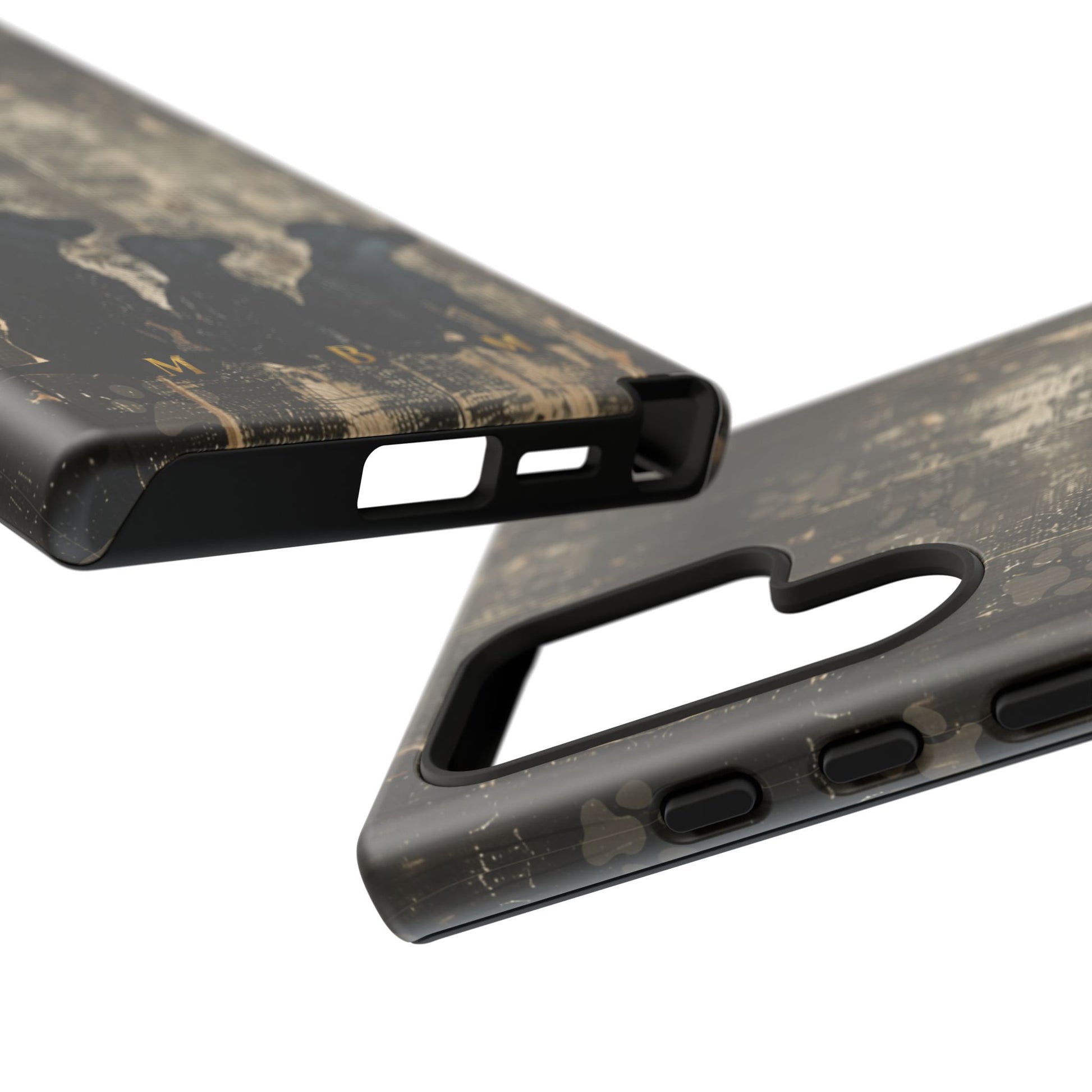 Bark up the right tree with the BarkWood Phone Case! This pawsome case features a graphic of dark distressed wood planks, giving it a rustic, outdoorsy feel. But that’s not all—there are three dog silhouettes sitting in side view, adding a touch of canine charm. To top it off, adorable light brown puppy prints are scattered haphazardly across the front, making it a delightful treat for dog lovers. This case isn’t just a pretty face; it’s built to protect your phone from all those ruff tumbles. Fetch yourself the BarkWood Phone Case and let your phone enjoy a howlin’ good time!