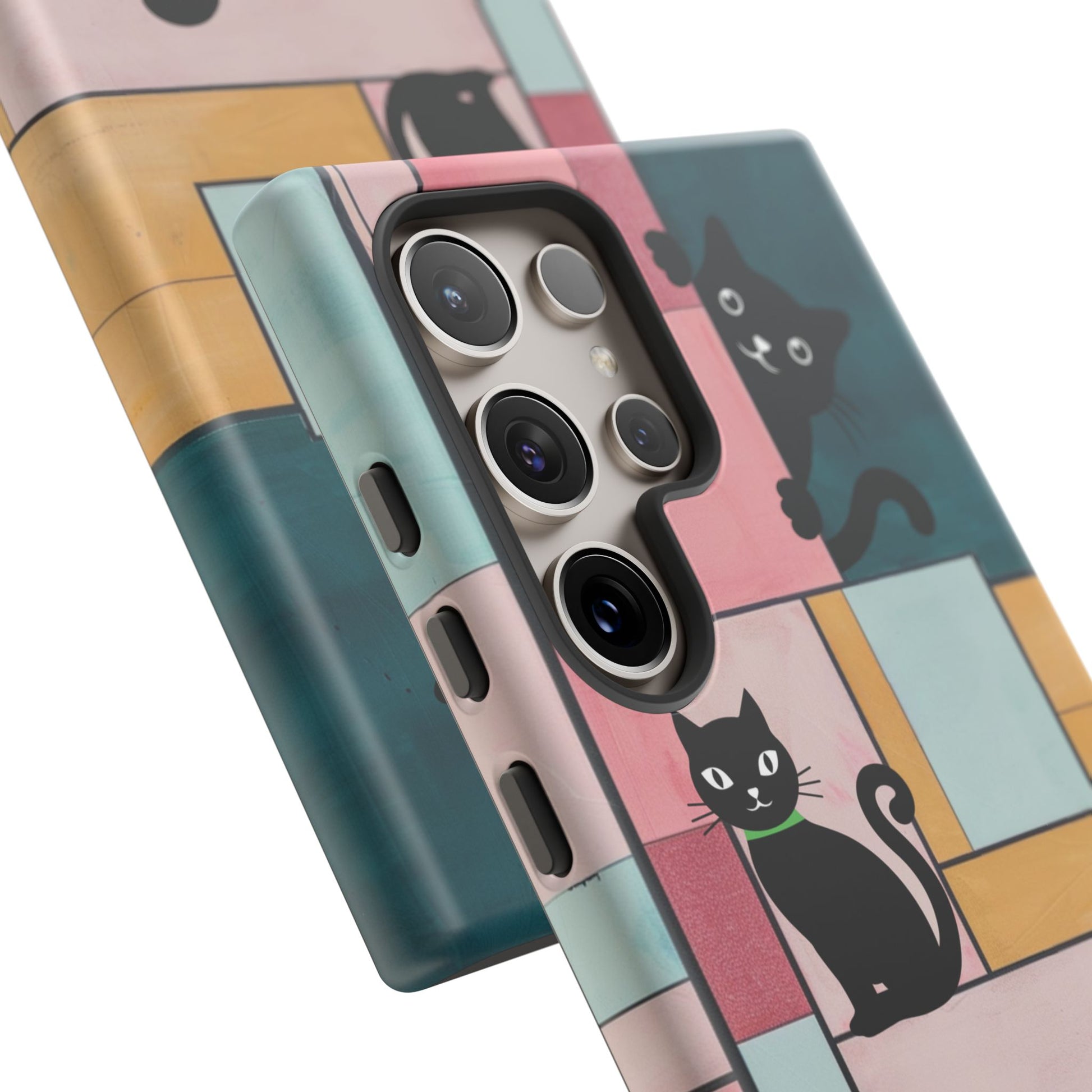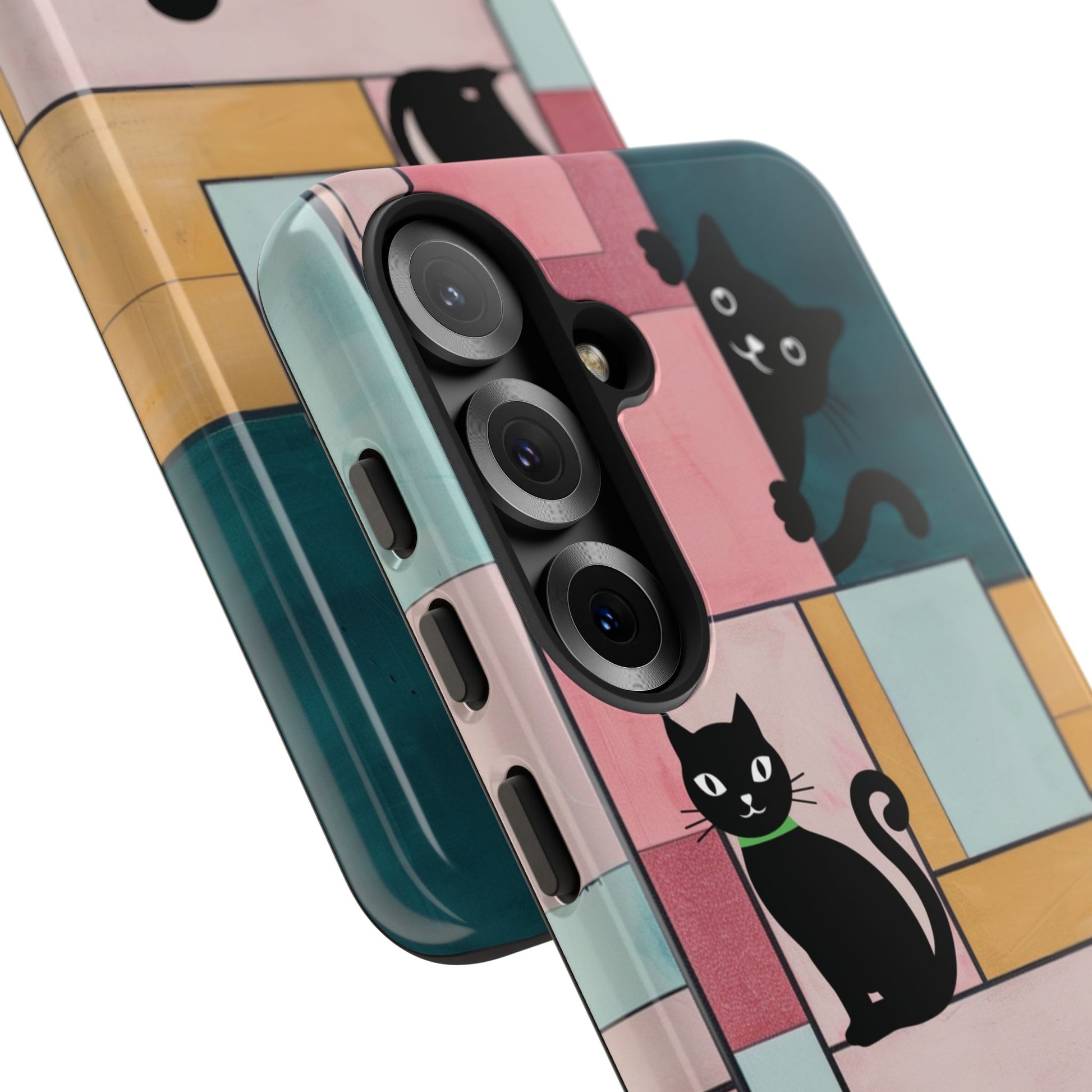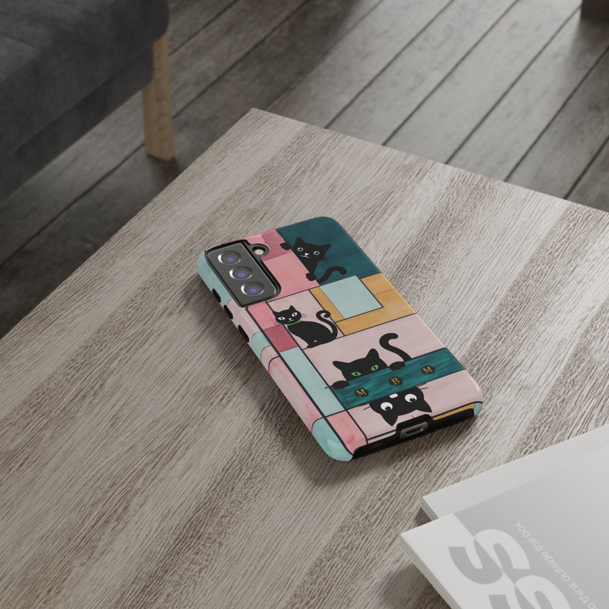 This quirky case features adorable black cats peeking out from a colorful, geometric block pattern. It's like having a bunch of playful kittens always ready to brighten your day! With vibrant pinks, teals, and yellows, your phone will be the cat's meow of style. Plus, this case isn’t just a pretty face; it’s tough enough to keep your phone safe from all those unexpected drops. Get ready to turn heads and hear the "aww"s with this feline-friendly design. Grab your Block Cats Phone Case and let the kitty fun begin!