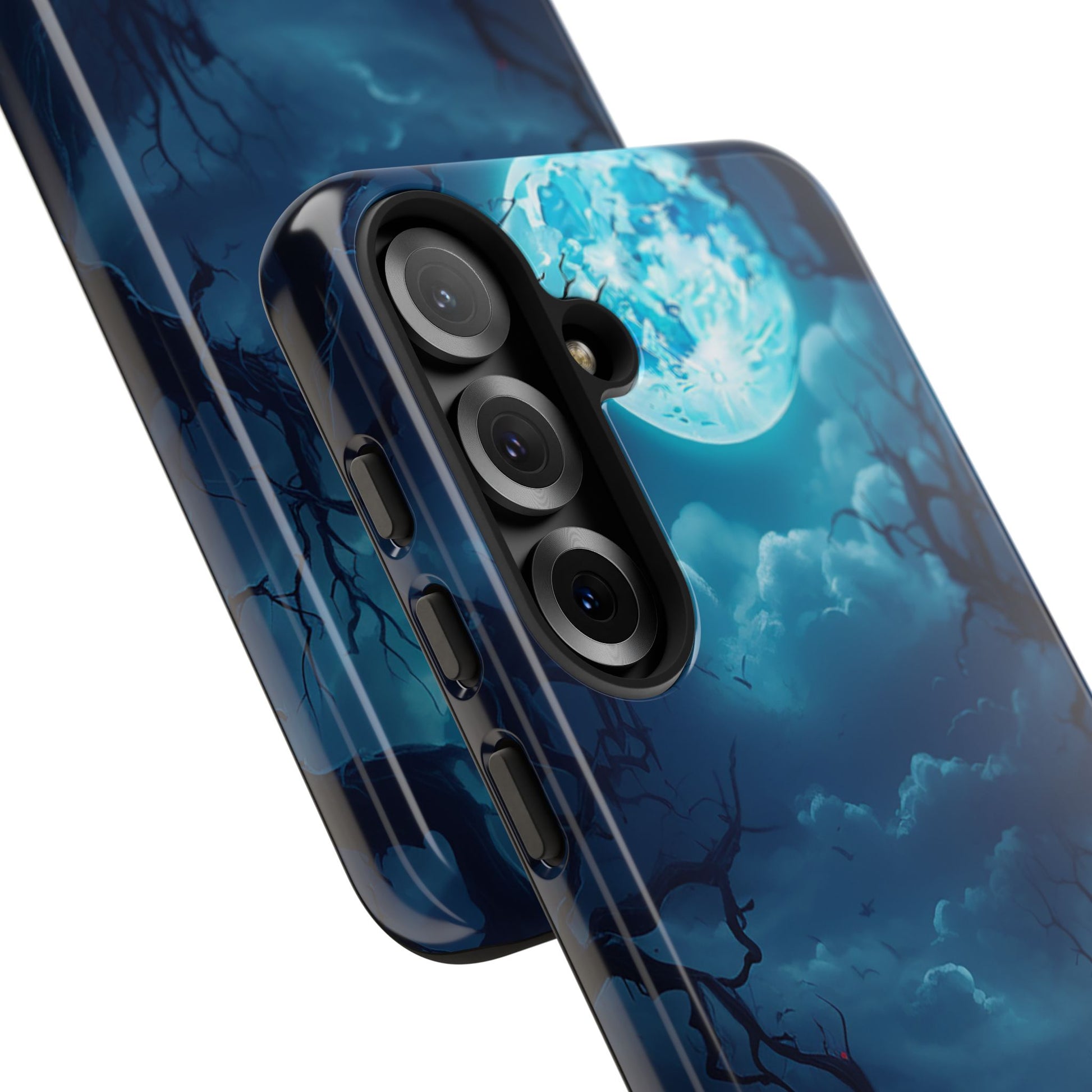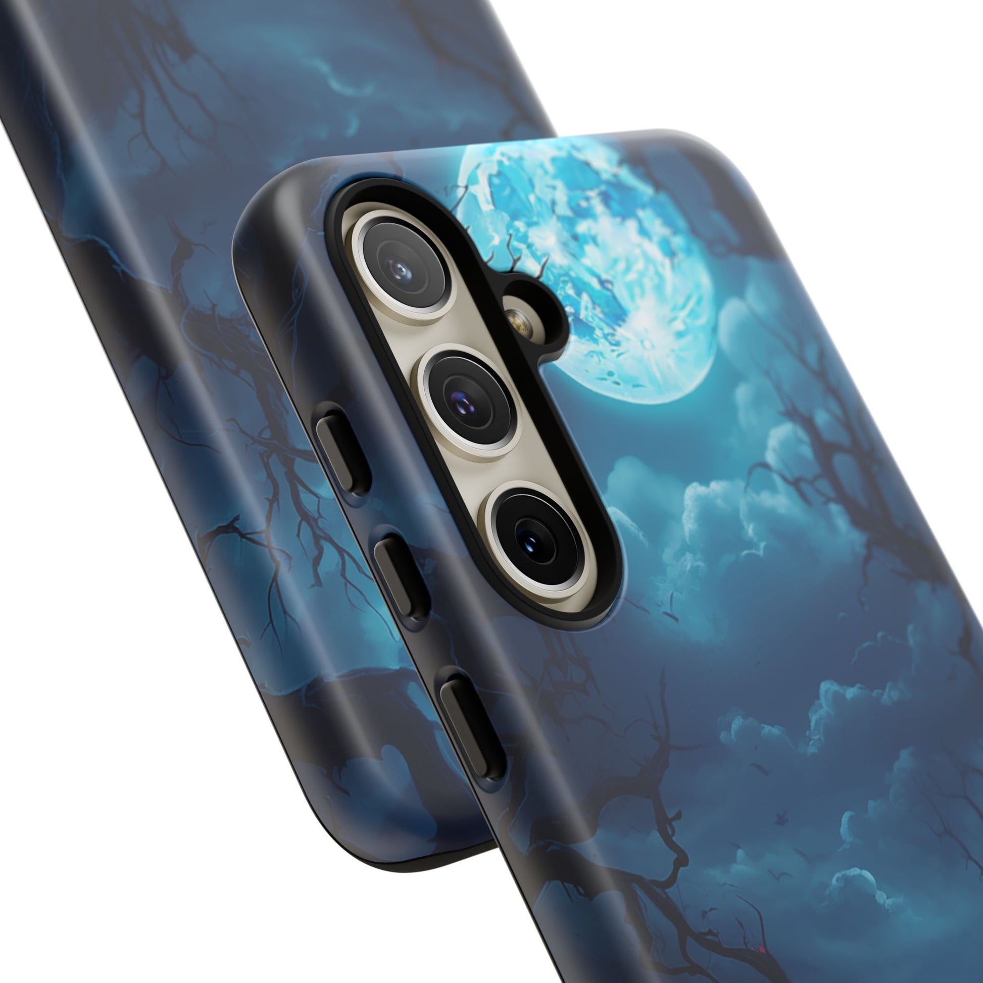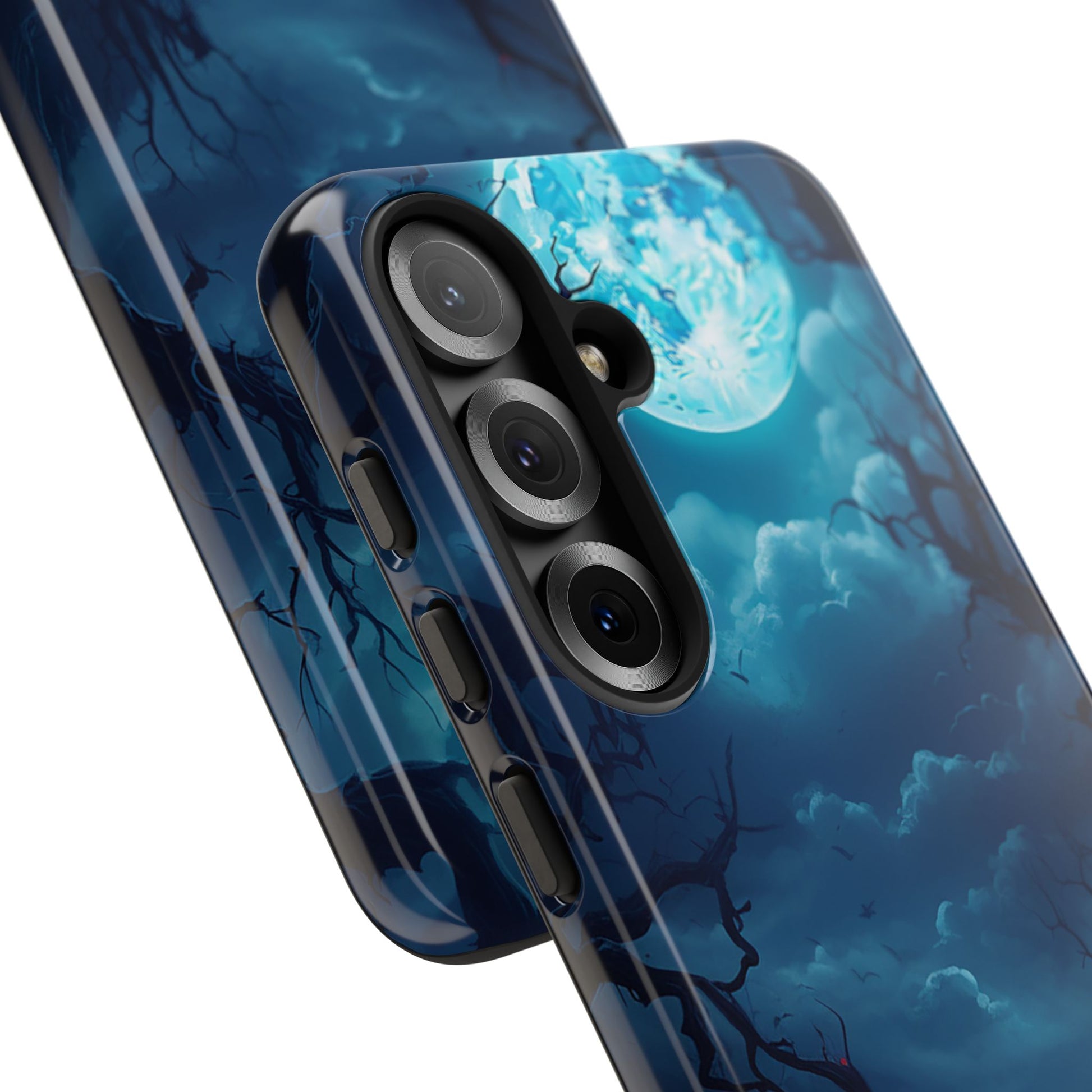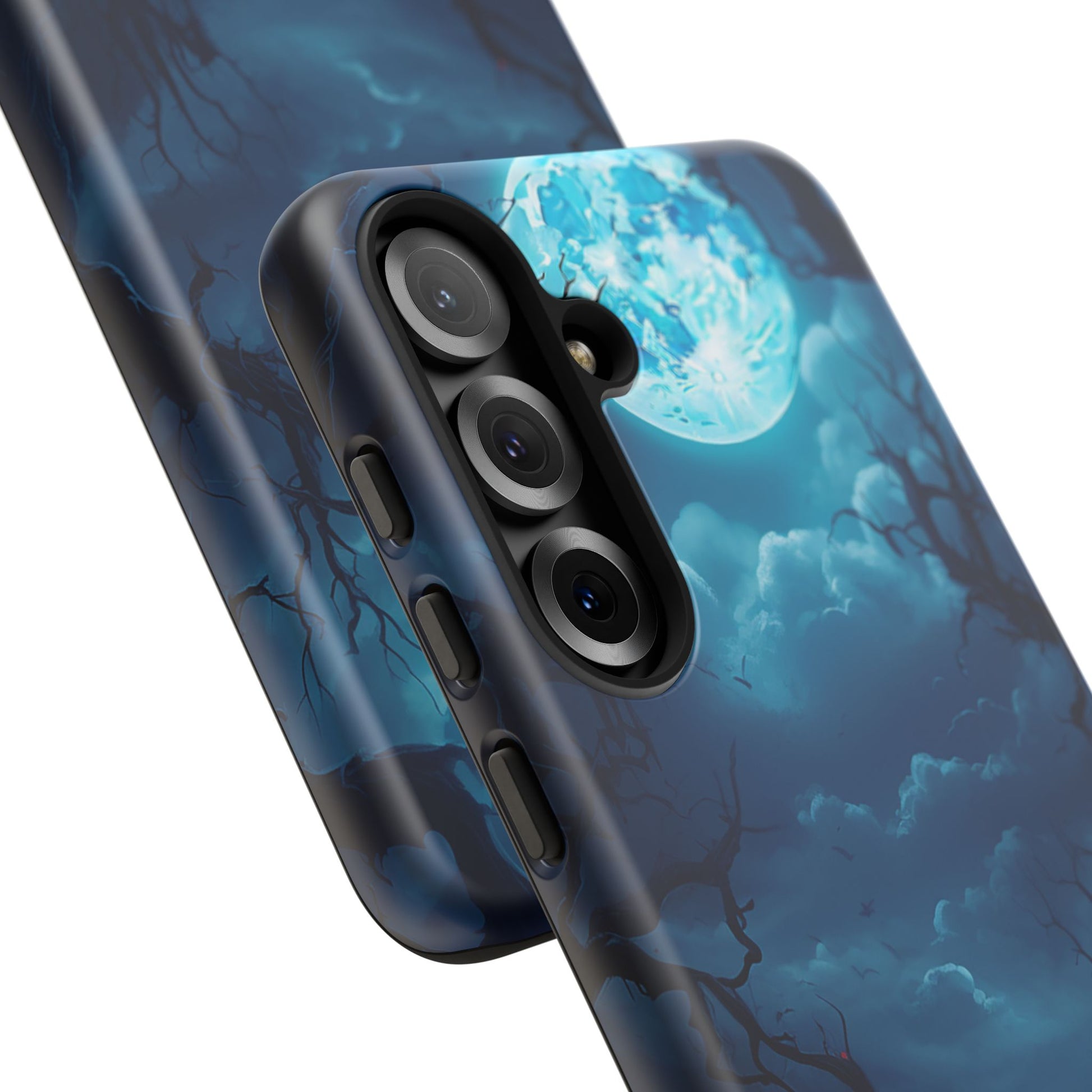 Once in a Blue Moon, a phone case appears that’s not afraid of the dark—and this is it. Cloaked in an eerie glow, with twisted branches and a haunting full moon, this case doesn’t whisper Halloween—it howls it. Perfect for those who laugh in the face of spooky tales and aren’t afraid to embrace a little bit of night. Too cool for the light of day? Or just too awesome to hide from the shadows? Either way, Blue Moon is your ticket to boldly step into the twilight.