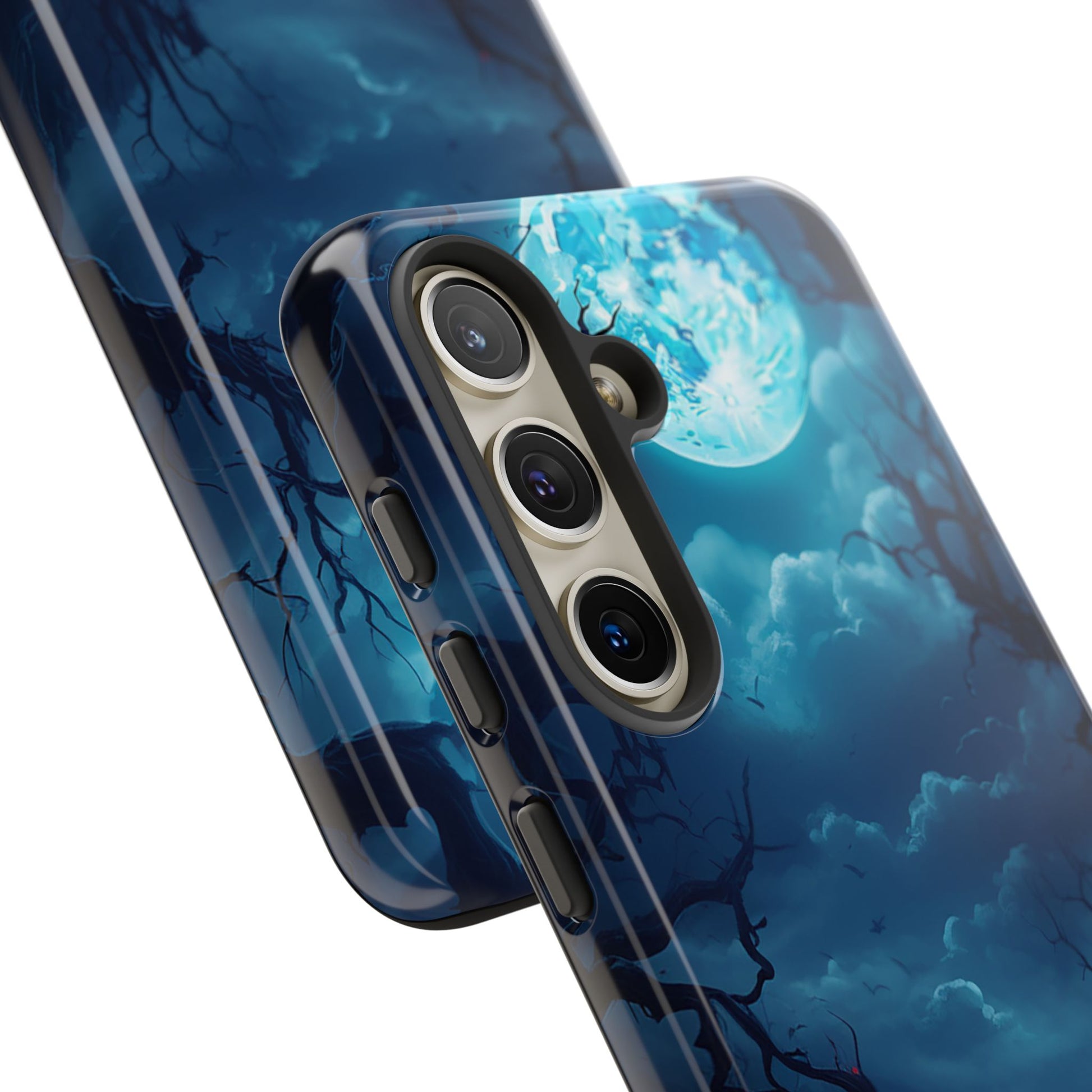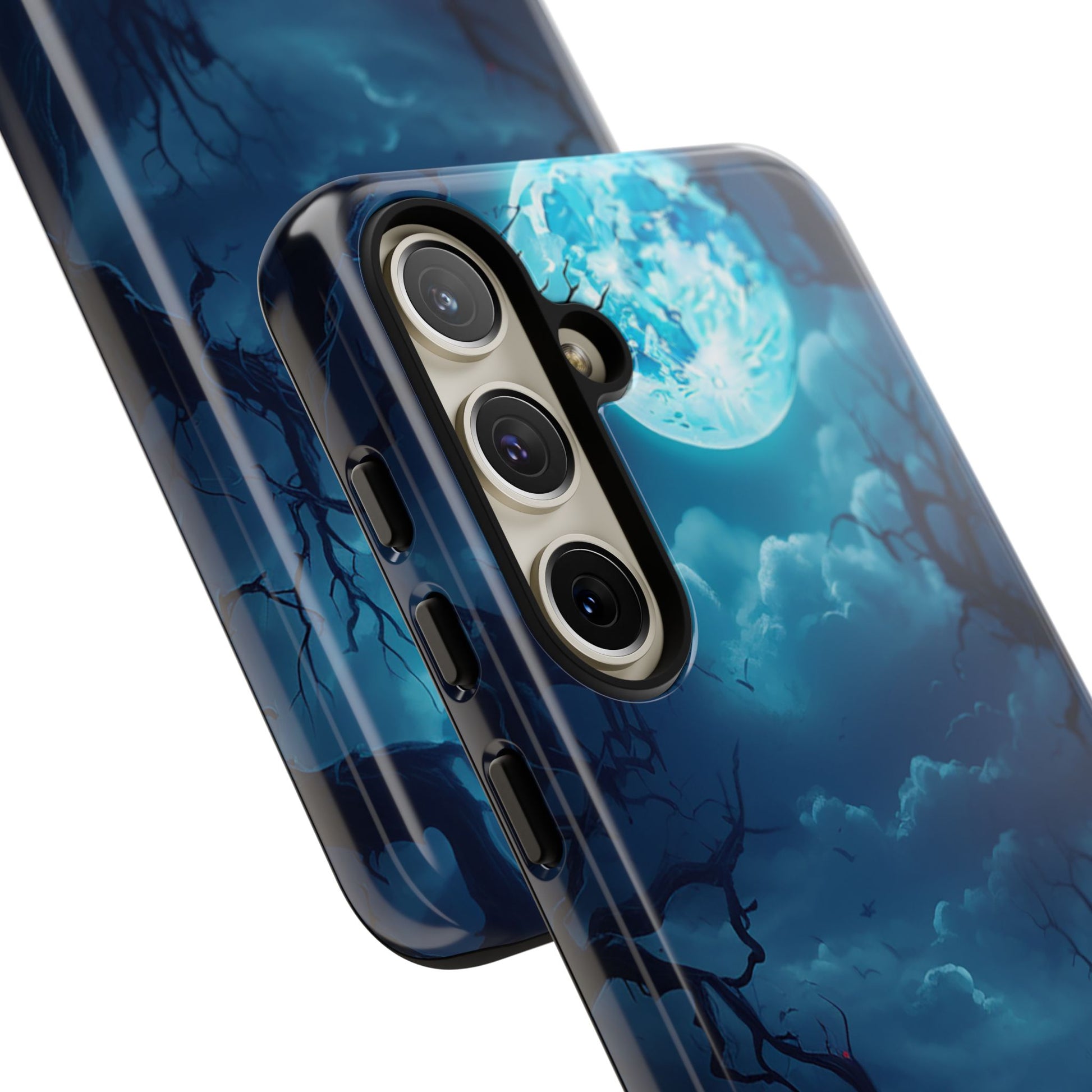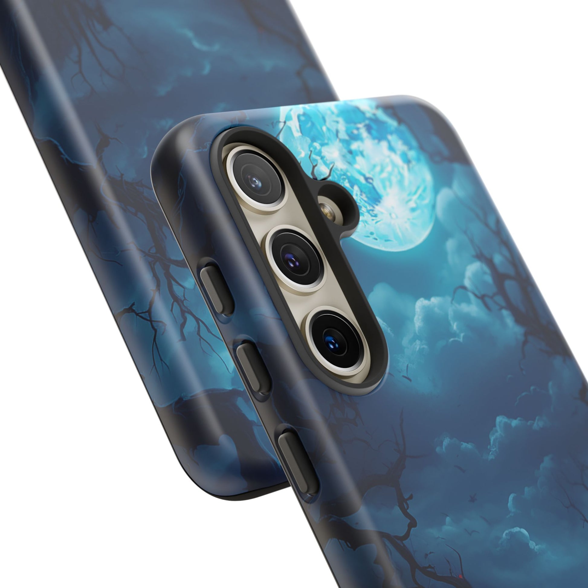 Once in a Blue Moon, a phone case appears that’s not afraid of the dark—and this is it. Cloaked in an eerie glow, with twisted branches and a haunting full moon, this case doesn’t whisper Halloween—it howls it. Perfect for those who laugh in the face of spooky tales and aren’t afraid to embrace a little bit of night. Too cool for the light of day? Or just too awesome to hide from the shadows? Either way, Blue Moon is your ticket to boldly step into the twilight.