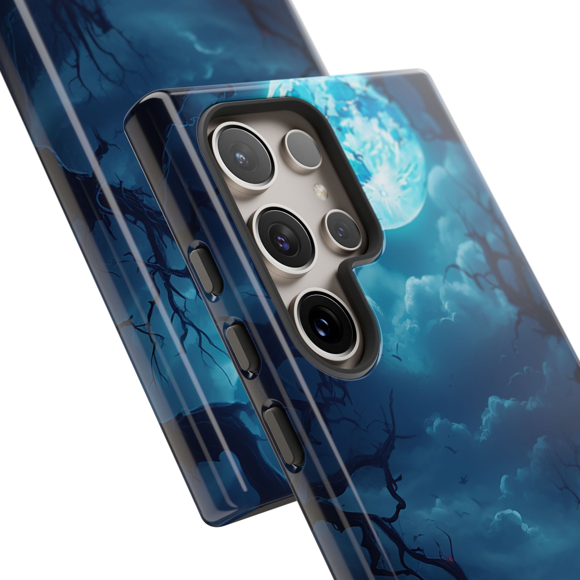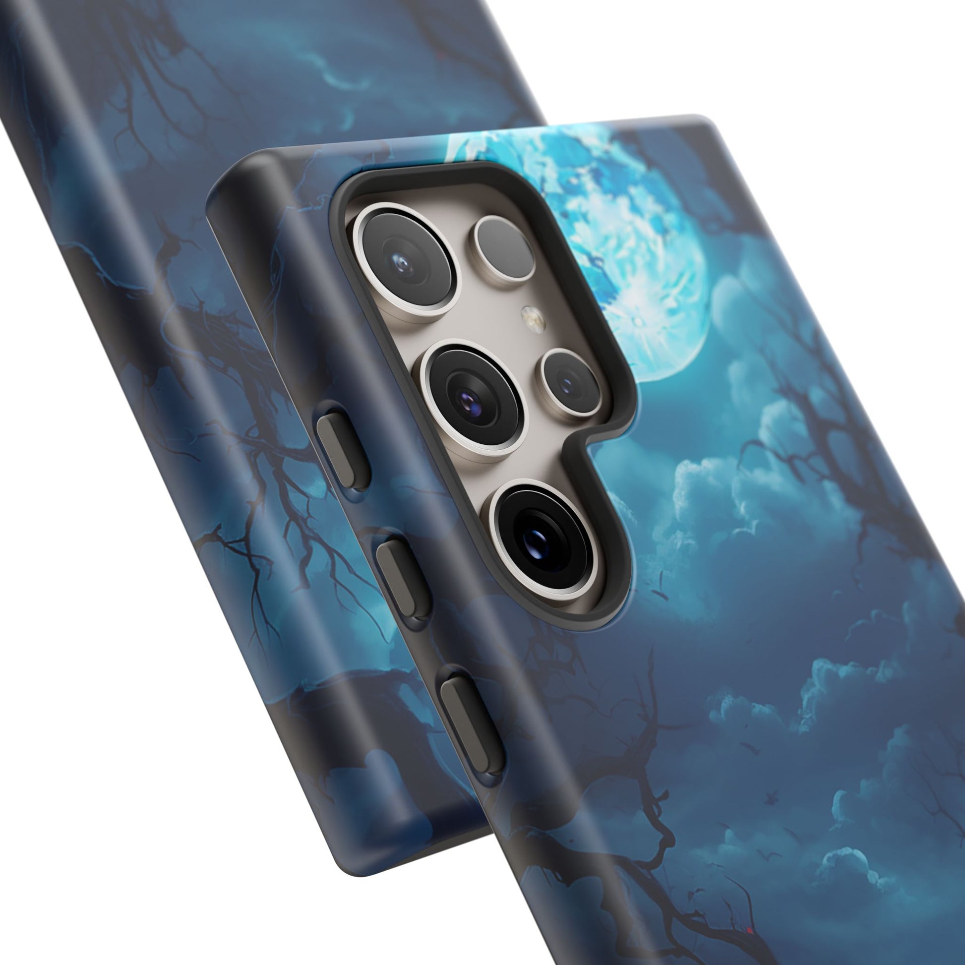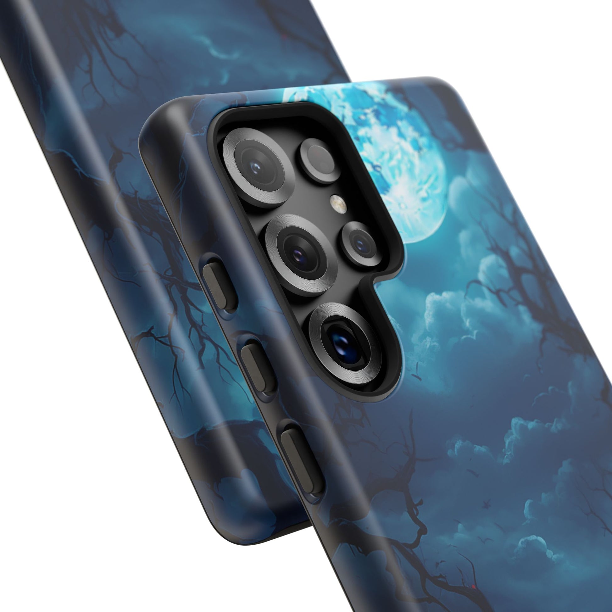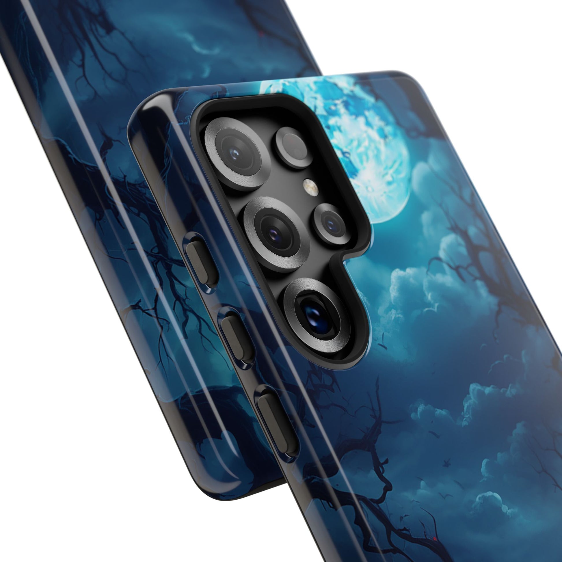 Once in a Blue Moon, a phone case appears that’s not afraid of the dark—and this is it. Cloaked in an eerie glow, with twisted branches and a haunting full moon, this case doesn’t whisper Halloween—it howls it. Perfect for those who laugh in the face of spooky tales and aren’t afraid to embrace a little bit of night. Too cool for the light of day? Or just too awesome to hide from the shadows? Either way, Blue Moon is your ticket to boldly step into the twilight.