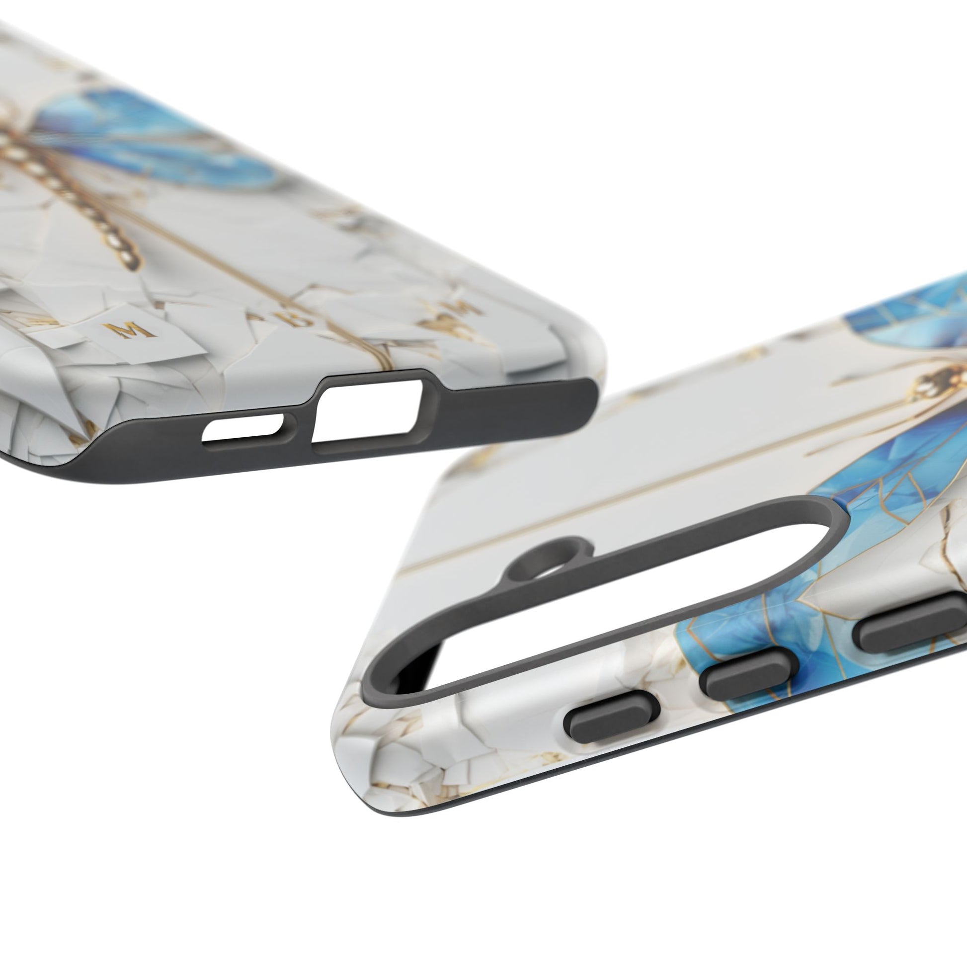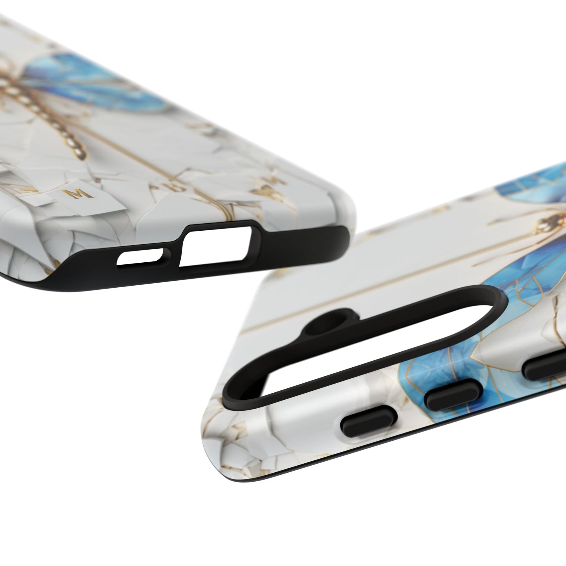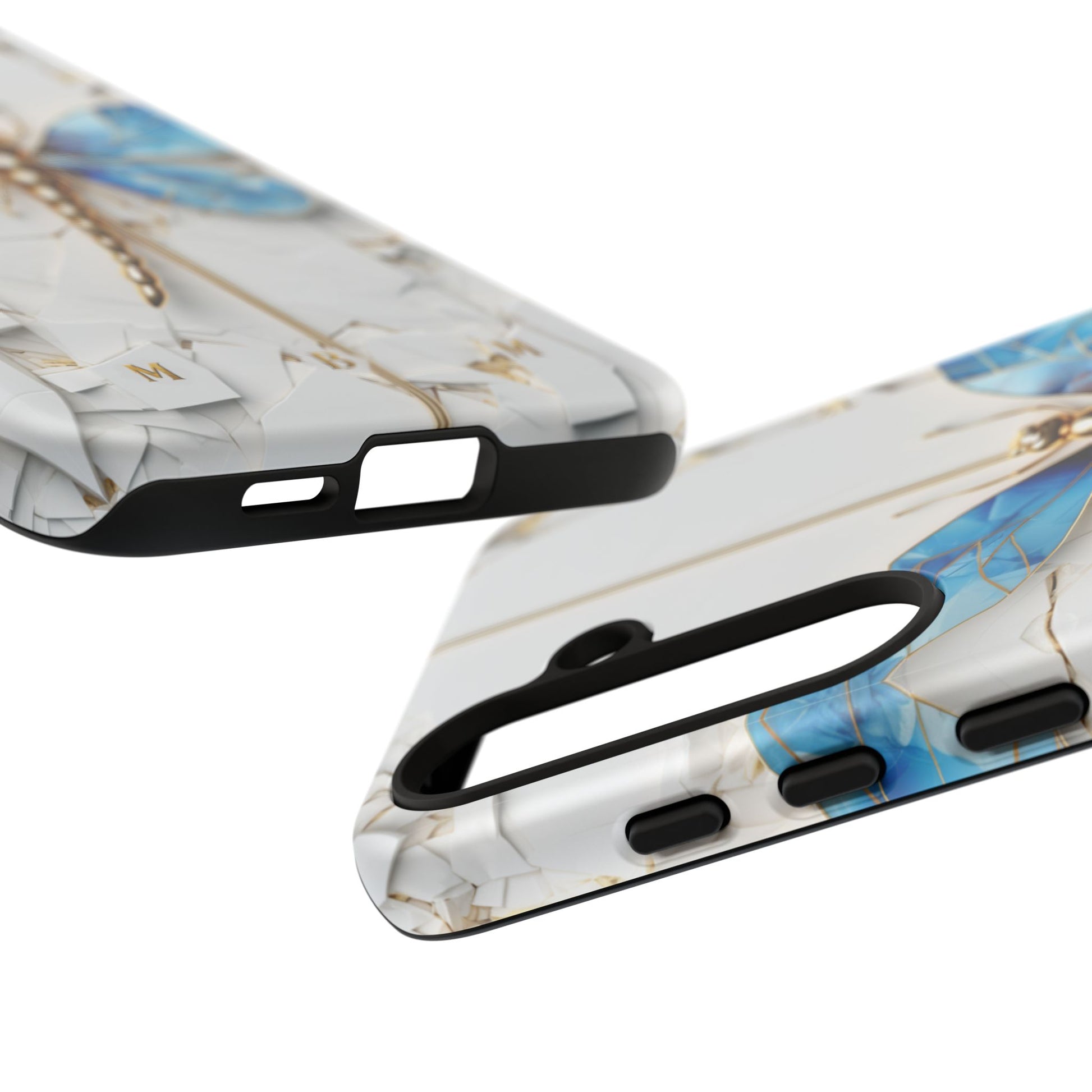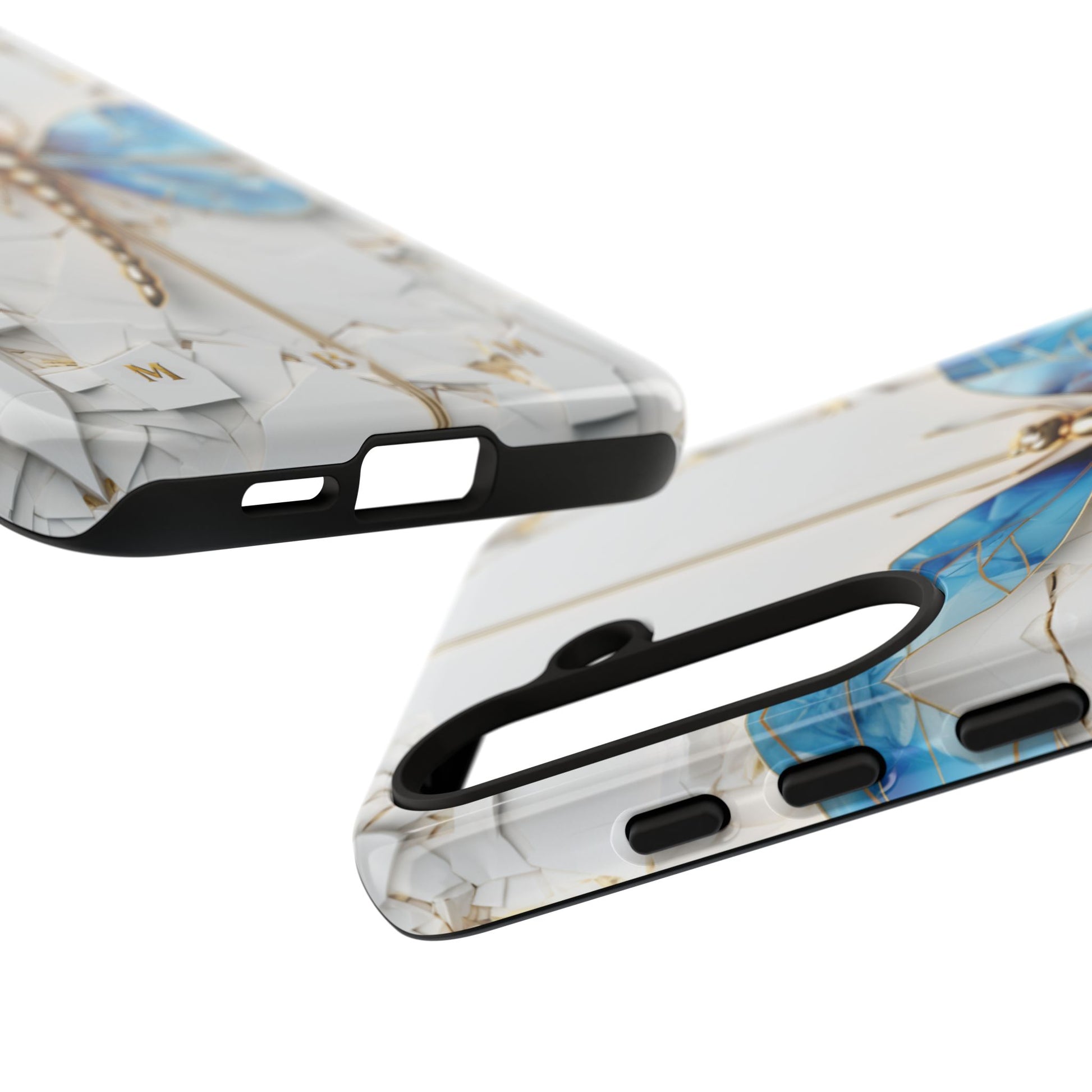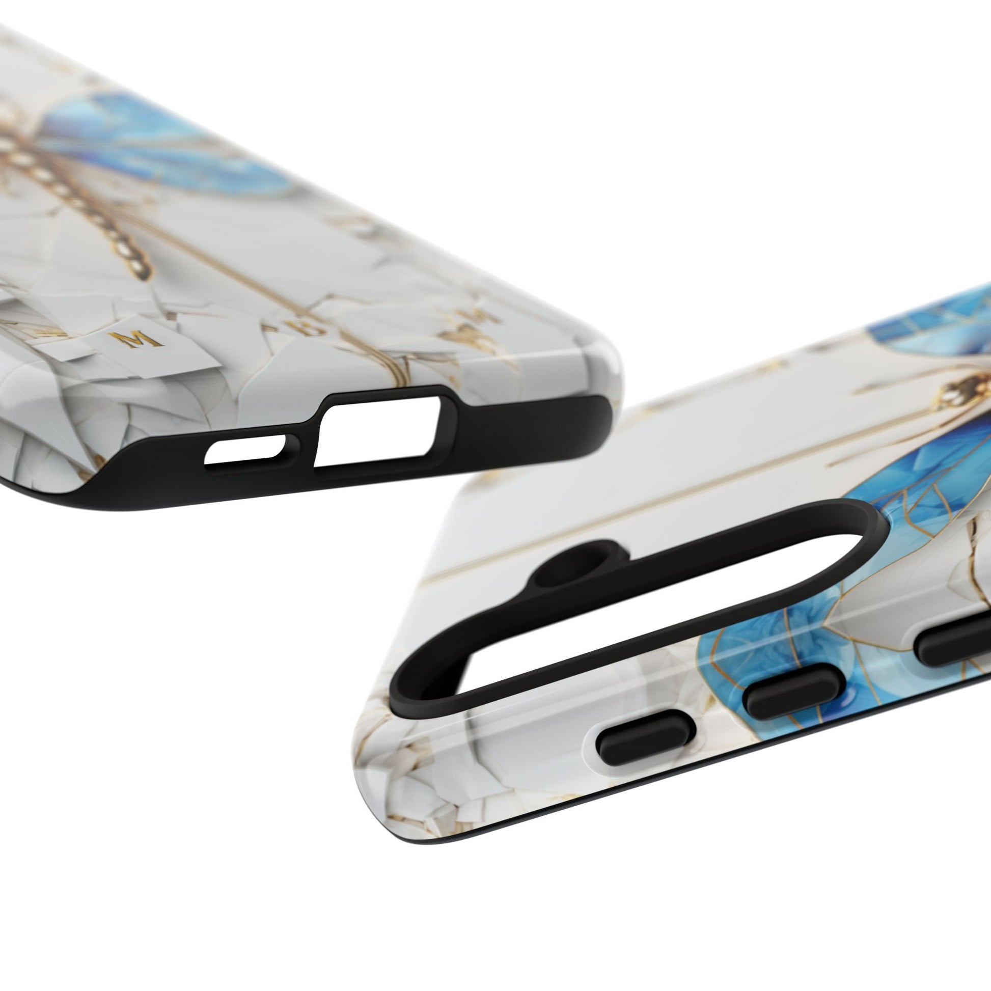 Dragonfly Blue iPhone Tough Case, where elegance meets resilience in a stunning fusion of artistry and protection. Elevate your iPhone experience with this exquisite case that seamlessly combines beauty and durability. But what truly sets this case apart is its unique crackle white material, intricately adorned with golden lines that mimic the natural patterns of cracked porcelain. This exquisite detailing adds a touch of opulence and refinement, elevating the case to a true work of art. Whether you're a nature enthusiast, a lover of all things elegant, or simply someone who appreciates fine craftsmanship, the Dragonfly Blue iPhone Tough Case is the perfect accessory to complement your style. Make a statement while safeguarding your iPhone with this enchanting blend of beauty and resilience. Embrace the allure of the butterfly and experience the epitome of sophistication. Get yours today and let your iPhone soar to new heights of elegance.