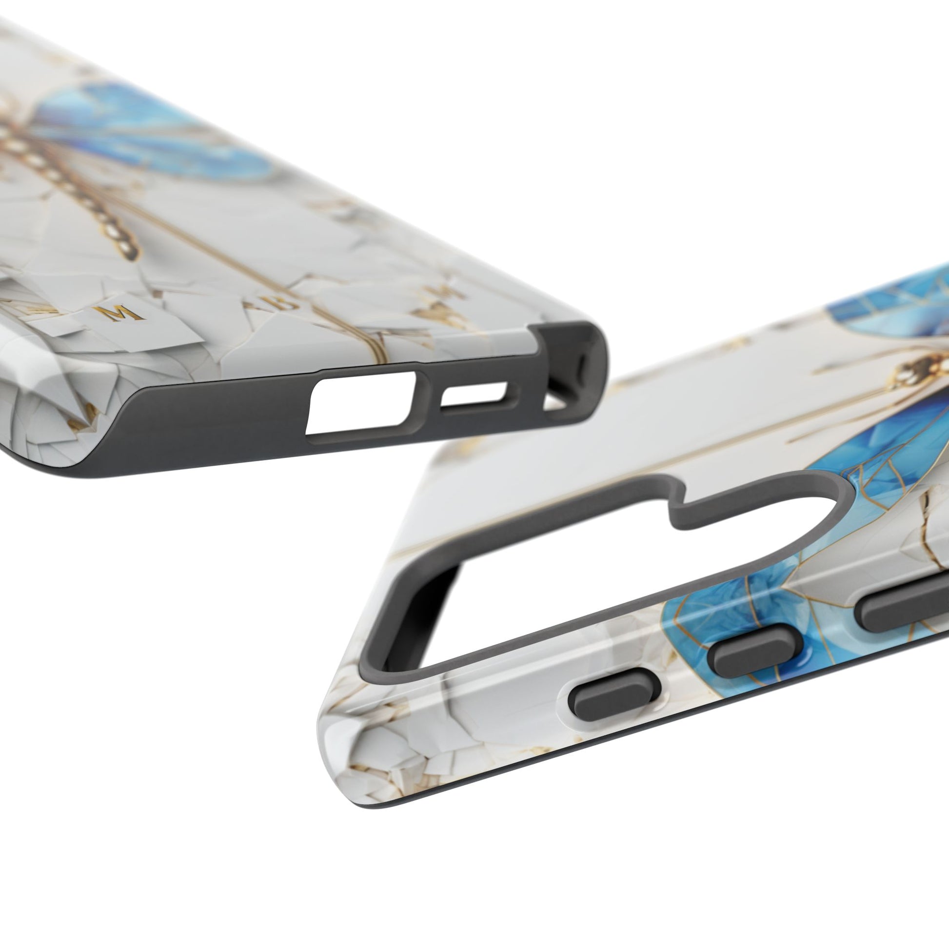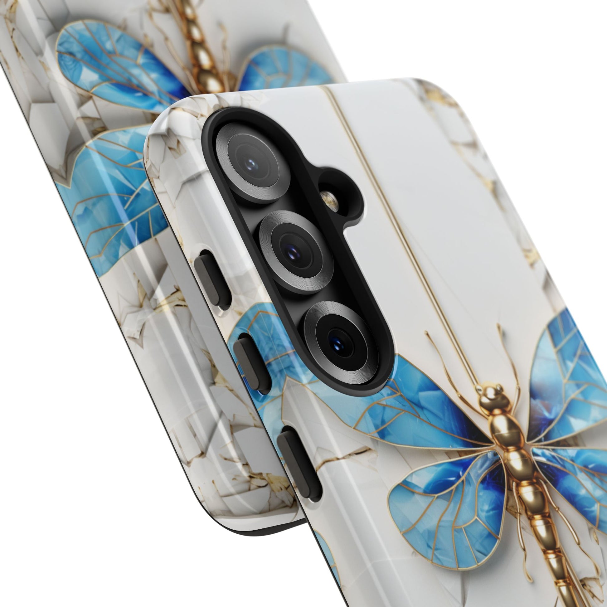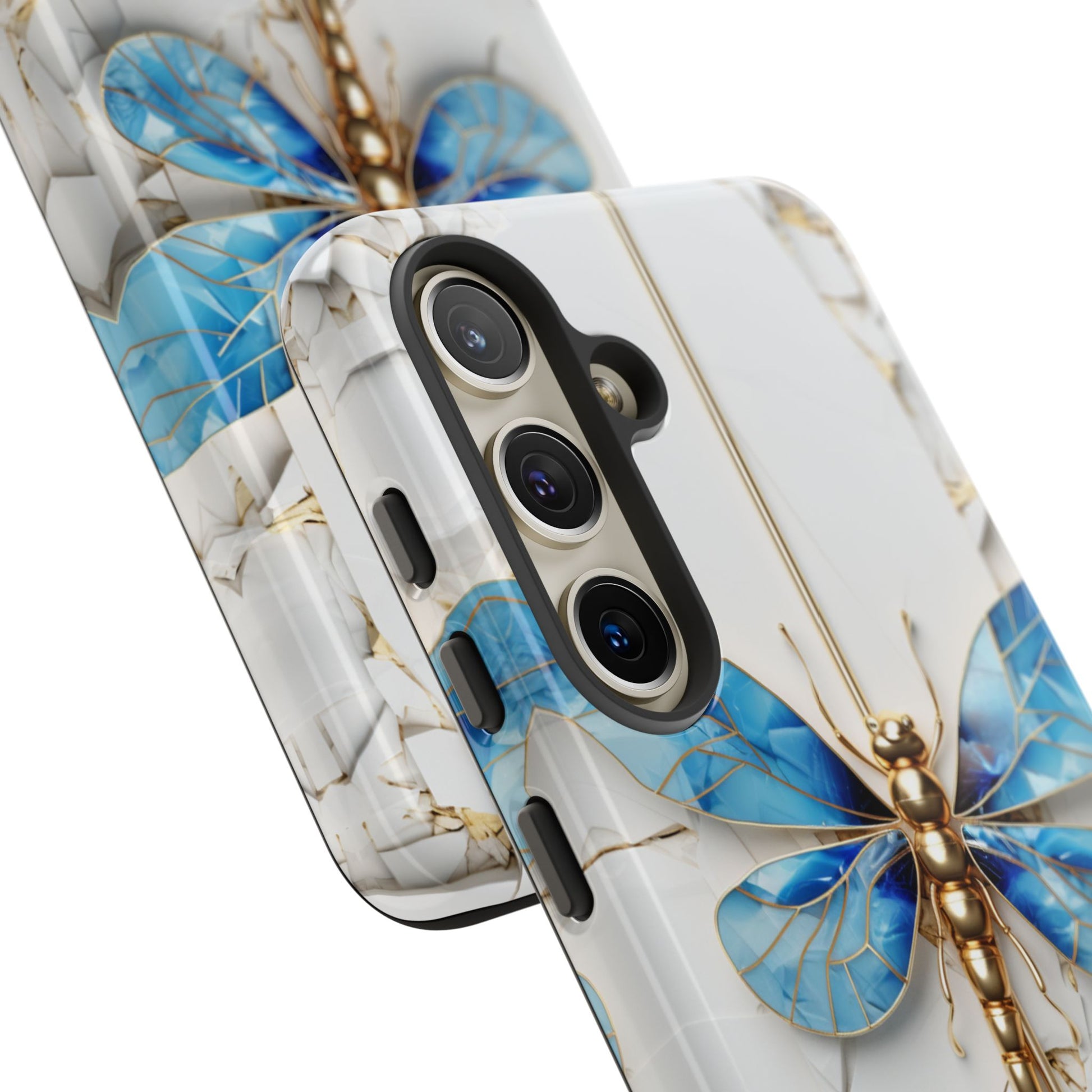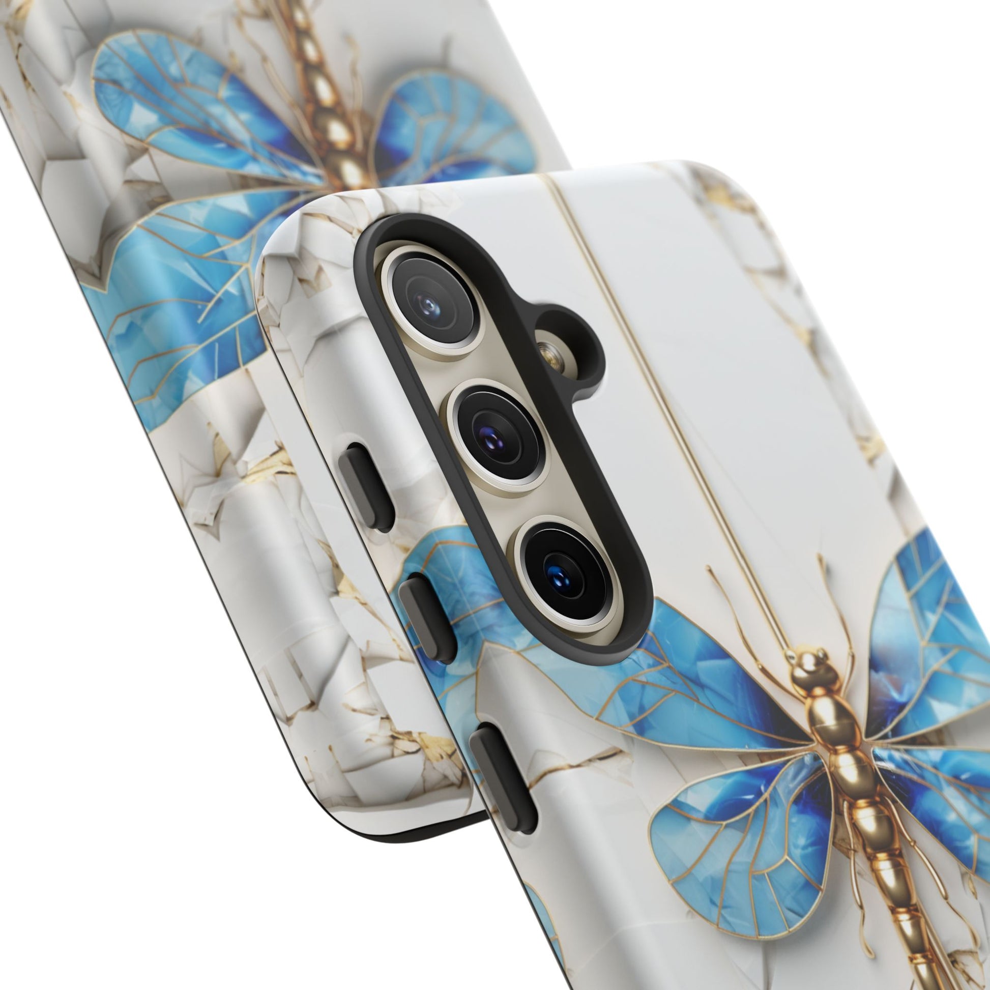 Dragonfly Blue iPhone Tough Case, where elegance meets resilience in a stunning fusion of artistry and protection. Elevate your iPhone experience with this exquisite case that seamlessly combines beauty and durability. But what truly sets this case apart is its unique crackle white material, intricately adorned with golden lines that mimic the natural patterns of cracked porcelain. This exquisite detailing adds a touch of opulence and refinement, elevating the case to a true work of art. Whether you're a nature enthusiast, a lover of all things elegant, or simply someone who appreciates fine craftsmanship, the Dragonfly Blue iPhone Tough Case is the perfect accessory to complement your style. Make a statement while safeguarding your iPhone with this enchanting blend of beauty and resilience. Embrace the allure of the butterfly and experience the epitome of sophistication. Get yours today and let your iPhone soar to new heights of elegance.