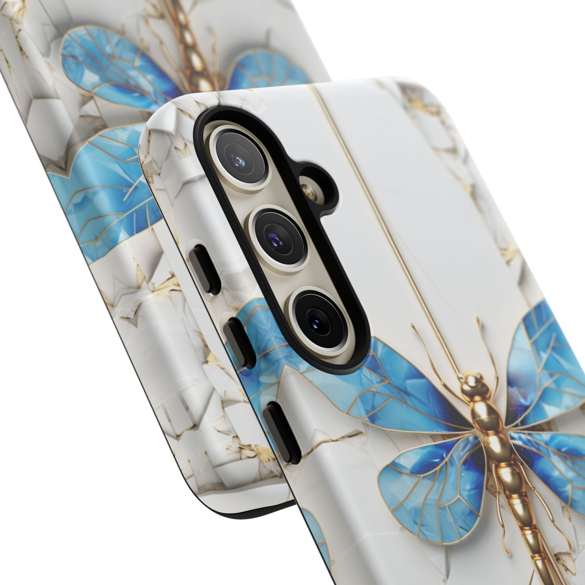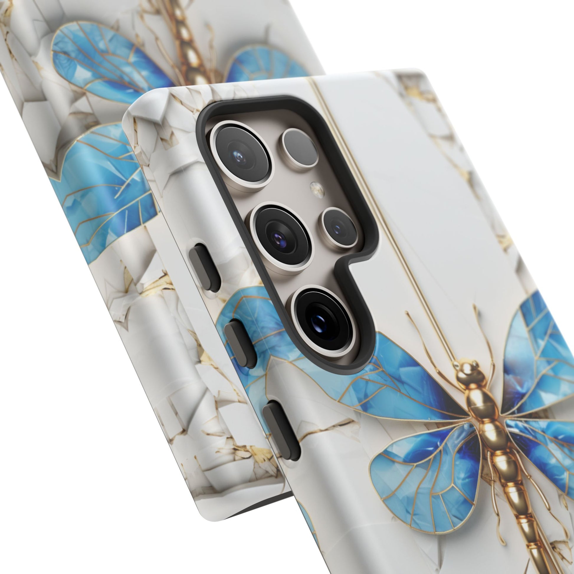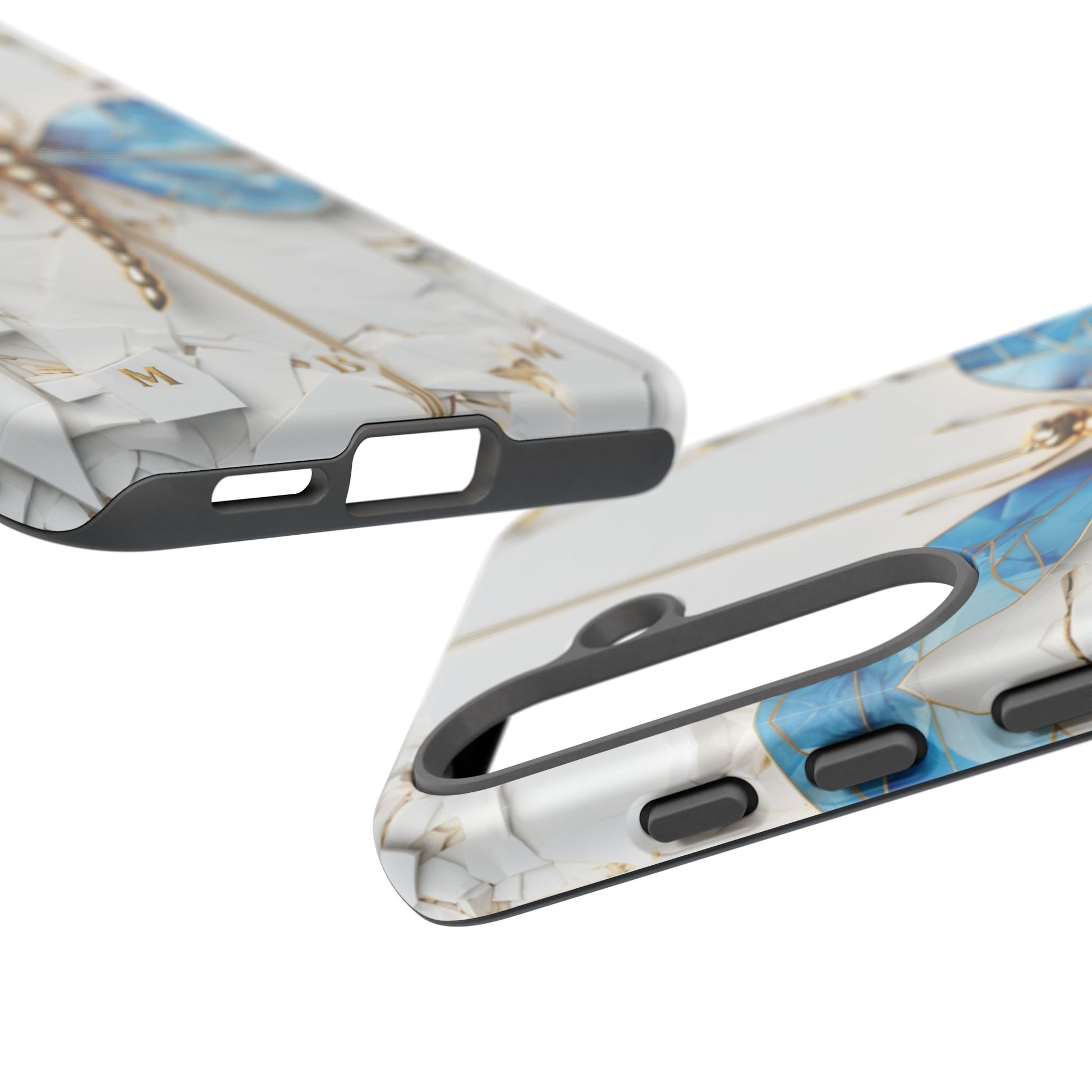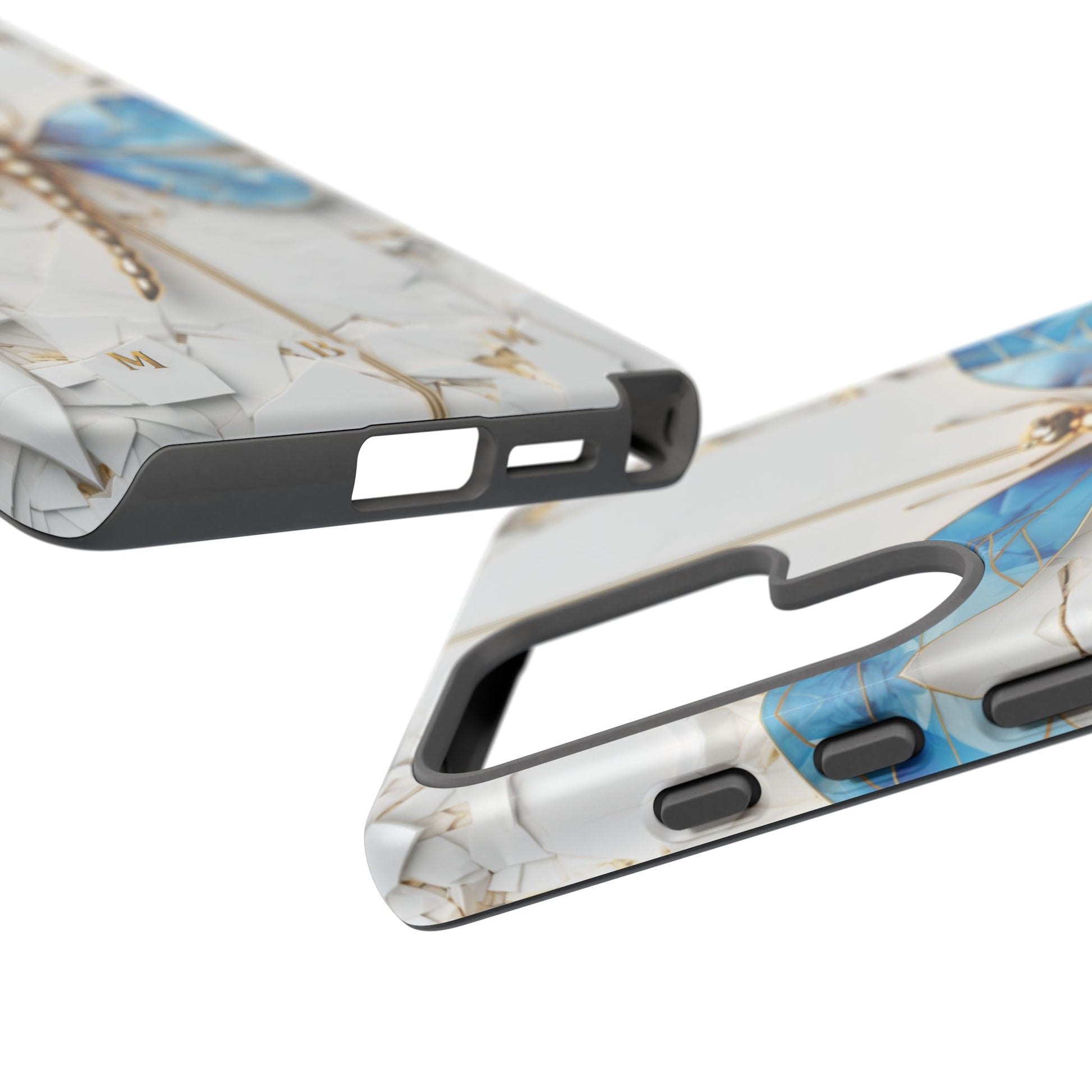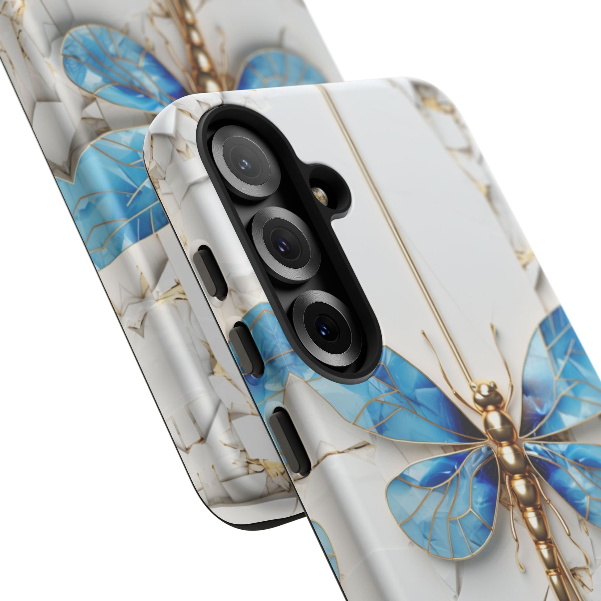 Dragonfly Blue iPhone Tough Case, where elegance meets resilience in a stunning fusion of artistry and protection. Elevate your iPhone experience with this exquisite case that seamlessly combines beauty and durability. But what truly sets this case apart is its unique crackle white material, intricately adorned with golden lines that mimic the natural patterns of cracked porcelain. This exquisite detailing adds a touch of opulence and refinement, elevating the case to a true work of art. Whether you're a nature enthusiast, a lover of all things elegant, or simply someone who appreciates fine craftsmanship, the Dragonfly Blue iPhone Tough Case is the perfect accessory to complement your style. Make a statement while safeguarding your iPhone with this enchanting blend of beauty and resilience. Embrace the allure of the butterfly and experience the epitome of sophistication. Get yours today and let your iPhone soar to new heights of elegance.