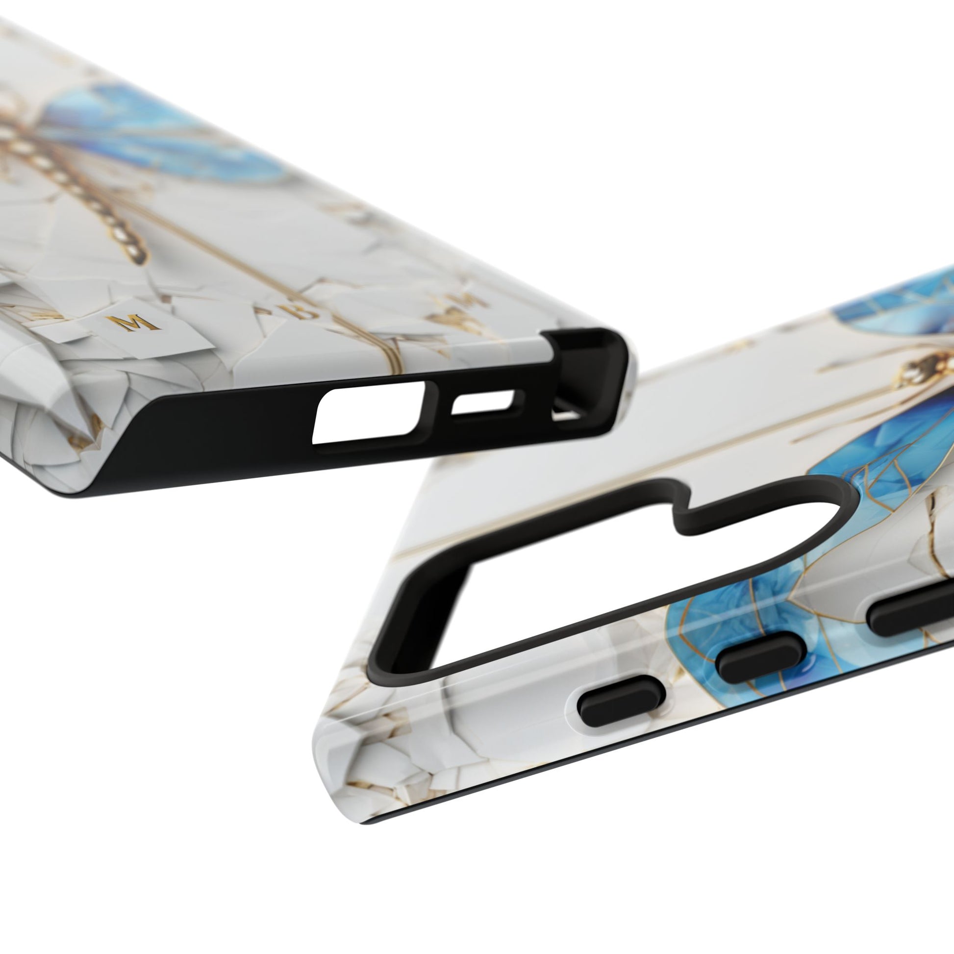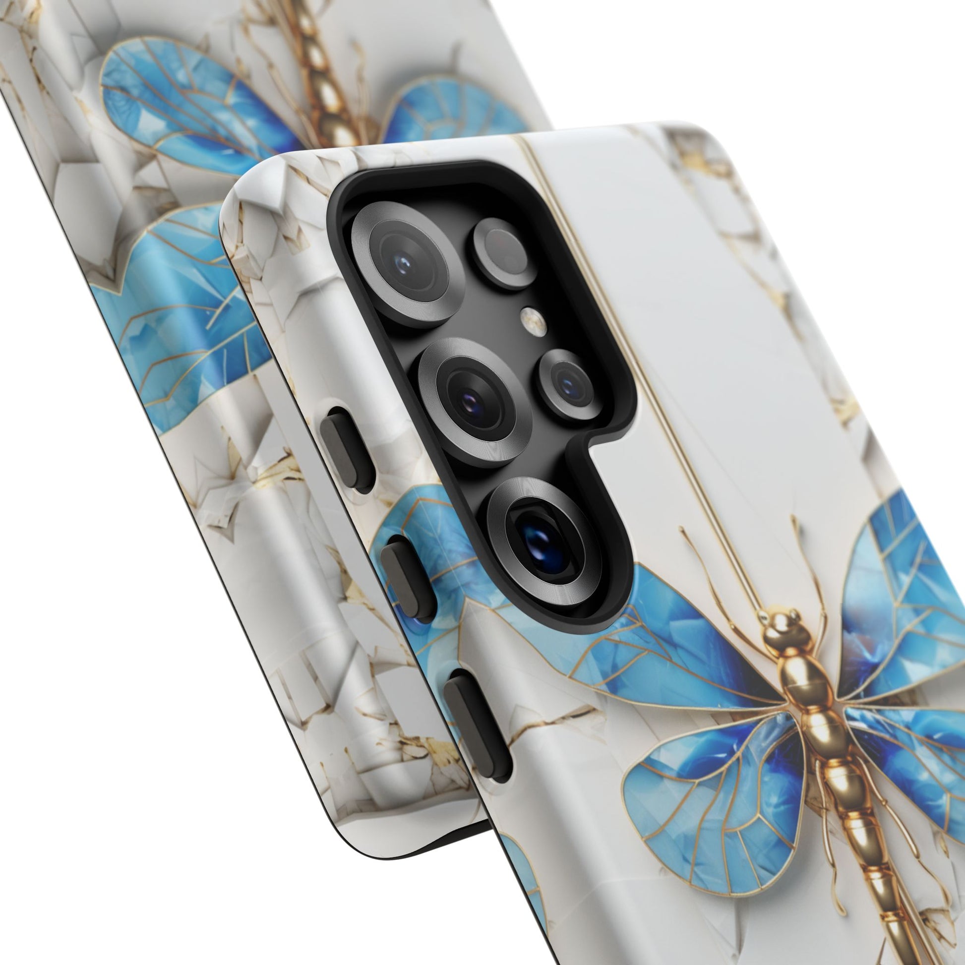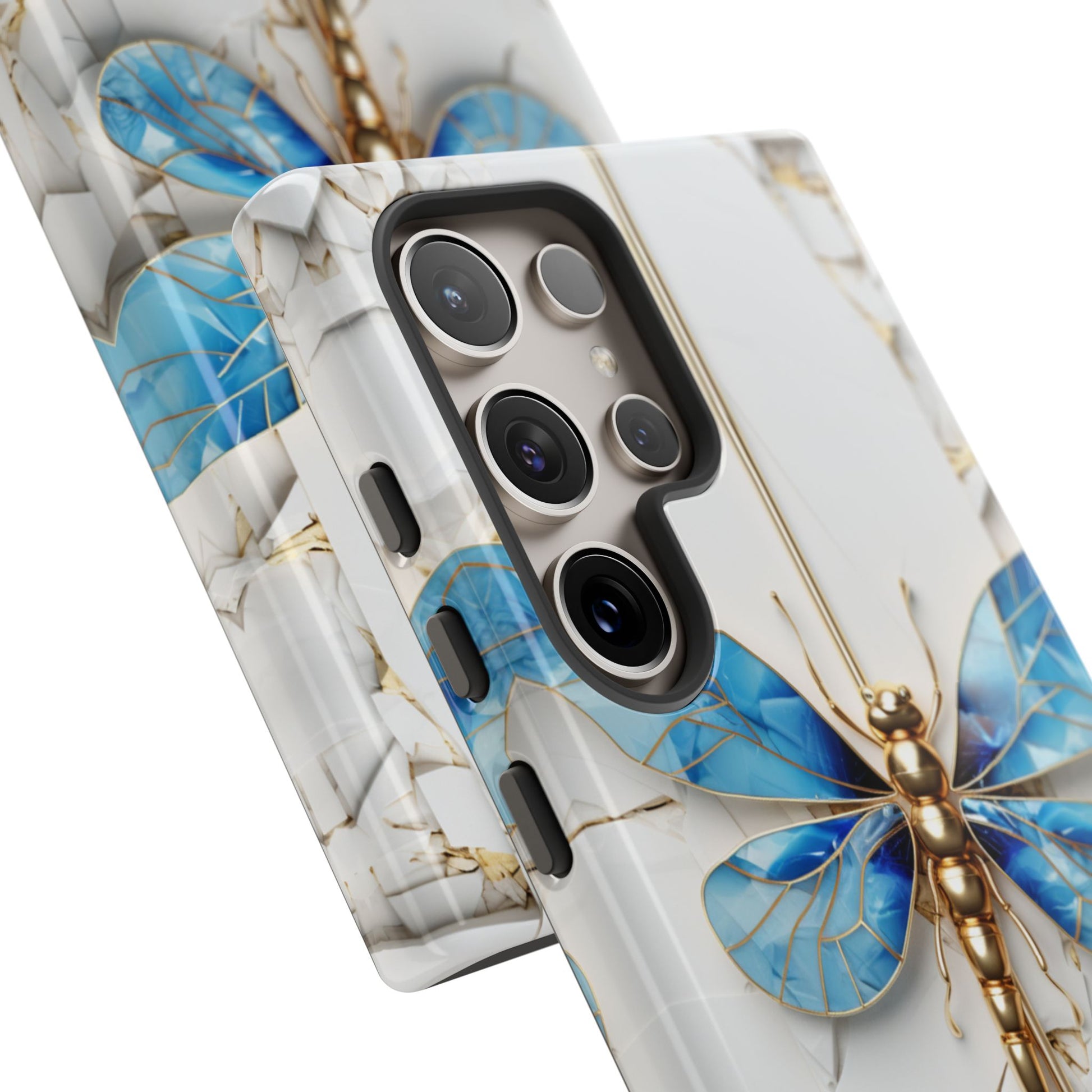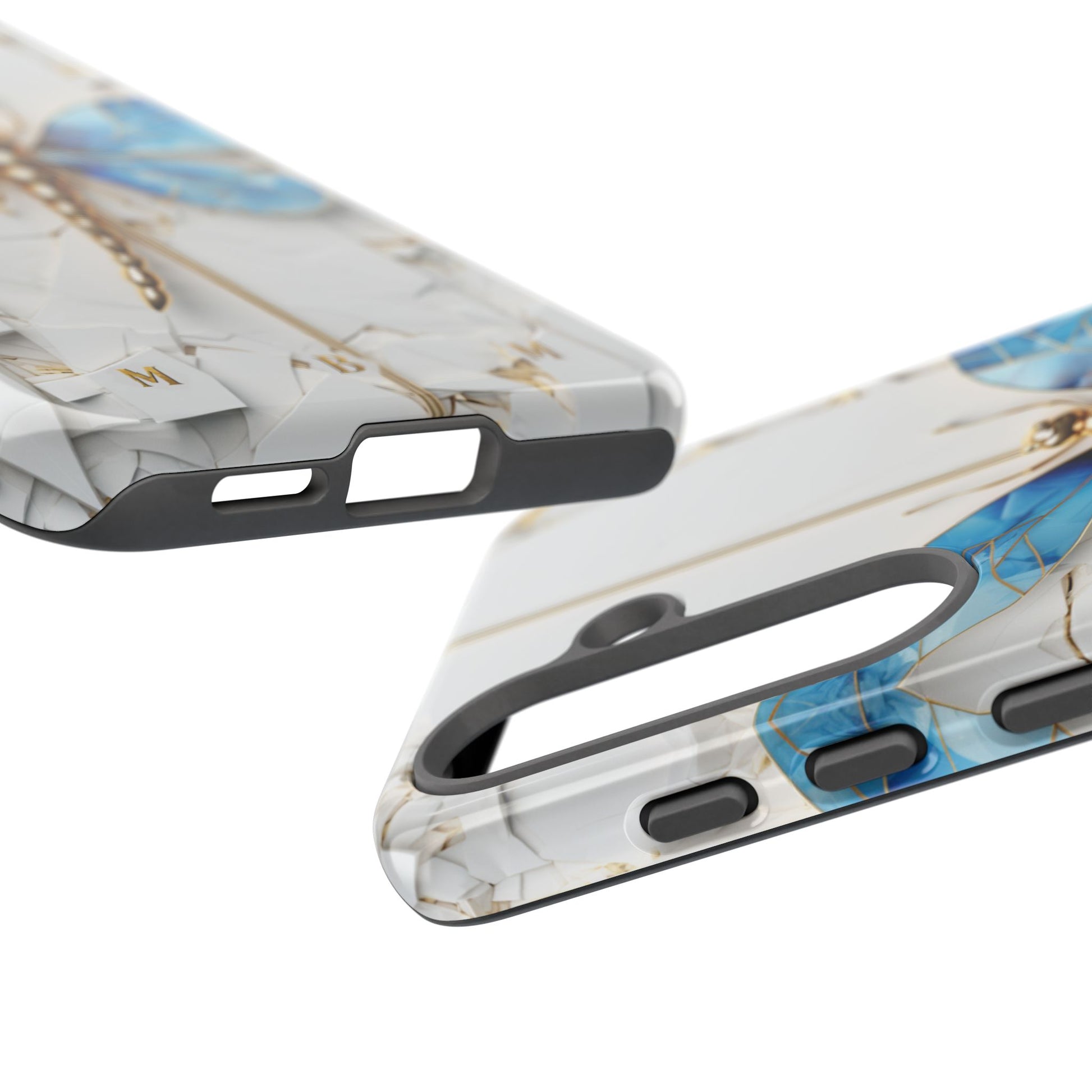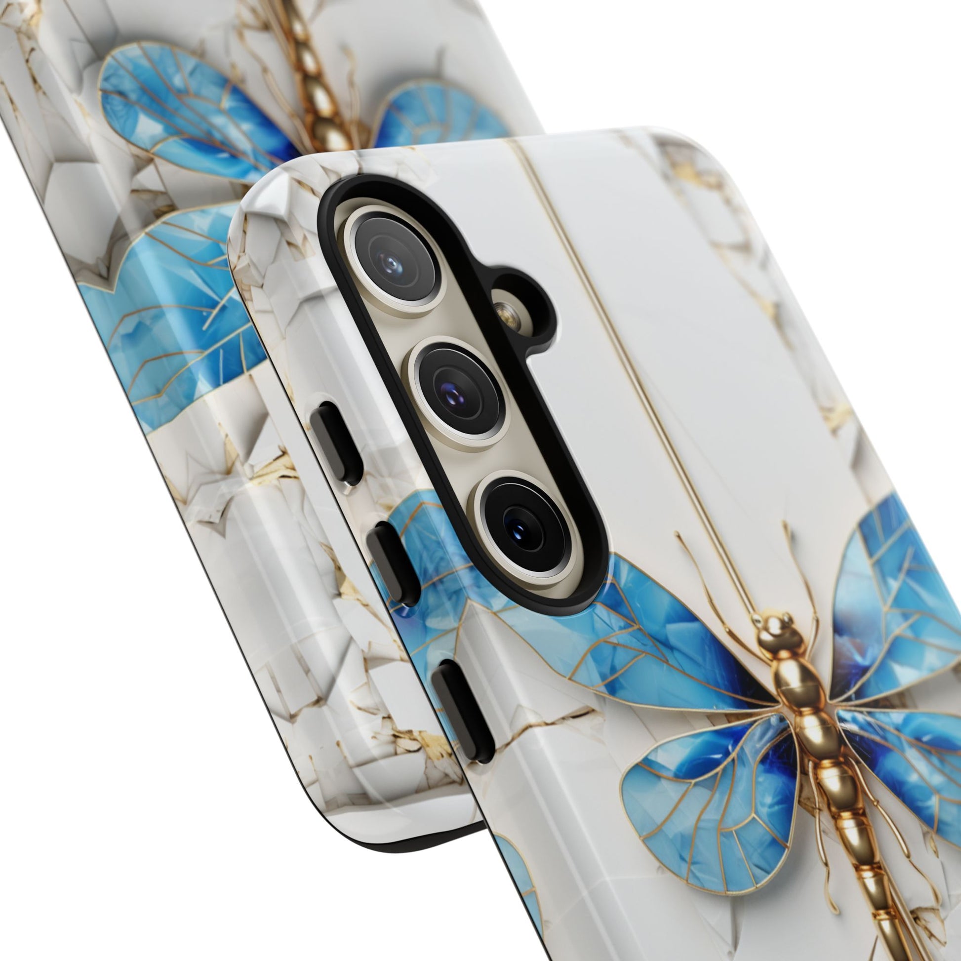 Dragonfly Blue iPhone Tough Case, where elegance meets resilience in a stunning fusion of artistry and protection. Elevate your iPhone experience with this exquisite case that seamlessly combines beauty and durability. But what truly sets this case apart is its unique crackle white material, intricately adorned with golden lines that mimic the natural patterns of cracked porcelain. This exquisite detailing adds a touch of opulence and refinement, elevating the case to a true work of art. Whether you're a nature enthusiast, a lover of all things elegant, or simply someone who appreciates fine craftsmanship, the Dragonfly Blue iPhone Tough Case is the perfect accessory to complement your style. Make a statement while safeguarding your iPhone with this enchanting blend of beauty and resilience. Embrace the allure of the butterfly and experience the epitome of sophistication. Get yours today and let your iPhone soar to new heights of elegance.