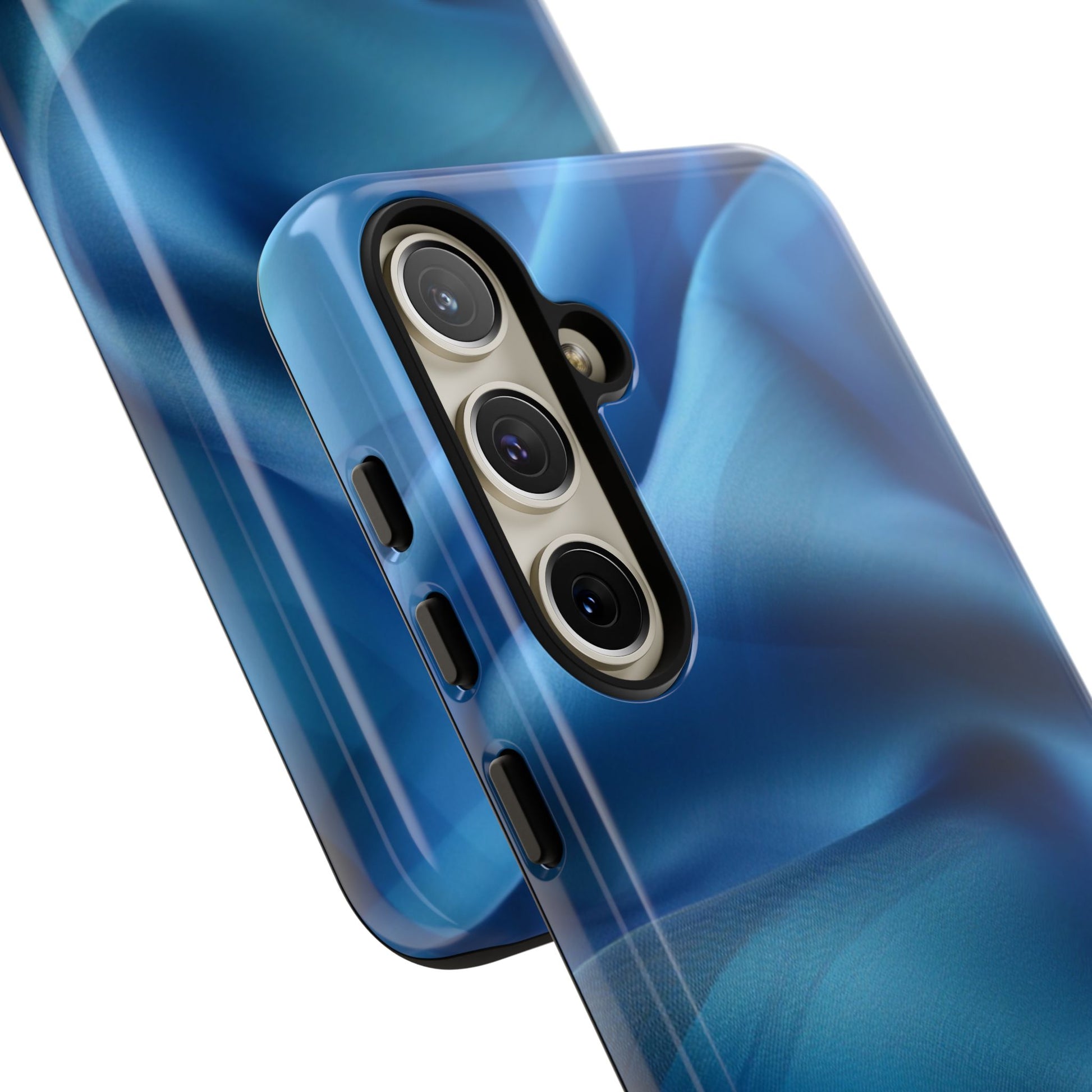 Say hello to your phone’s new best friend: the Indigo Zephyr Phone Case! This beauty flaunts a graphic of blue shades flowing in a plaid pattern, like fabric caught in a fabulous windstorm. It’s the perfect mix of classy and cool, making your phone not just a gadget but a fashion statement. This case isn’t just about good looks—it's built to protect your phone from all the little oopsies life throws at you. So, if you're into turning heads and keeping your phone safe, the Indigo Zephyr is your new go-to. Grab one now and let your phone catch some stylish air!