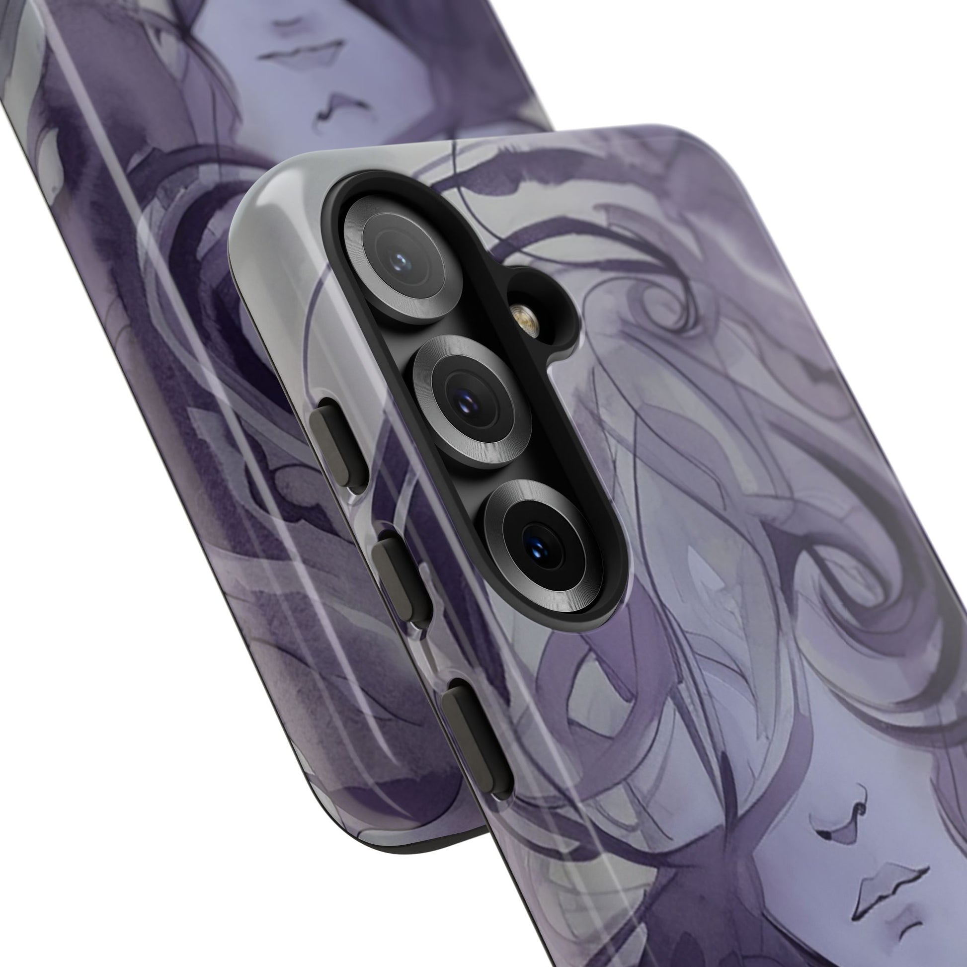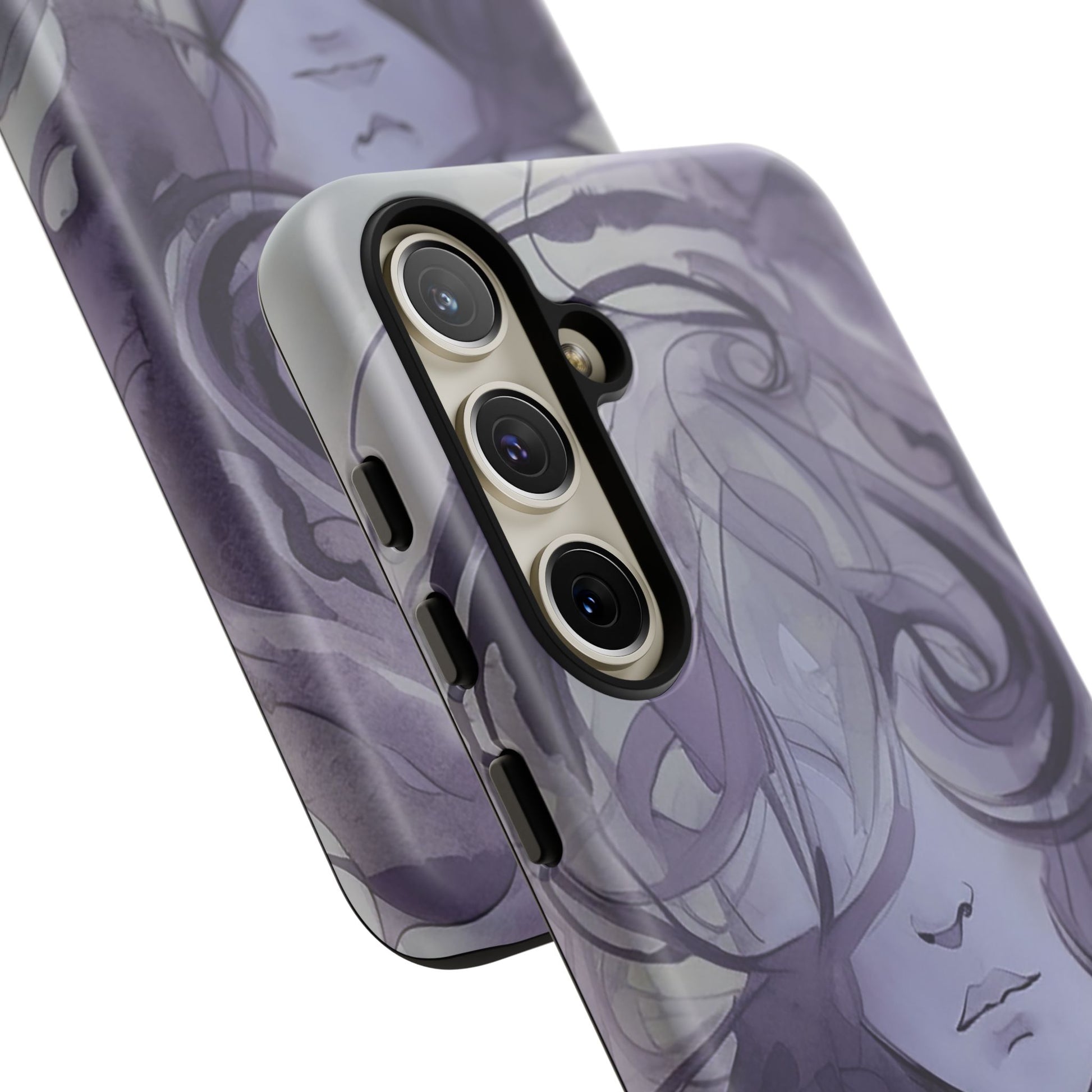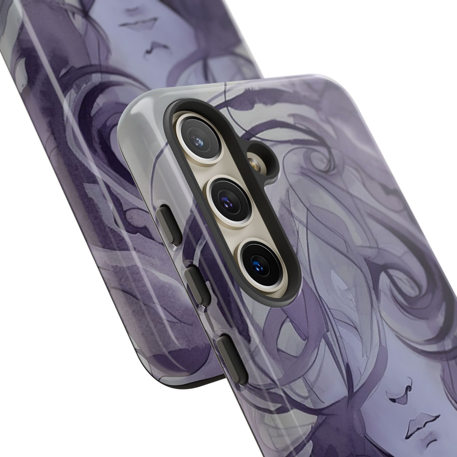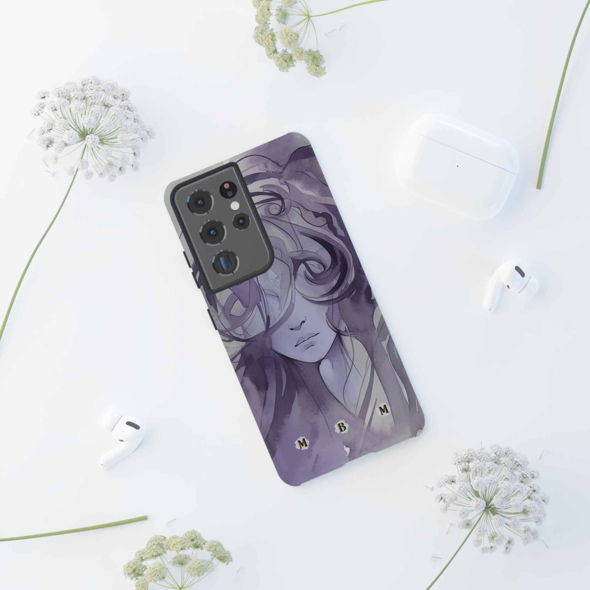 Art meets phone protection at last! This case features a stunning watercolor image of a woman’s face in shades of purple. Her curly hair cascades down, covering half of her face, leaving just her nose and mouth in view. She’s not smiling, but she’s definitely making a statement! Perfect for those who appreciate a touch of mystery and artistry. This case not only turns your phone into a portable masterpiece but also keeps it safe from life’s little mishaps. Add a splash of purple intrigue to your everyday style with the Lonely Girl Phone Case. Your phone just got a whole lot cooler!