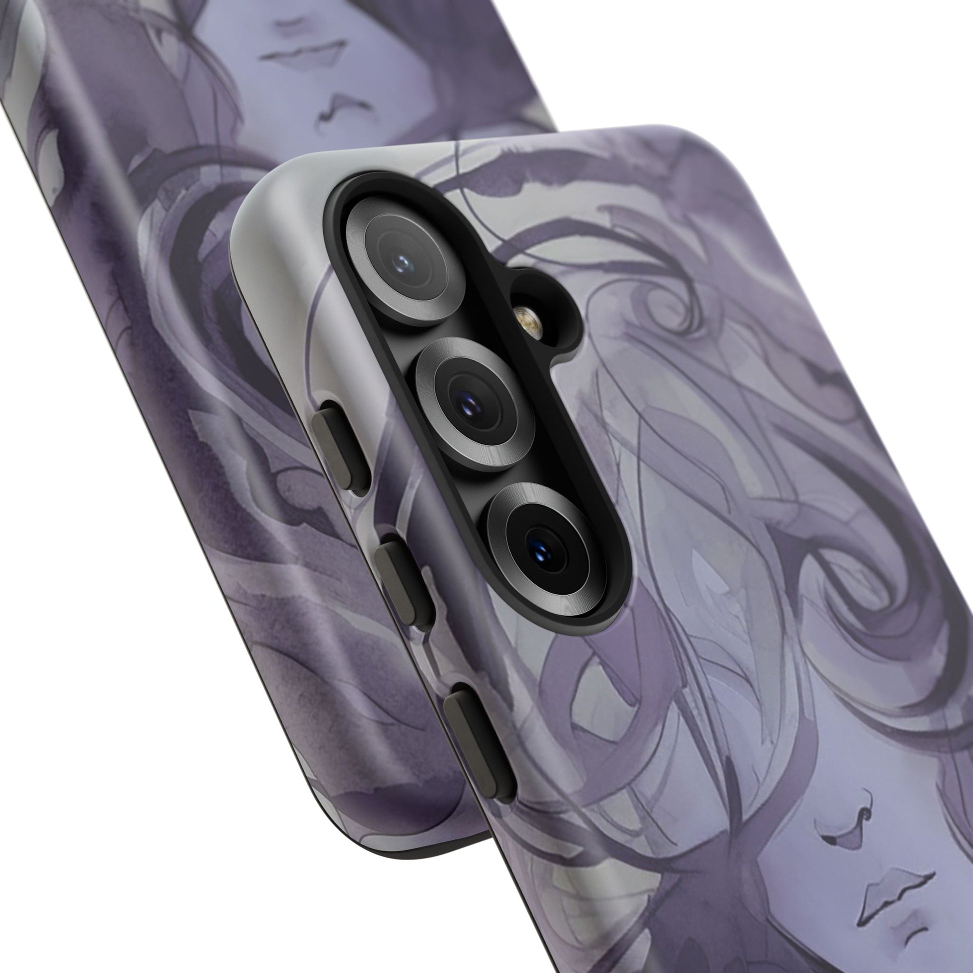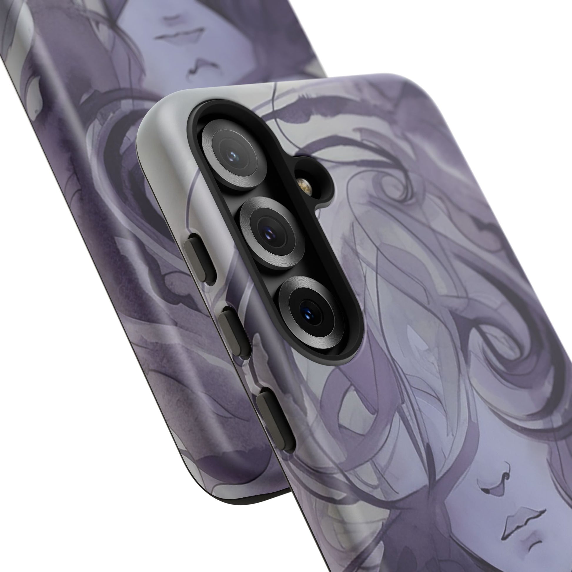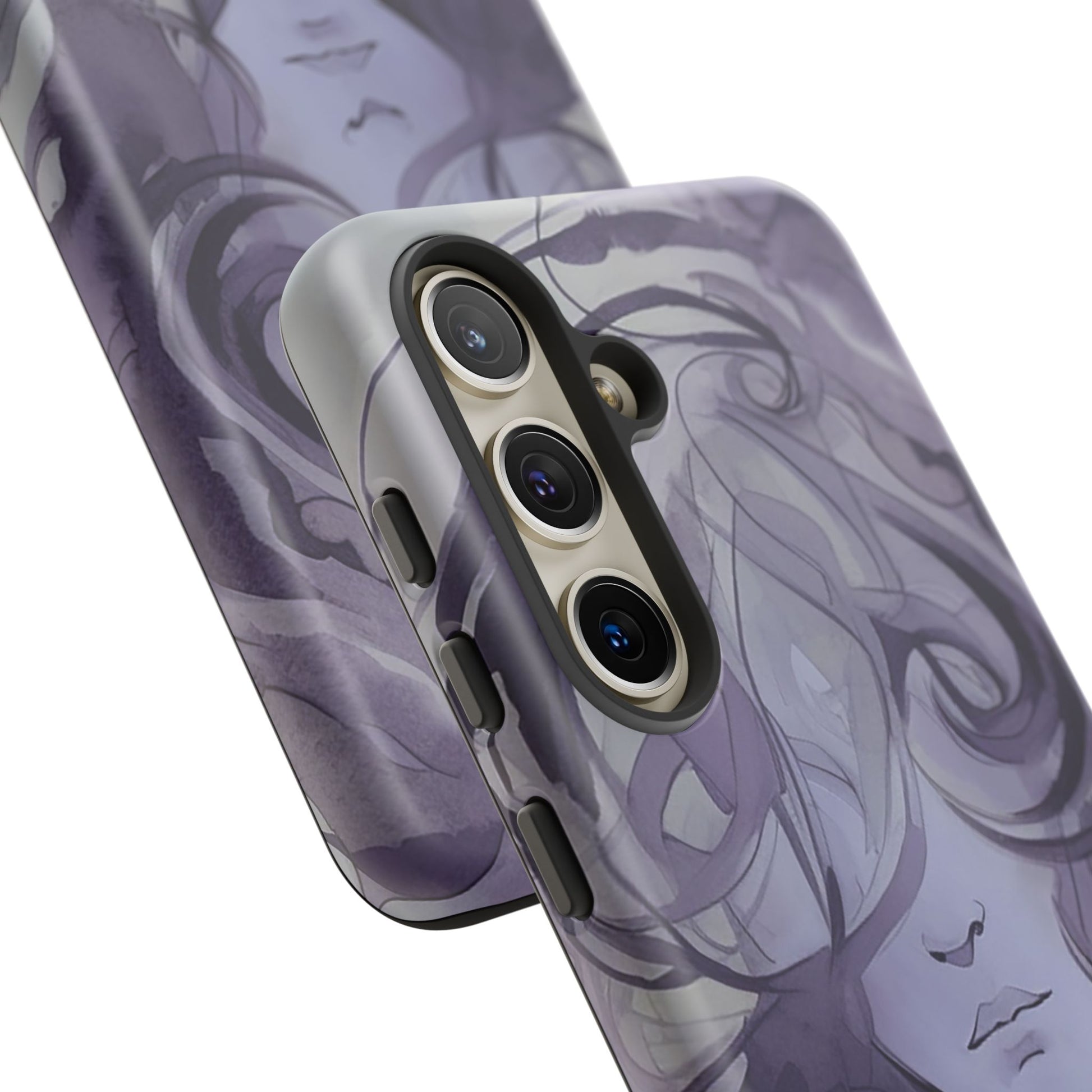 Art meets phone protection at last! This case features a stunning watercolor image of a woman’s face in shades of purple. Her curly hair cascades down, covering half of her face, leaving just her nose and mouth in view. She’s not smiling, but she’s definitely making a statement! Perfect for those who appreciate a touch of mystery and artistry. This case not only turns your phone into a portable masterpiece but also keeps it safe from life’s little mishaps. Add a splash of purple intrigue to your everyday style with the Lonely Girl Phone Case. Your phone just got a whole lot cooler!