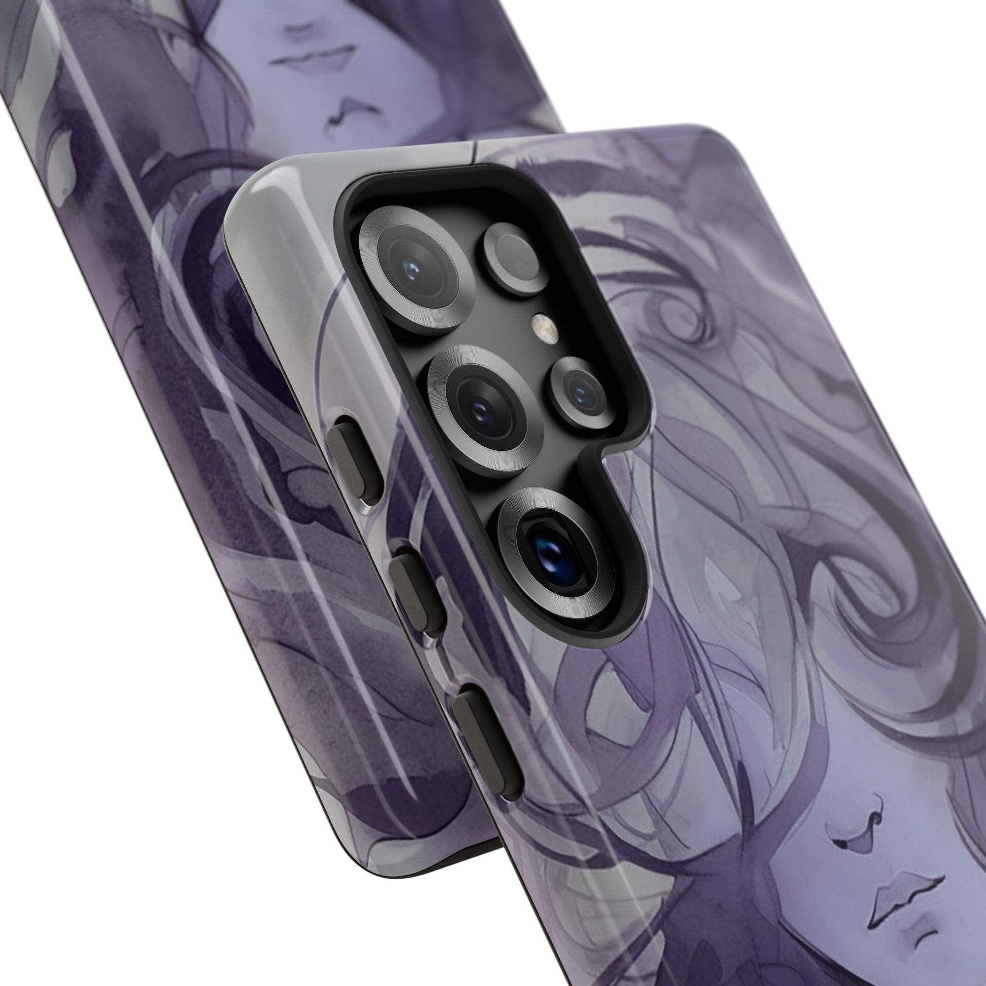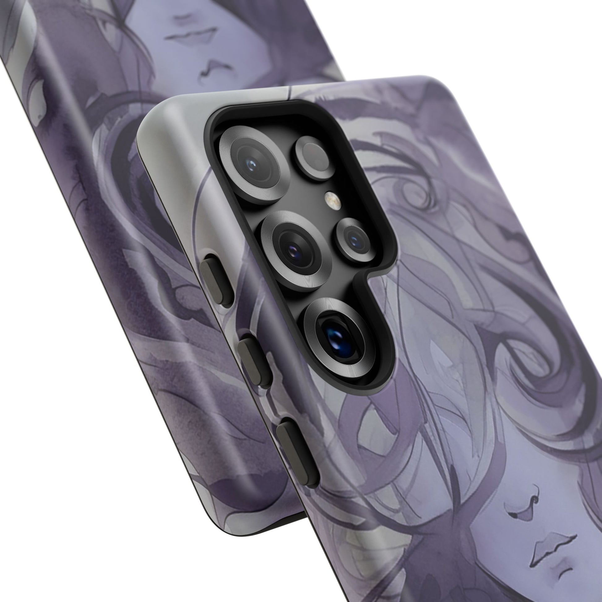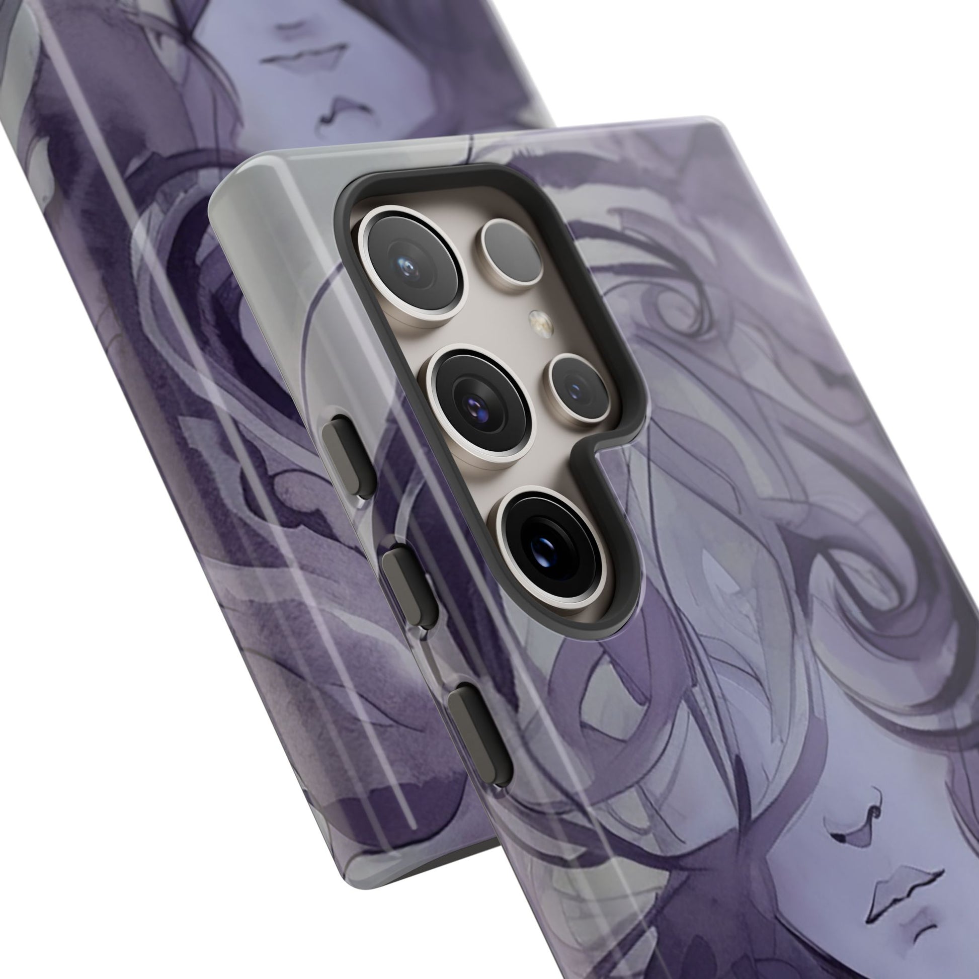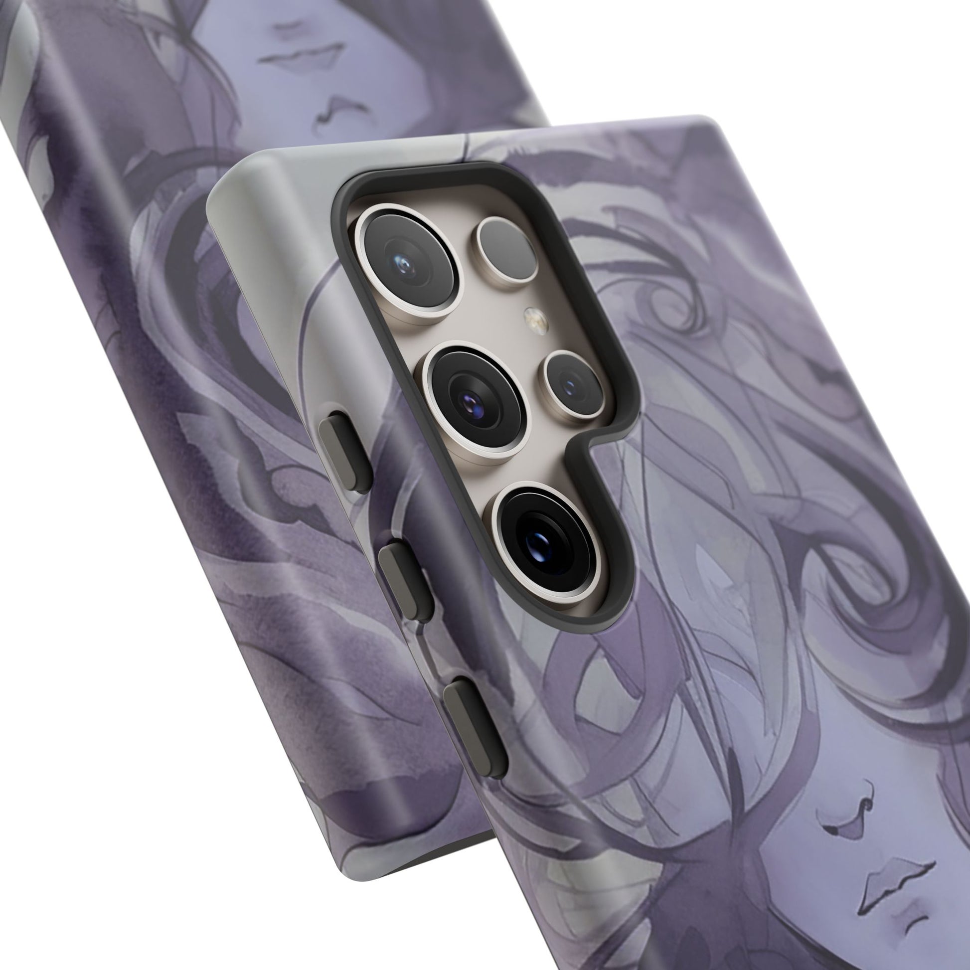 Art meets phone protection at last! This case features a stunning watercolor image of a woman’s face in shades of purple. Her curly hair cascades down, covering half of her face, leaving just her nose and mouth in view. She’s not smiling, but she’s definitely making a statement! Perfect for those who appreciate a touch of mystery and artistry. This case not only turns your phone into a portable masterpiece but also keeps it safe from life’s little mishaps. Add a splash of purple intrigue to your everyday style with the Lonely Girl Phone Case. Your phone just got a whole lot cooler!