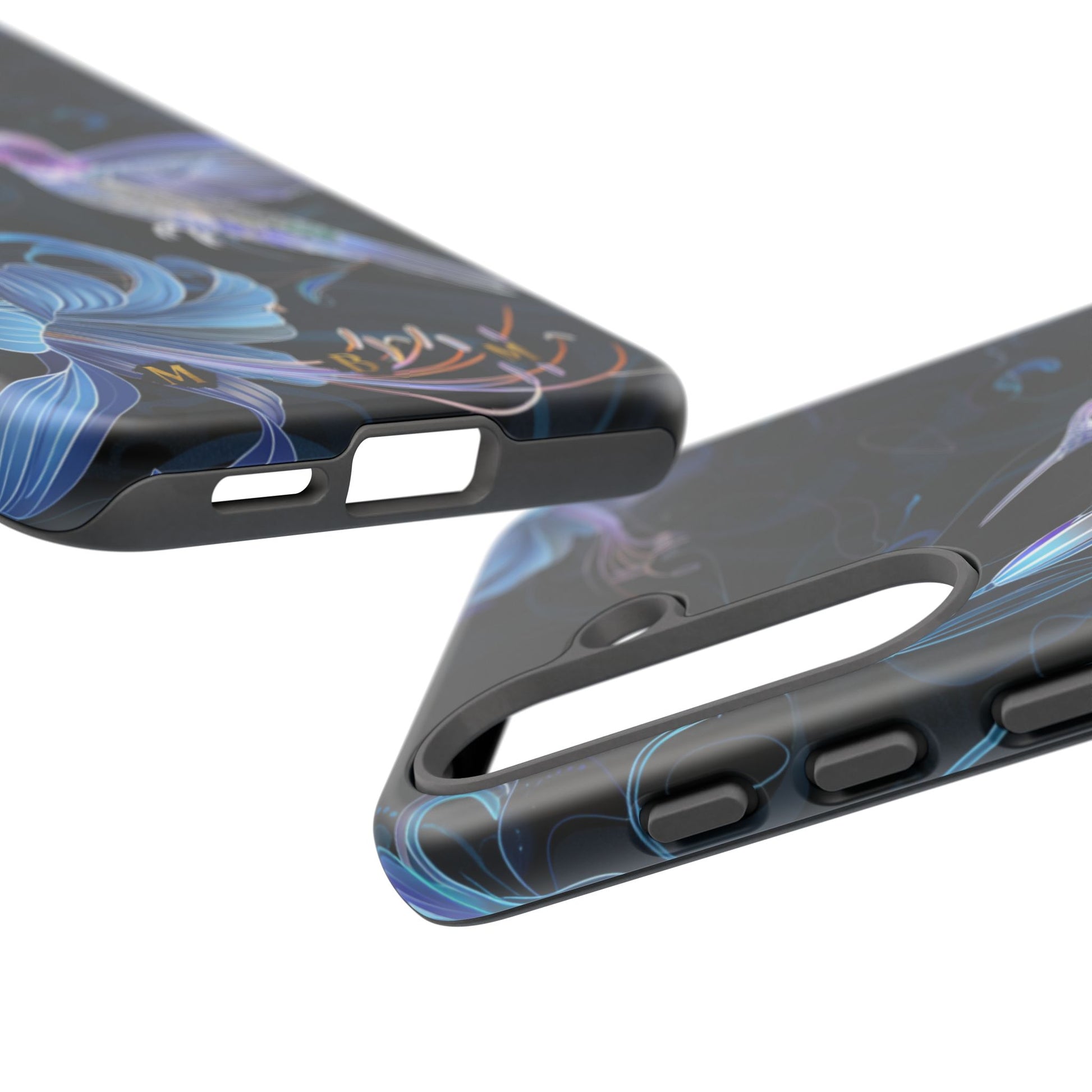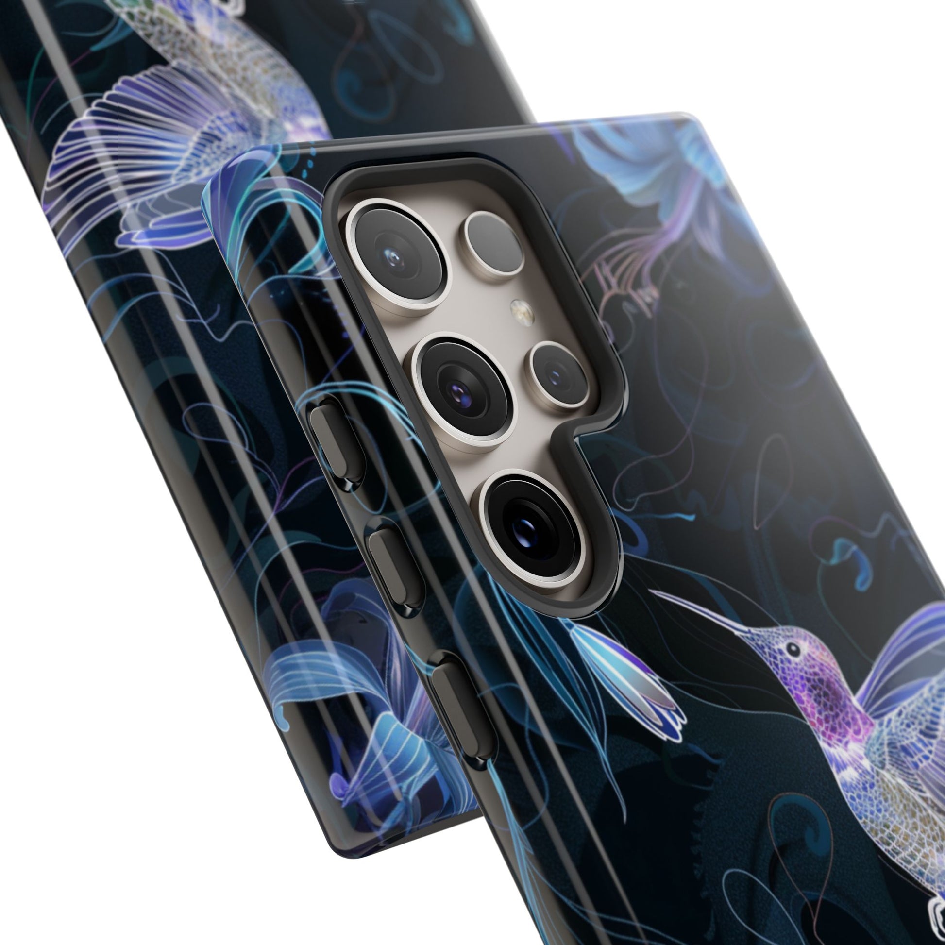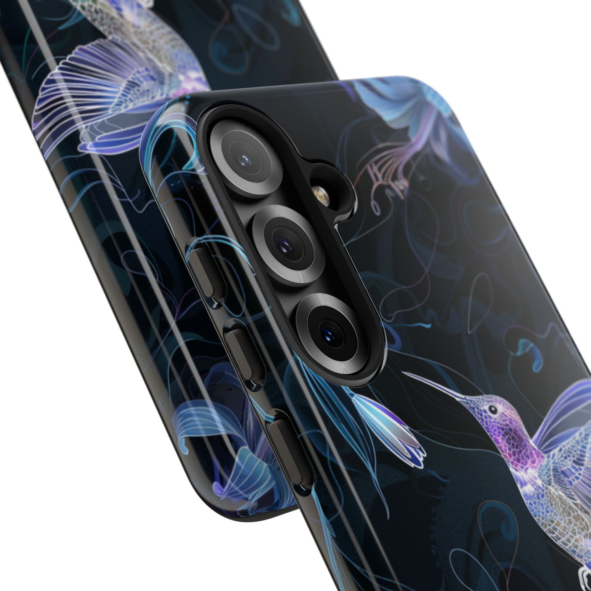 Luminous Flutter is a cosmic cocktail of dark elegance and luminous flair. The hummingbird isn’t just hovering—it’s stealing the show in an ethereal light display. Perfect for anyone who knows that blending in is so last season. Be radiant. Be rebellious. Be ready for compliments.