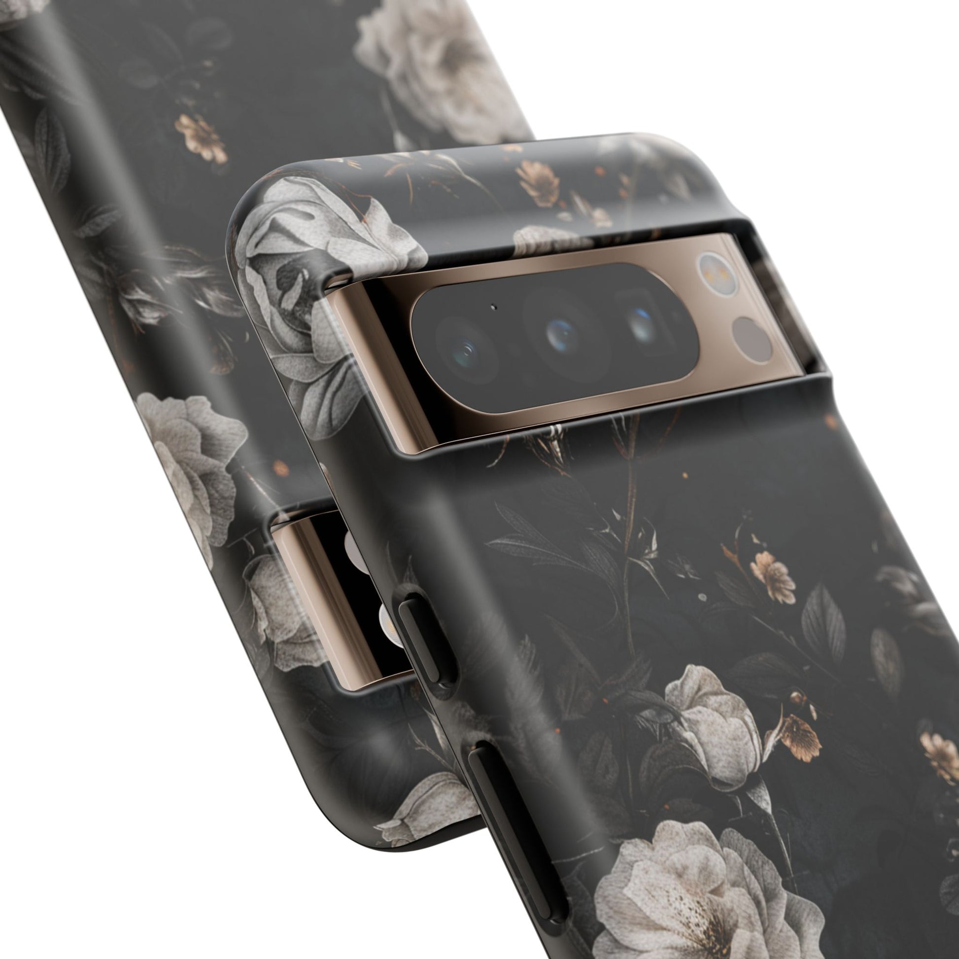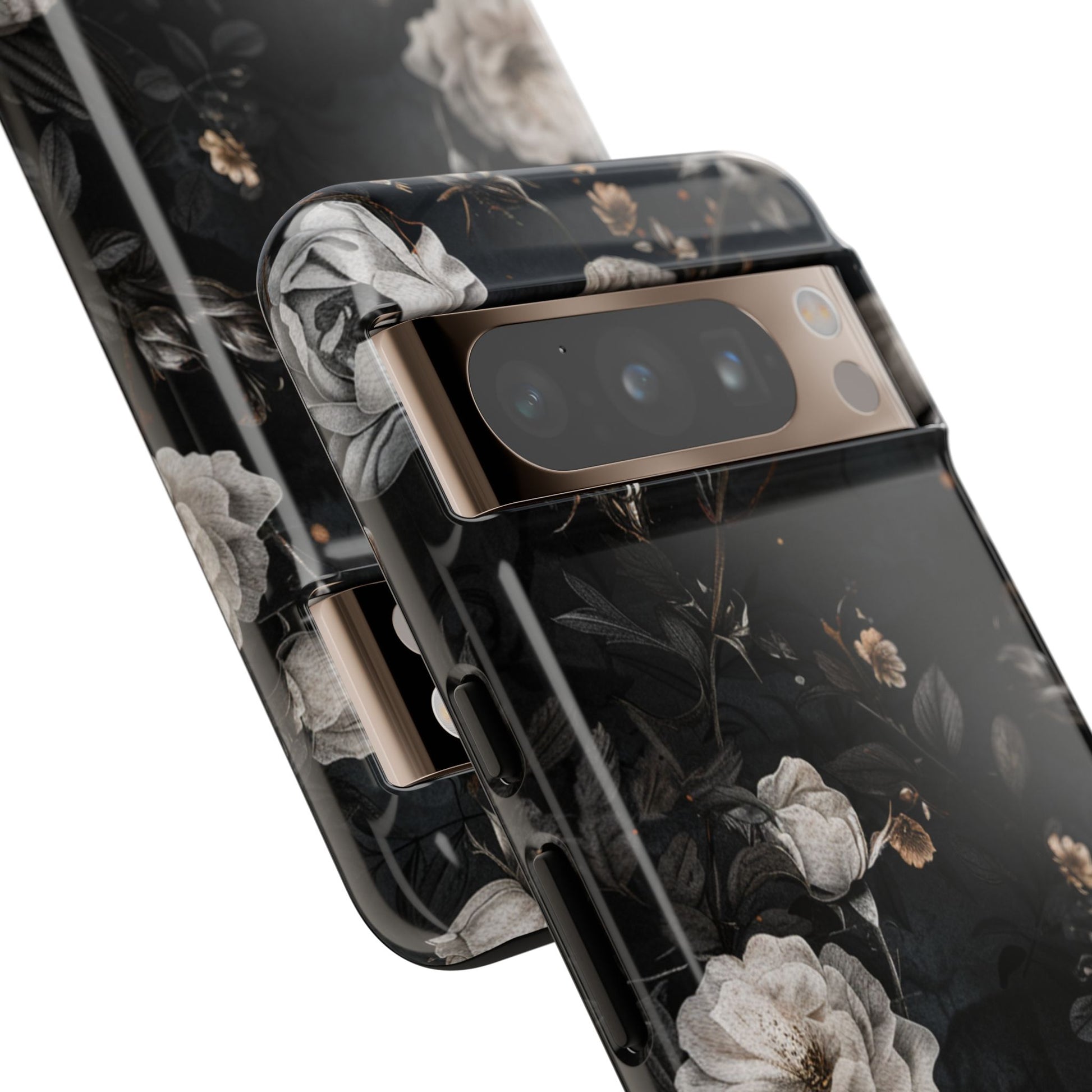 Once upon a midnight dreary, your phone sat unadorned—until 'Mourning Flora' arrived. Draped in whispers of gothic charm, this case tells a story of elegance turned rogue. Perfect for those who prefer their gardens a little darker, their nights a little longer, and their style entirely untamed.