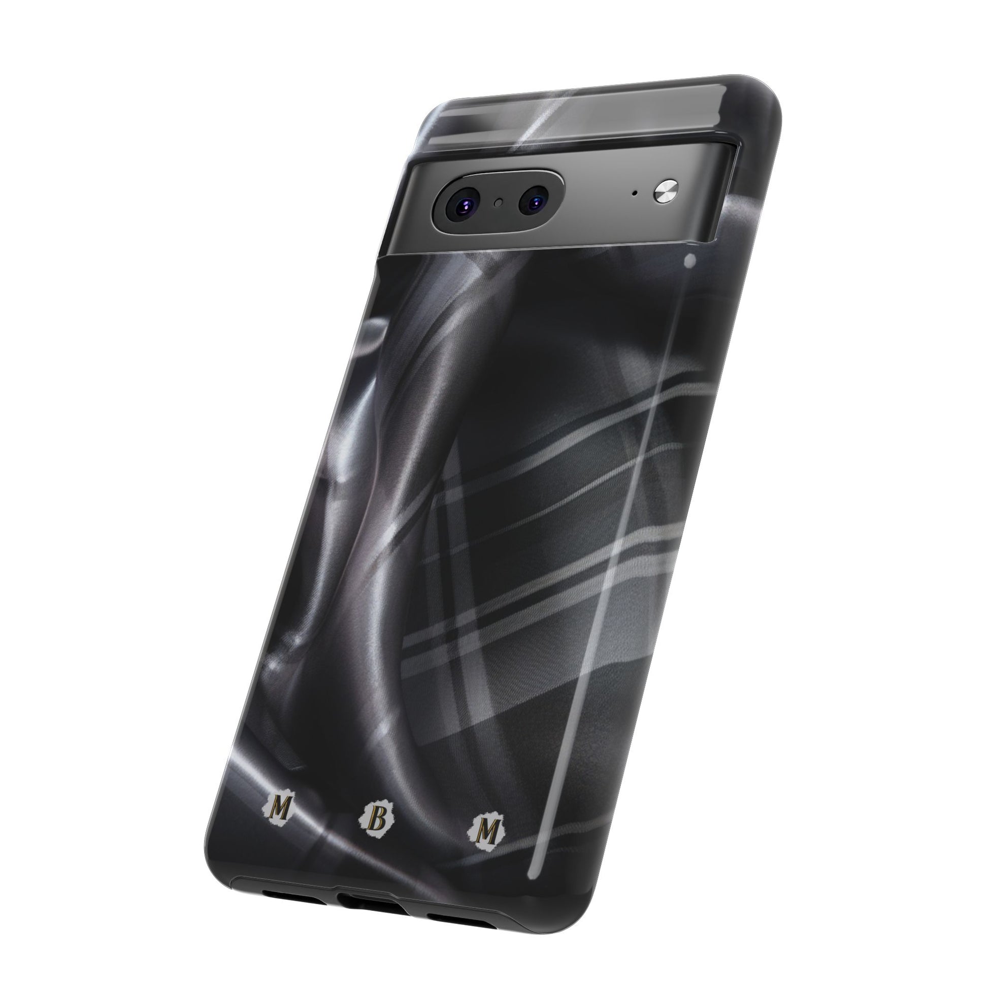 Where sleek style and ultimate protection collide! This bad boy features a graphic of charcoal black and gray shades with snazzy silver highlights, all flowing in a plaid pattern that looks like it's breezing through a high-fashion wind tunnel. Your phone will be the coolest kid on the block, turning heads and dodging danger like a pro. If you’re all about keeping it classy while showing off a bit of edge, Onyx Zephyr is your perfect match. Snap one on and let your phone steal the spotlight (pun intended)!