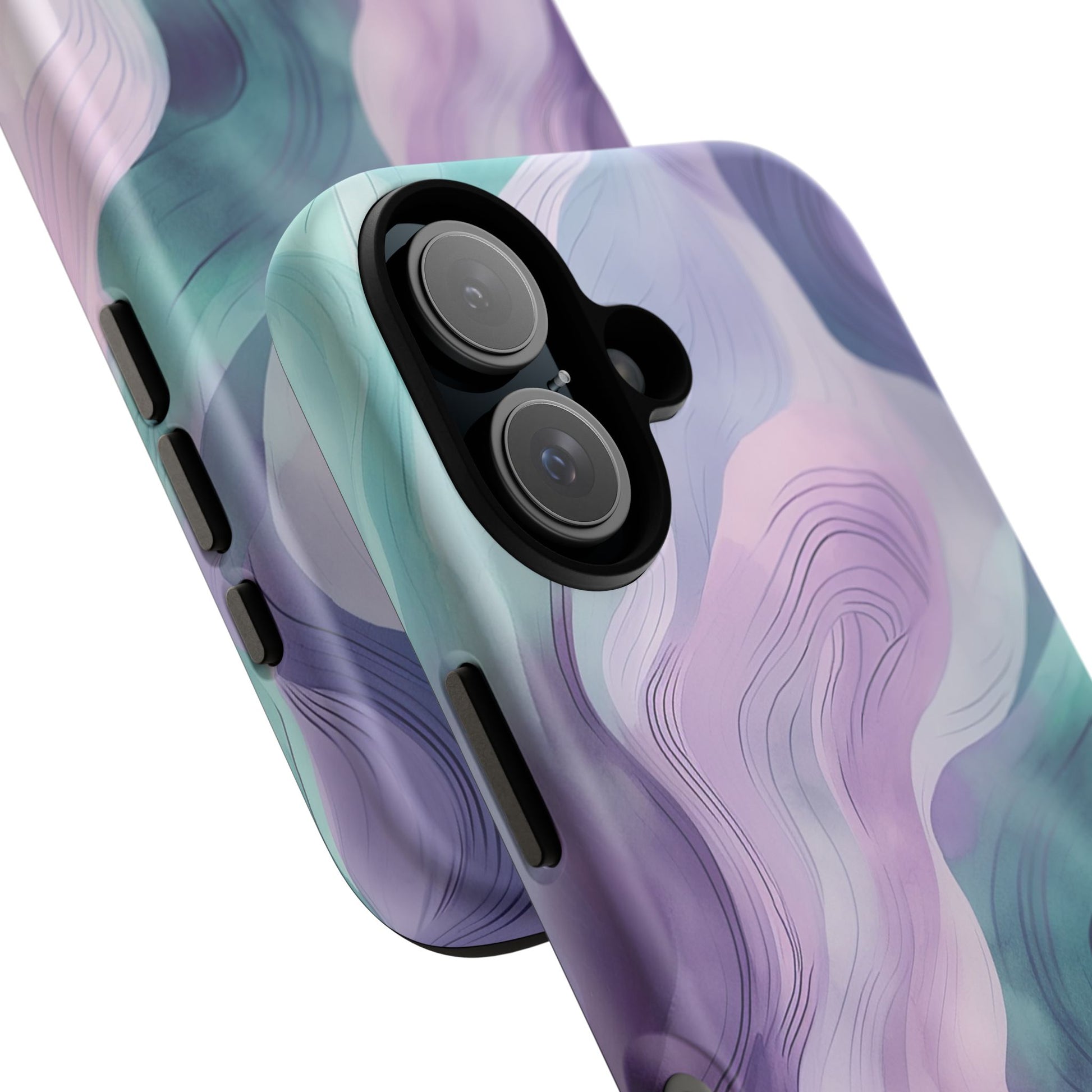 Get ready to ride the wave of style with the Pastel Waves Phone Case! This delightful case features a mesmerizing pattern of wavy vertical lines in dreamy pastel shades of purple, teal, white, and blue. It’s like a chill vibe party for your phone! Perfect for adding a pop of color and a splash of fun to your everyday look. Plus, it’s not just about good looks—this case will keep your phone safe from bumps and scratches. Make your phone the life of the pastel party with the Pastel Waves Phone Case. It’s time to get wavy!