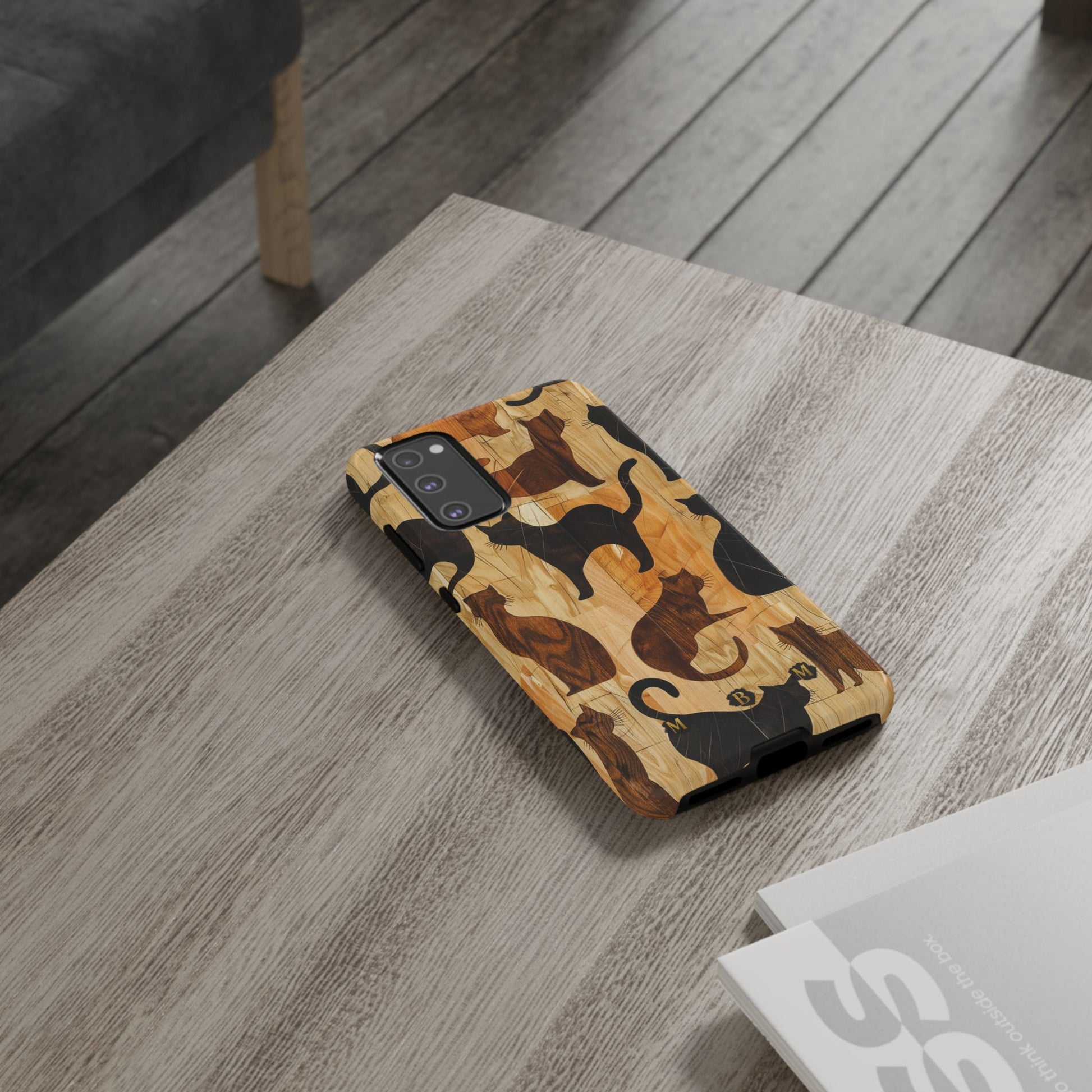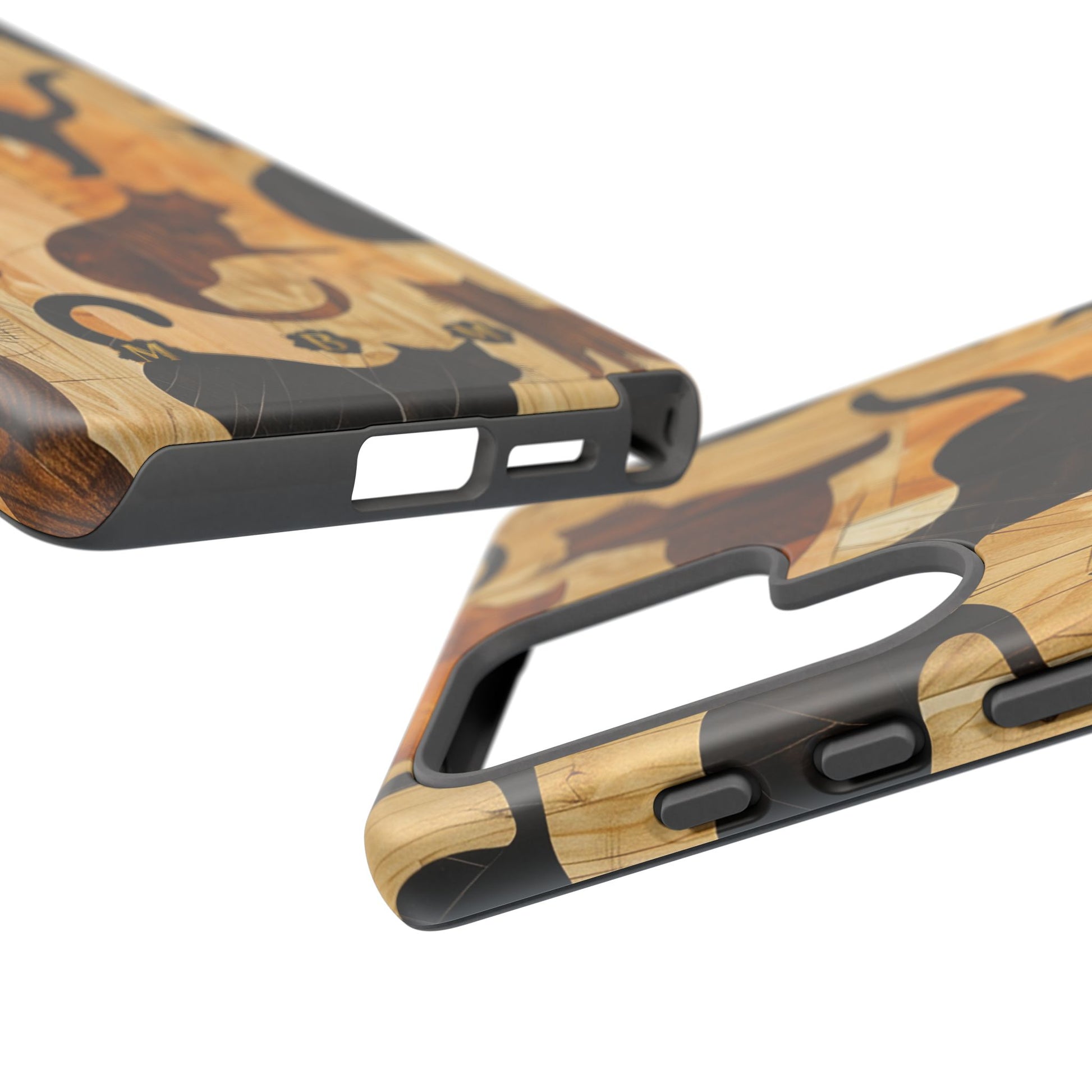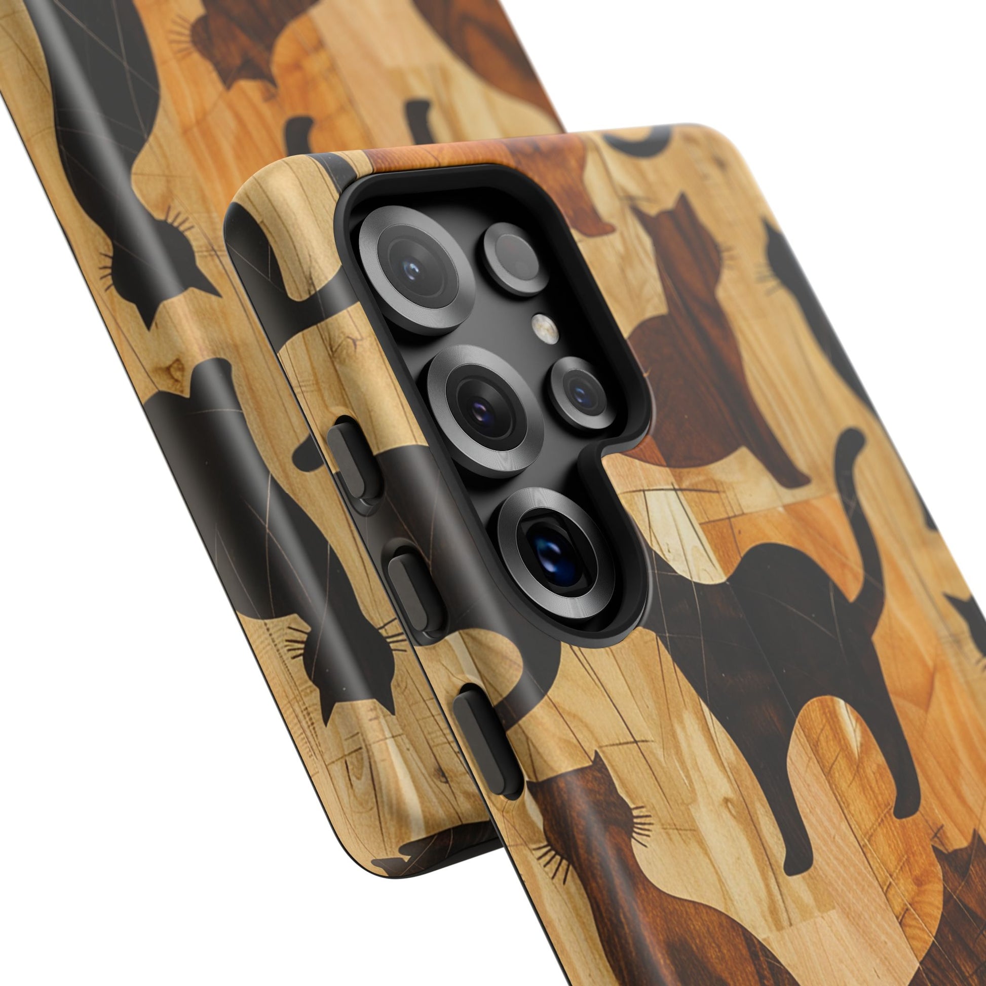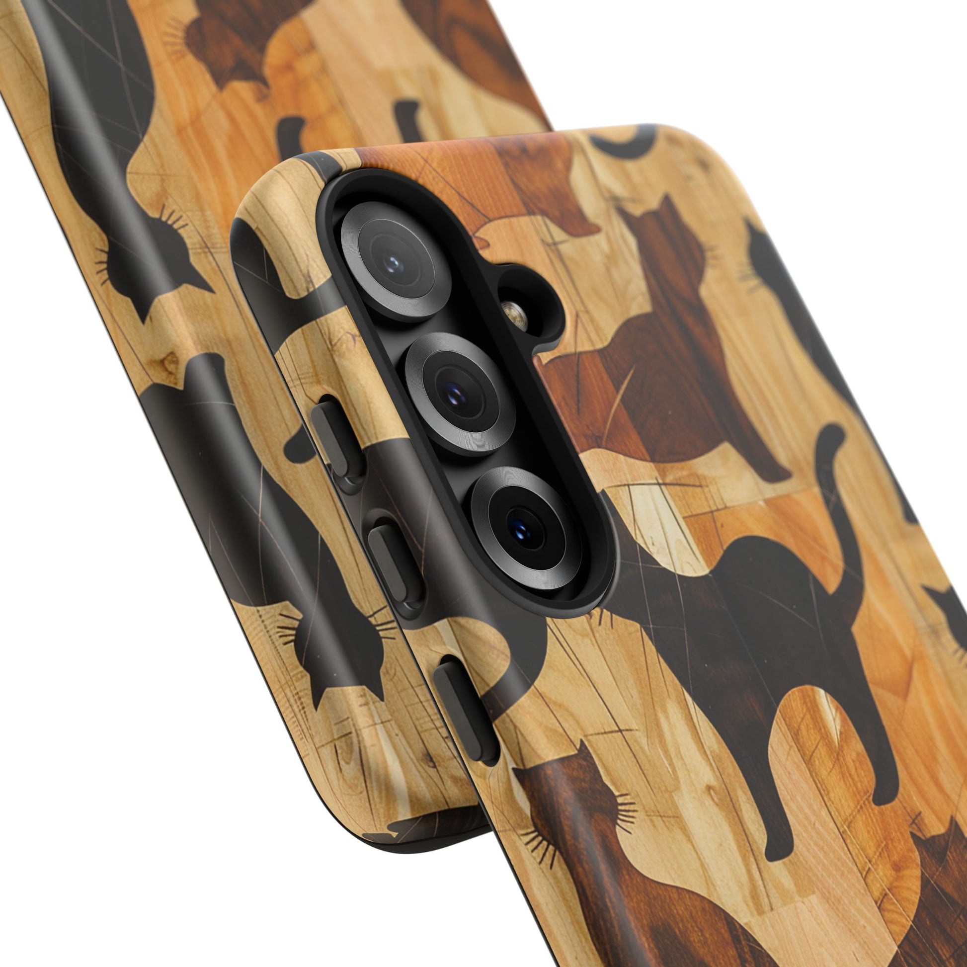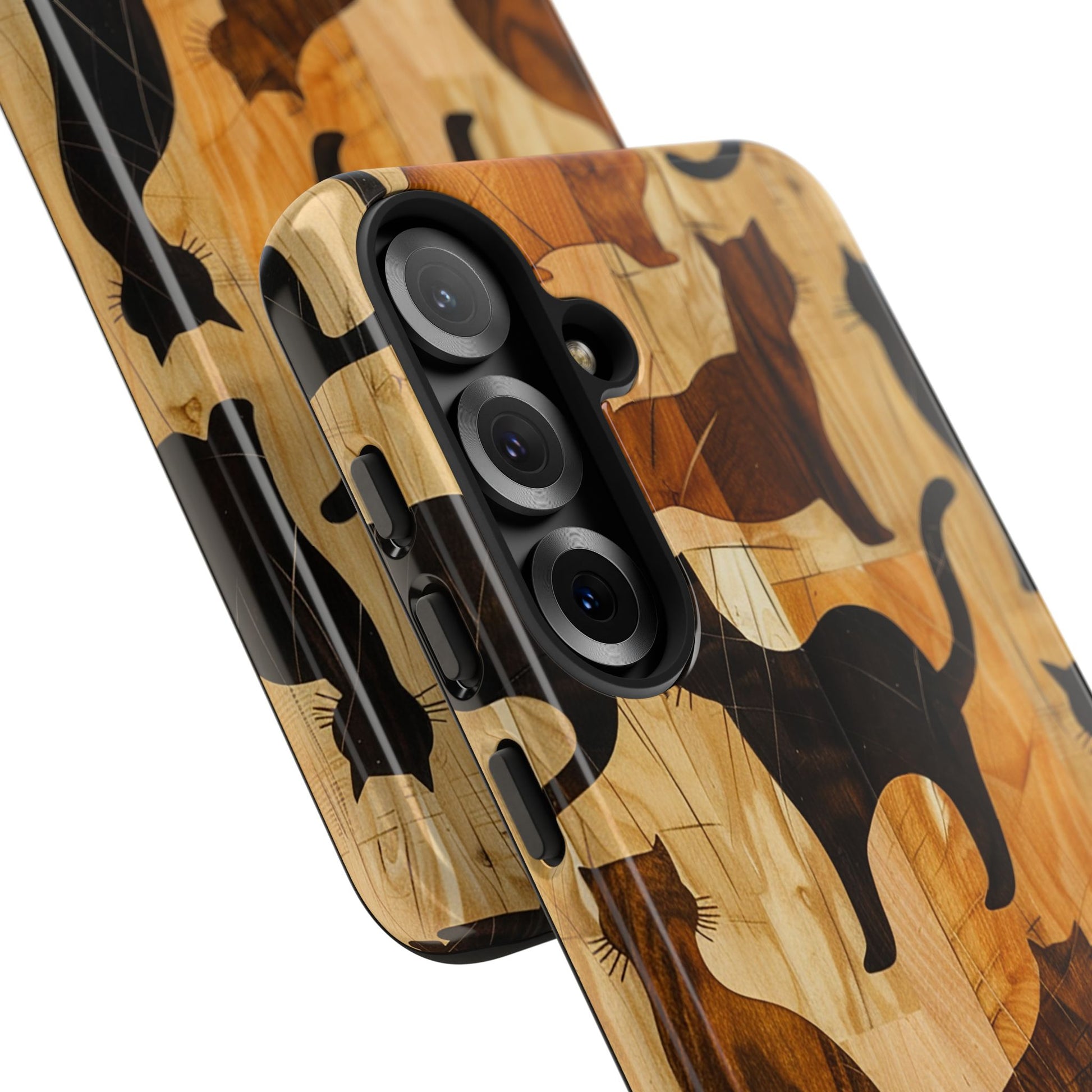 Paws for a moment and behold the purr-fect case for you! Illustrated with the finest pine wood (in 4K!) with the most paw-some feline silhouettes you've ever seen! These cool cats are striking various poses, from stretching to lounging, all seamlessly stained into the wood. It's like having a bunch of furry friends chilling on your phone. Get ready to unleash your inner cat lover and add some whisker-twitching charm to your device. With this case, you'll be feline fine and looking meow-velous wherever you go!