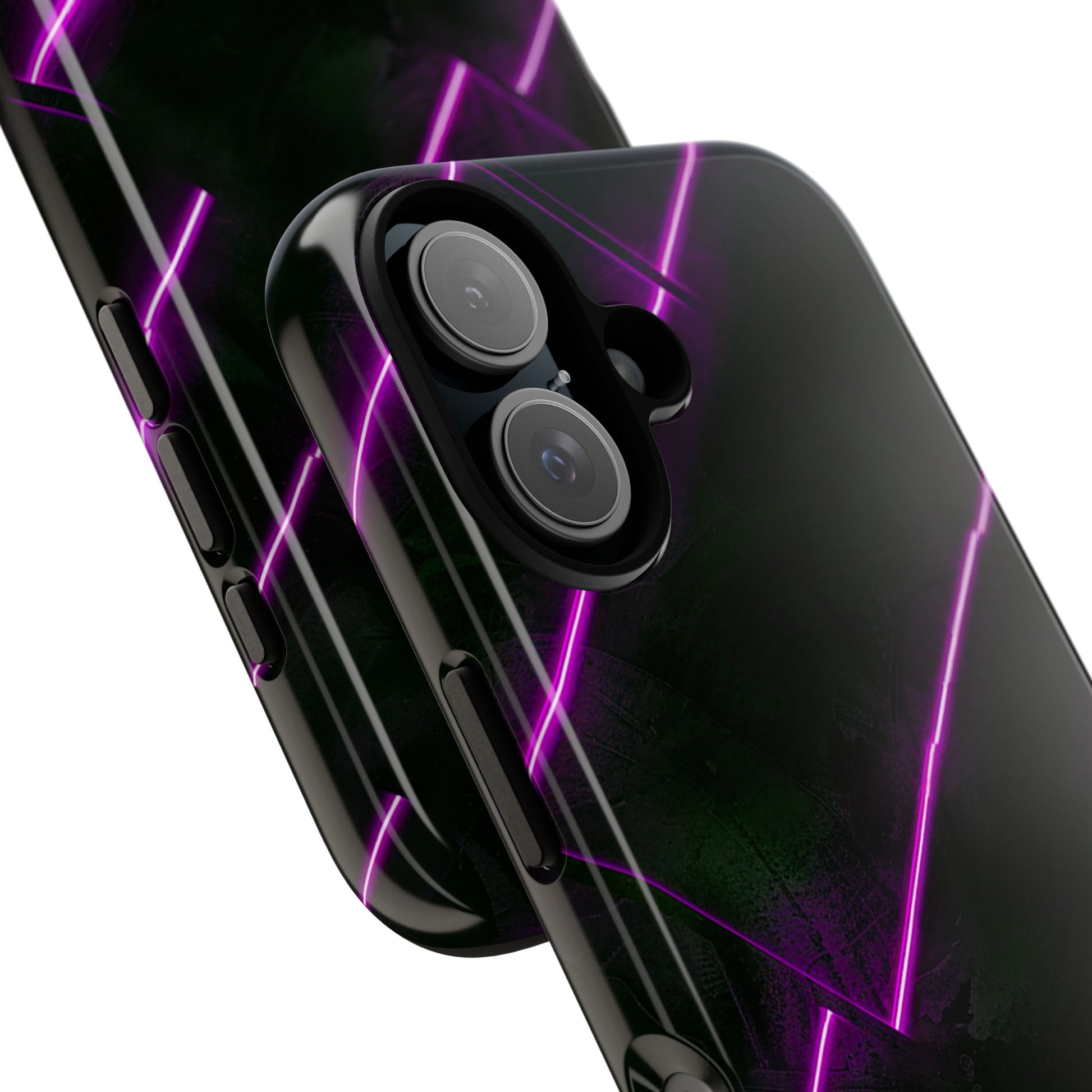 Light up your phone with the Phantom Vapor Phone Case! This sleek, black case gets a stylish twist with diagonal purple neon stripes that form cool geometric patterns. It's simple, minimalistic, and packs just the right pop of color to make your phone stand out from the crowd. Perfect for those who love a modern, edgy look without going overboard. And guess what? It’s not just about the looks—this case will keep your phone safe from all those inevitable bumps and drops. Get ready to shine bright with the Phantom Vapor Phone Case. Your phone just leveled up in coolness!
