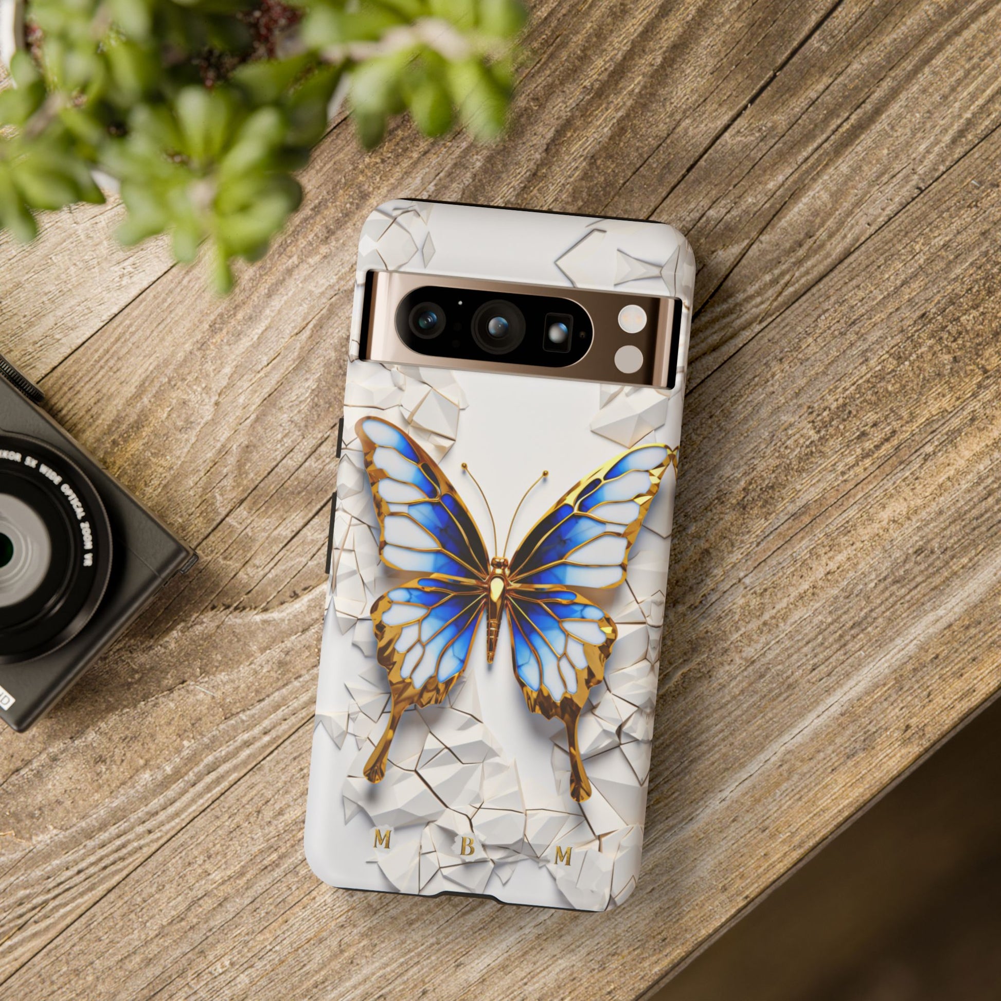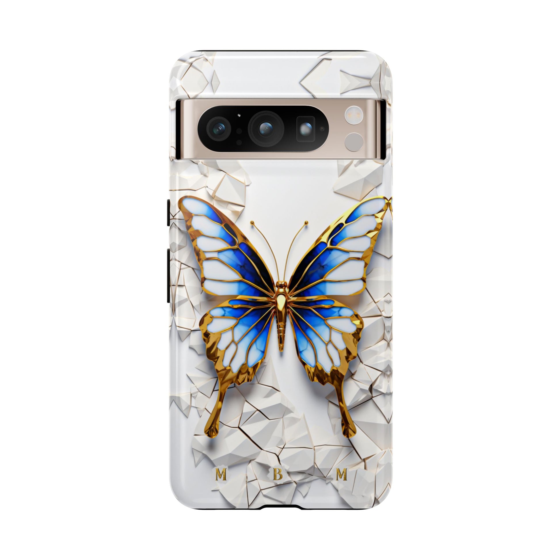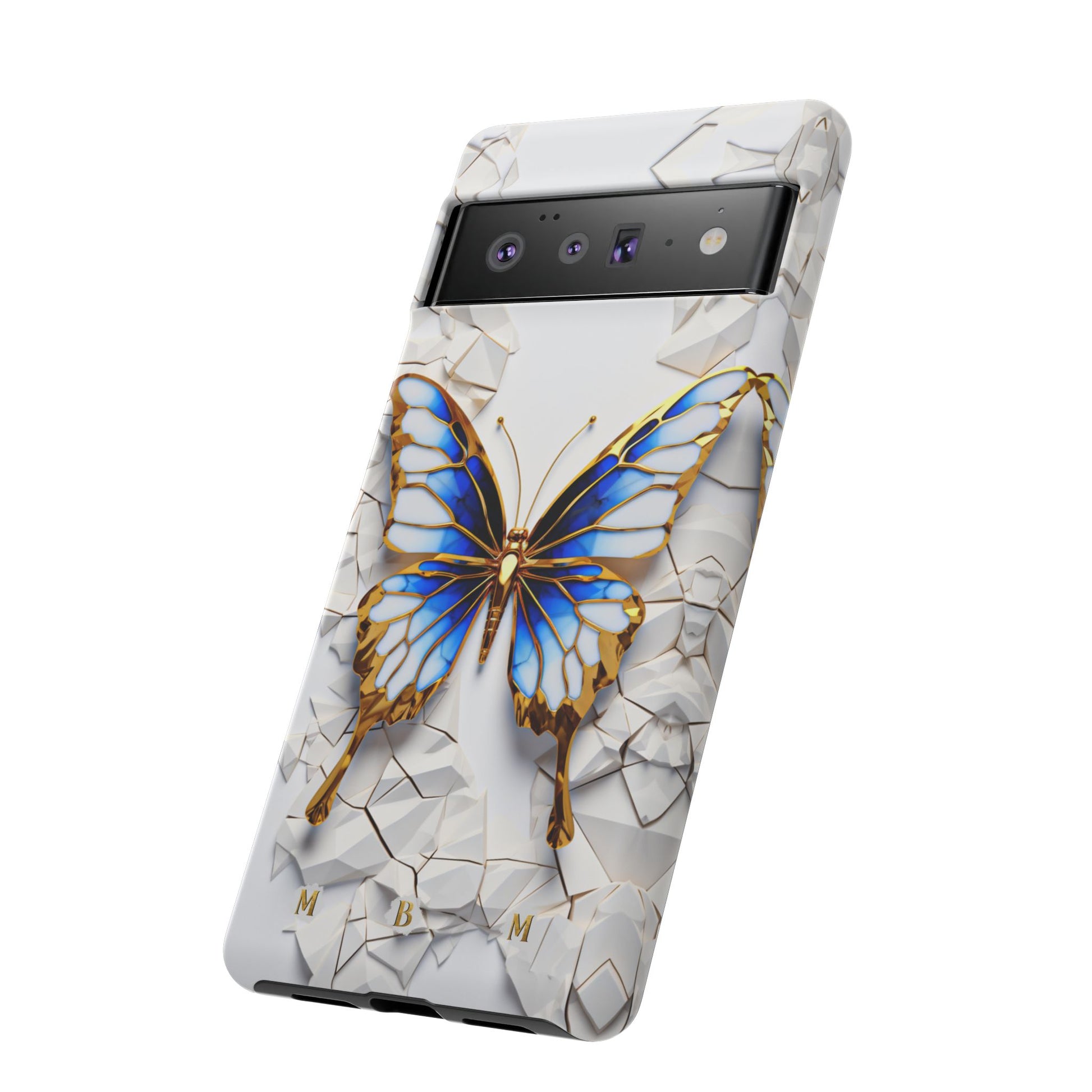 Transform your phone into a piece of wearable art with the Sapphire Butterfly Phone Case! This elegant case features a stunning butterfly with sapphire blue wings, outlined in gold, sitting pretty on a white crackle-effect background. The raised 3D crackle lines are also kissed with gold, giving it that luxe brooch look straight out of a high-end jewelry box. It’s so classy, even your phone will feel like it’s ready to attend a royal ball. Not only will you look fabulously chic, but your phone will also be protected with style. Elevate your phone game with the Sapphire Butterfly Phone Case and let your style take flight!