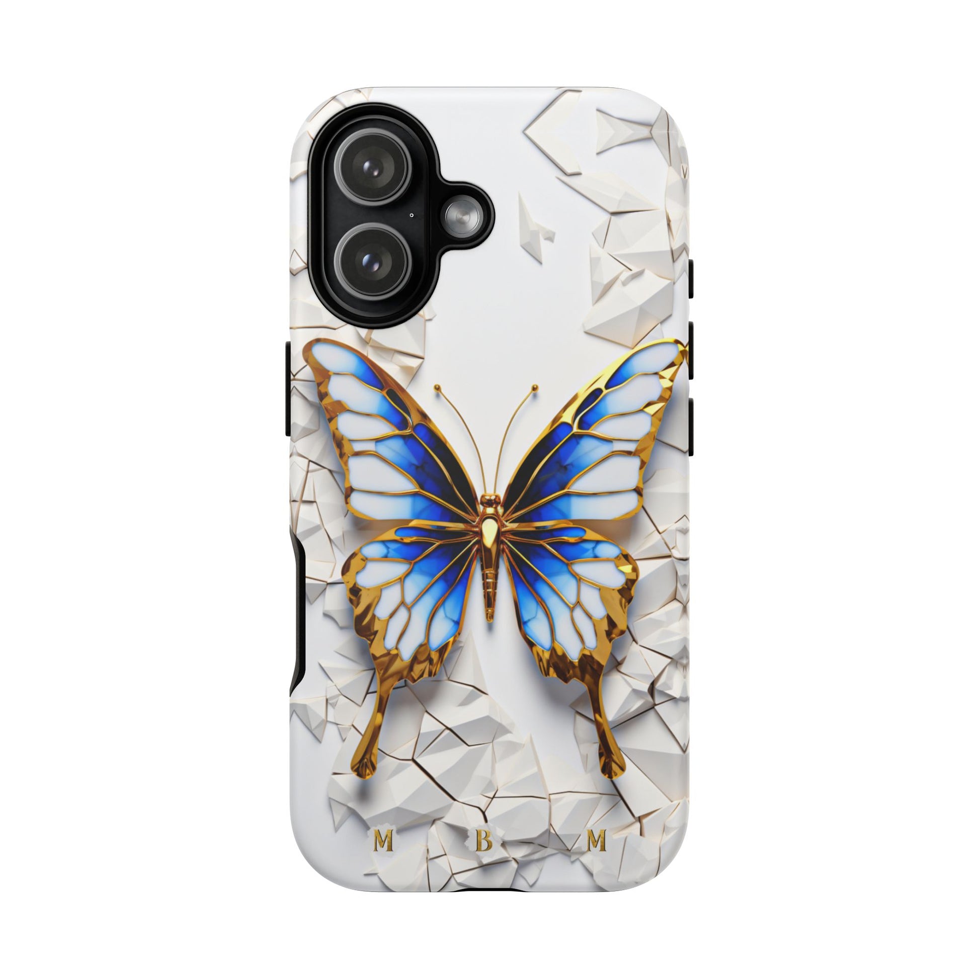 Transform your phone into a piece of wearable art with the Sapphire Butterfly Phone Case! This elegant case features a stunning butterfly with sapphire blue wings, outlined in gold, sitting pretty on a white crackle-effect background. The raised 3D crackle lines are also kissed with gold, giving it that luxe brooch look straight out of a high-end jewelry box. It’s so classy, even your phone will feel like it’s ready to attend a royal ball. Not only will you look fabulously chic, but your phone will also be protected with style. Elevate your phone game with the Sapphire Butterfly Phone Case and let your style take flight!