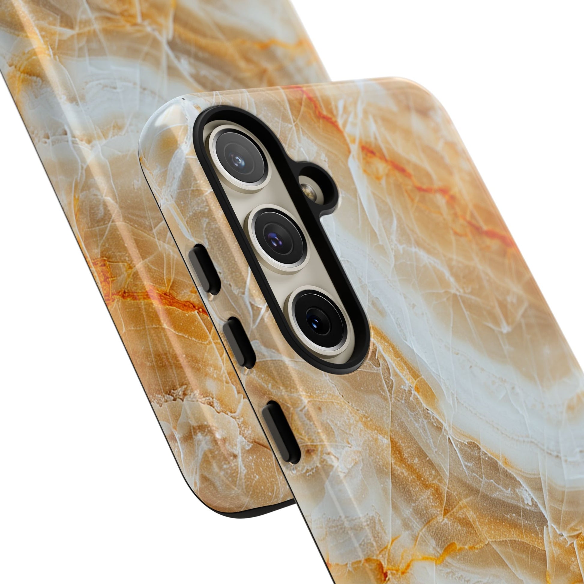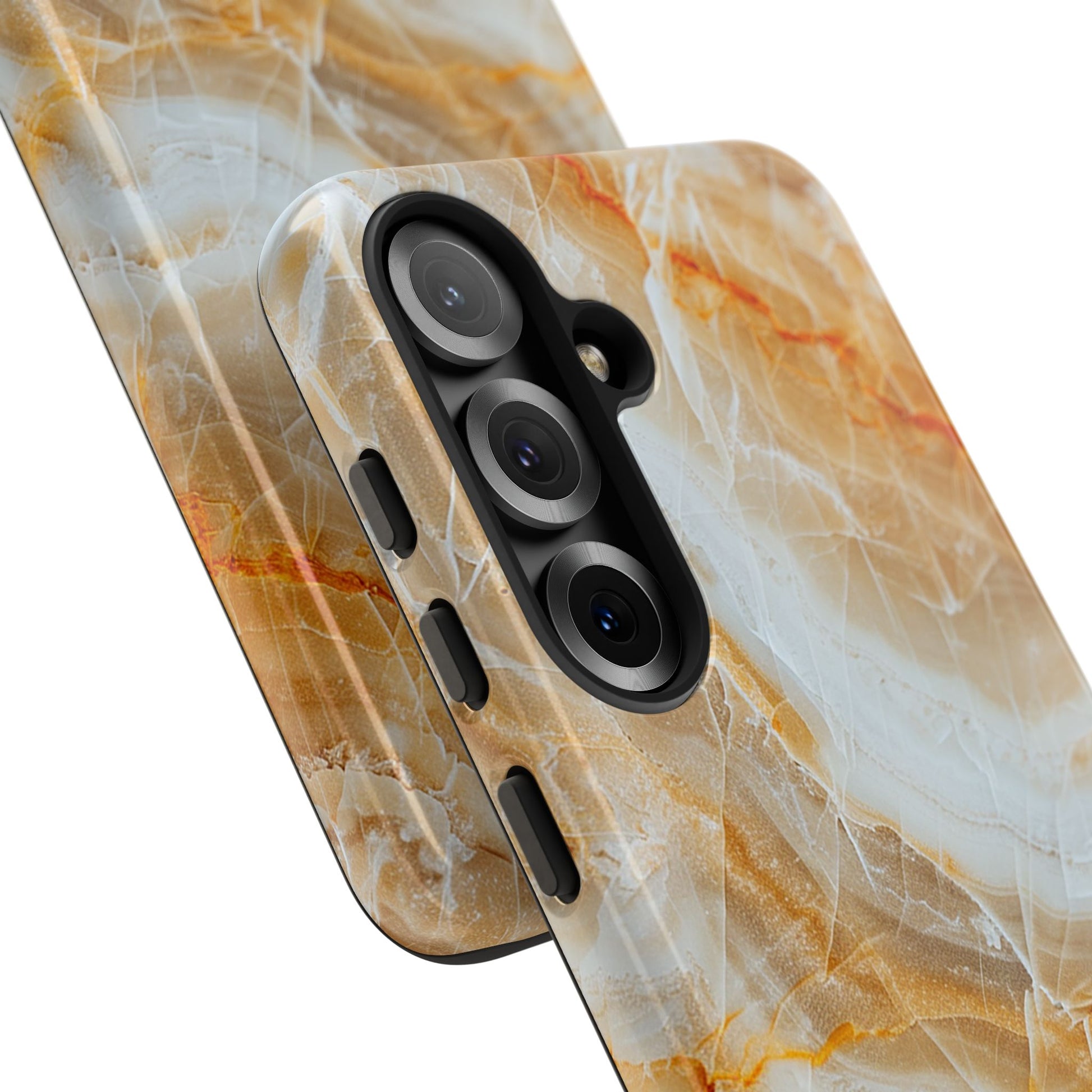 Ready to give your phone a spicy makeover? Check out the Sunburst Quartz Phone Case! This dazzling case showcases a stunning orange and white marble pattern, reminiscent of molten lava frozen in time. It's like having a mini art piece in your pocket! Besides looking absolutely fab, this case is tough enough to handle all of life's little mishaps. Say goodbye to boring and hello to bold with the Sunburst Quartz Phone Case. It's time to let your phone bask in some fiery glory!