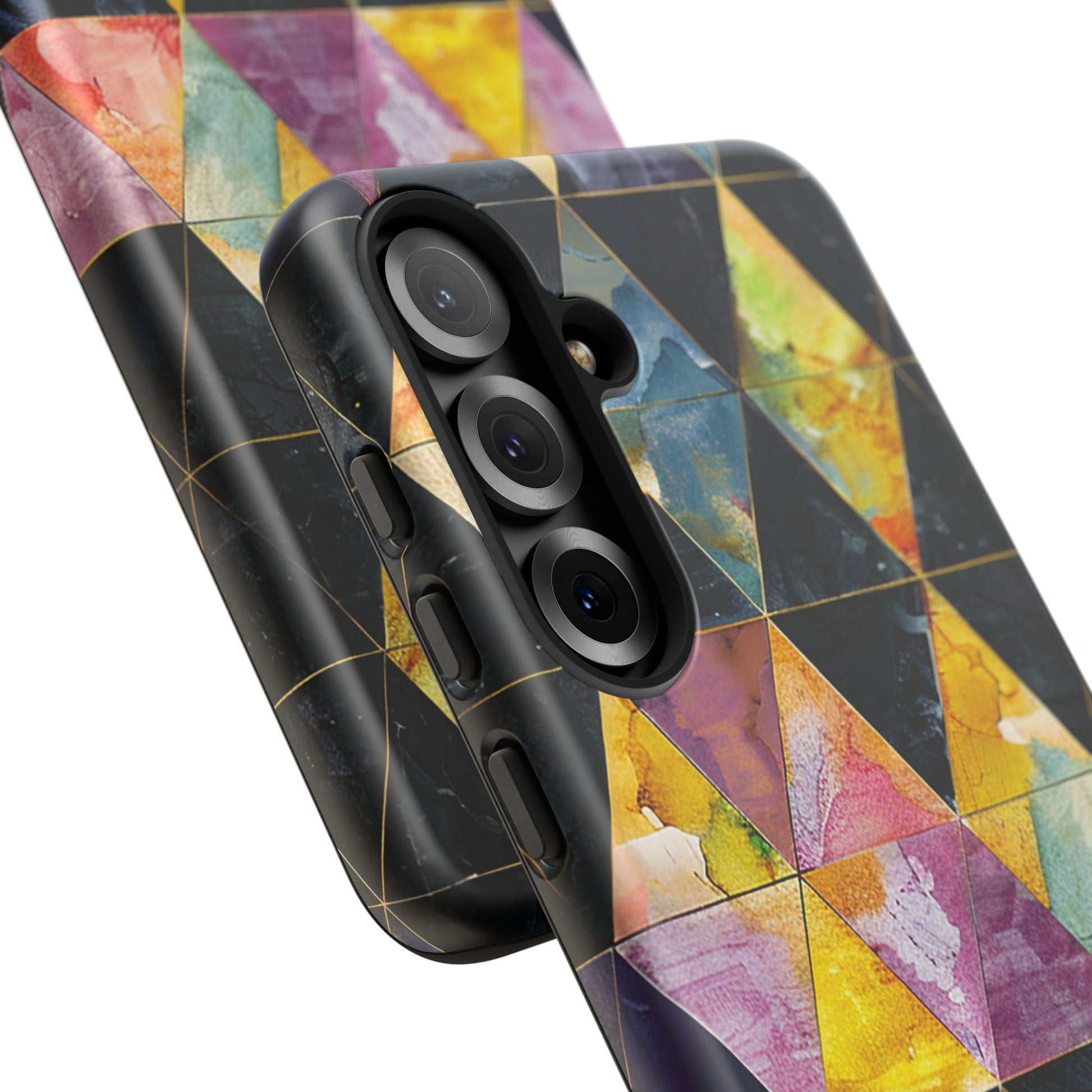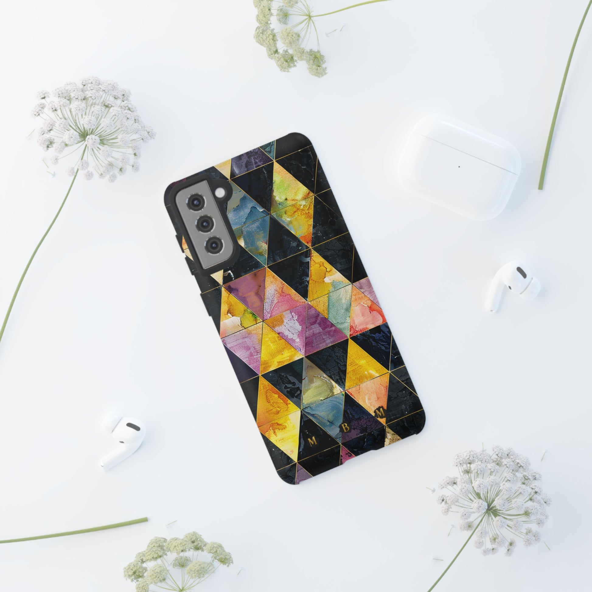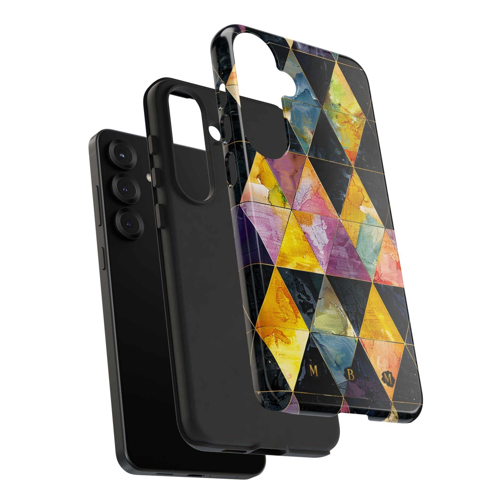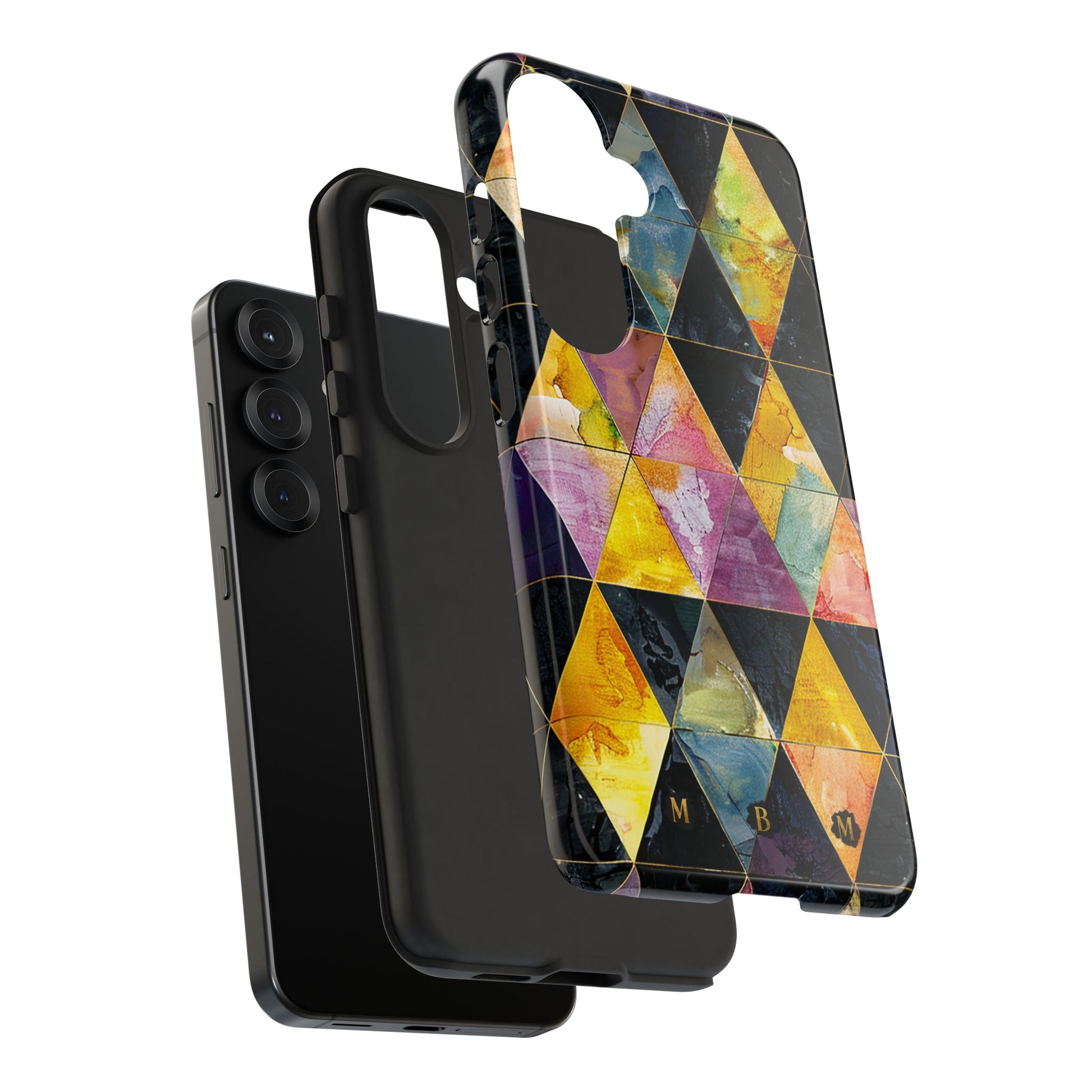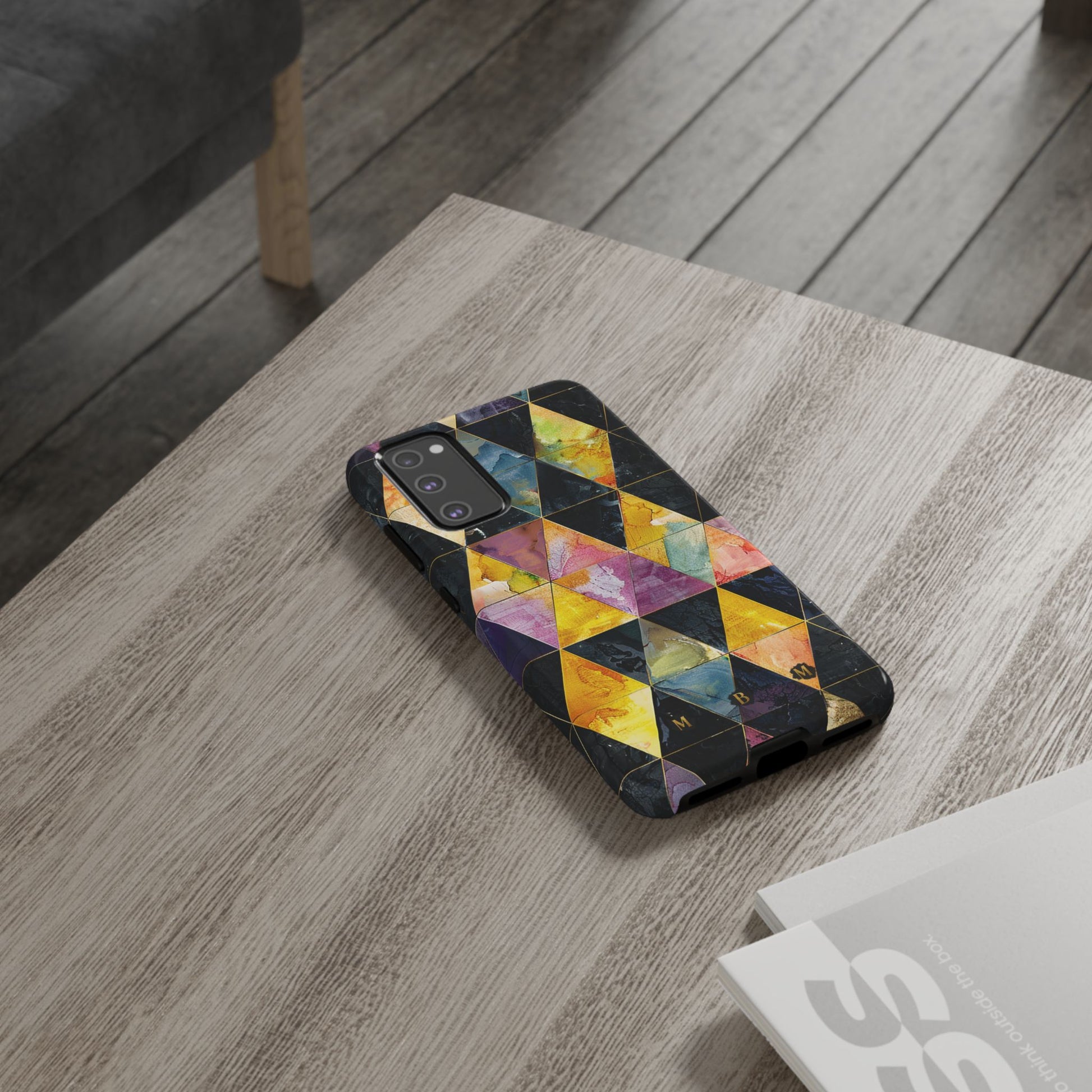 Get ready to dazzle with the Vertex Prism Phone Case! This eye-catching design features a kaleidoscope of vibrant colors splashed across a geometric pattern of triangles. Think of it as a modern art masterpiece for your phone! The mix of purples, yellows, blues, and blacks creates a stunning visual effect that's sure to turn heads. Not only does it look amazing, but it also provides solid protection for your device. Perfect for anyone who loves a pop of color and a touch of sophistication. Make your phone the star of the show with the Vertex Prism Phone Case!