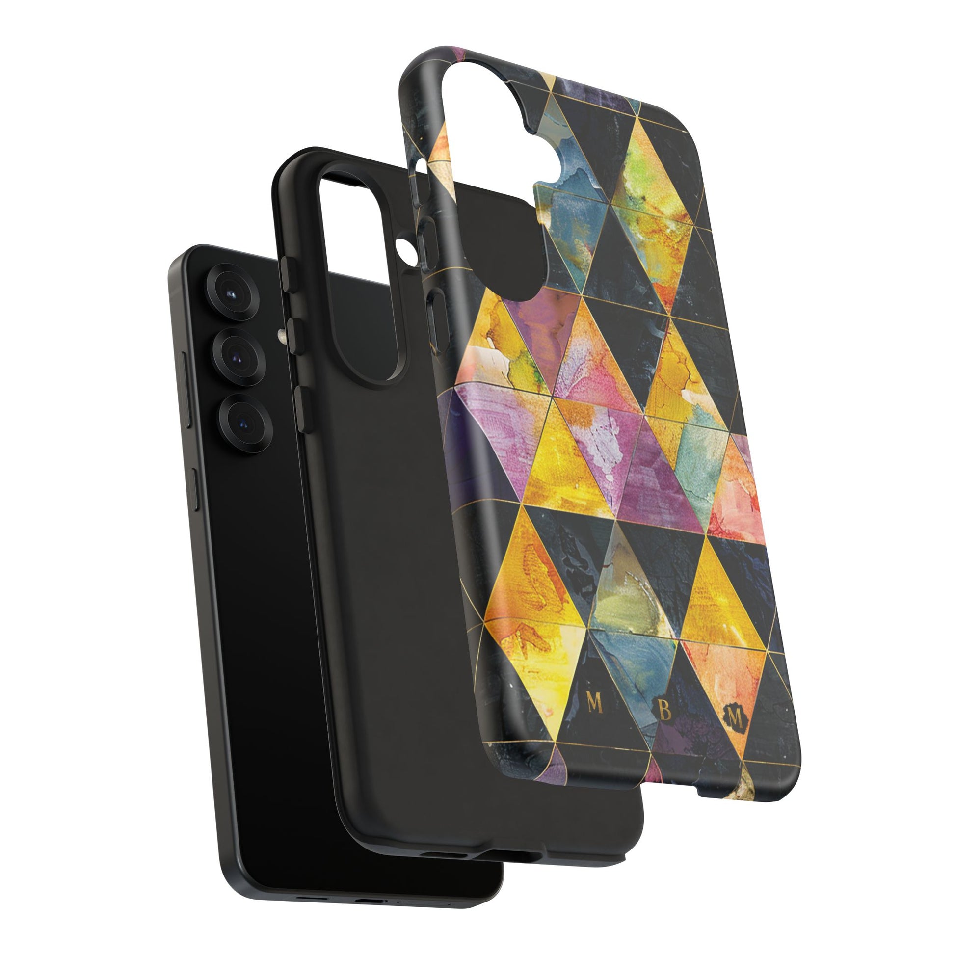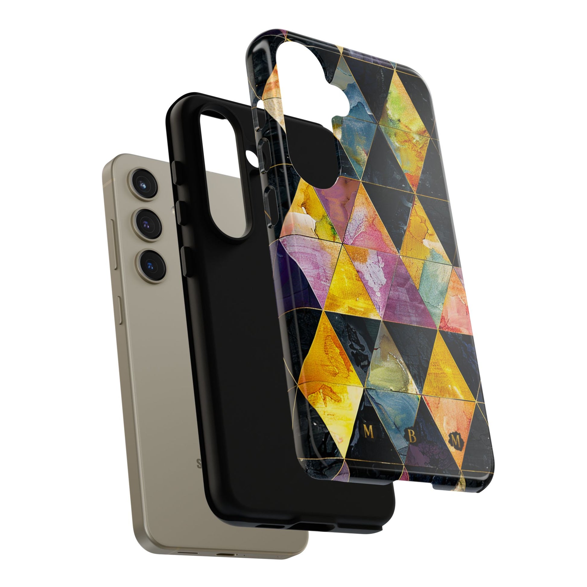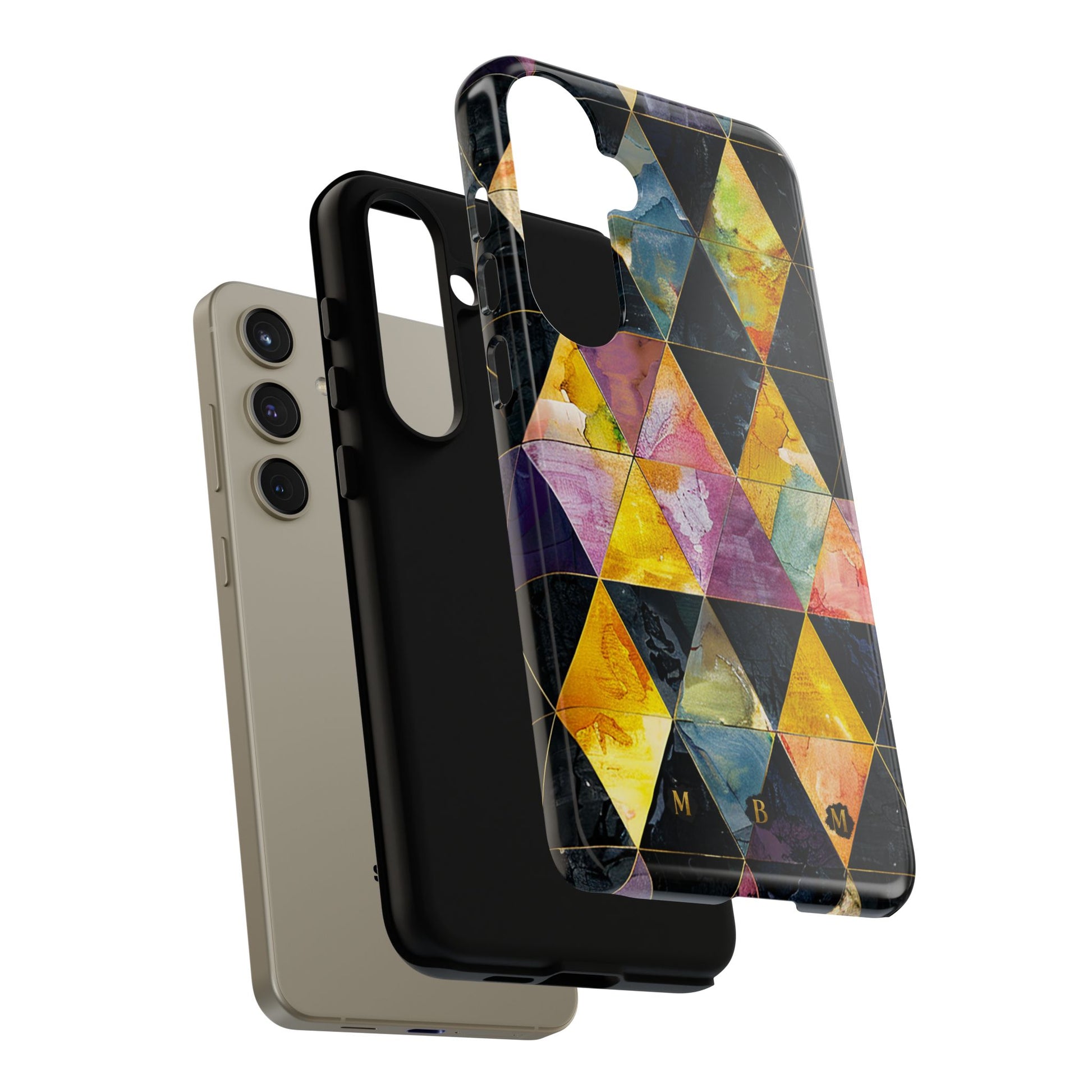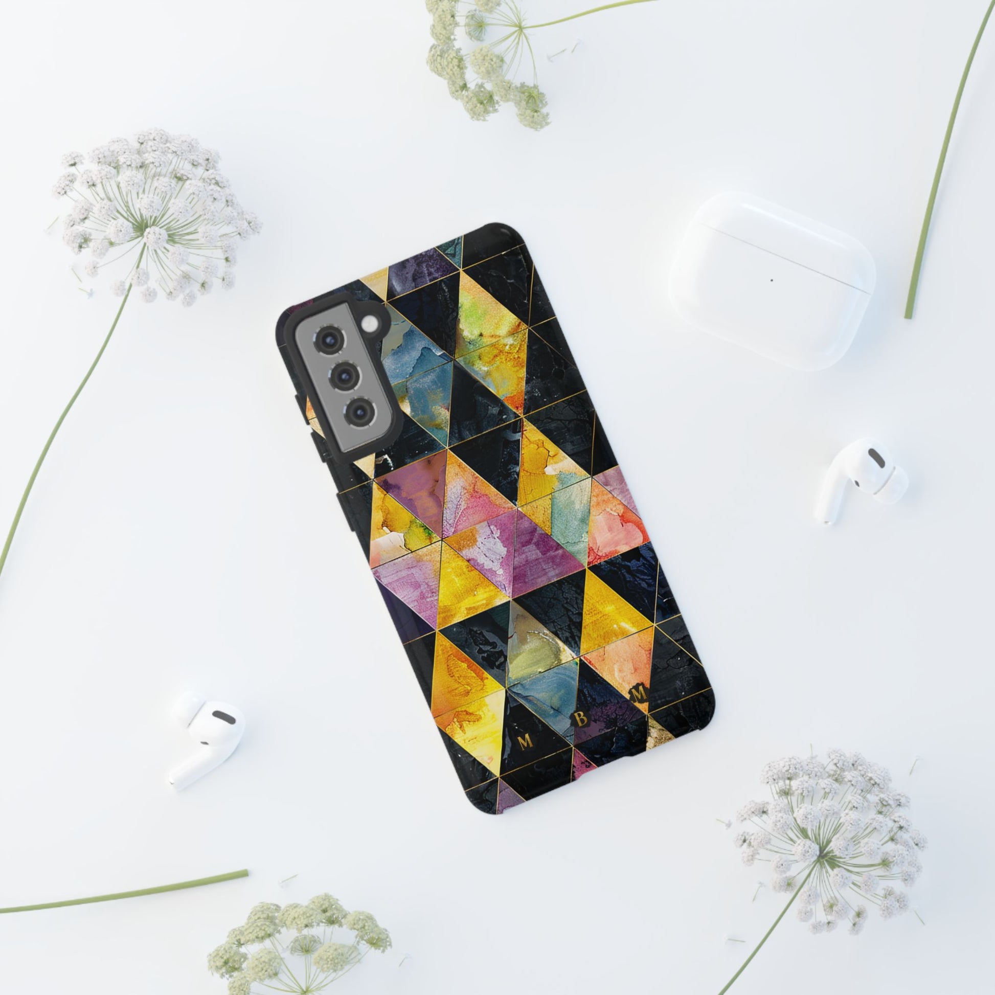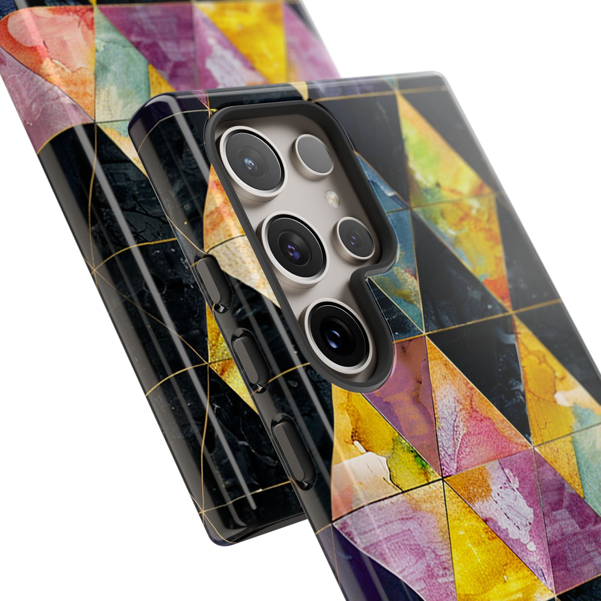 Get ready to dazzle with the Vertex Prism Phone Case! This eye-catching design features a kaleidoscope of vibrant colors splashed across a geometric pattern of triangles. Think of it as a modern art masterpiece for your phone! The mix of purples, yellows, blues, and blacks creates a stunning visual effect that's sure to turn heads. Not only does it look amazing, but it also provides solid protection for your device. Perfect for anyone who loves a pop of color and a touch of sophistication. Make your phone the star of the show with the Vertex Prism Phone Case!