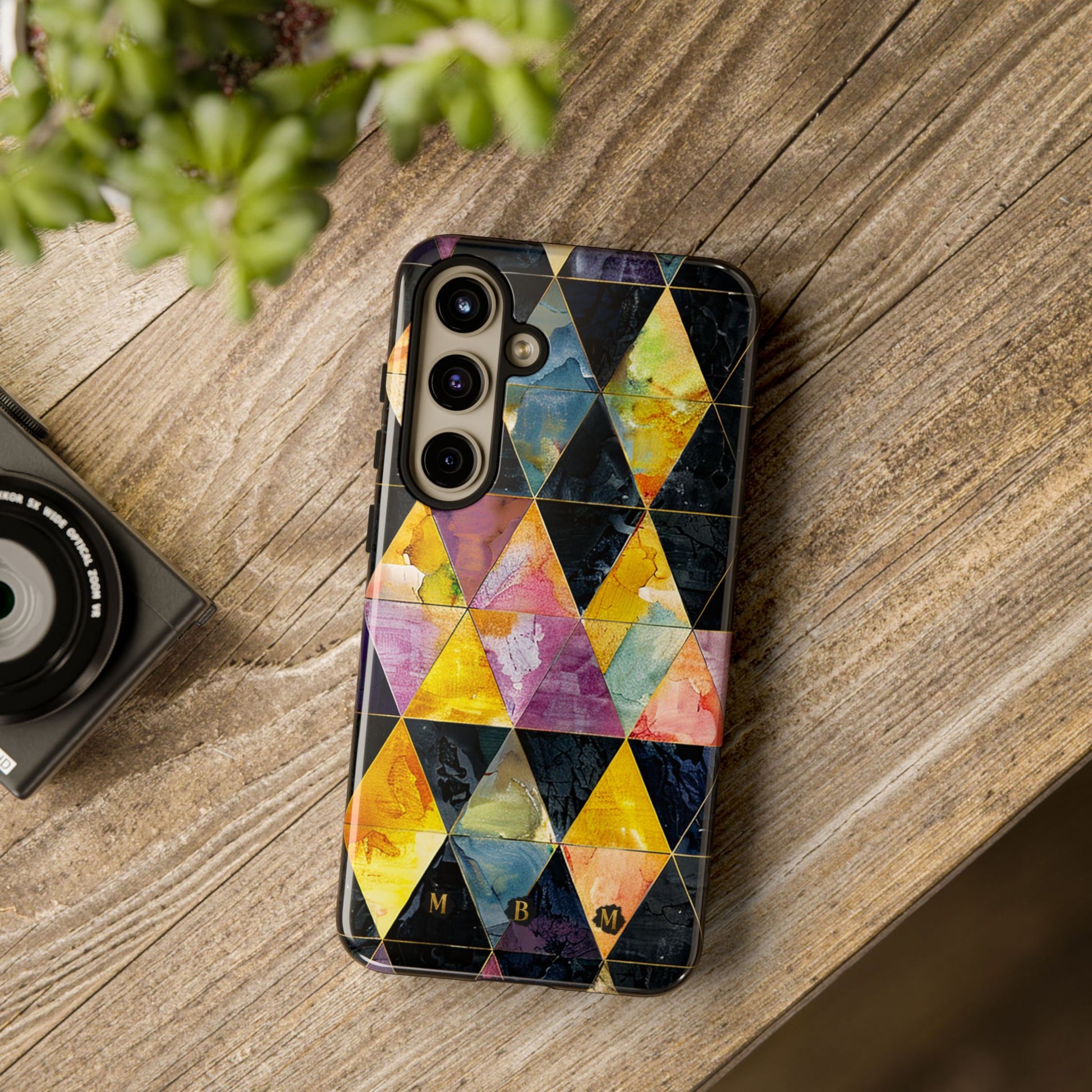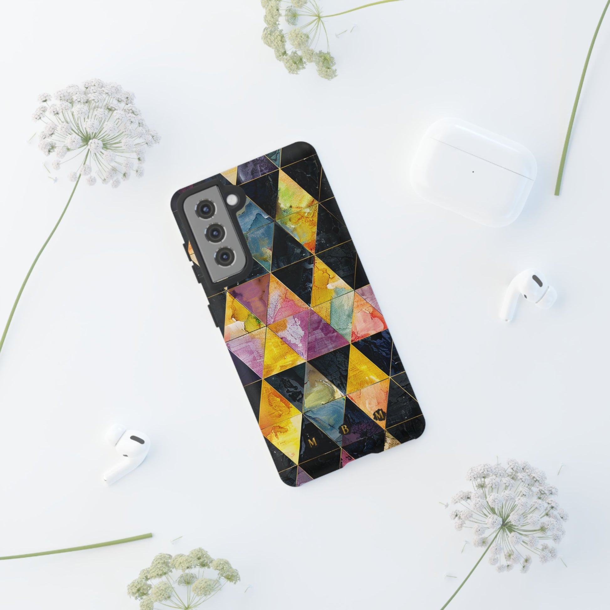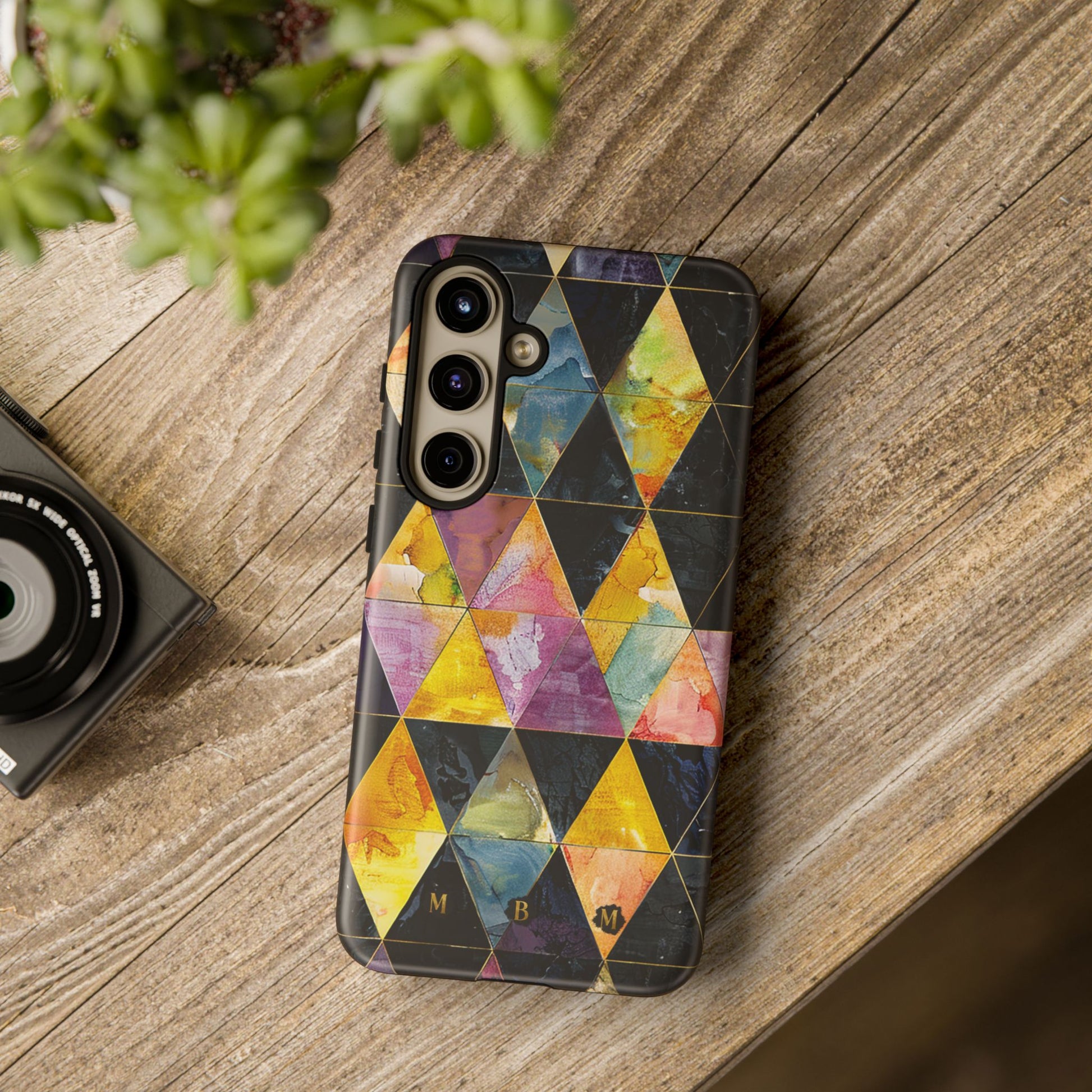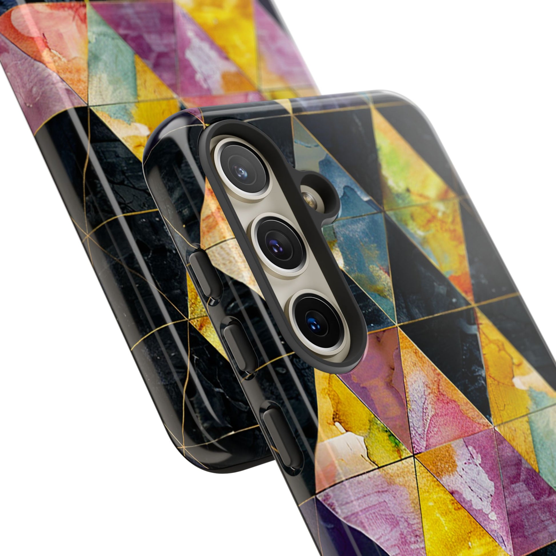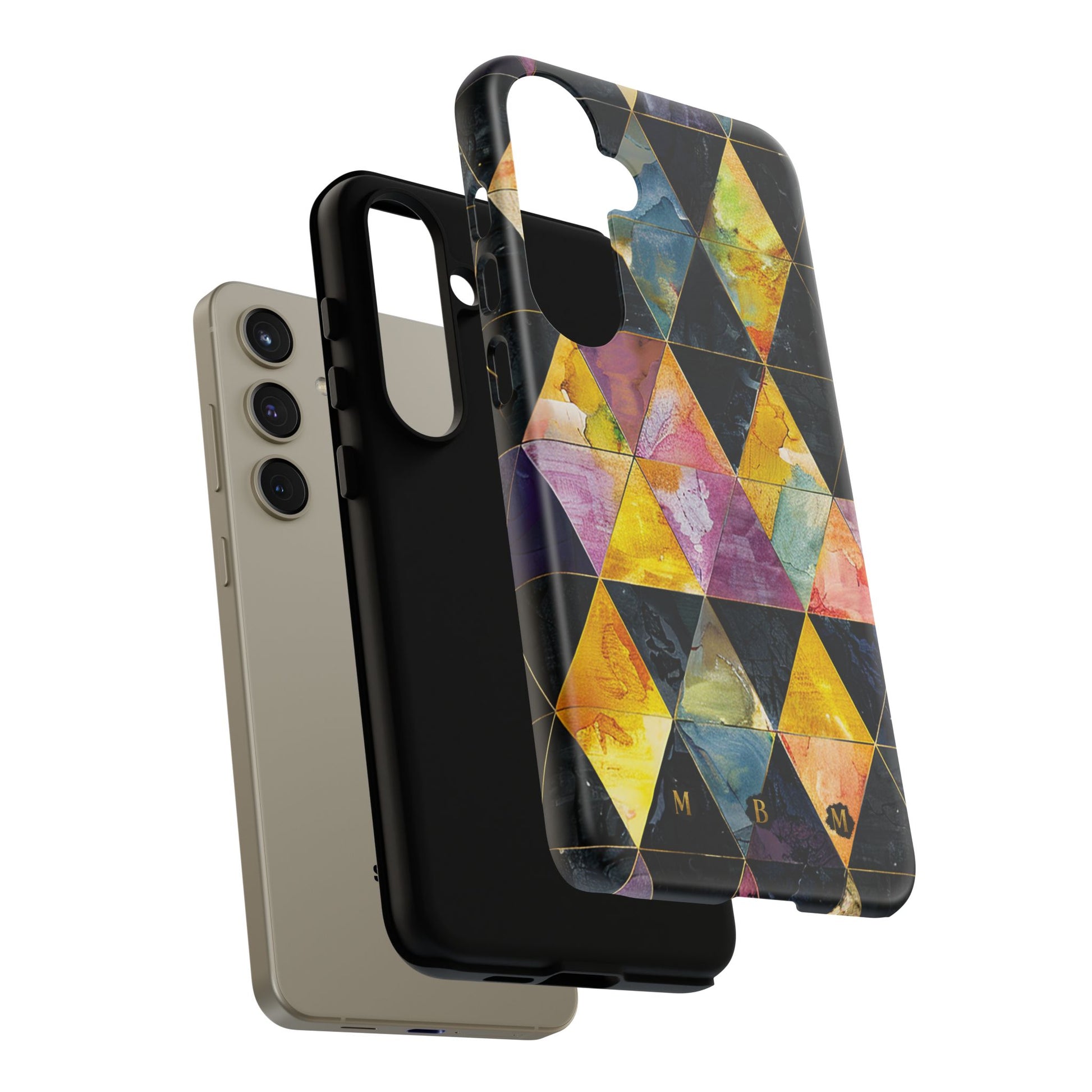 Get ready to dazzle with the Vertex Prism Phone Case! This eye-catching design features a kaleidoscope of vibrant colors splashed across a geometric pattern of triangles. Think of it as a modern art masterpiece for your phone! The mix of purples, yellows, blues, and blacks creates a stunning visual effect that's sure to turn heads. Not only does it look amazing, but it also provides solid protection for your device. Perfect for anyone who loves a pop of color and a touch of sophistication. Make your phone the star of the show with the Vertex Prism Phone Case!