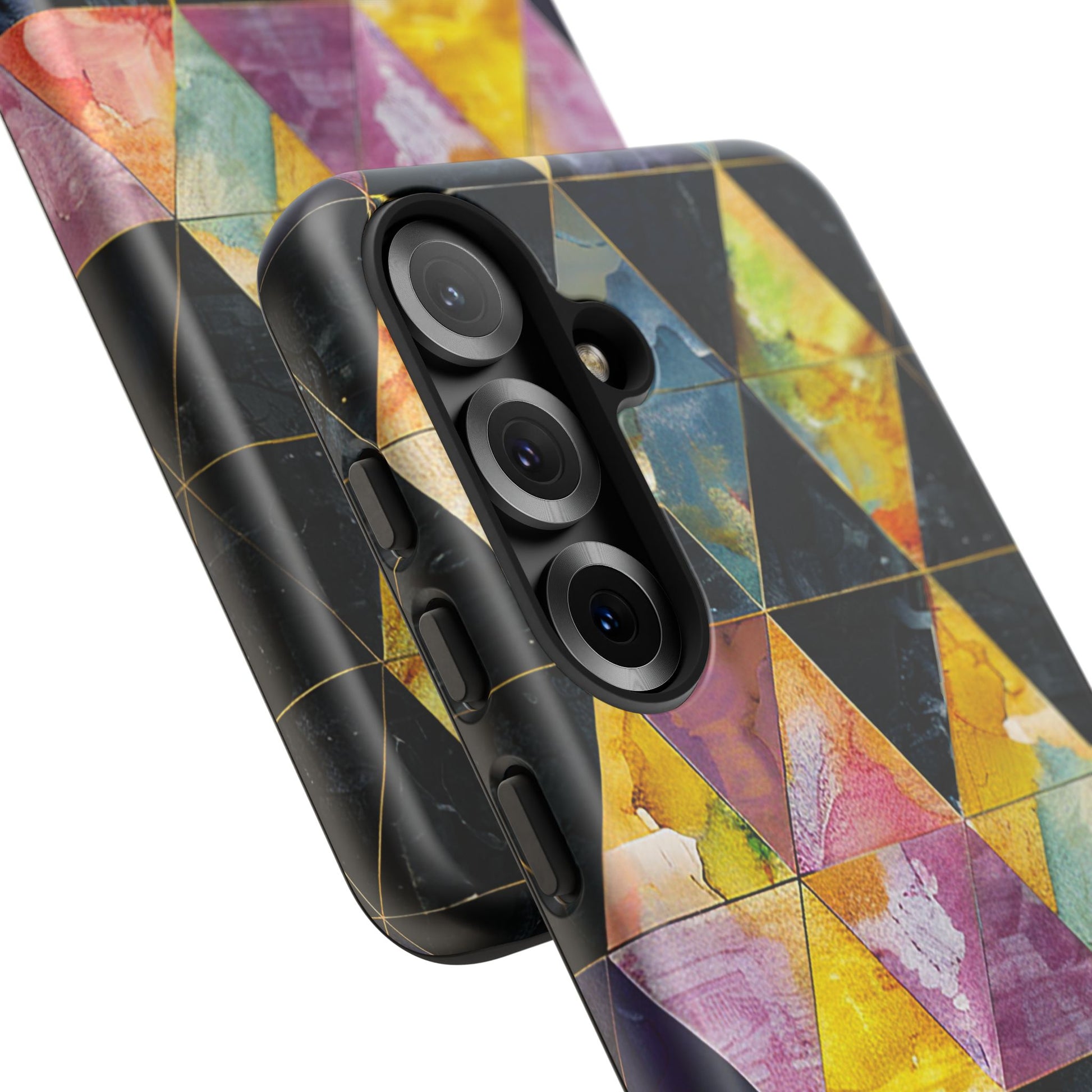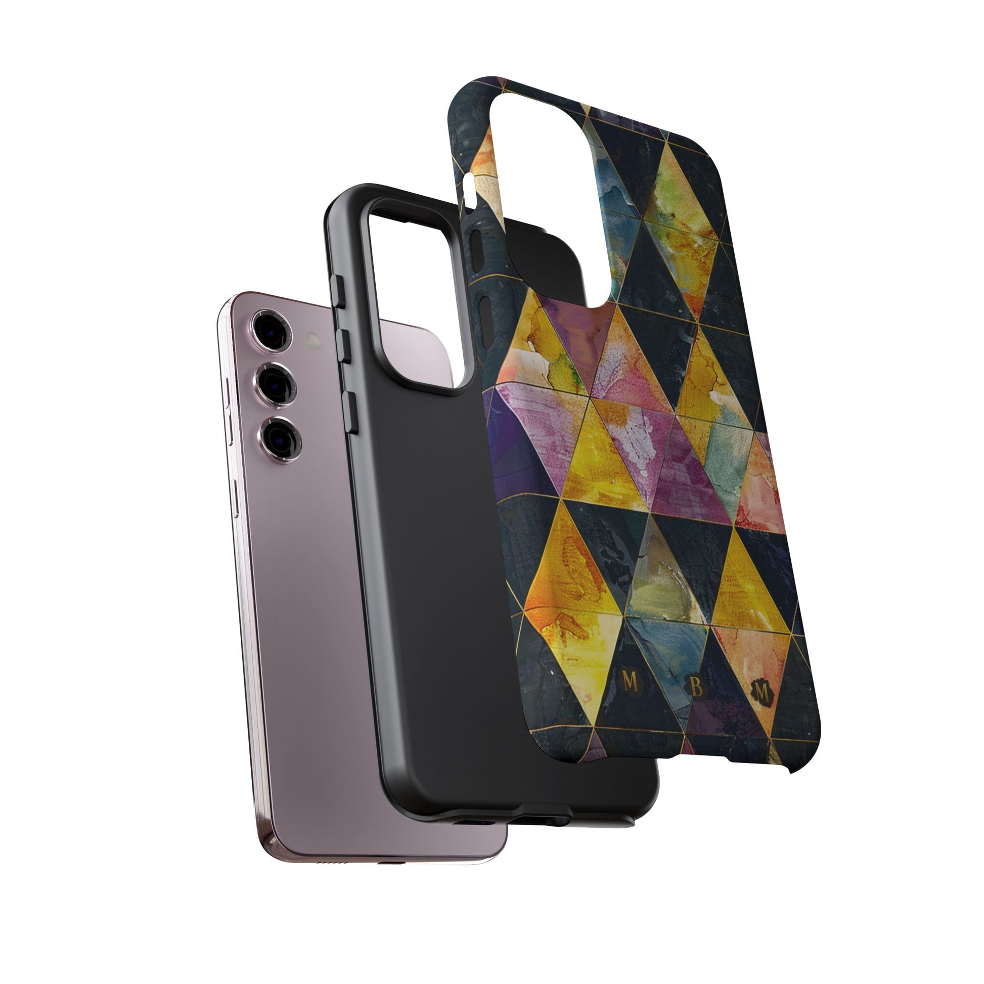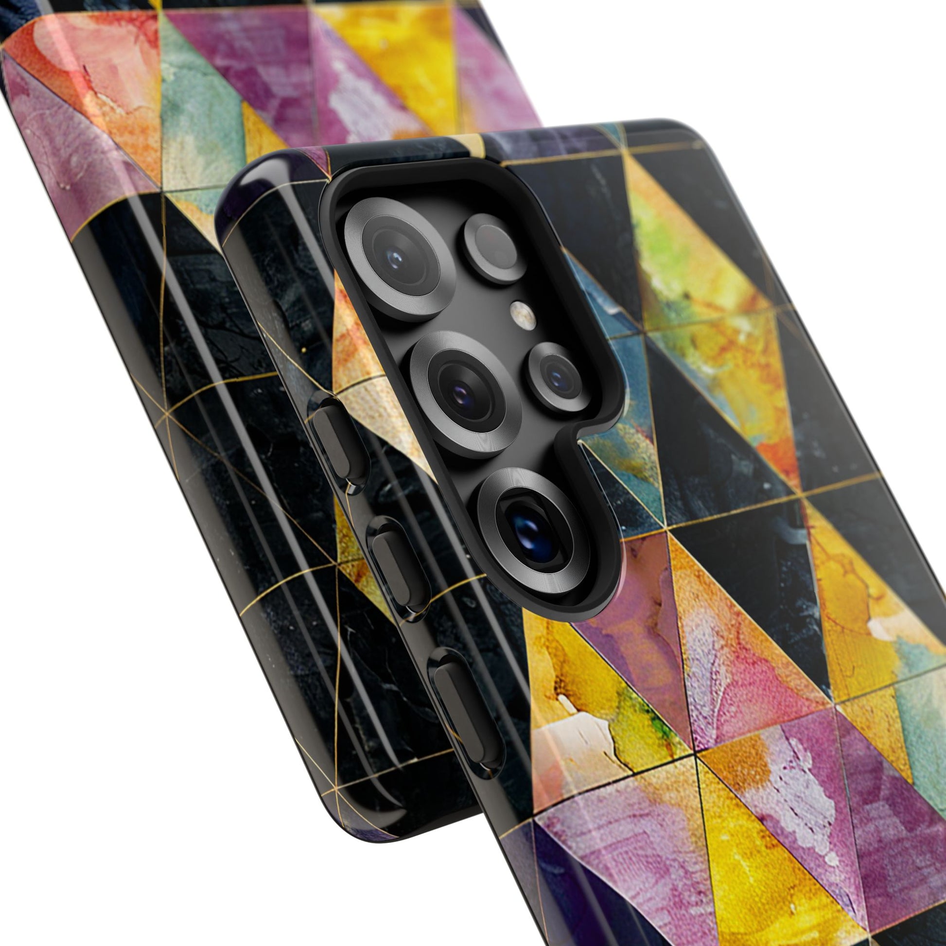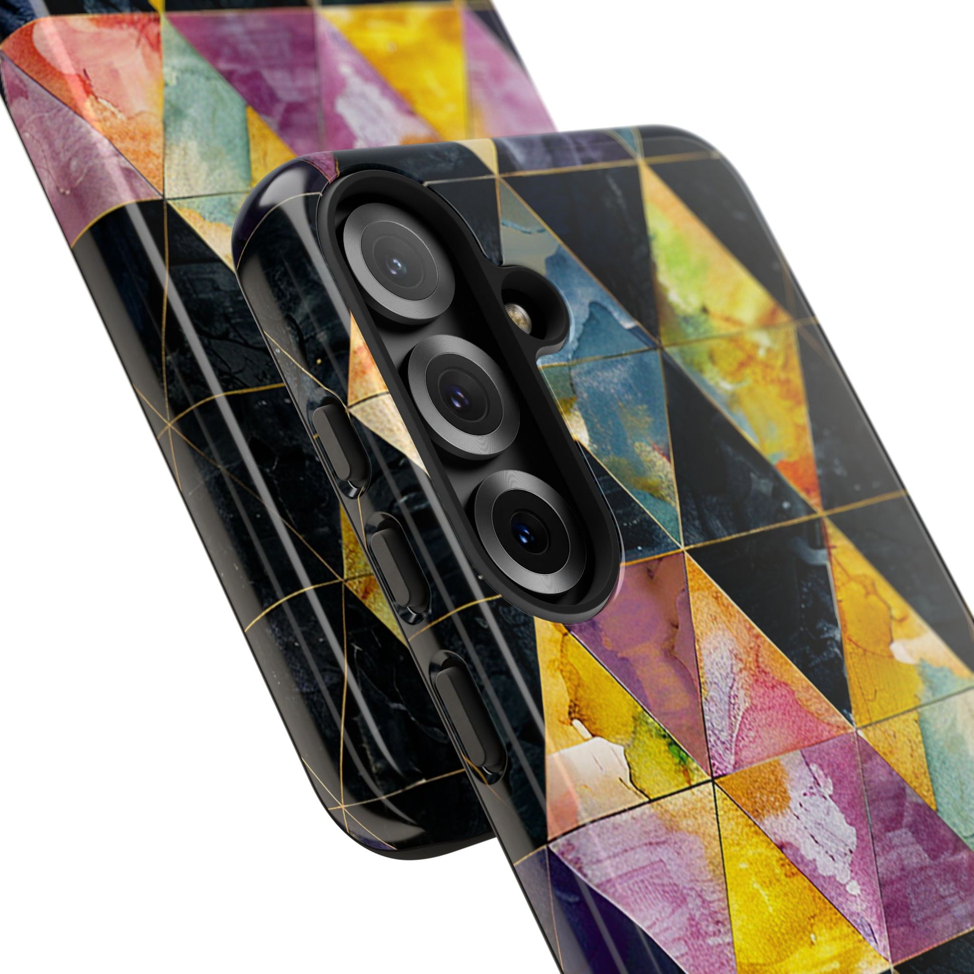 Get ready to dazzle with the Vertex Prism Phone Case! This eye-catching design features a kaleidoscope of vibrant colors splashed across a geometric pattern of triangles. Think of it as a modern art masterpiece for your phone! The mix of purples, yellows, blues, and blacks creates a stunning visual effect that's sure to turn heads. Not only does it look amazing, but it also provides solid protection for your device. Perfect for anyone who loves a pop of color and a touch of sophistication. Make your phone the star of the show with the Vertex Prism Phone Case!