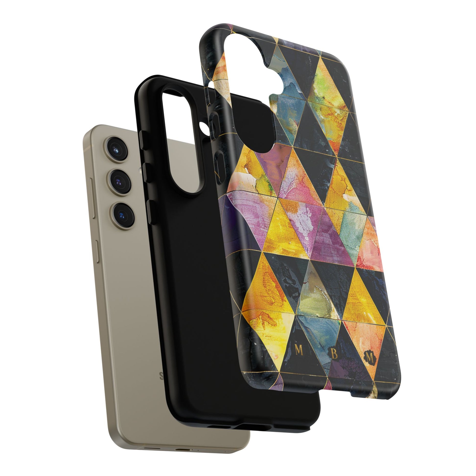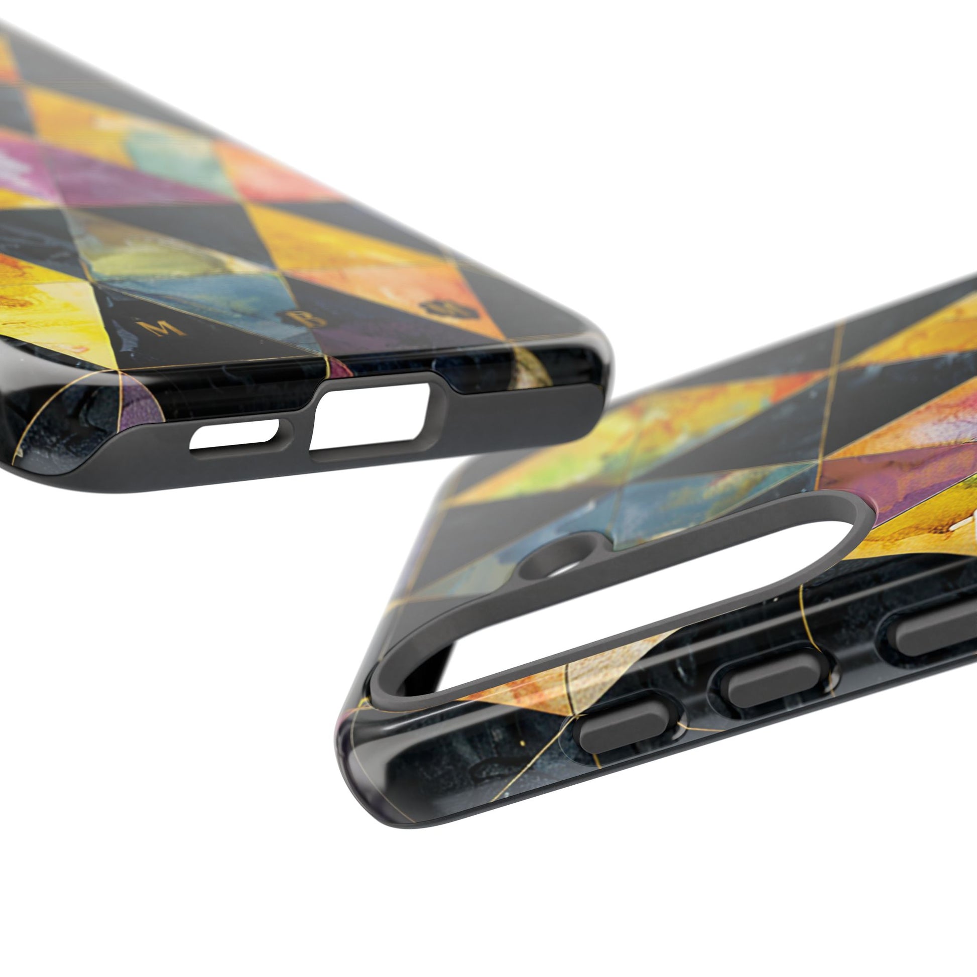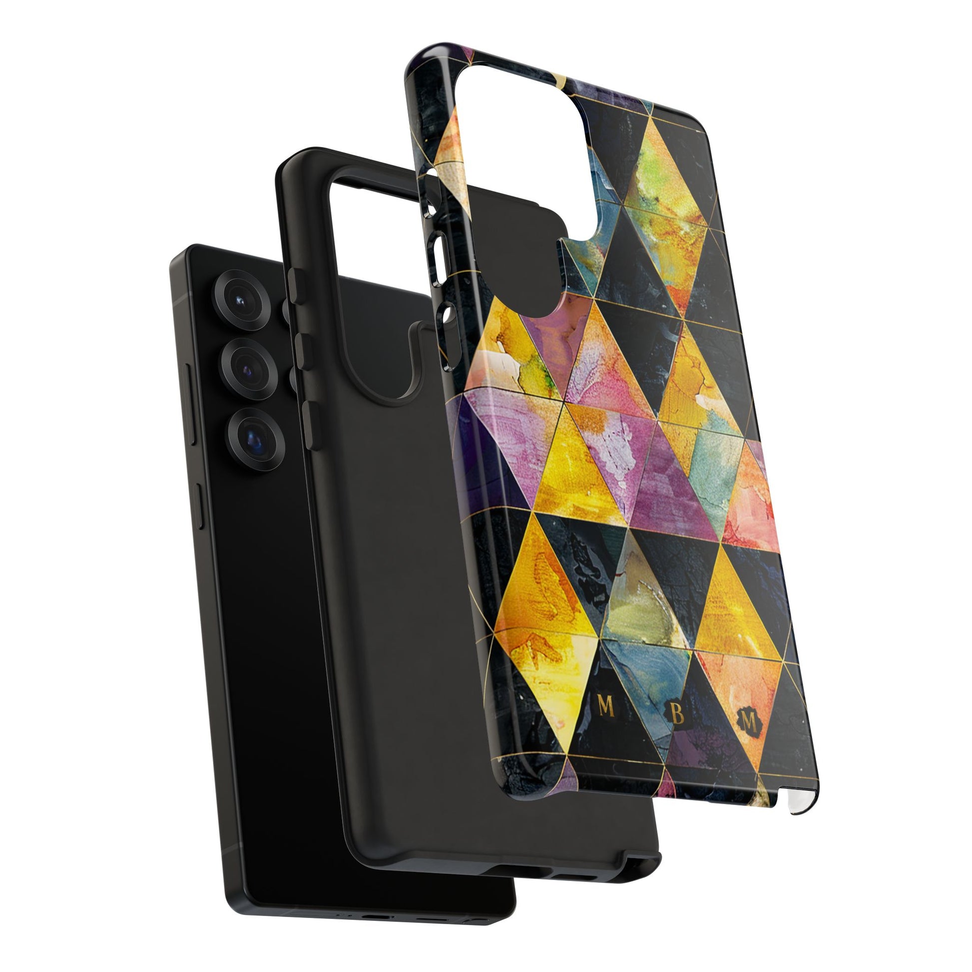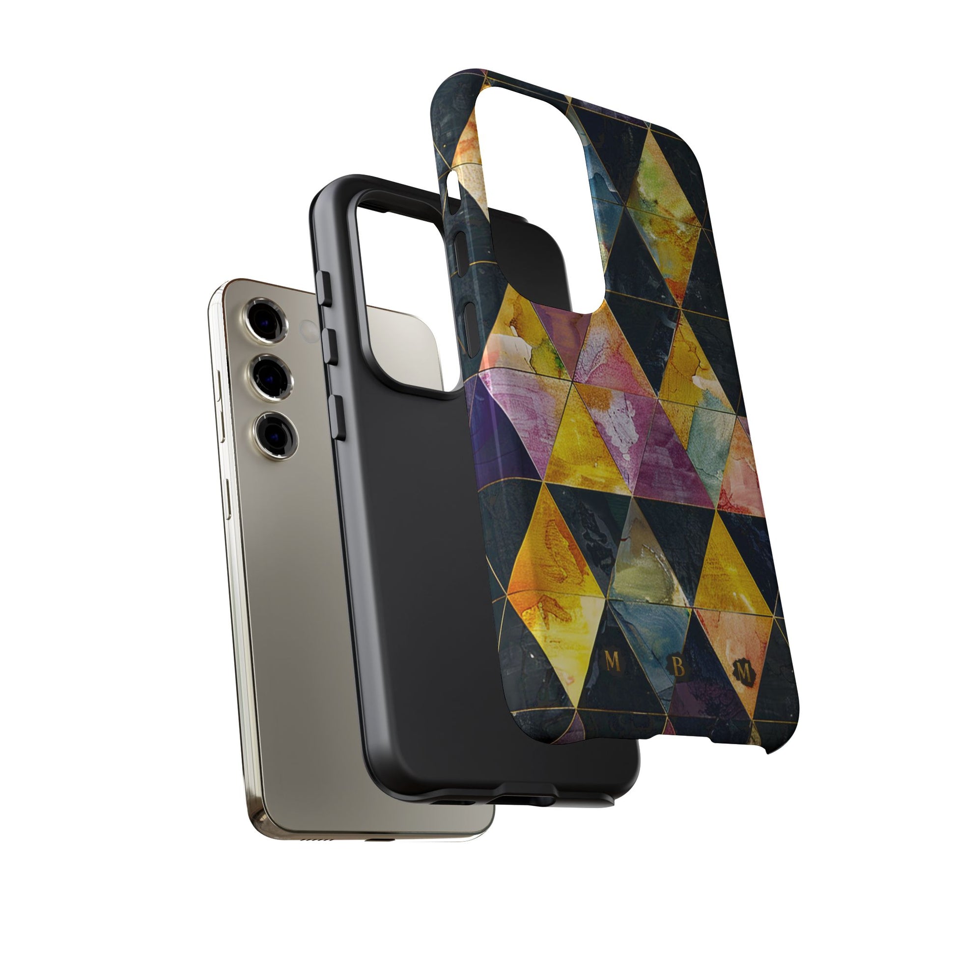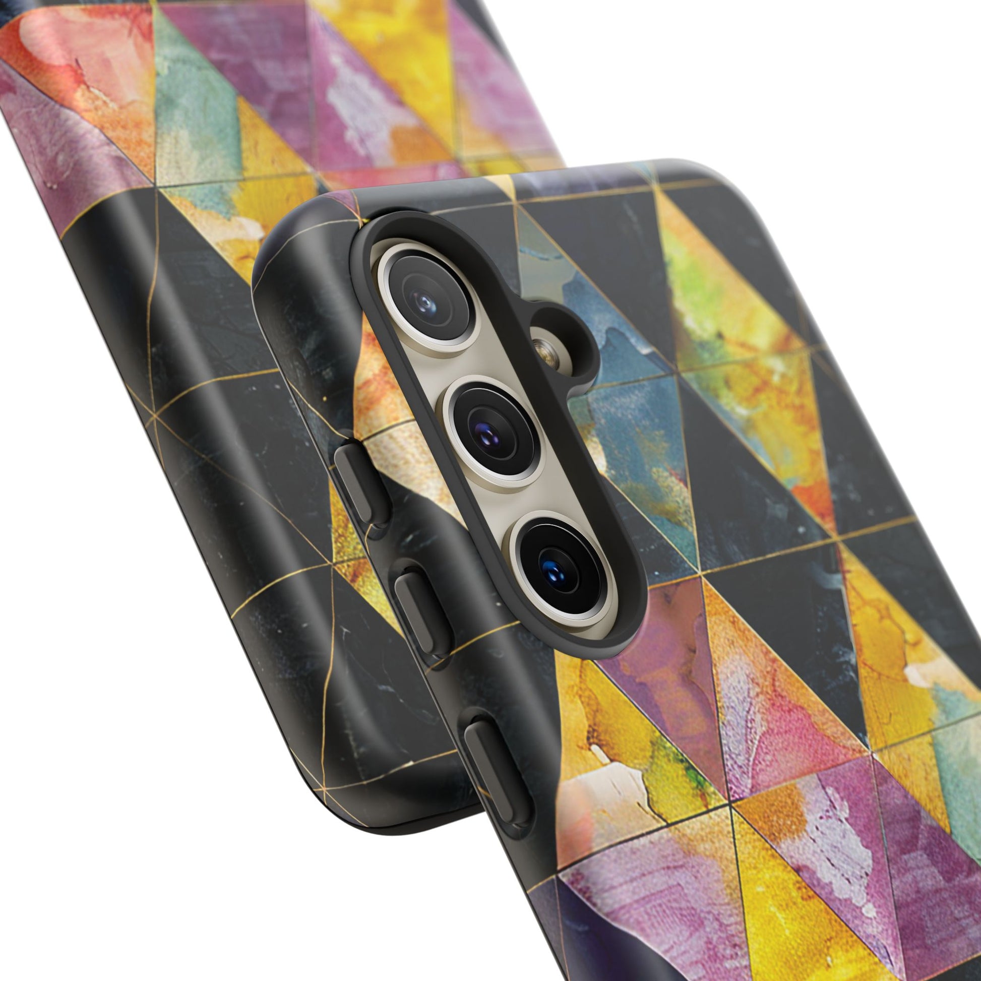 Get ready to dazzle with the Vertex Prism Phone Case! This eye-catching design features a kaleidoscope of vibrant colors splashed across a geometric pattern of triangles. Think of it as a modern art masterpiece for your phone! The mix of purples, yellows, blues, and blacks creates a stunning visual effect that's sure to turn heads. Not only does it look amazing, but it also provides solid protection for your device. Perfect for anyone who loves a pop of color and a touch of sophistication. Make your phone the star of the show with the Vertex Prism Phone Case!