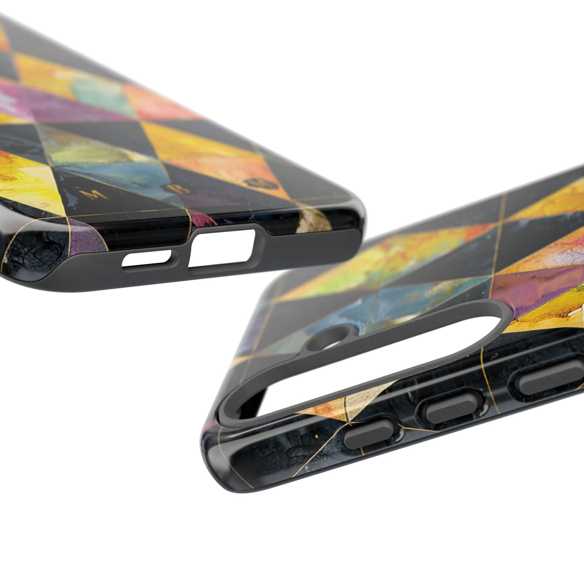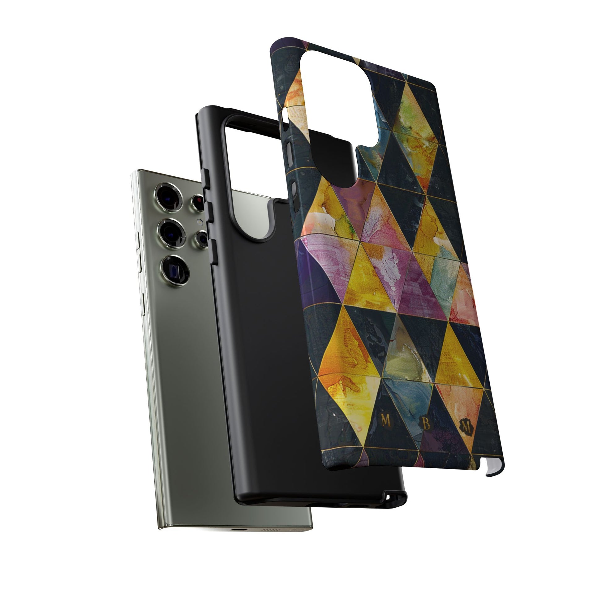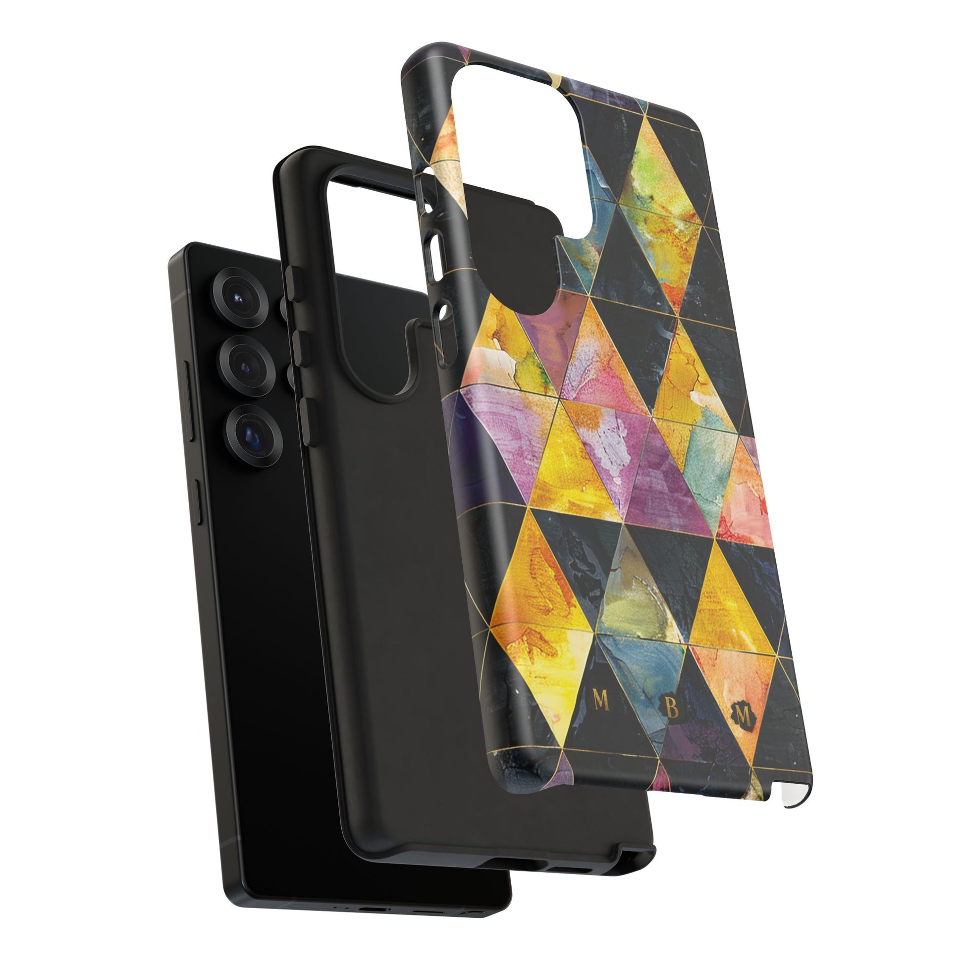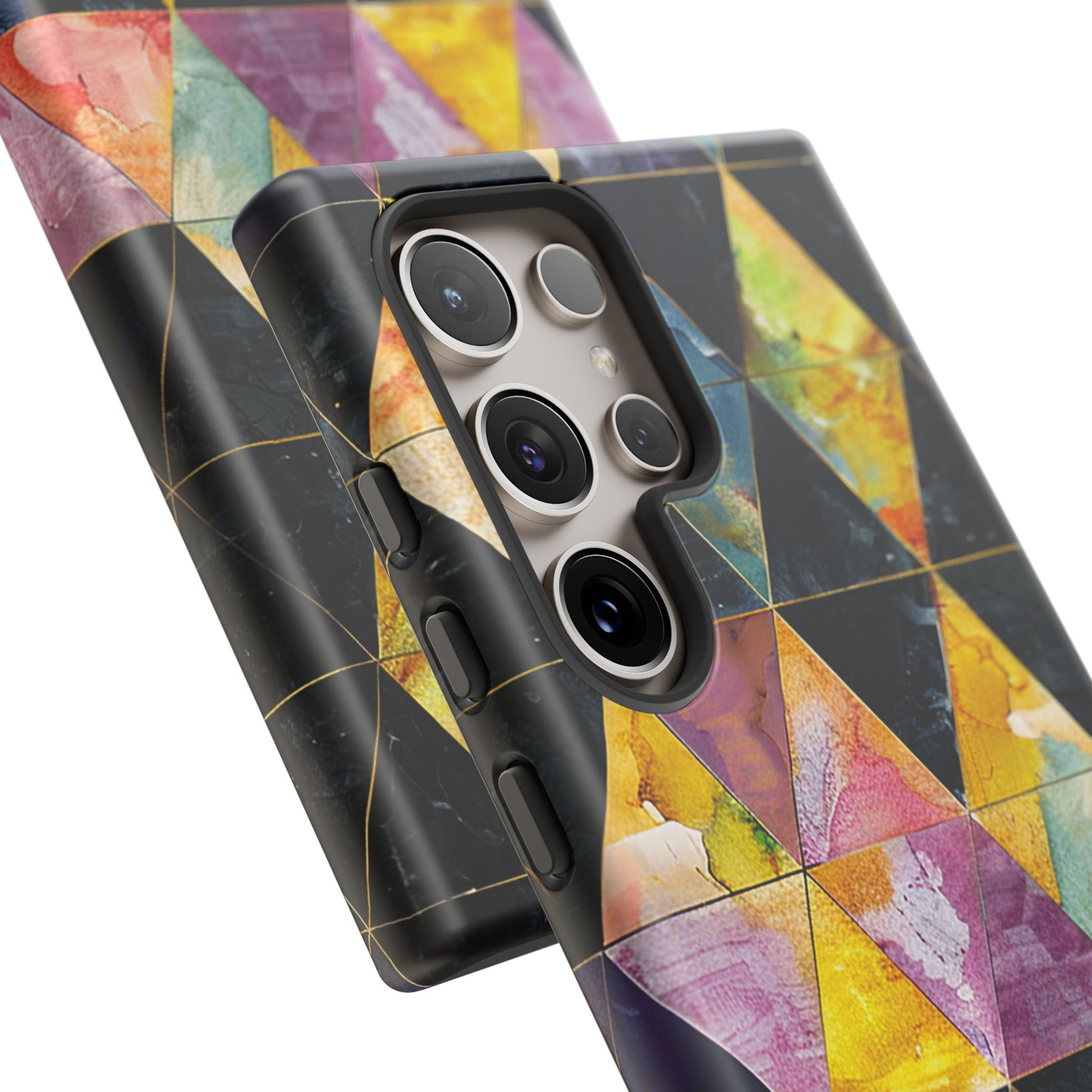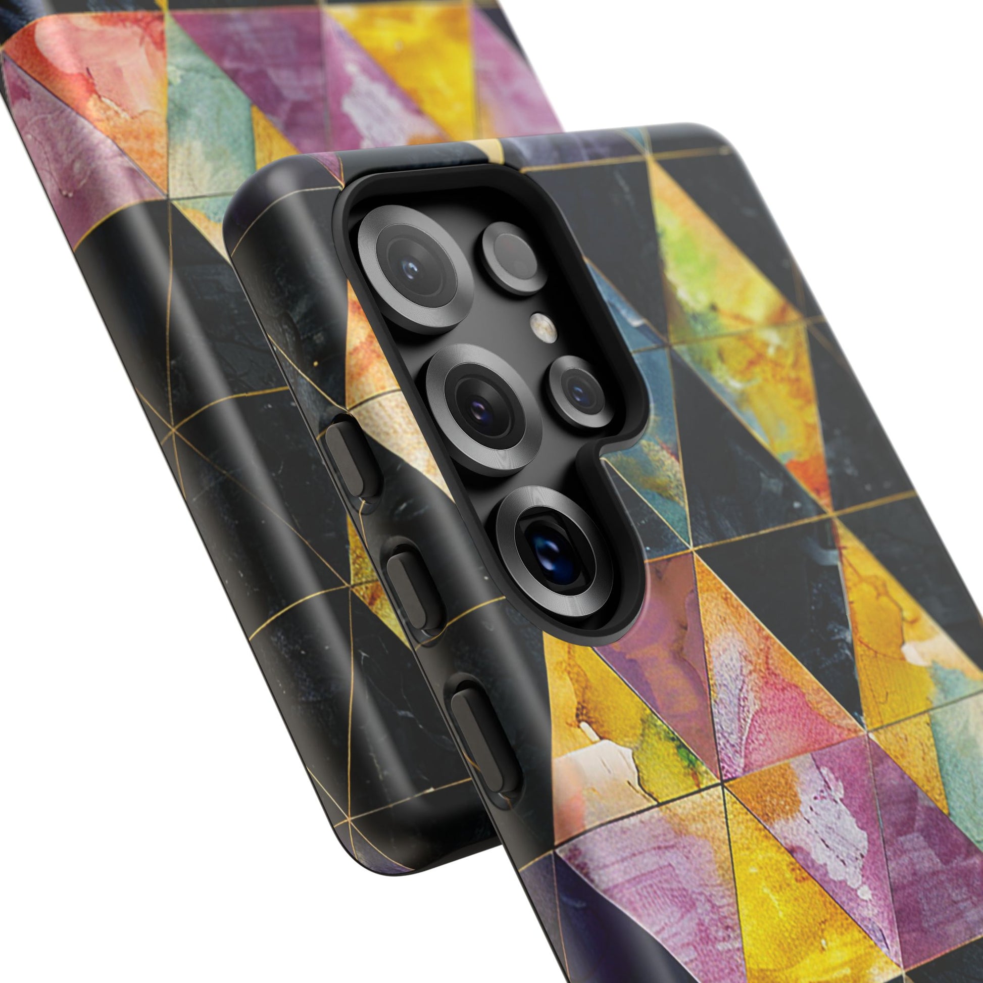Get ready to dazzle with the Vertex Prism Phone Case! This eye-catching design features a kaleidoscope of vibrant colors splashed across a geometric pattern of triangles. Think of it as a modern art masterpiece for your phone! The mix of purples, yellows, blues, and blacks creates a stunning visual effect that's sure to turn heads. Not only does it look amazing, but it also provides solid protection for your device. Perfect for anyone who loves a pop of color and a touch of sophistication. Make your phone the star of the show with the Vertex Prism Phone Case!