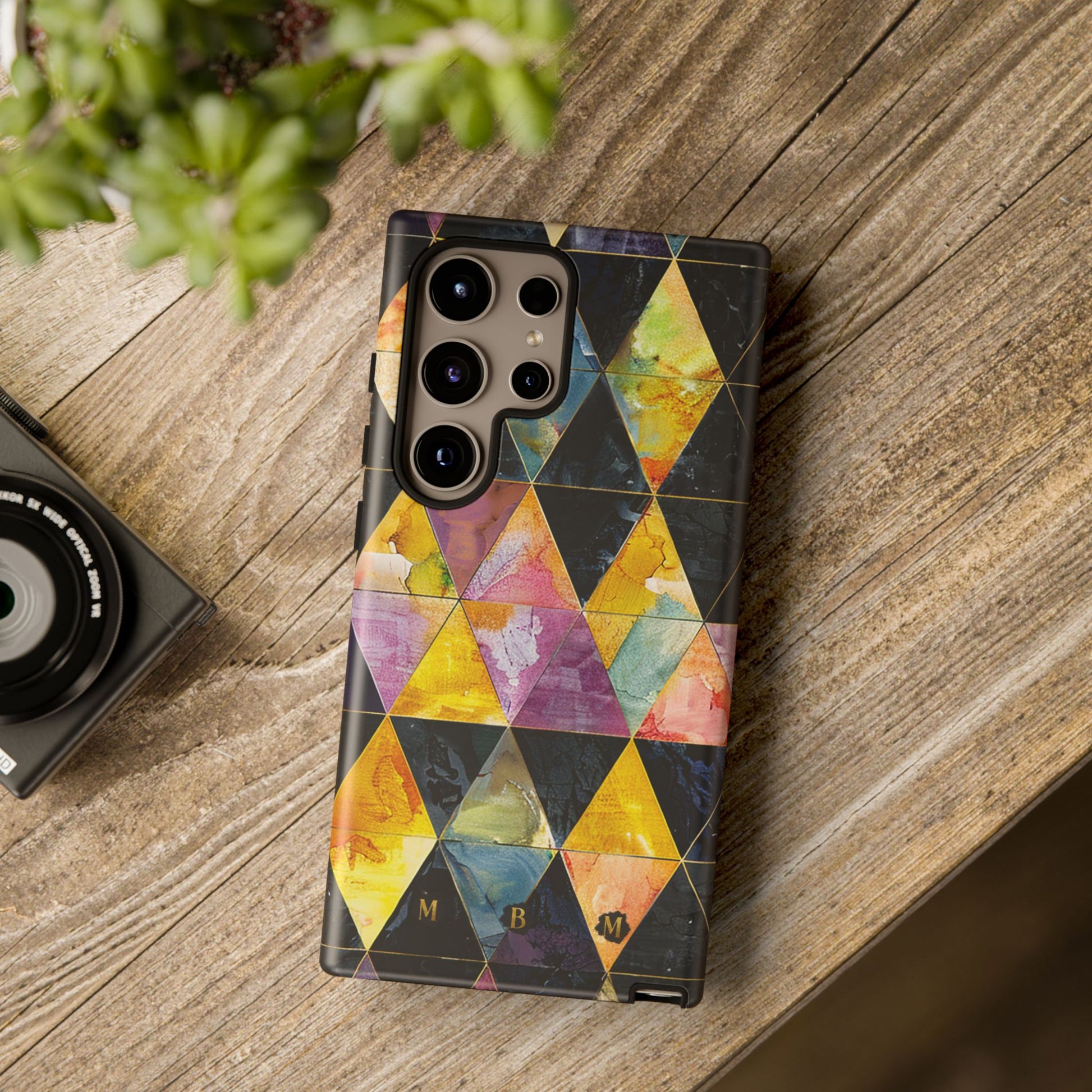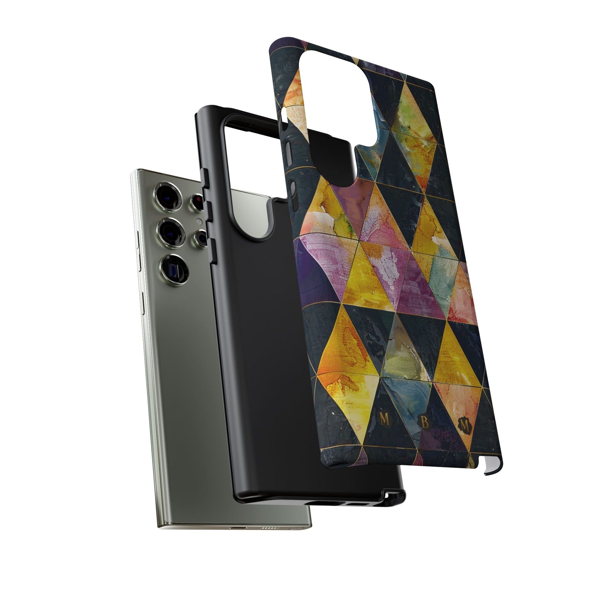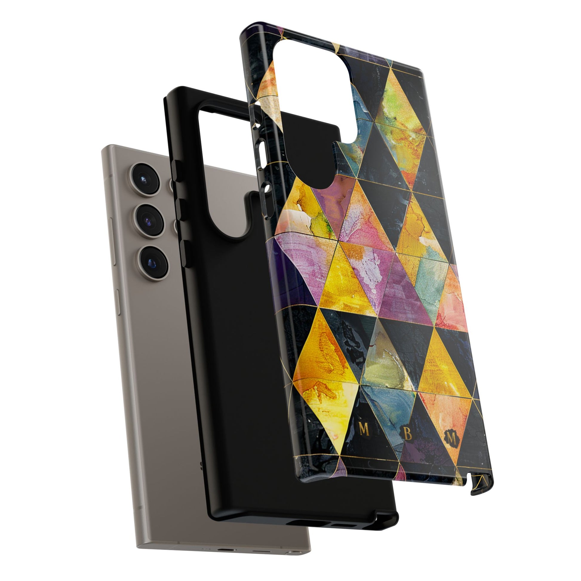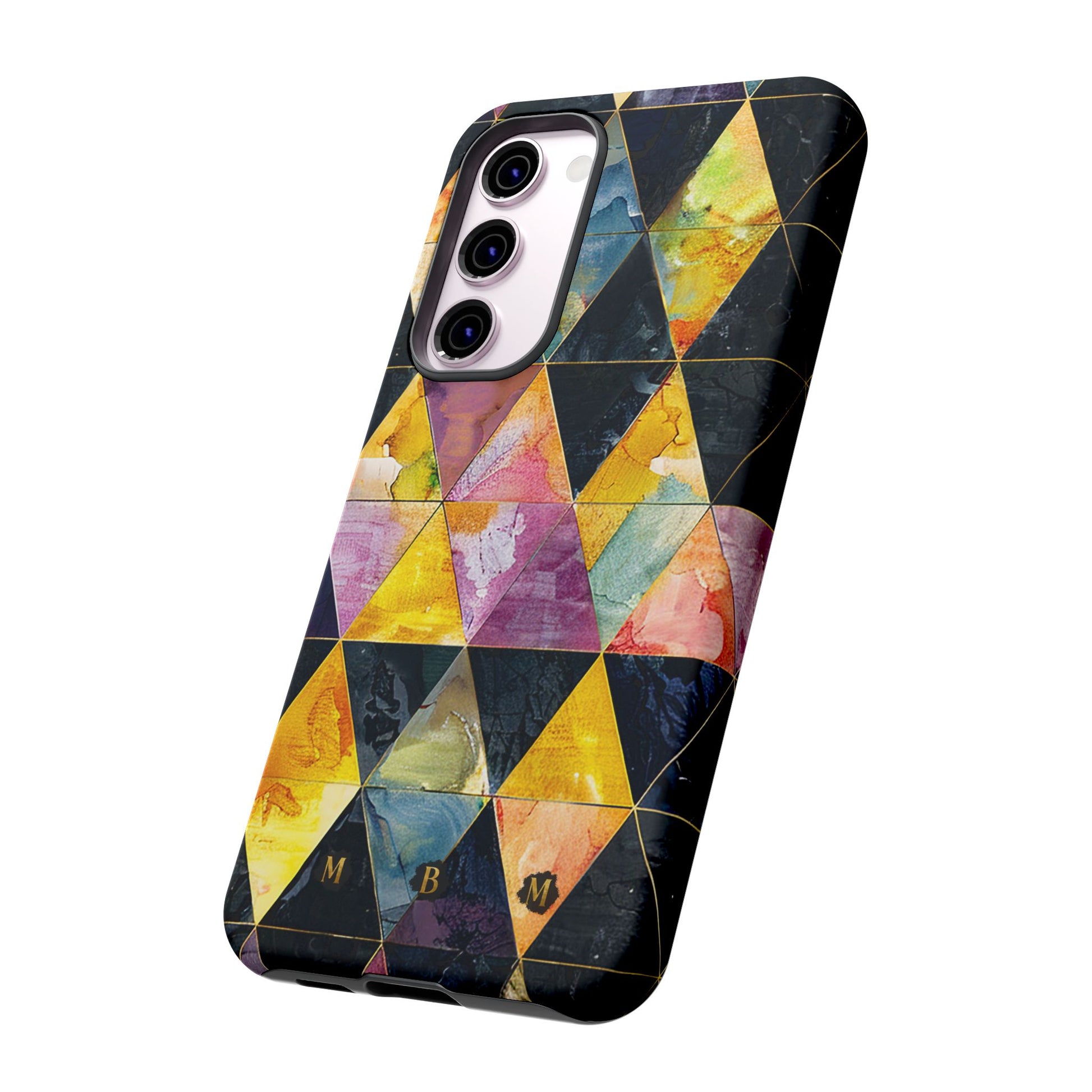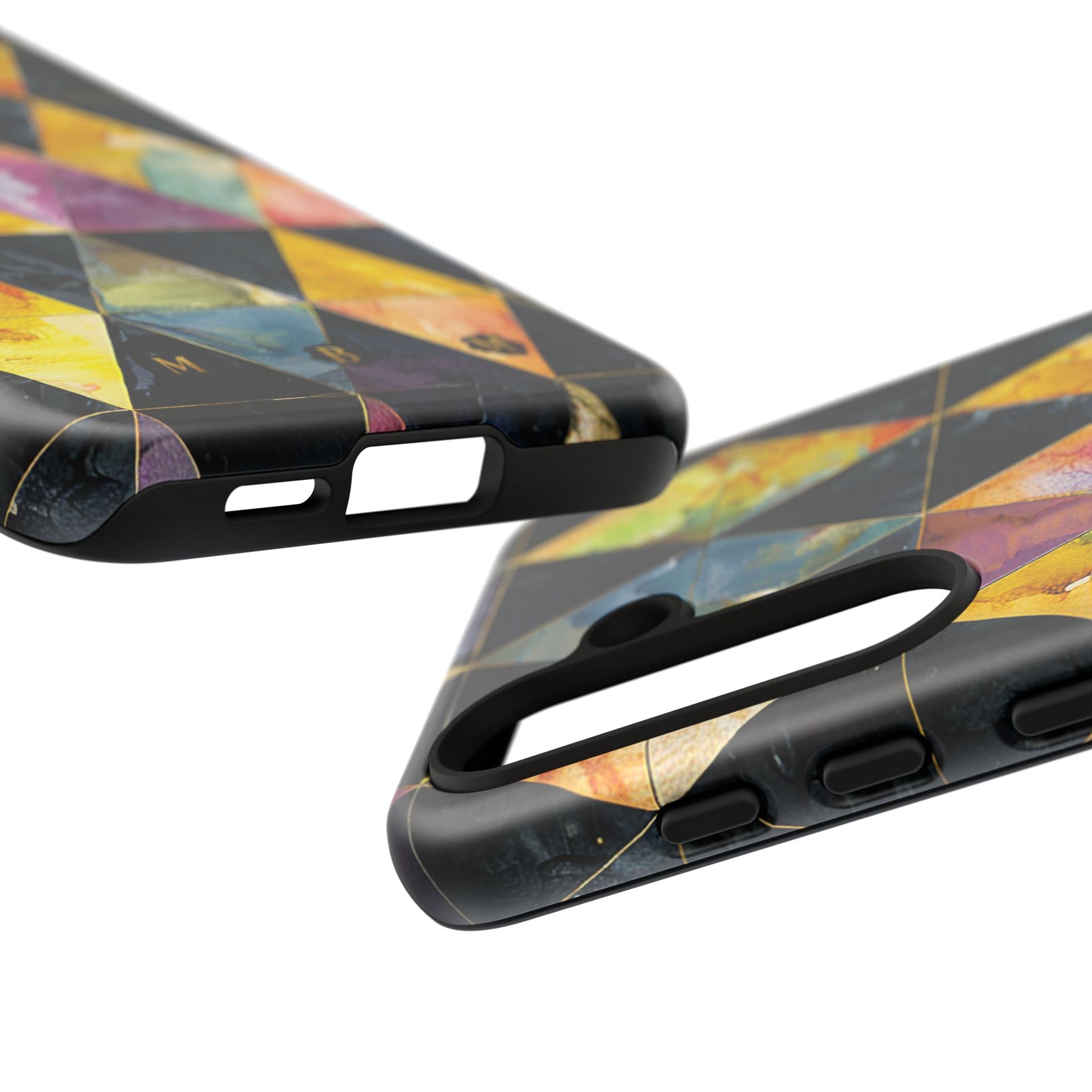 Get ready to dazzle with the Vertex Prism Phone Case! This eye-catching design features a kaleidoscope of vibrant colors splashed across a geometric pattern of triangles. Think of it as a modern art masterpiece for your phone! The mix of purples, yellows, blues, and blacks creates a stunning visual effect that's sure to turn heads. Not only does it look amazing, but it also provides solid protection for your device. Perfect for anyone who loves a pop of color and a touch of sophistication. Make your phone the star of the show with the Vertex Prism Phone Case!