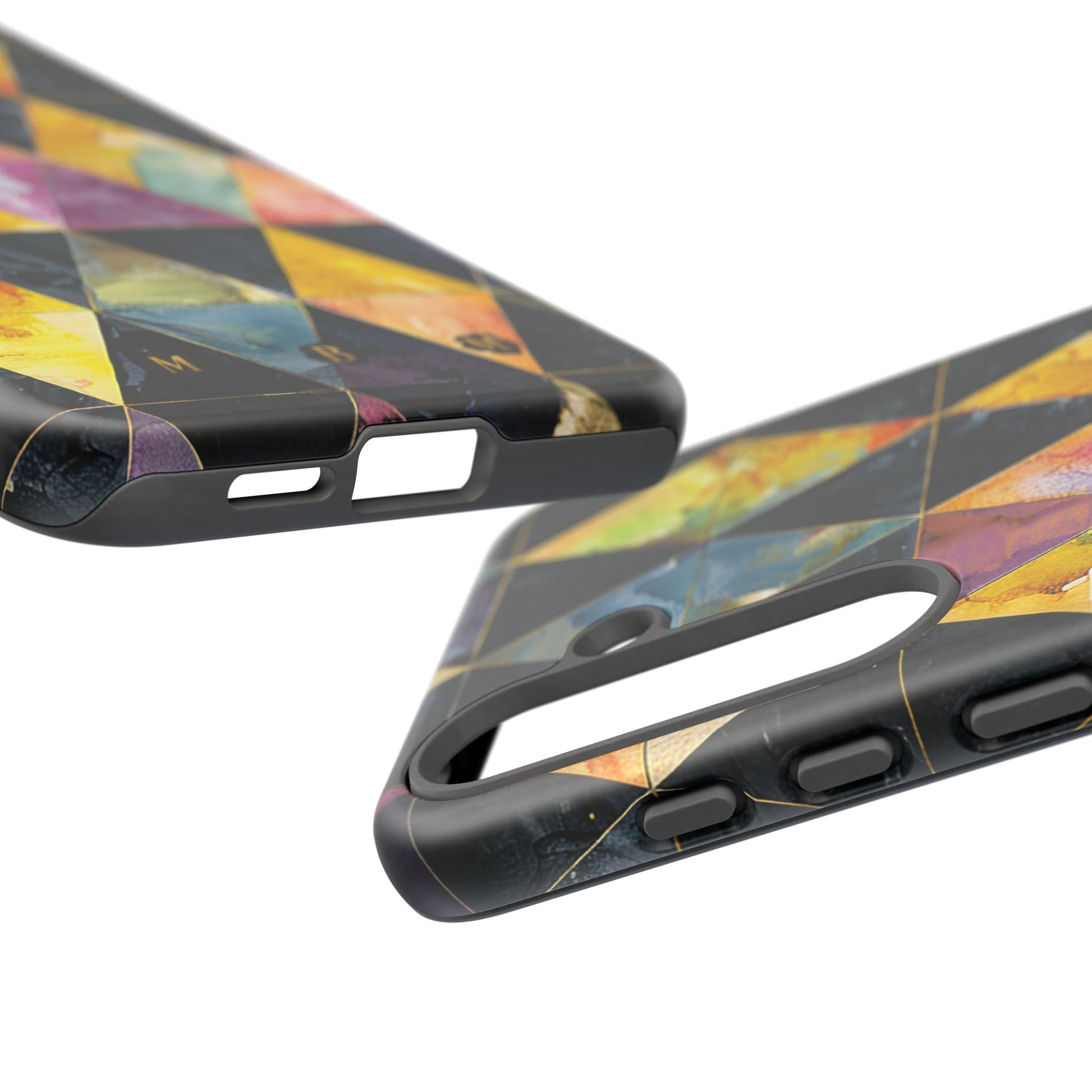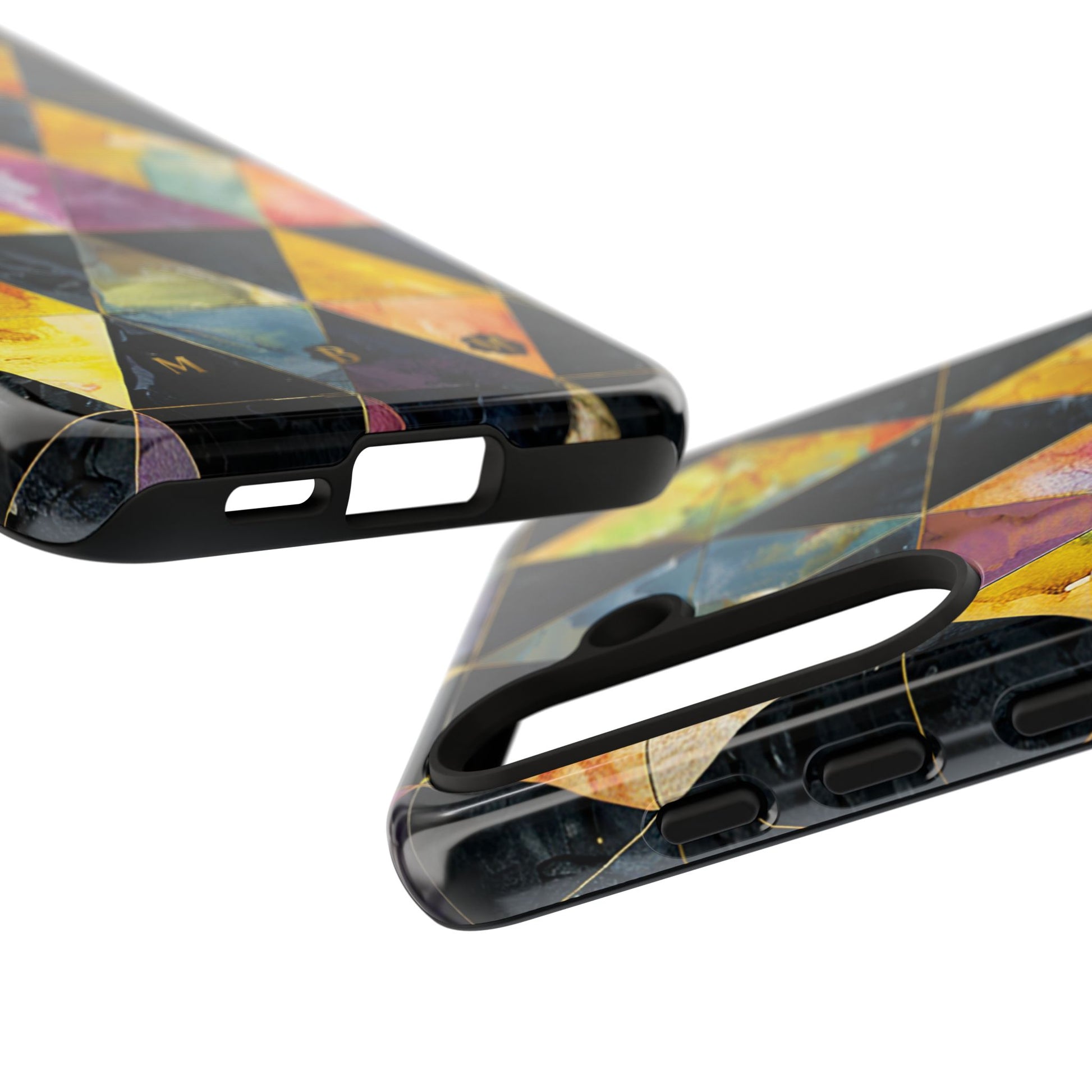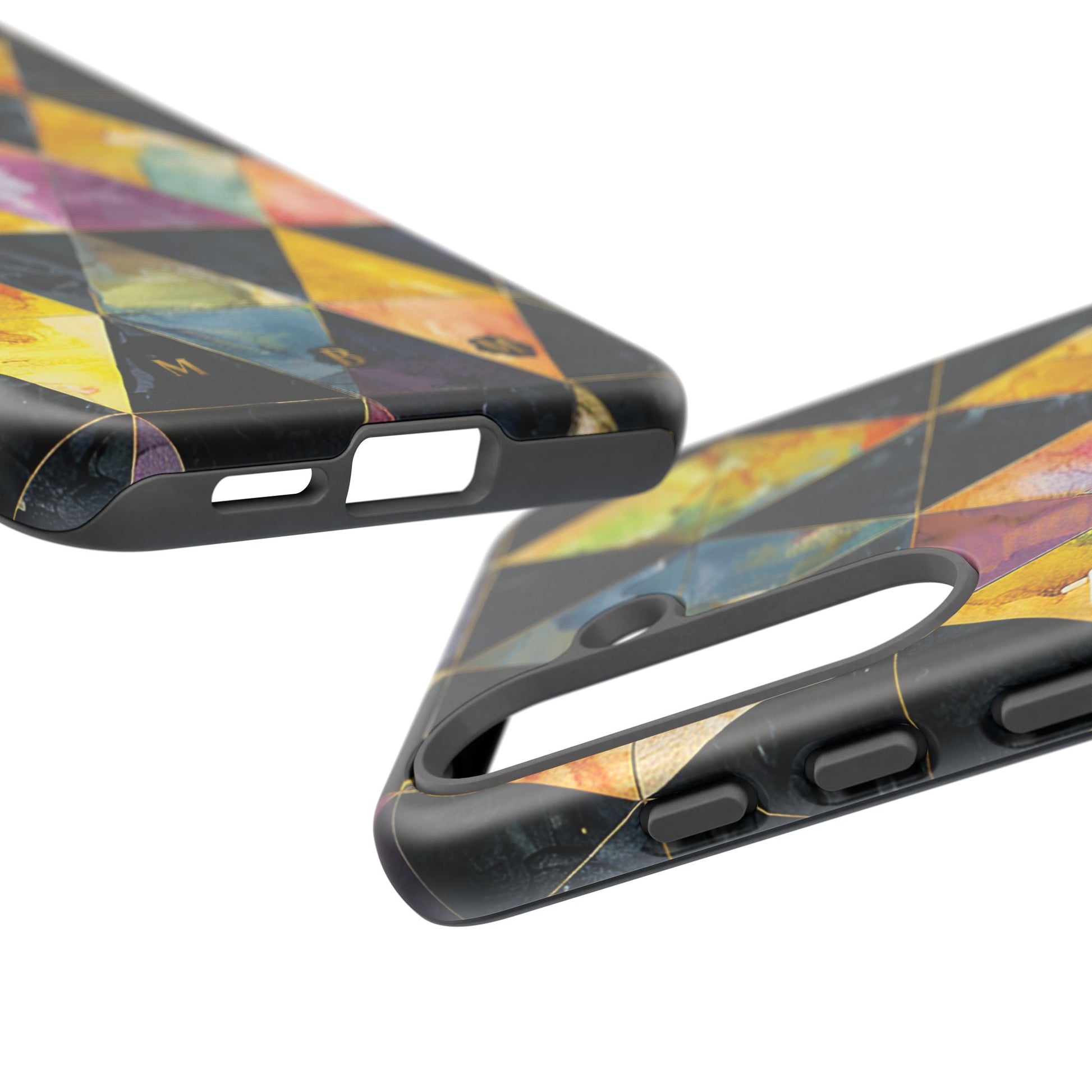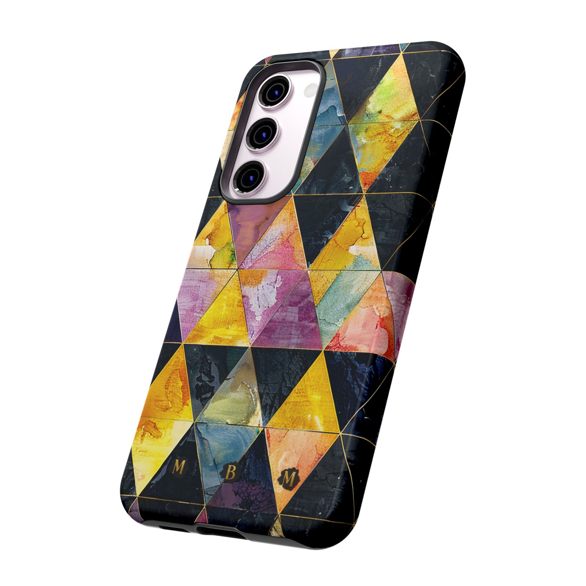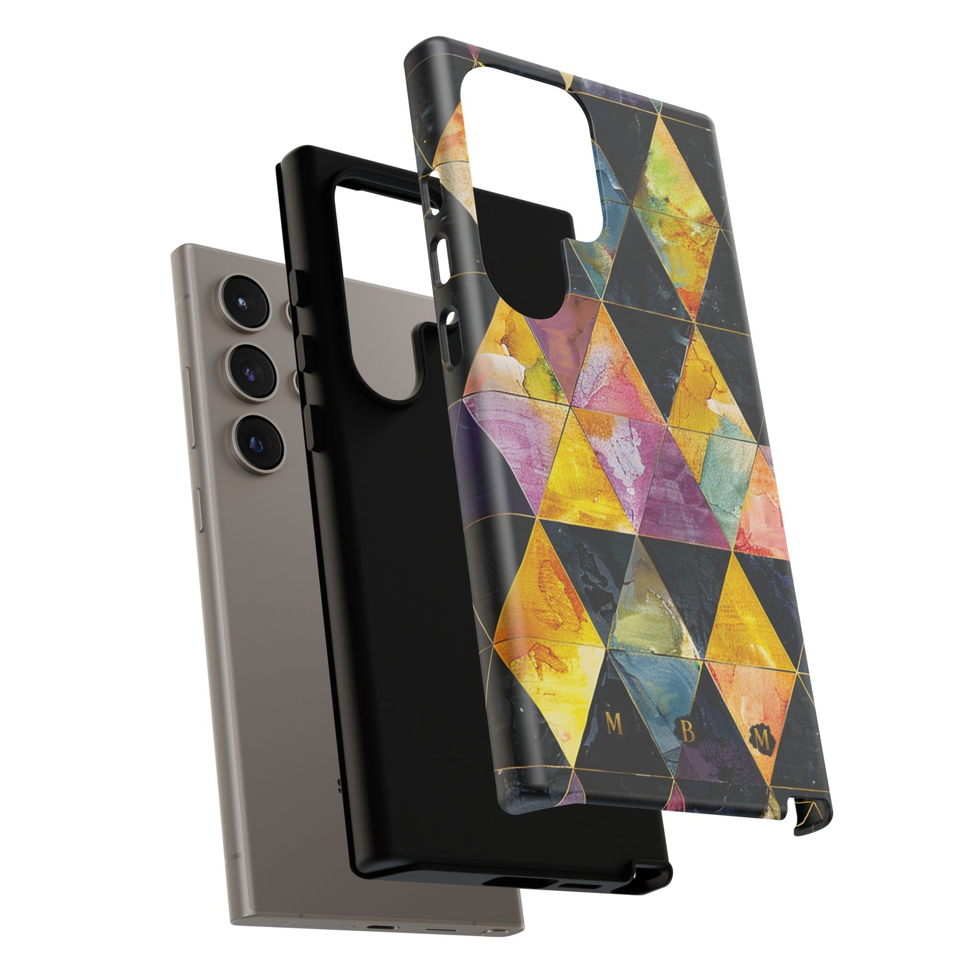 Get ready to dazzle with the Vertex Prism Phone Case! This eye-catching design features a kaleidoscope of vibrant colors splashed across a geometric pattern of triangles. Think of it as a modern art masterpiece for your phone! The mix of purples, yellows, blues, and blacks creates a stunning visual effect that's sure to turn heads. Not only does it look amazing, but it also provides solid protection for your device. Perfect for anyone who loves a pop of color and a touch of sophistication. Make your phone the star of the show with the Vertex Prism Phone Case!