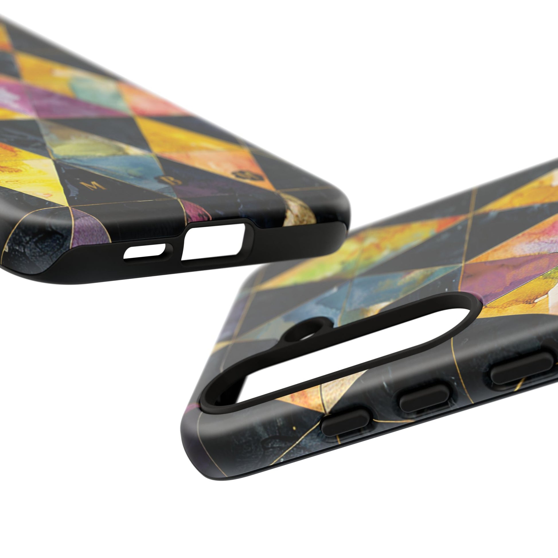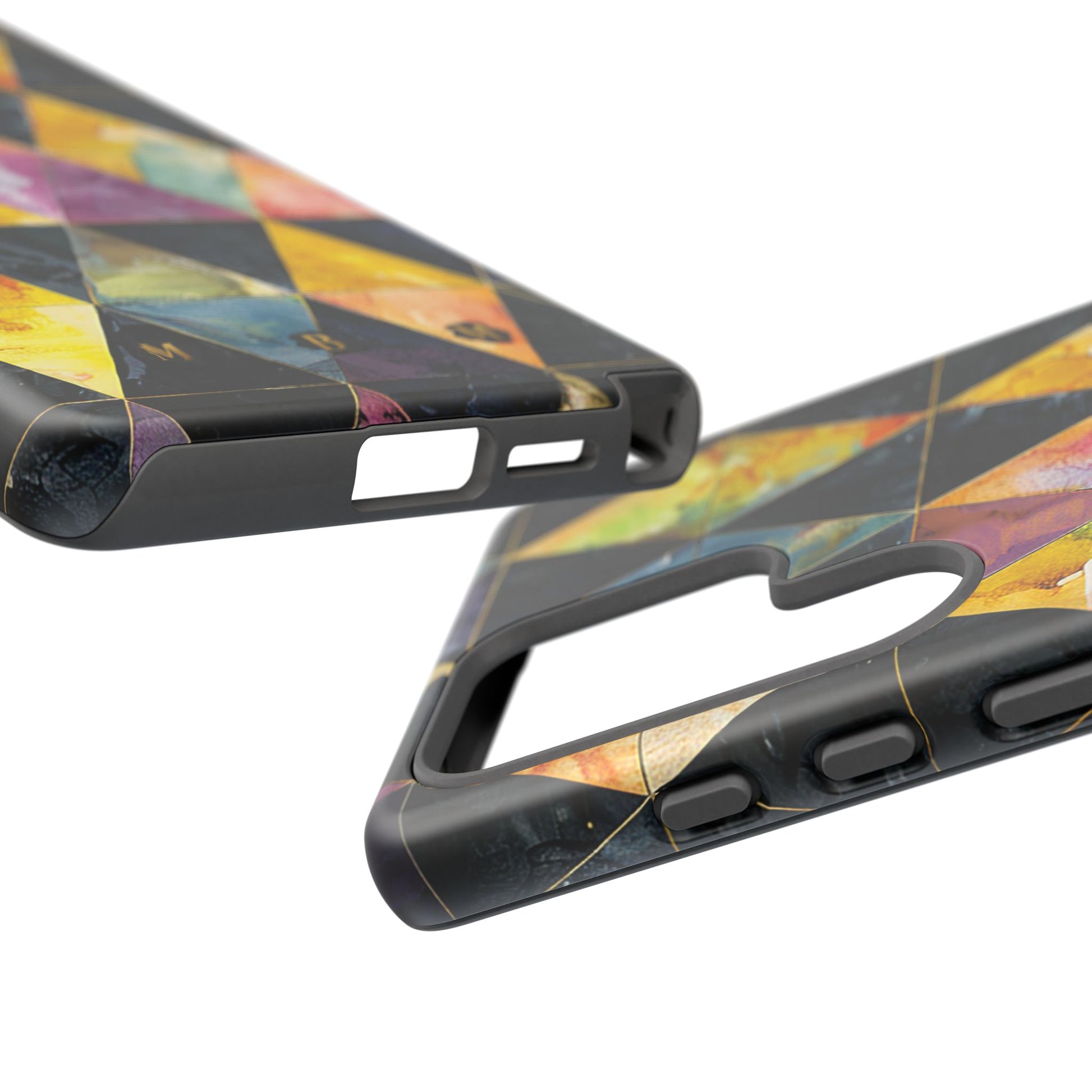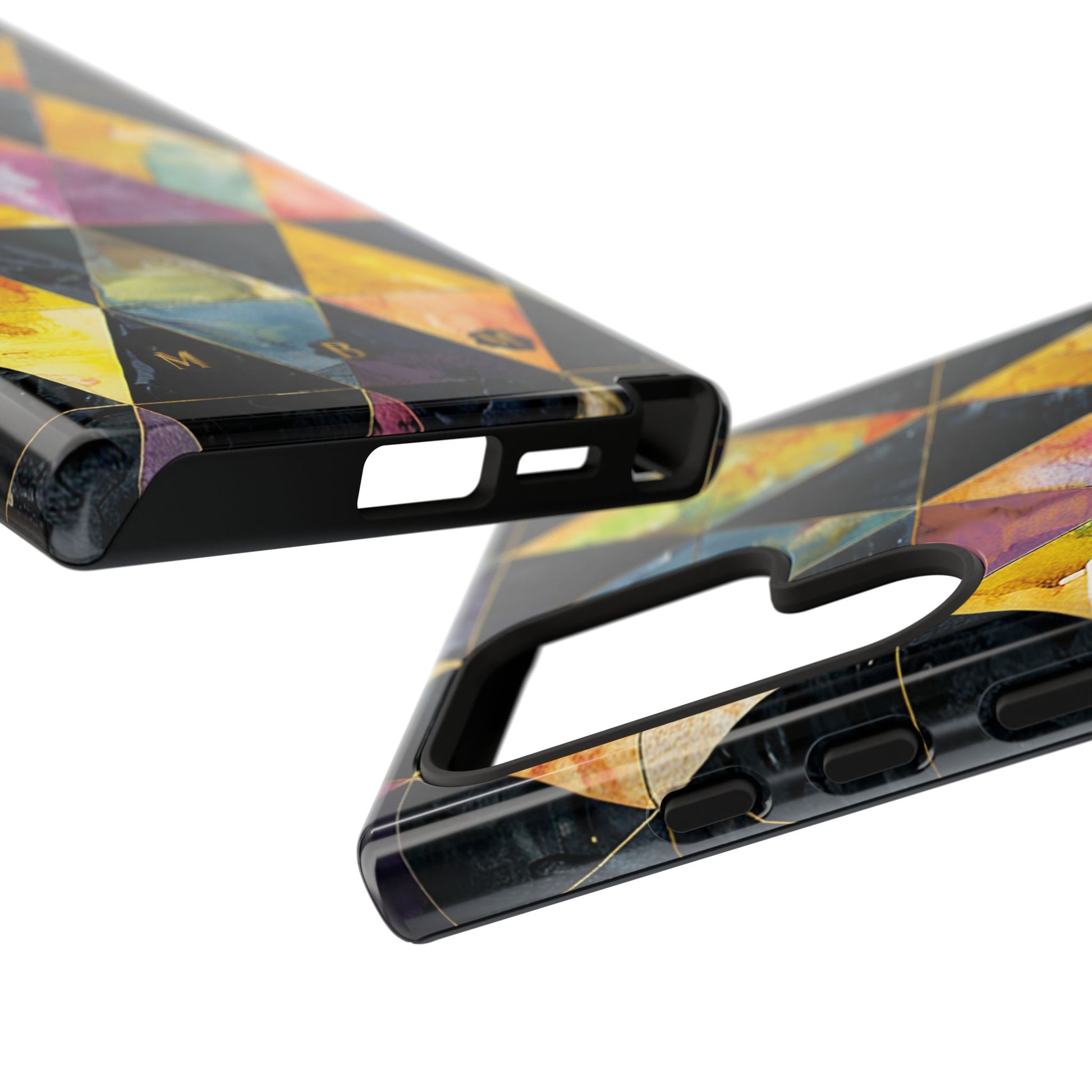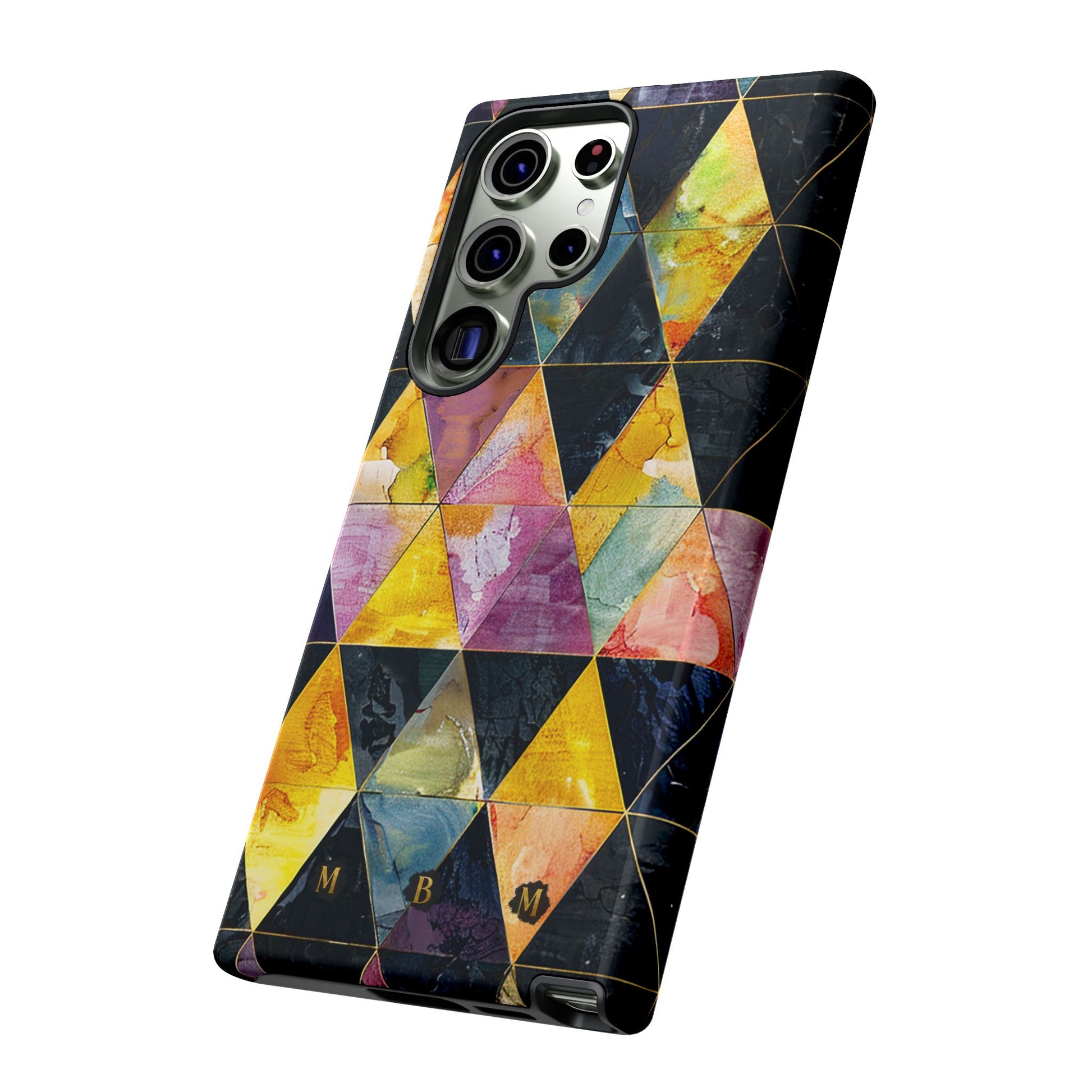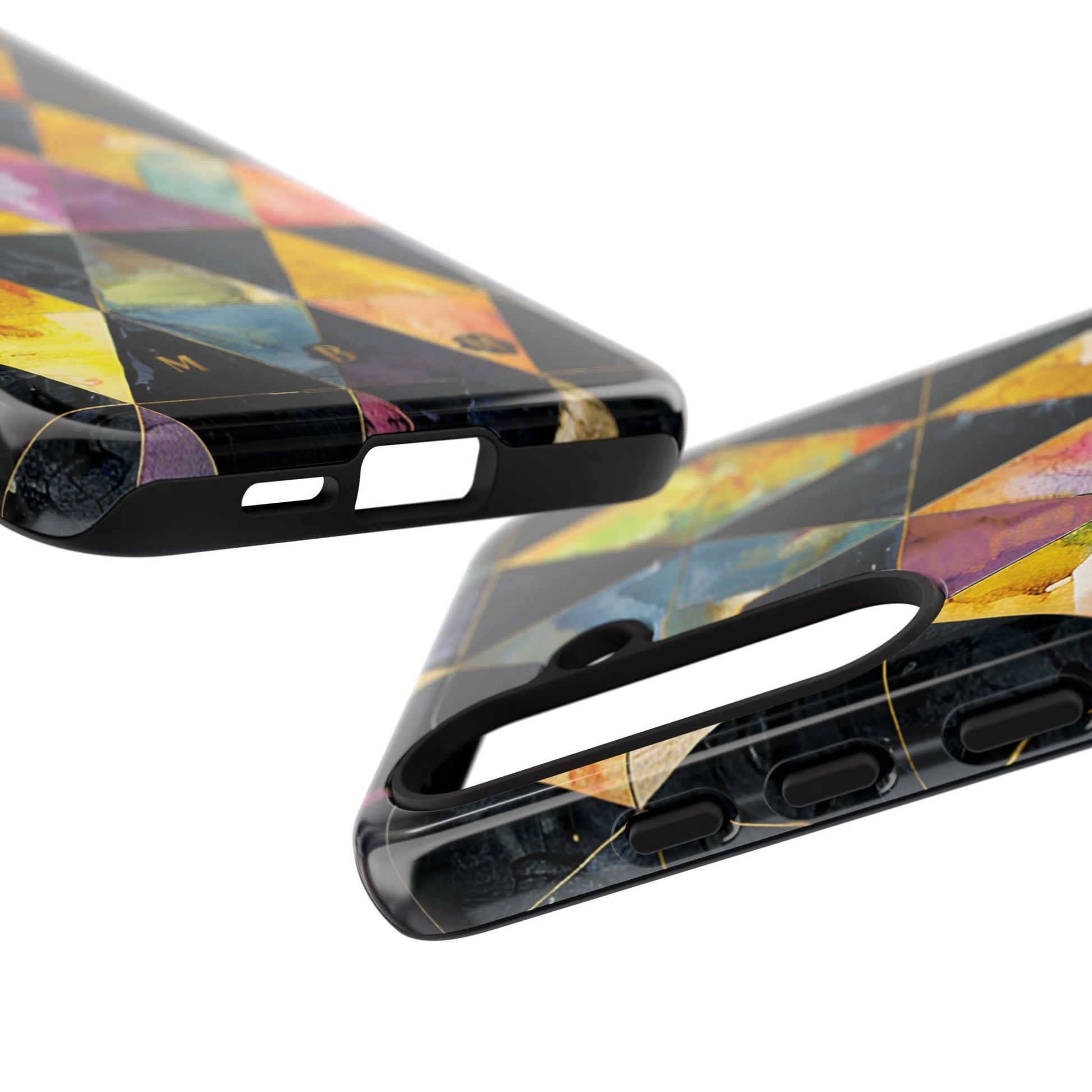 Get ready to dazzle with the Vertex Prism Phone Case! This eye-catching design features a kaleidoscope of vibrant colors splashed across a geometric pattern of triangles. Think of it as a modern art masterpiece for your phone! The mix of purples, yellows, blues, and blacks creates a stunning visual effect that's sure to turn heads. Not only does it look amazing, but it also provides solid protection for your device. Perfect for anyone who loves a pop of color and a touch of sophistication. Make your phone the star of the show with the Vertex Prism Phone Case!