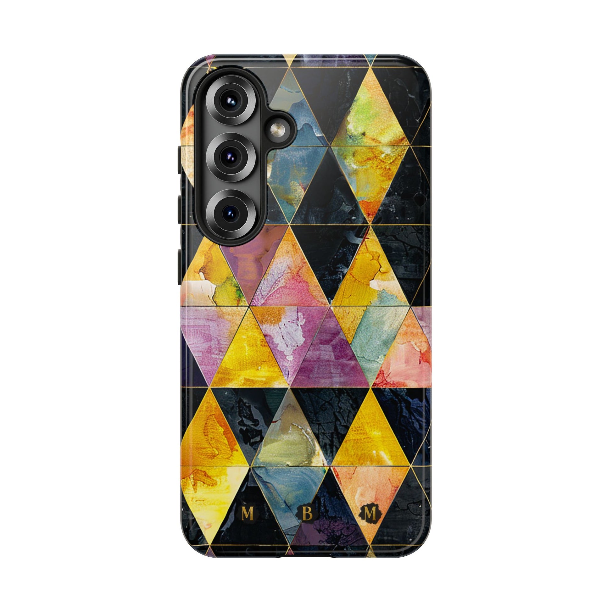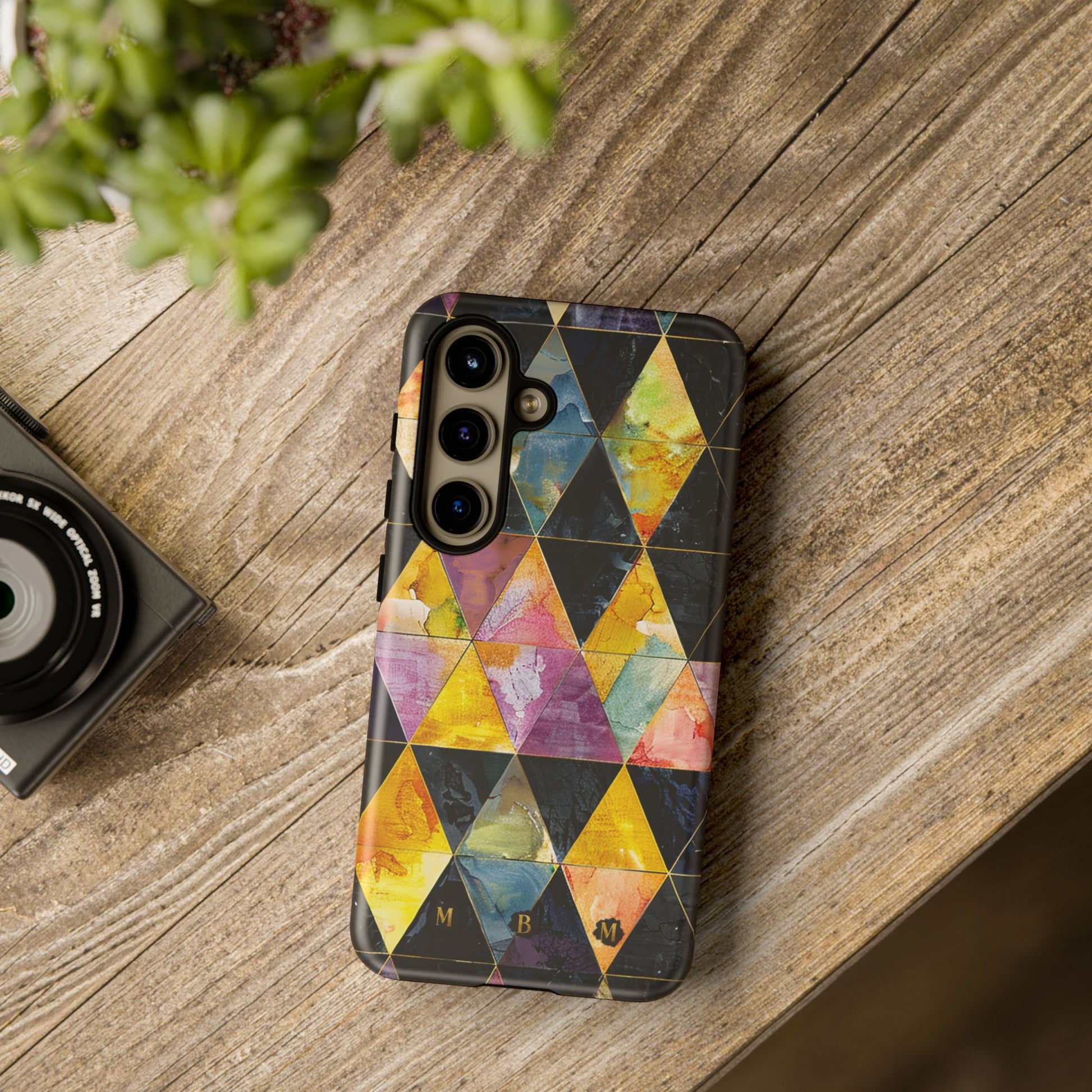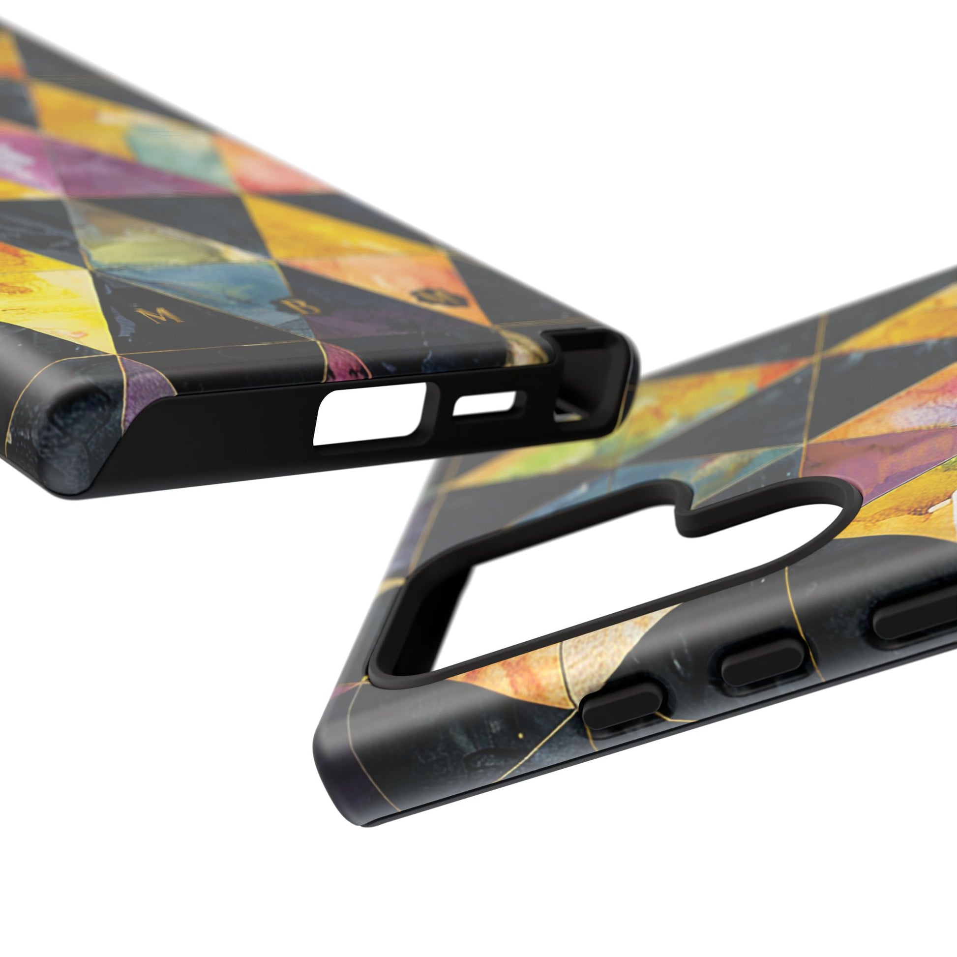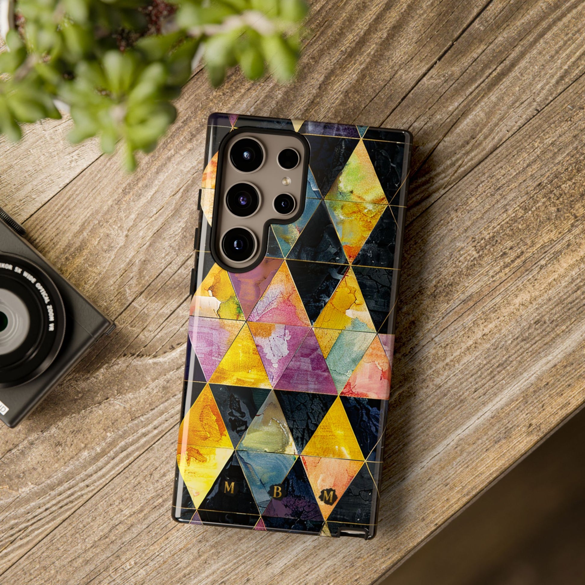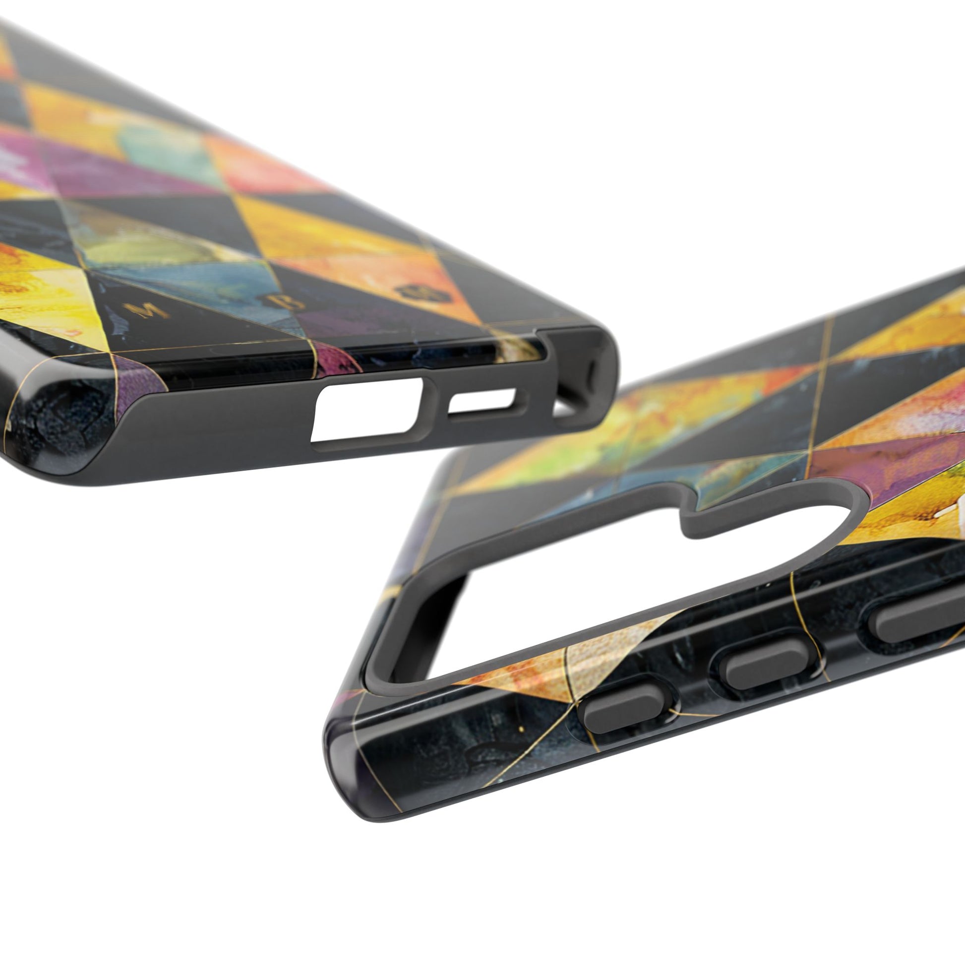 Get ready to dazzle with the Vertex Prism Phone Case! This eye-catching design features a kaleidoscope of vibrant colors splashed across a geometric pattern of triangles. Think of it as a modern art masterpiece for your phone! The mix of purples, yellows, blues, and blacks creates a stunning visual effect that's sure to turn heads. Not only does it look amazing, but it also provides solid protection for your device. Perfect for anyone who loves a pop of color and a touch of sophistication. Make your phone the star of the show with the Vertex Prism Phone Case!