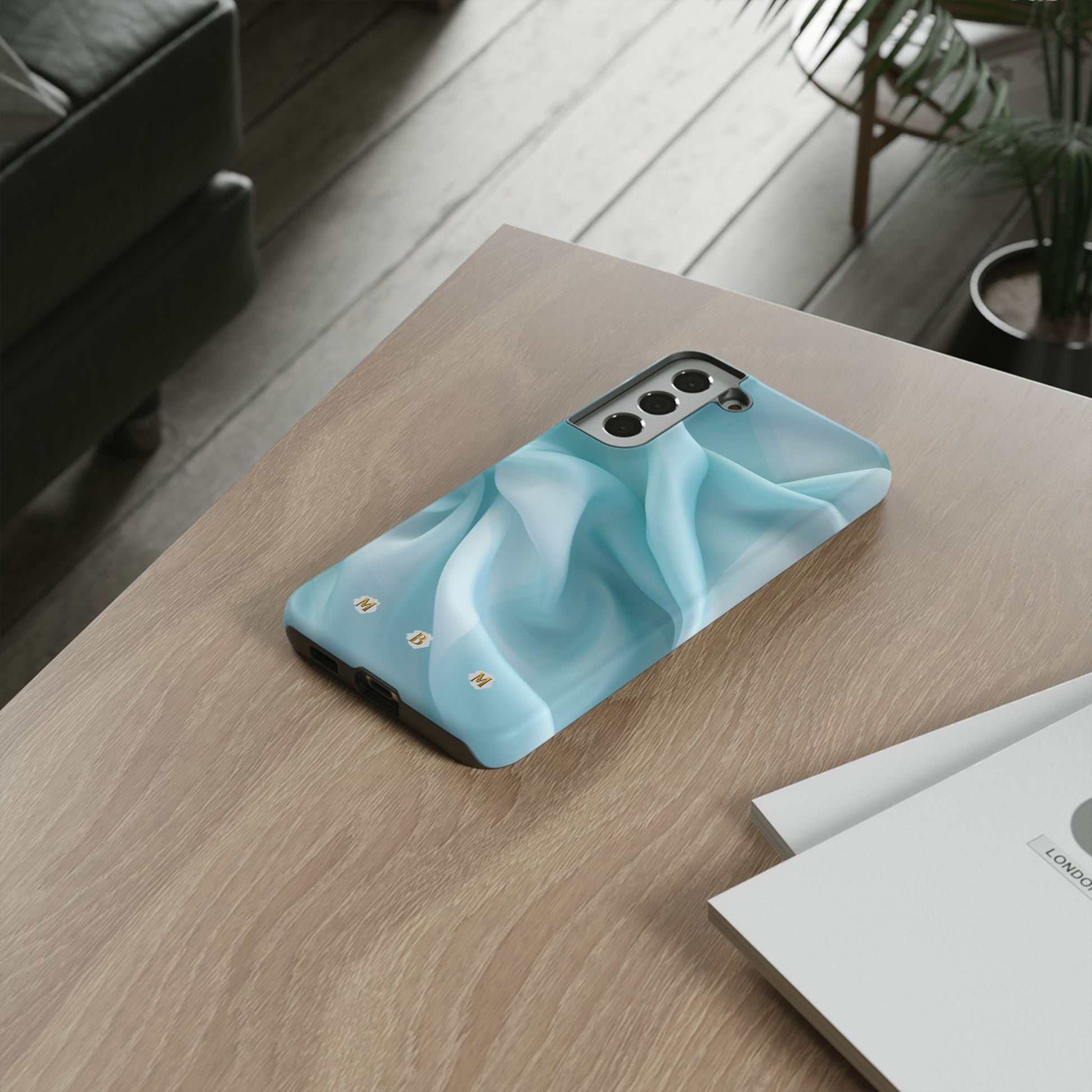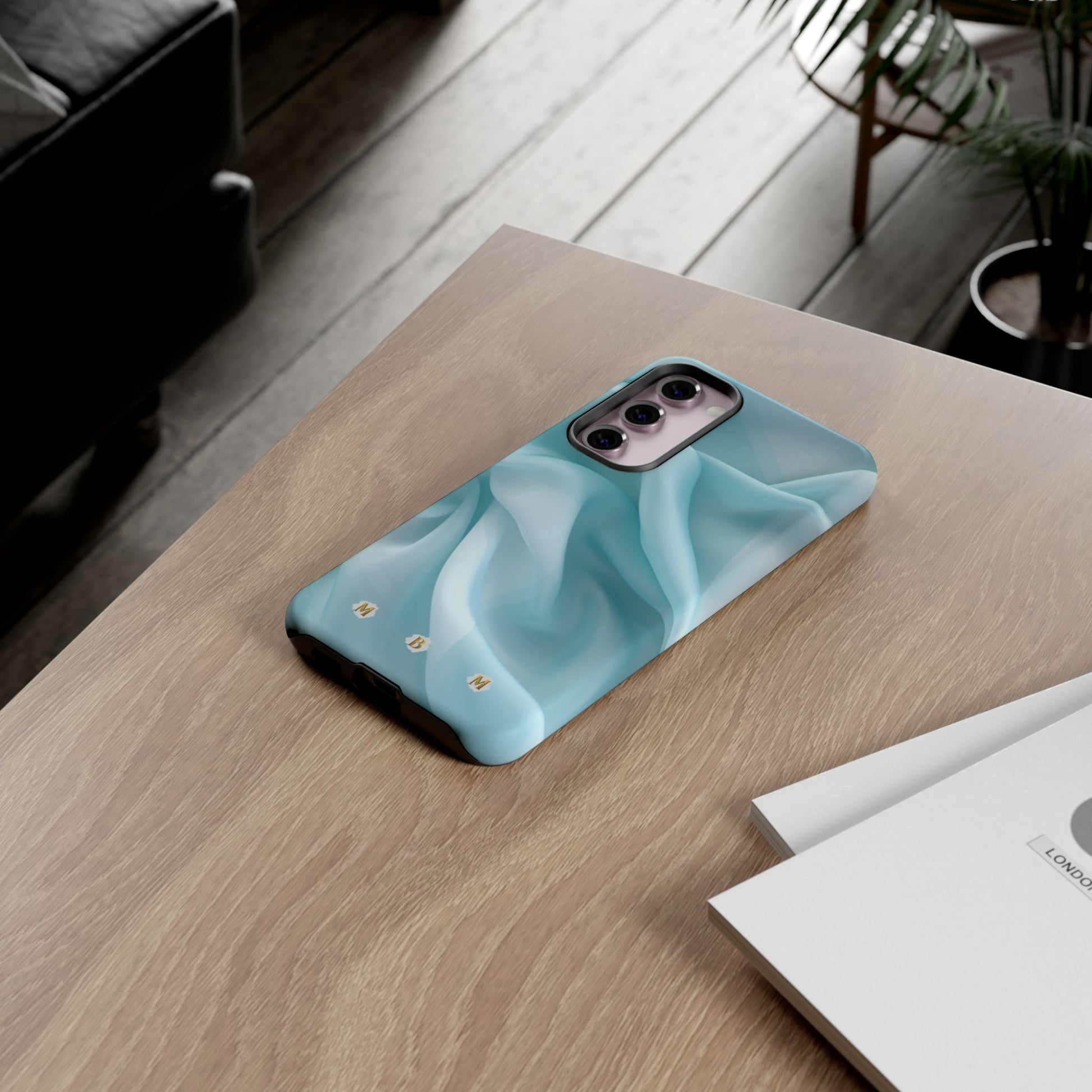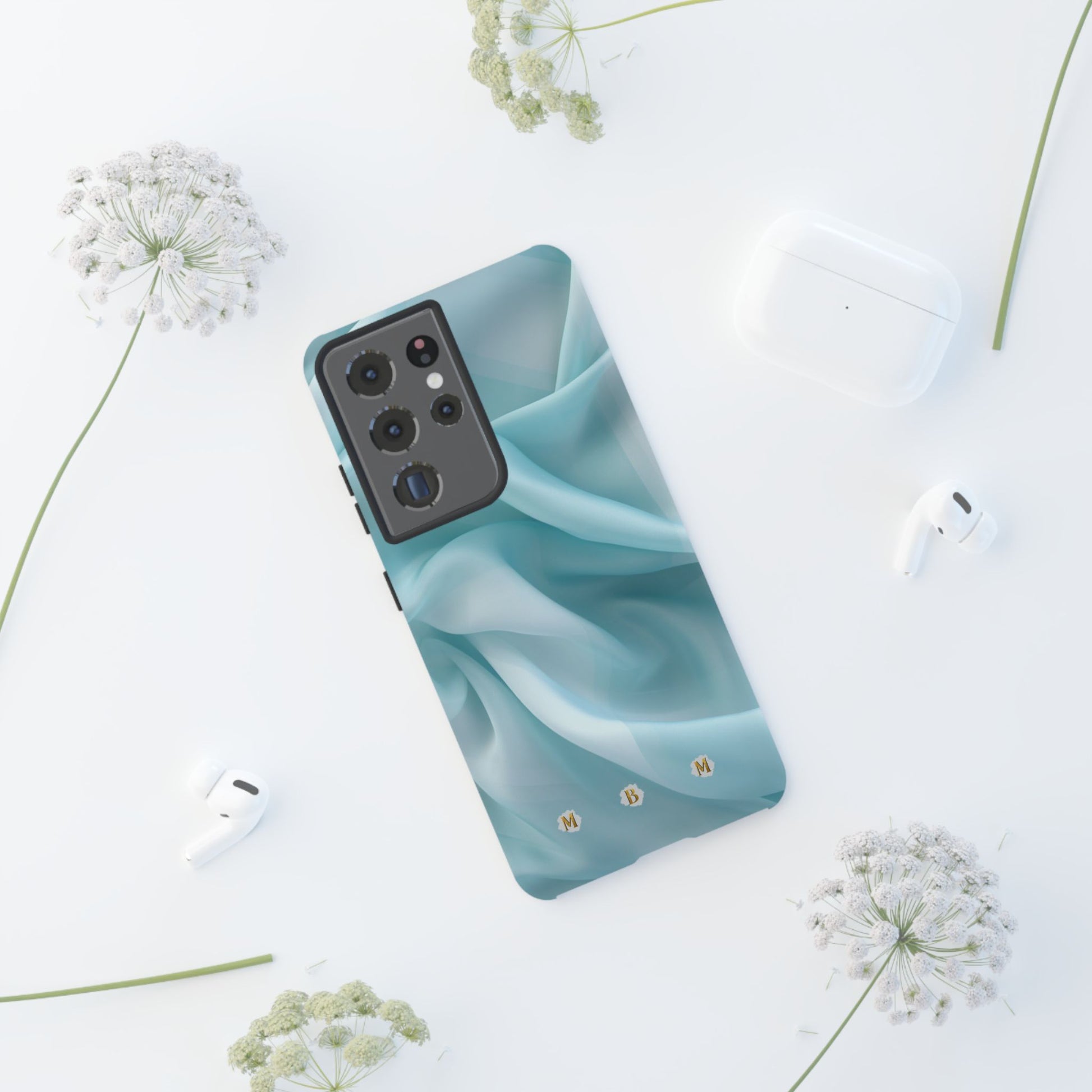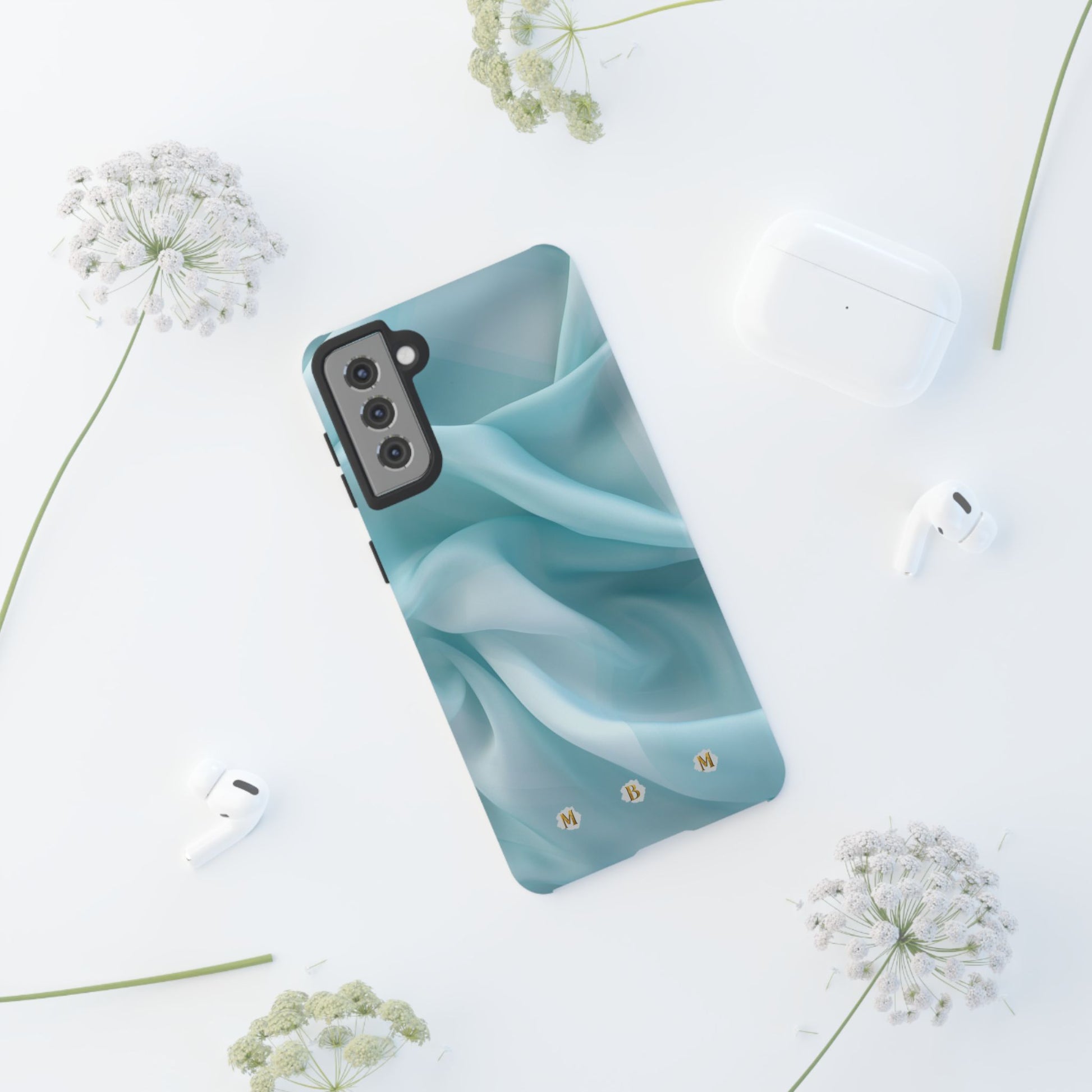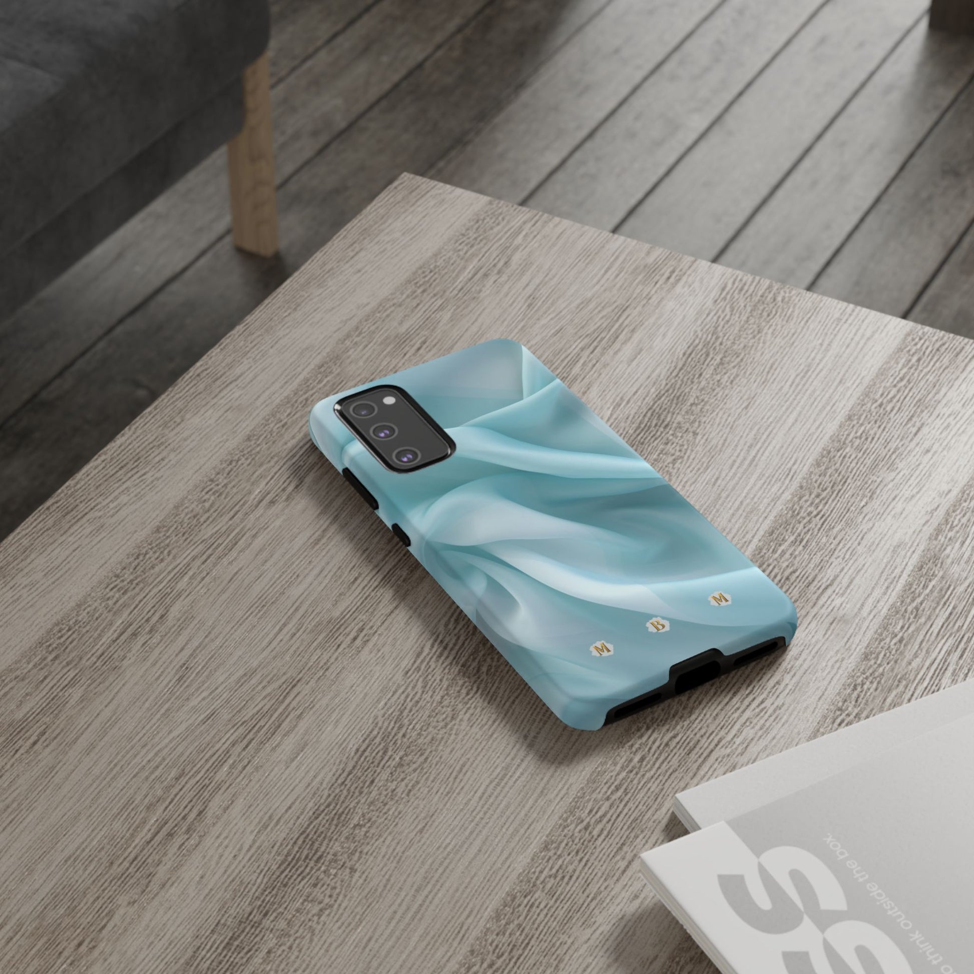 Oh, brace yourselves for a phone case that's as dreamy as a cloud drifting across a summer sky! Picture this: a phone case adorned with sky blue and soft white saffron fabric, delicately flowy and puckered to give it that irresistible depth. It's like holding a piece of the sky right in the palm of your hand, but with a touch of romance woven in. Trust me, your phone will feel like it's floating on air with this heavenly accessory. Prepare for your heart to skip a beat every time you catch a glimpse of it!