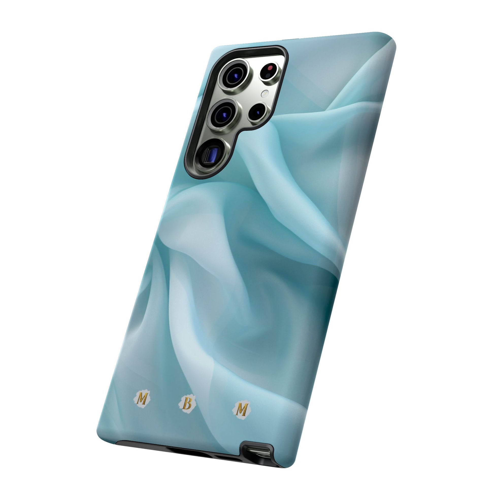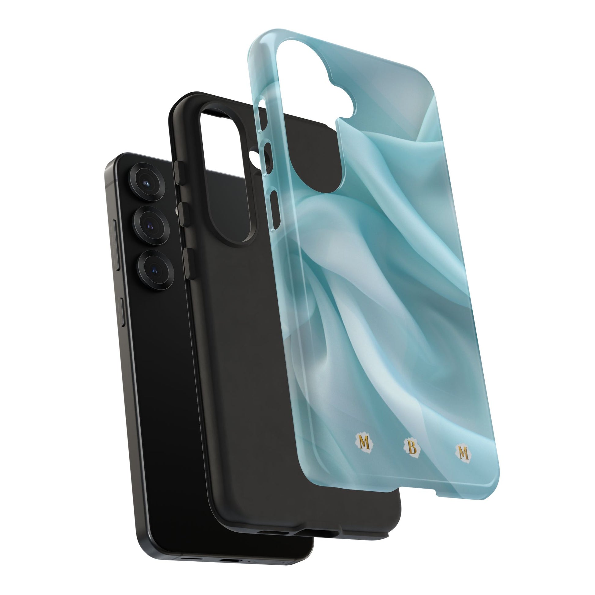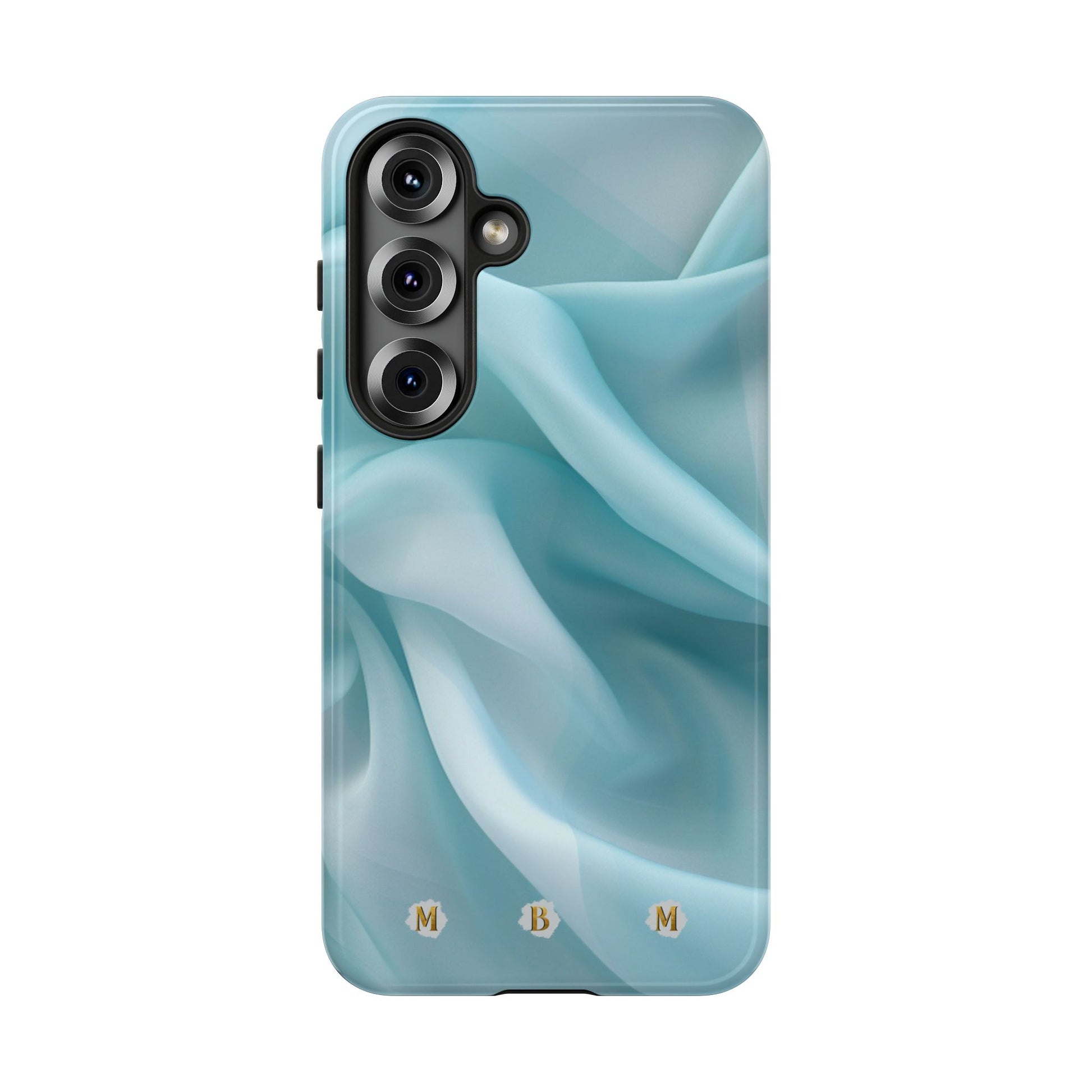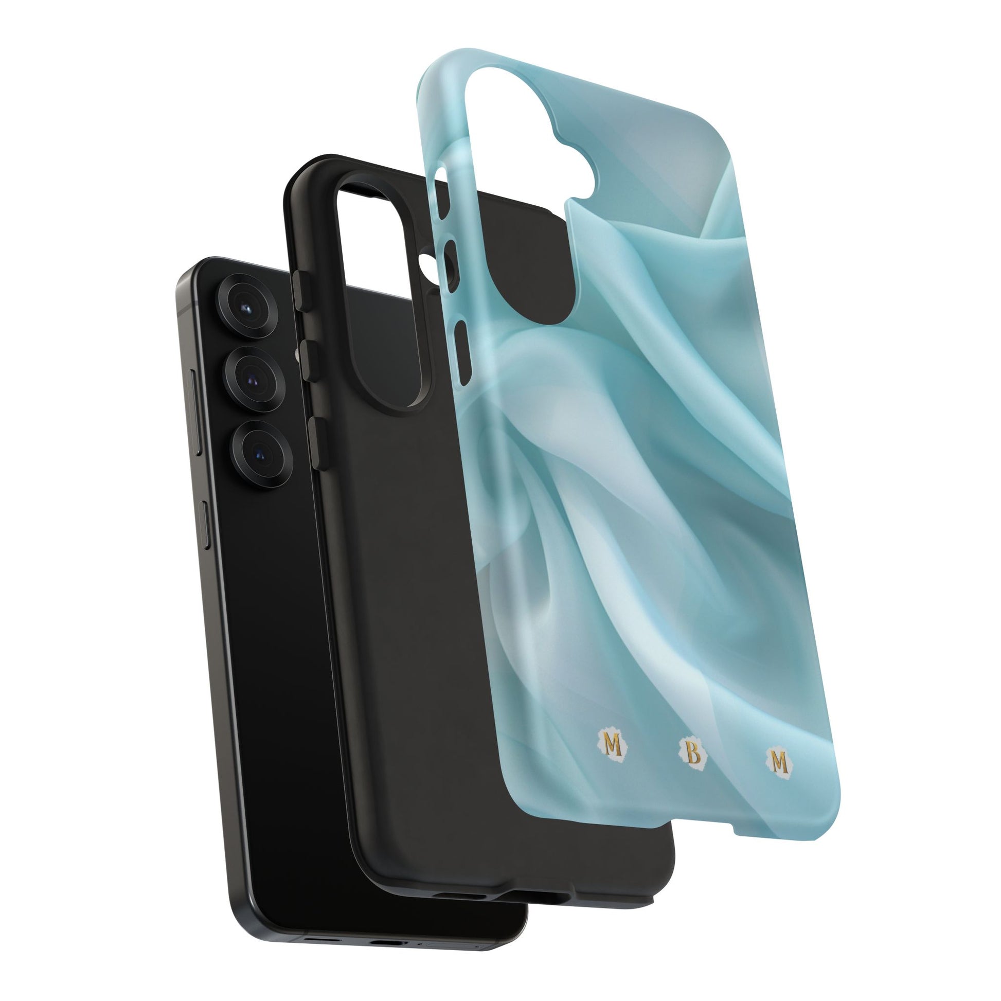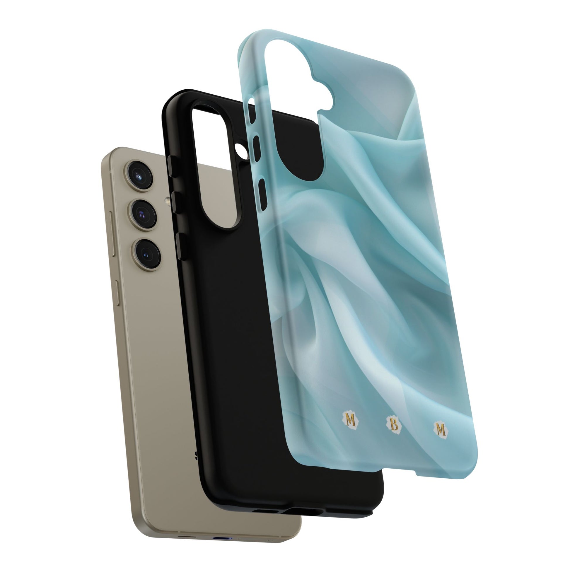 Oh, brace yourselves for a phone case that's as dreamy as a cloud drifting across a summer sky! Picture this: a phone case adorned with sky blue and soft white saffron fabric, delicately flowy and puckered to give it that irresistible depth. It's like holding a piece of the sky right in the palm of your hand, but with a touch of romance woven in. Trust me, your phone will feel like it's floating on air with this heavenly accessory. Prepare for your heart to skip a beat every time you catch a glimpse of it!