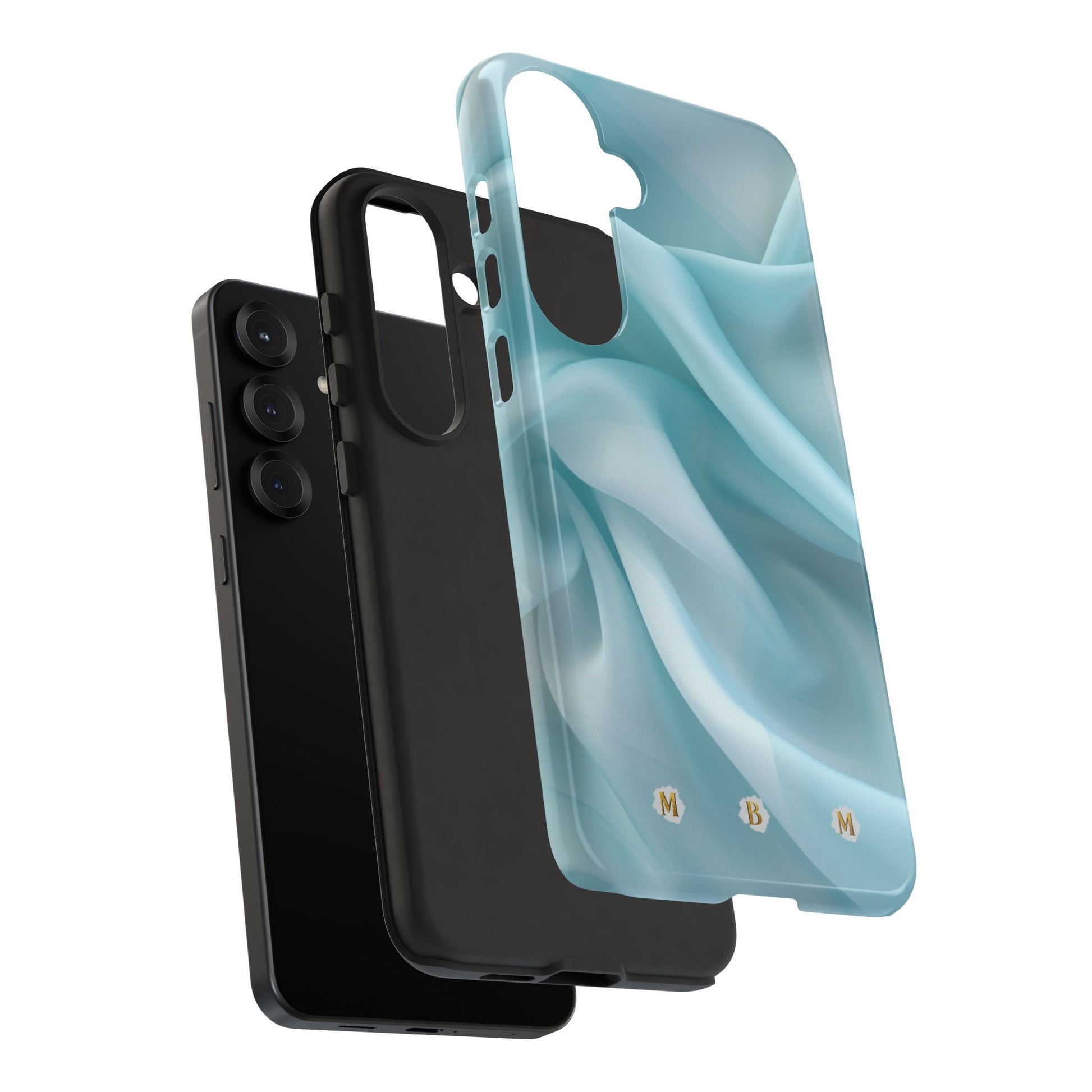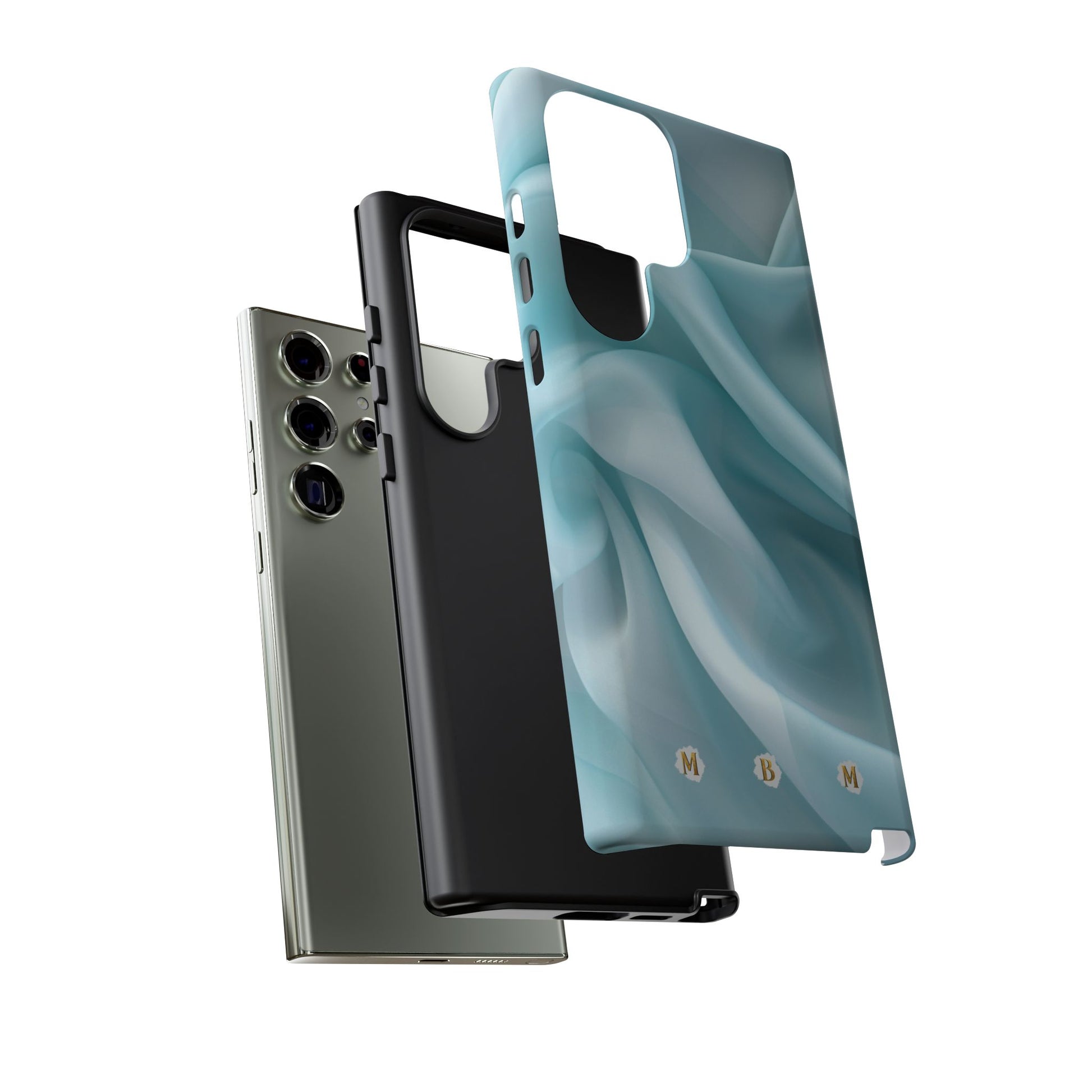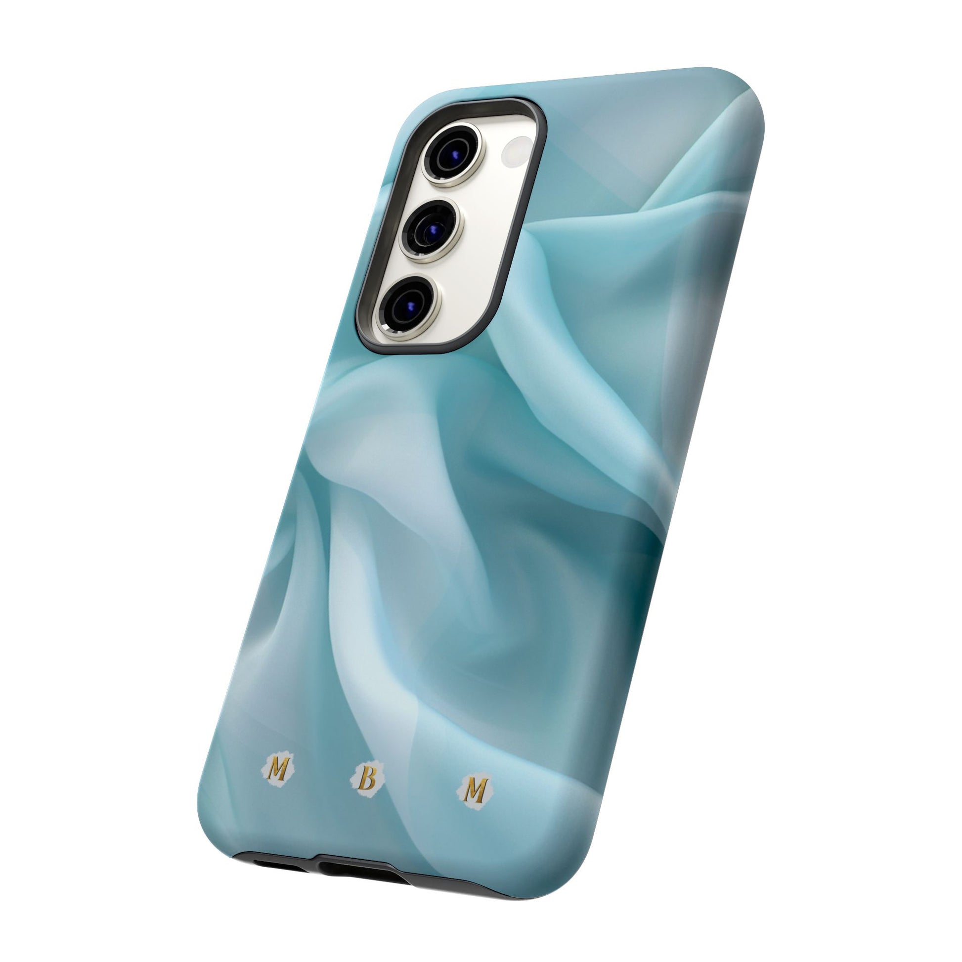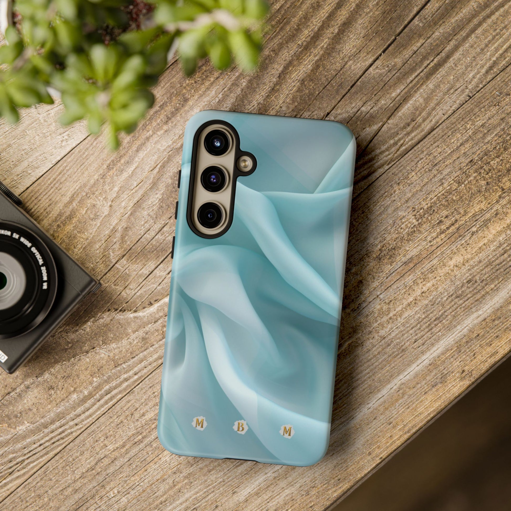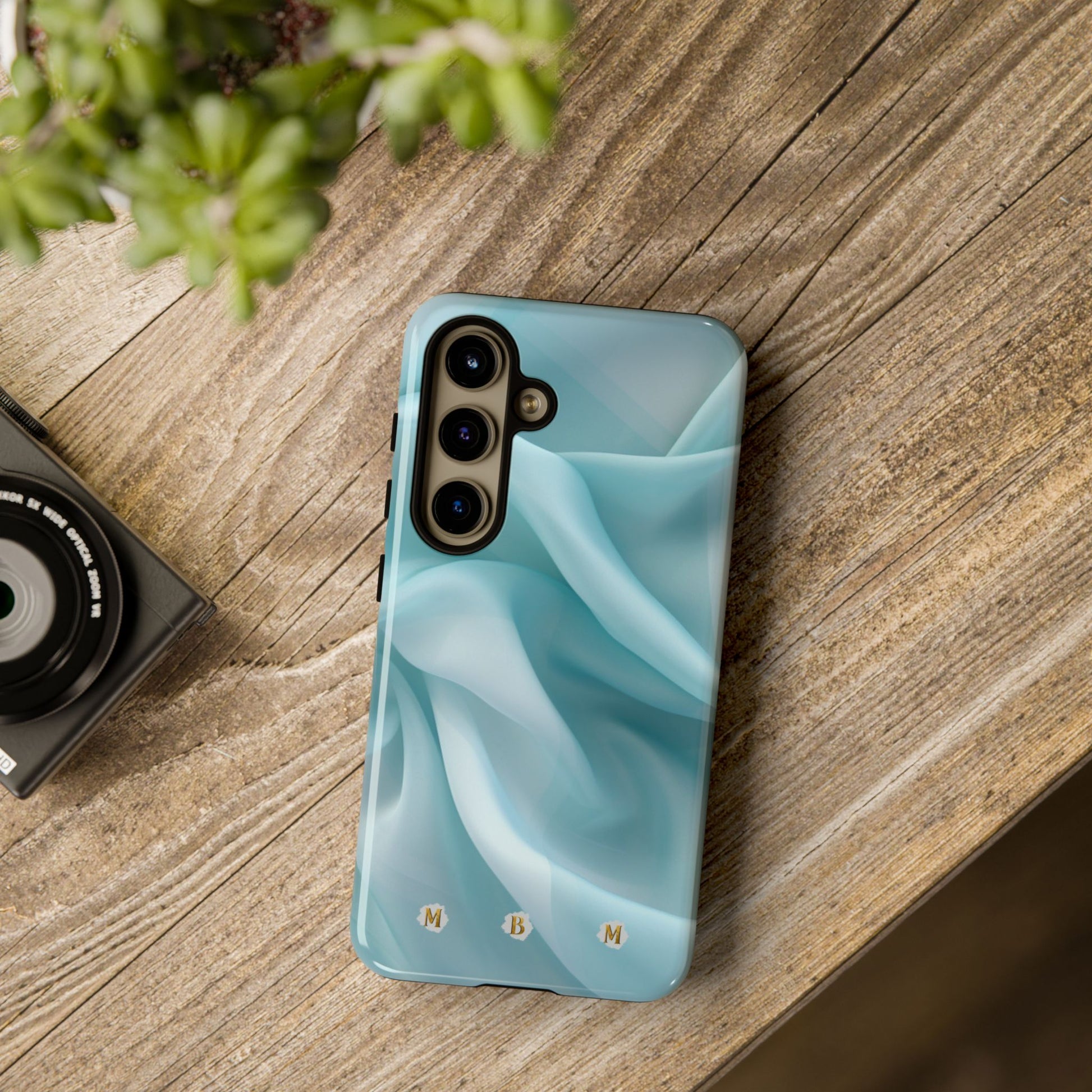 Oh, brace yourselves for a phone case that's as dreamy as a cloud drifting across a summer sky! Picture this: a phone case adorned with sky blue and soft white saffron fabric, delicately flowy and puckered to give it that irresistible depth. It's like holding a piece of the sky right in the palm of your hand, but with a touch of romance woven in. Trust me, your phone will feel like it's floating on air with this heavenly accessory. Prepare for your heart to skip a beat every time you catch a glimpse of it!